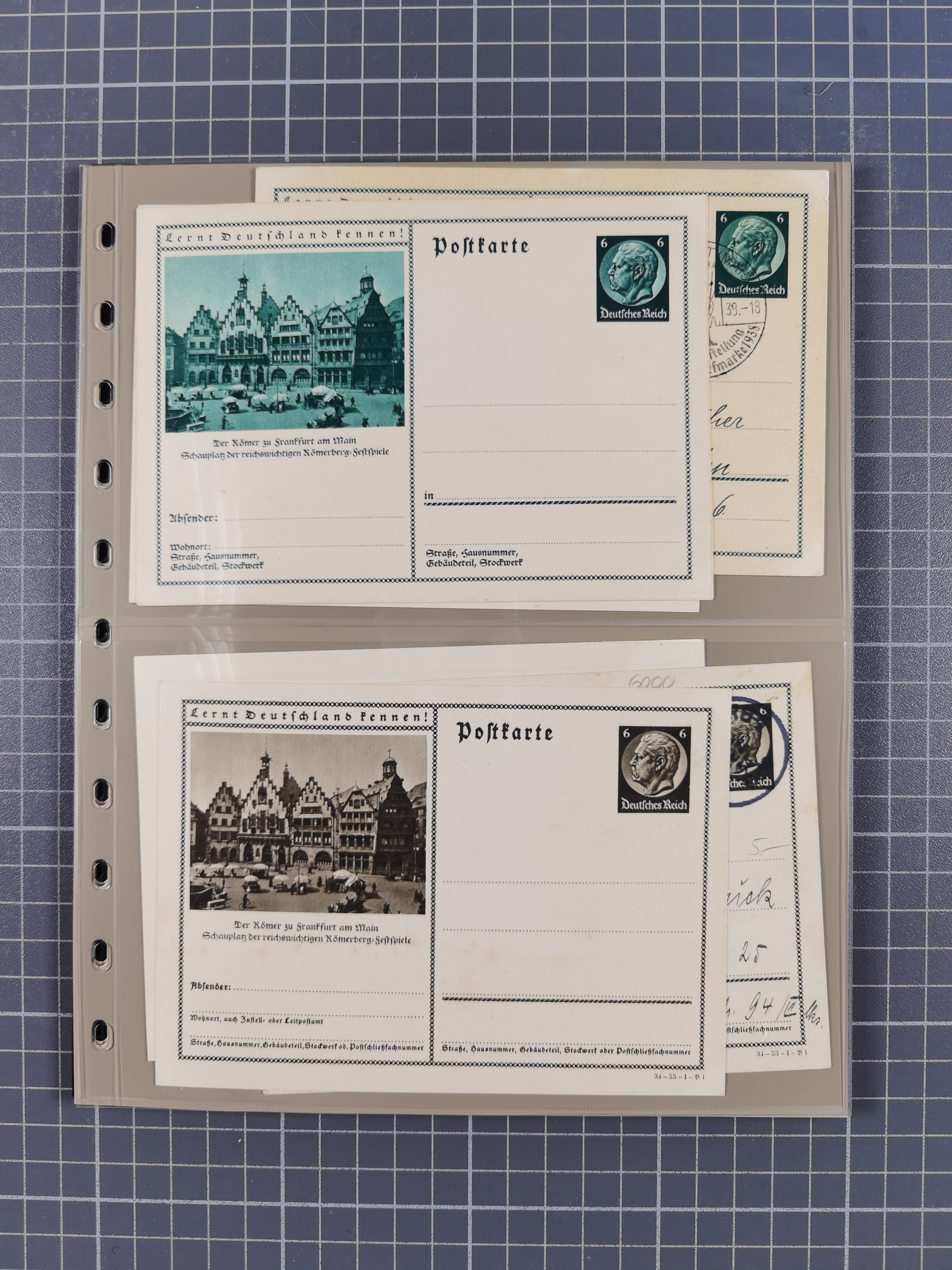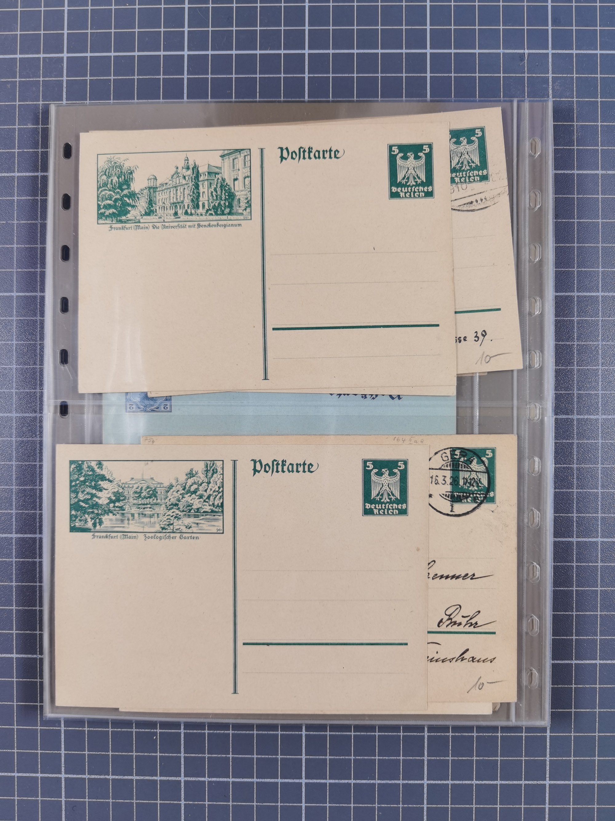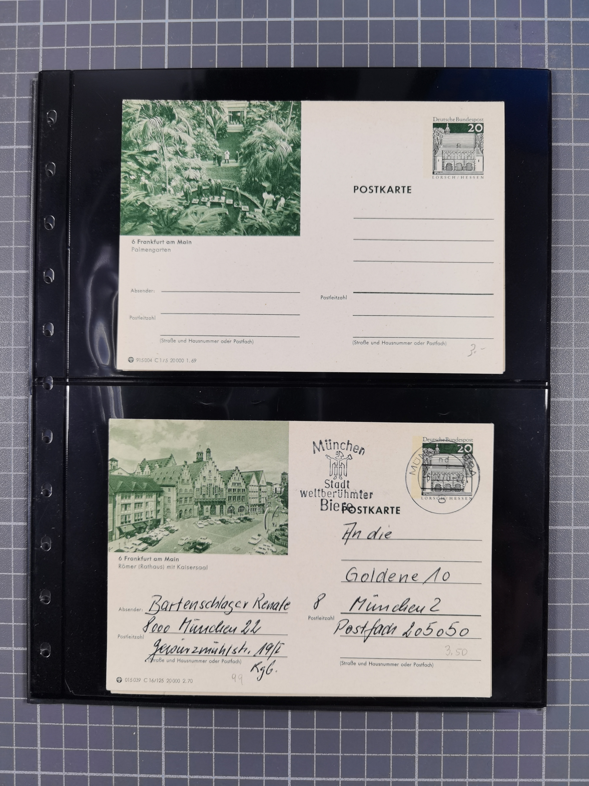 Frankfurt: 1900/89, interessante Sammlung von Bild-Ganzsachen und Ganzsachen mit Zudrucken aus Frankfurt, ungebraucht und gebraucht, dazu Tauchbootbrief aus Frankfurt 1917 in die USA mit allen Stempeln und dekorativer Umschlag 1900 mit beidseitigen farbigen Bildern aus Frankfurt