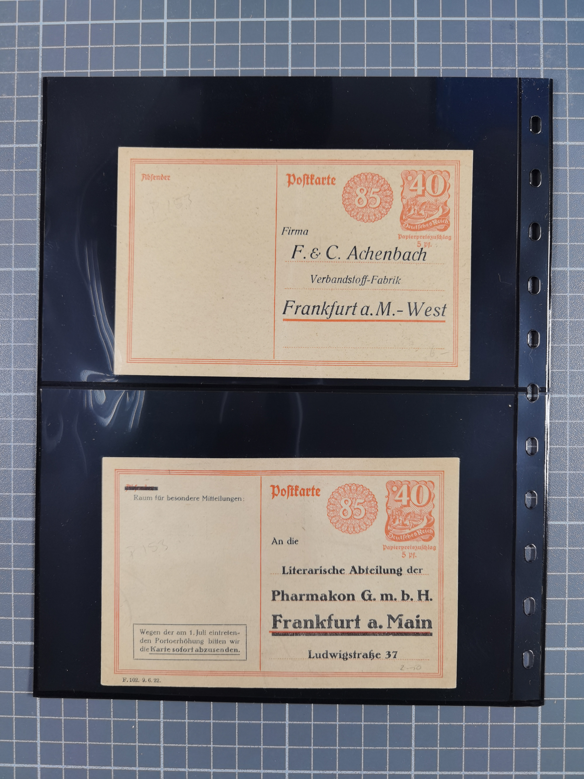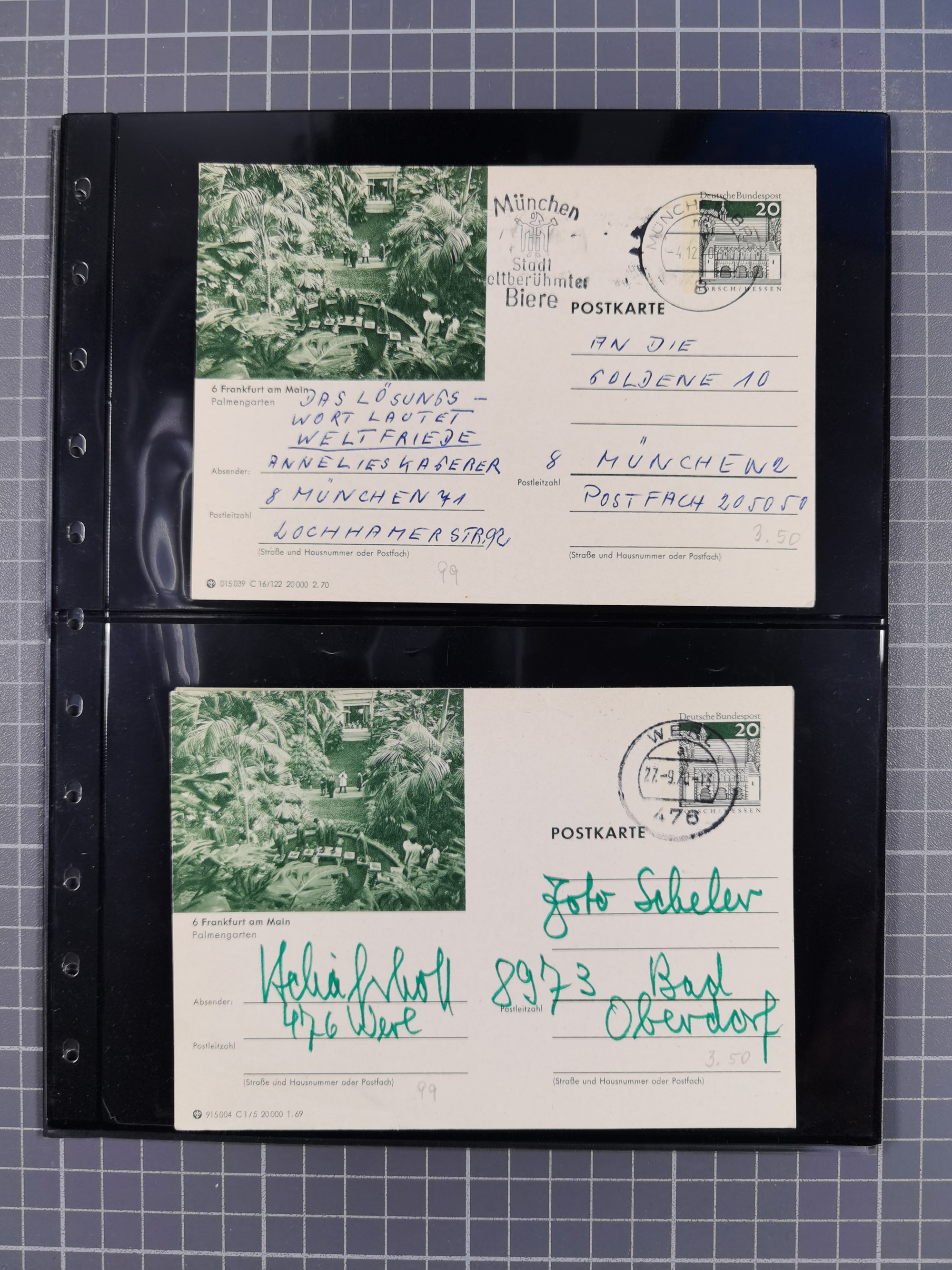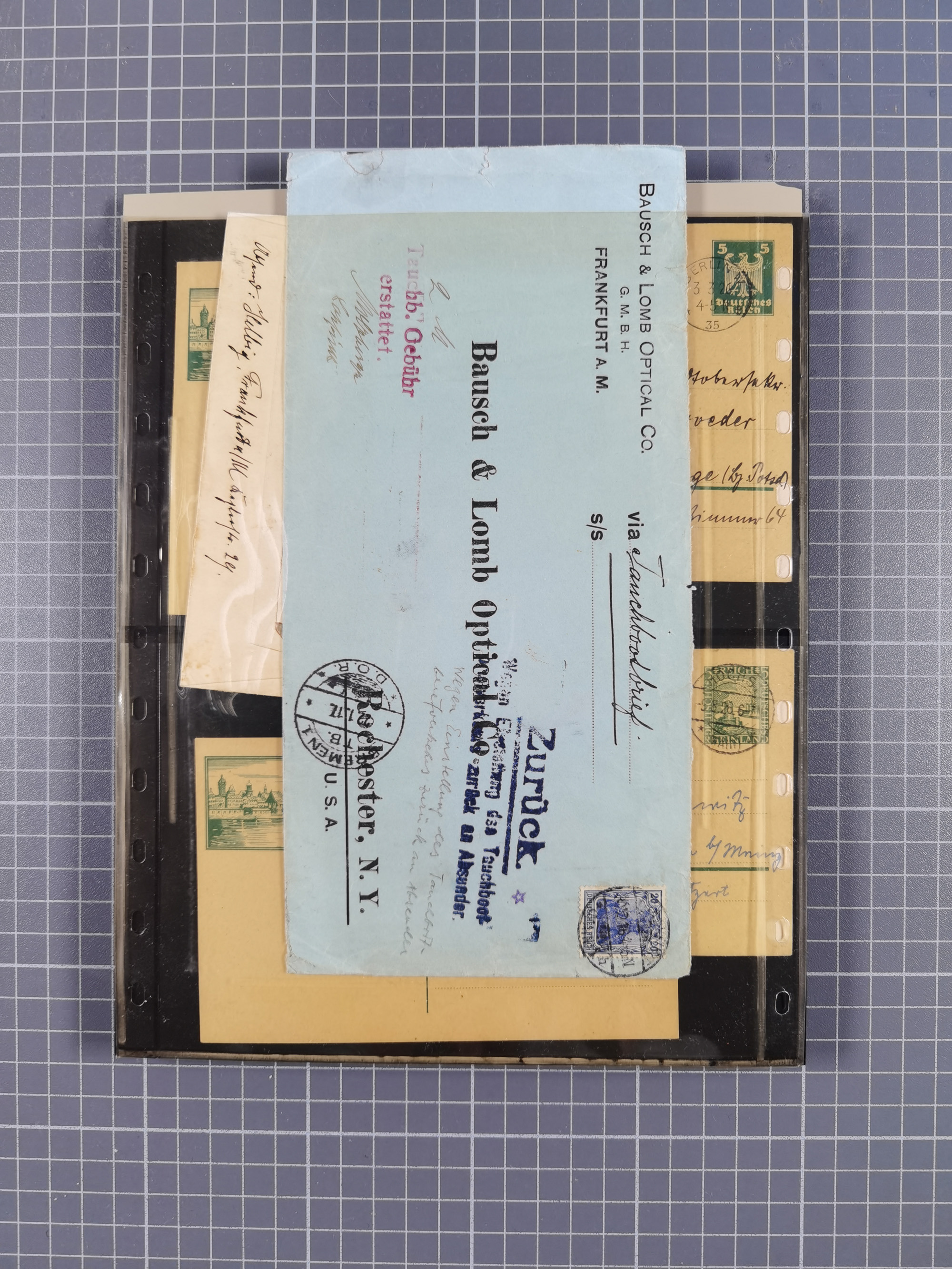 Frankfurt: 1900/89, interessante Sammlung von Bild-Ganzsachen und Ganzsachen mit Zudrucken aus Frankfurt, ungebraucht und gebraucht, dazu Tauchbootbrief aus Frankfurt 1917 in die USA mit allen Stempeln und dekorativer Umschlag 1900 mit beidseitigen farbigen Bildern aus Frankfurt