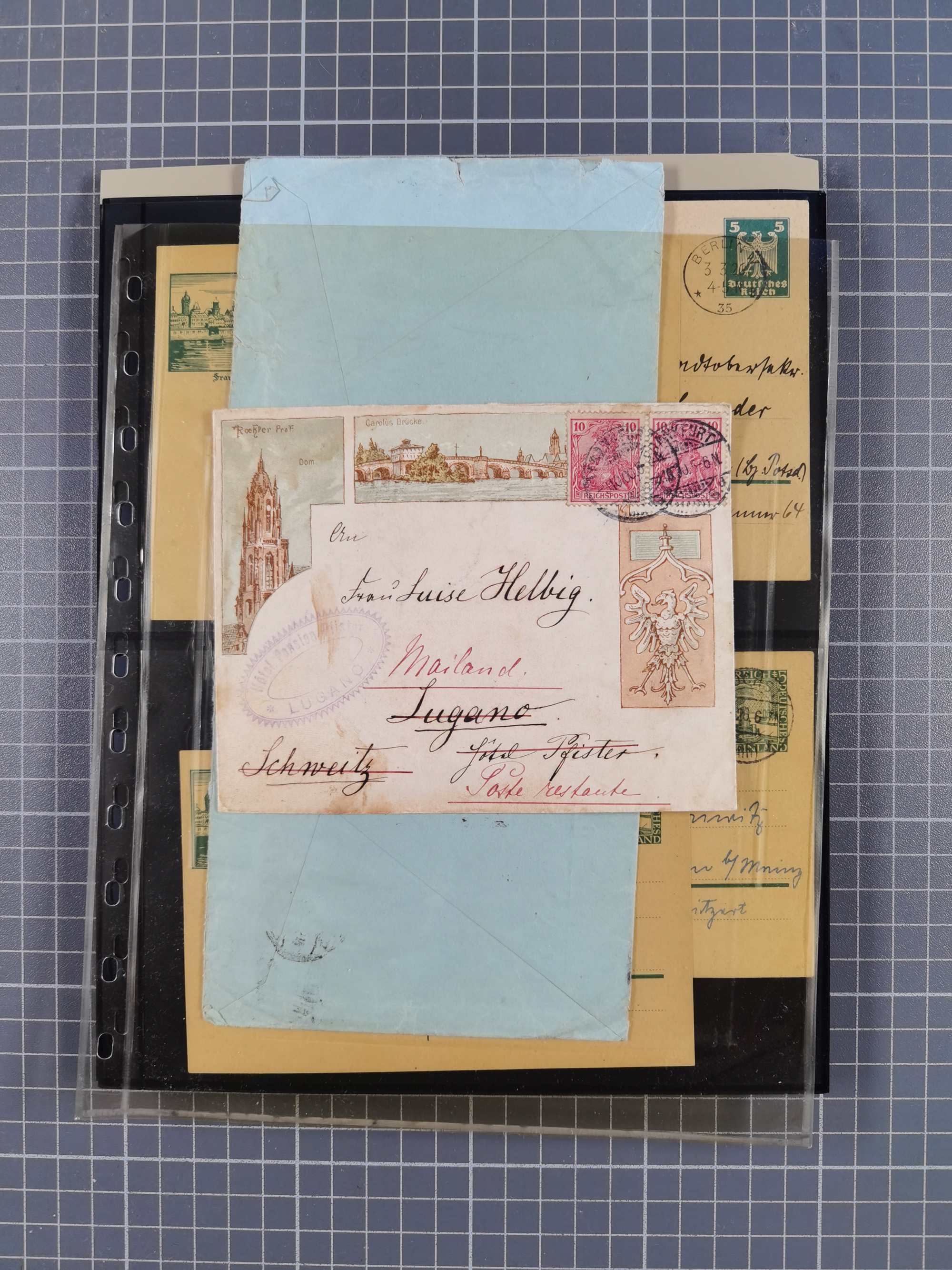 SIGMARINGEN: 1823/2000 (ca.), Heimatssammlung in 14 Steckbüchern, mit einigen hundert Briefen, Karten und Ganzsachen (von und nach Sigmaringen) sowie Marken und Briefstücken, dabei schöner Taxis-Teil, Briefe an Mitglieder des Fürstenhauses, Ansichtskarten, etc.