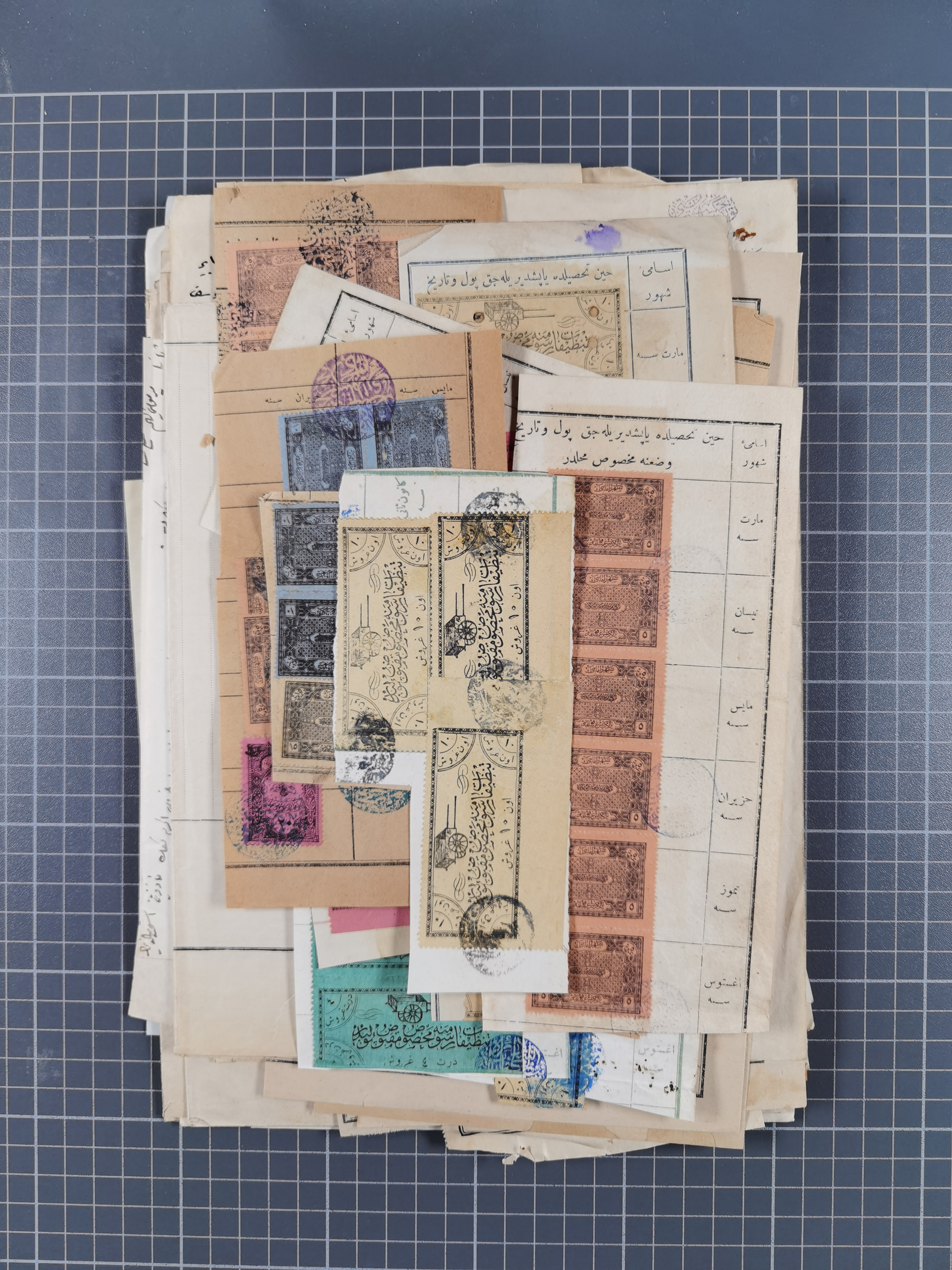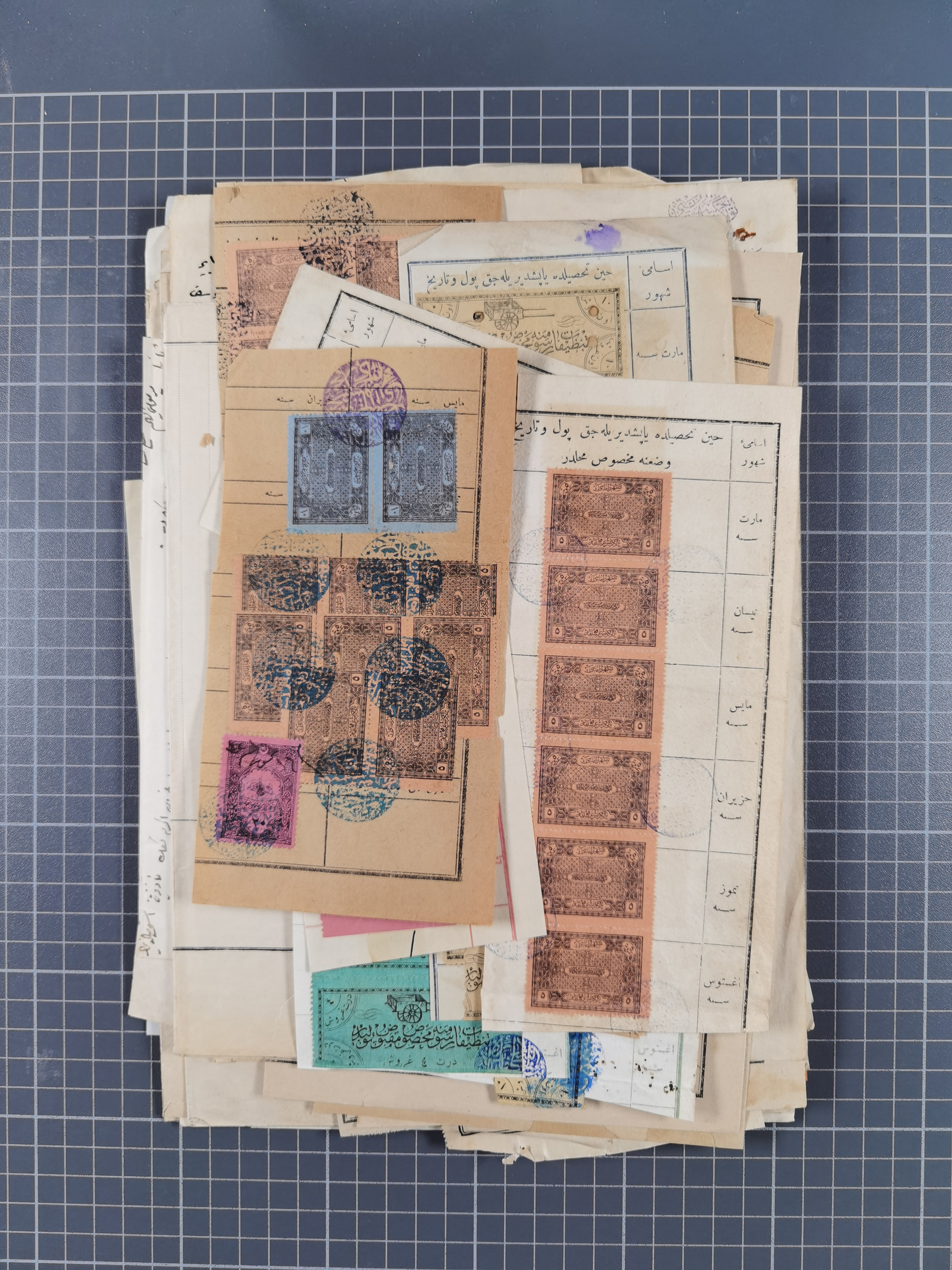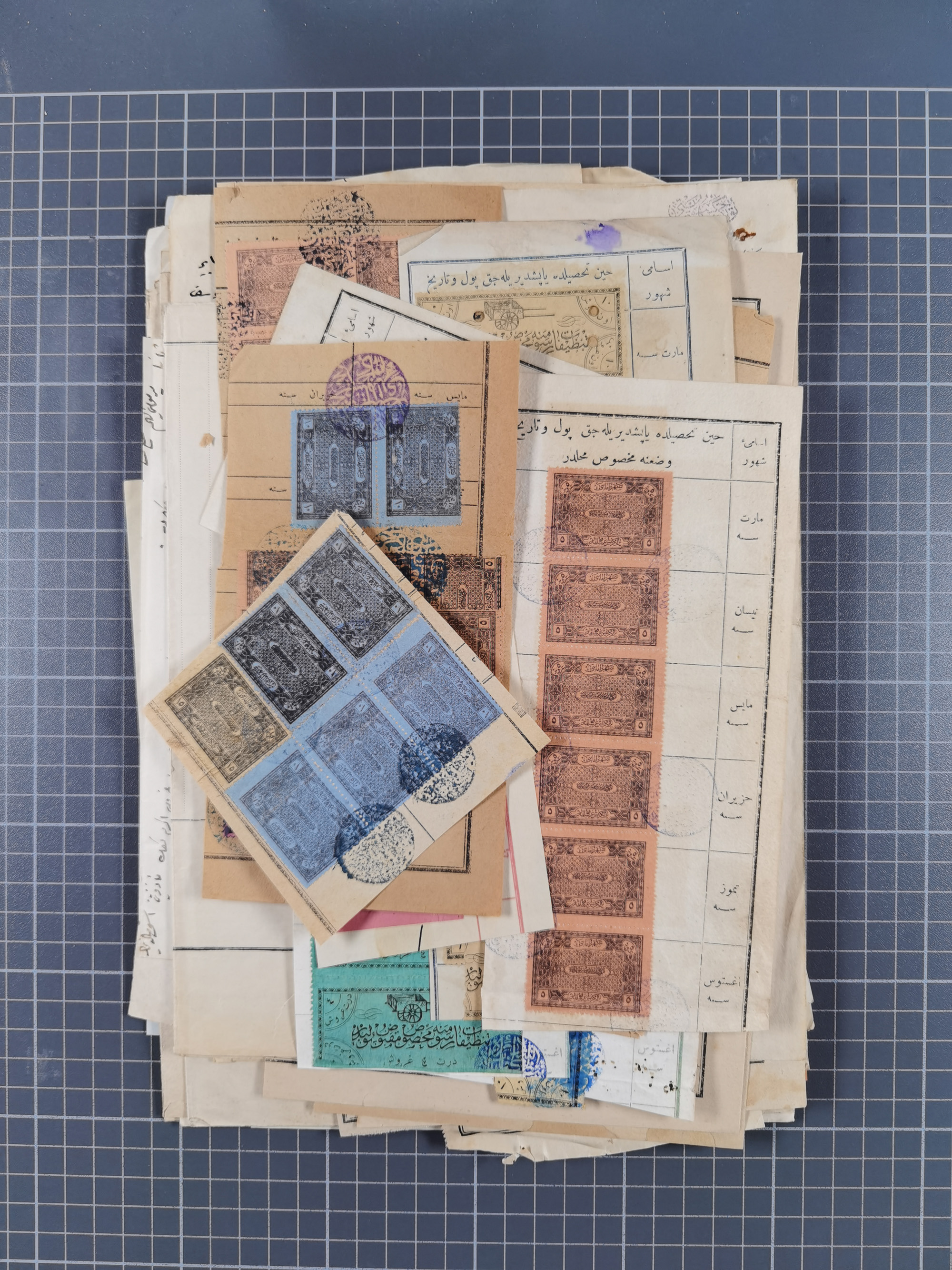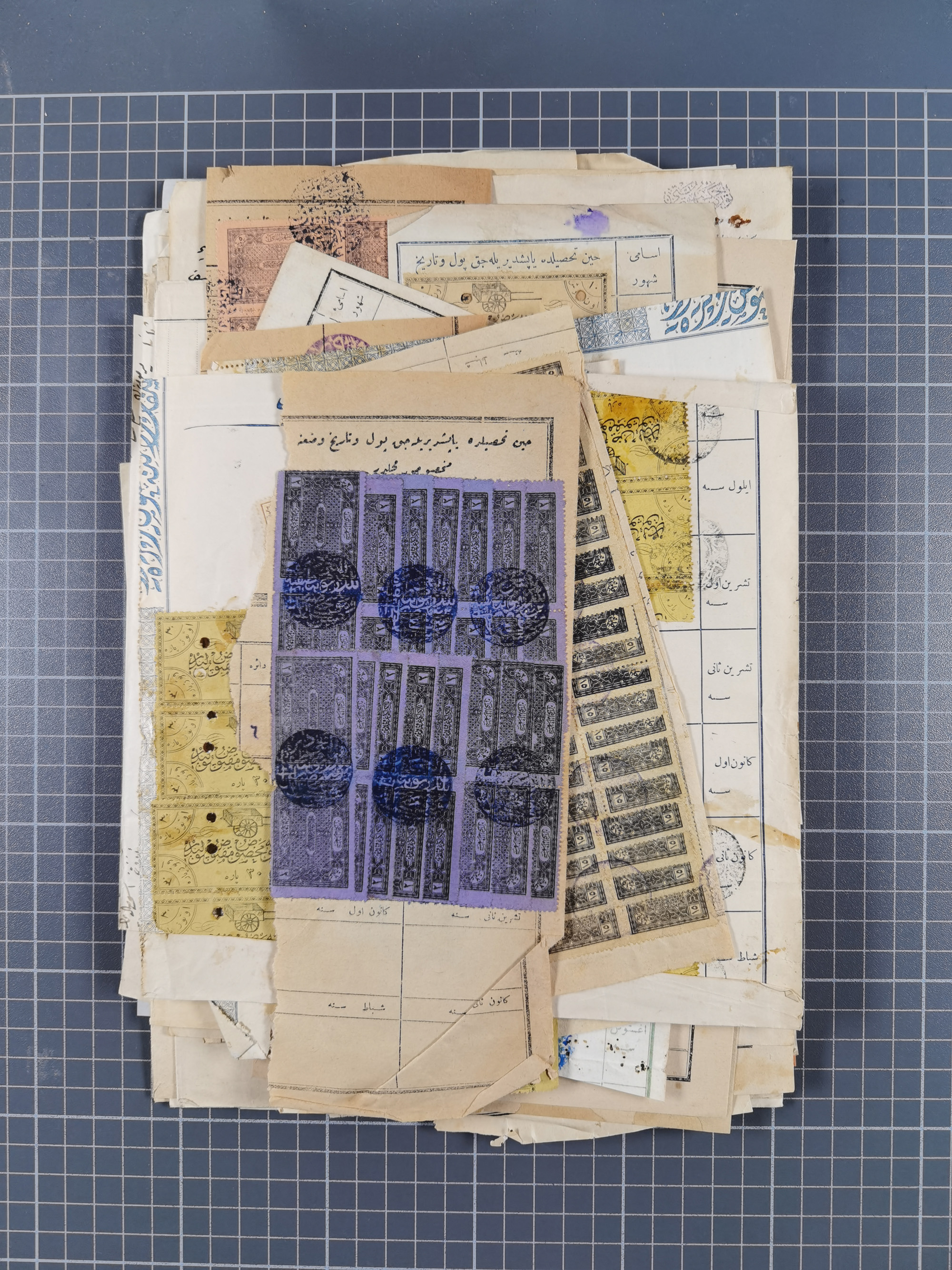 1900/30, hundreds of revenues on documents mainly cancelled with all arabic ottoman cancellations.