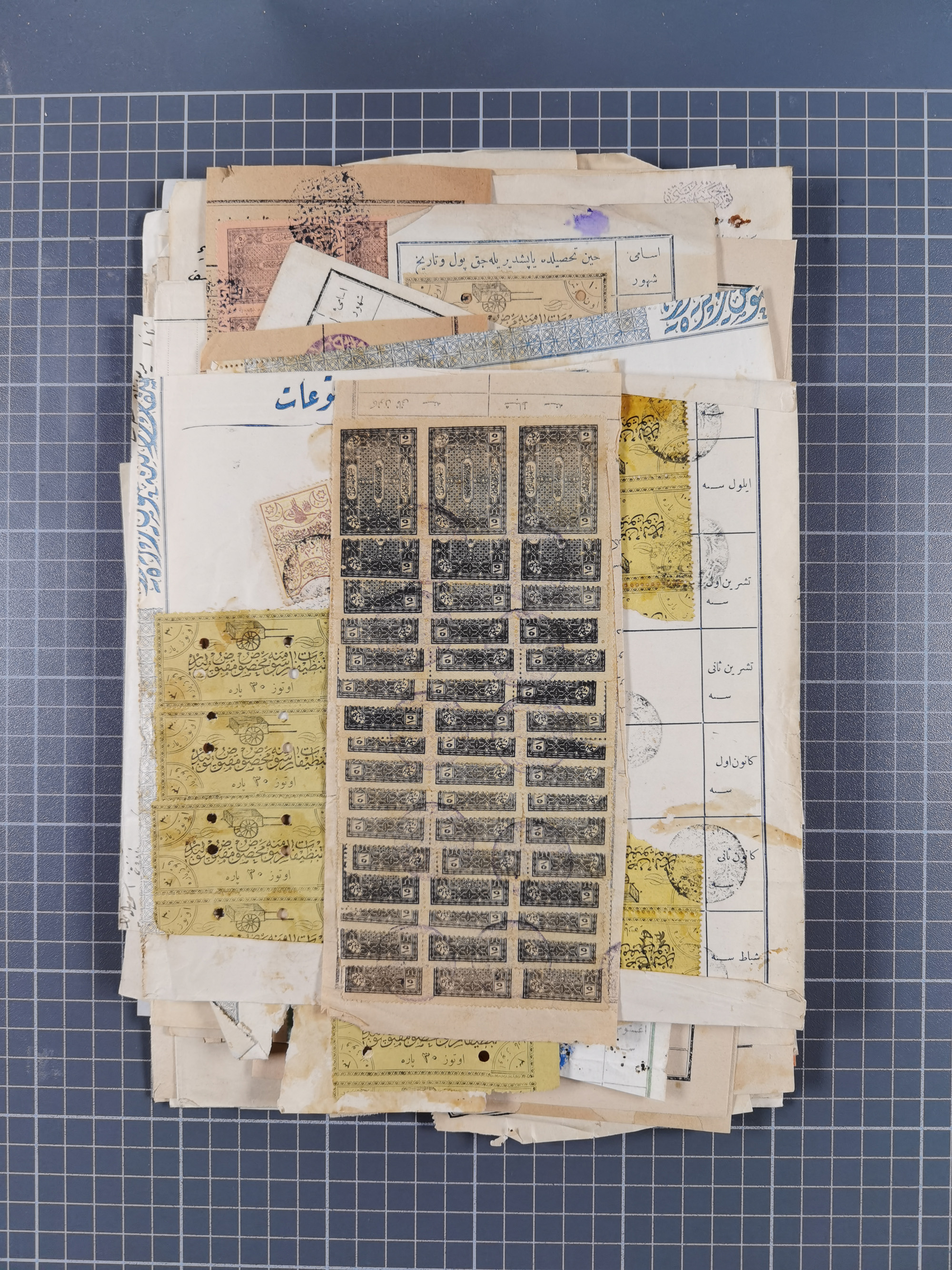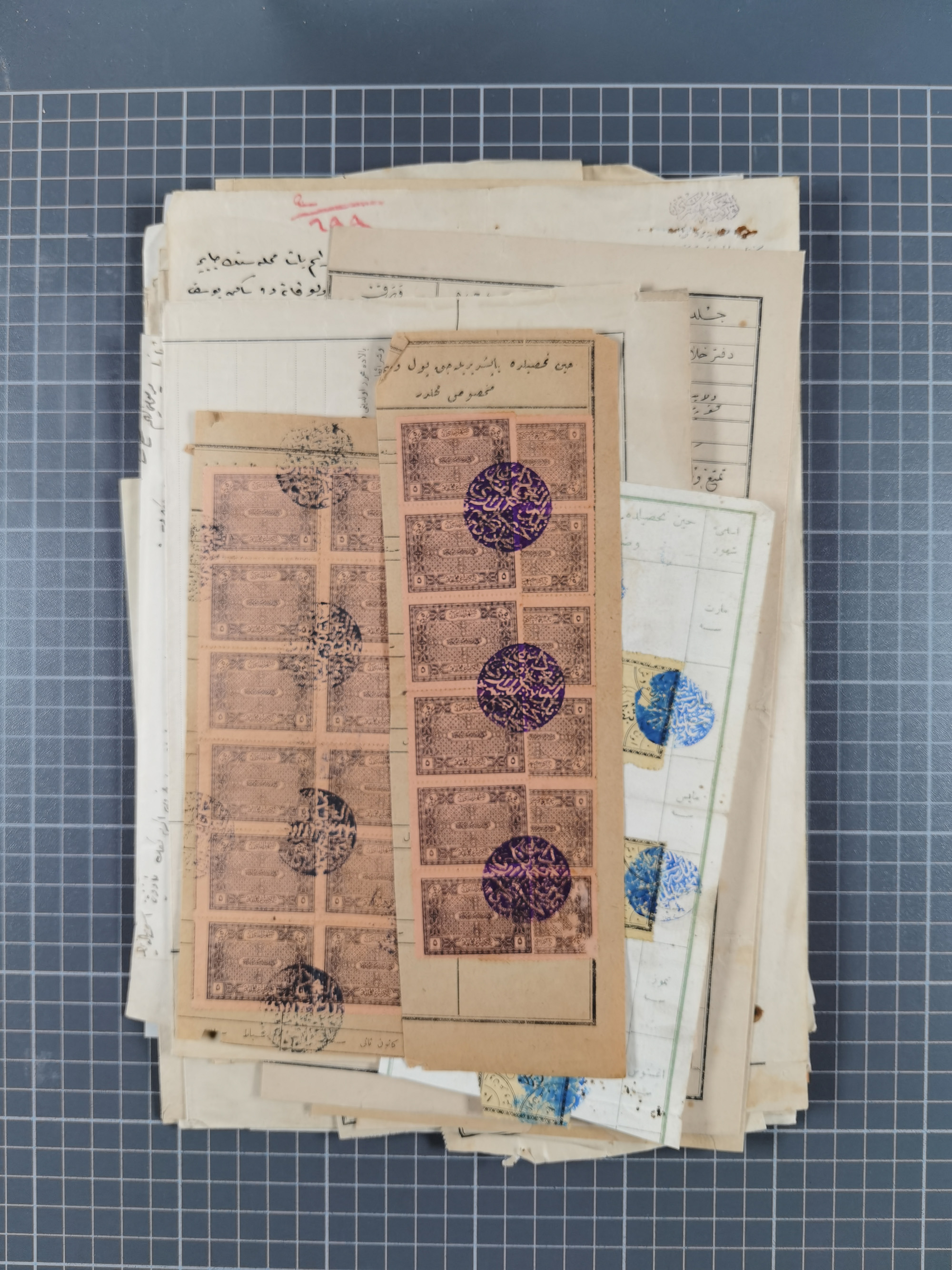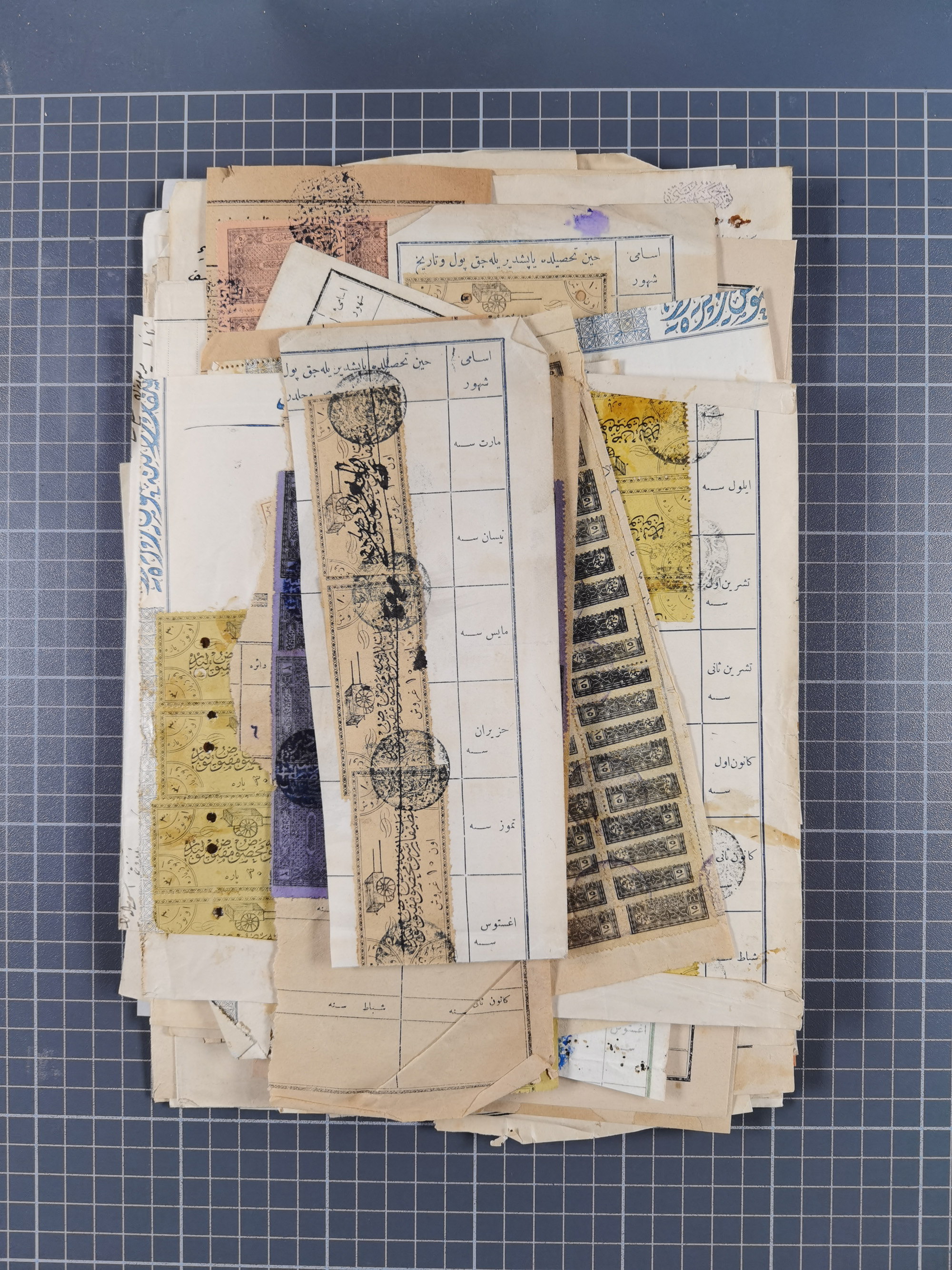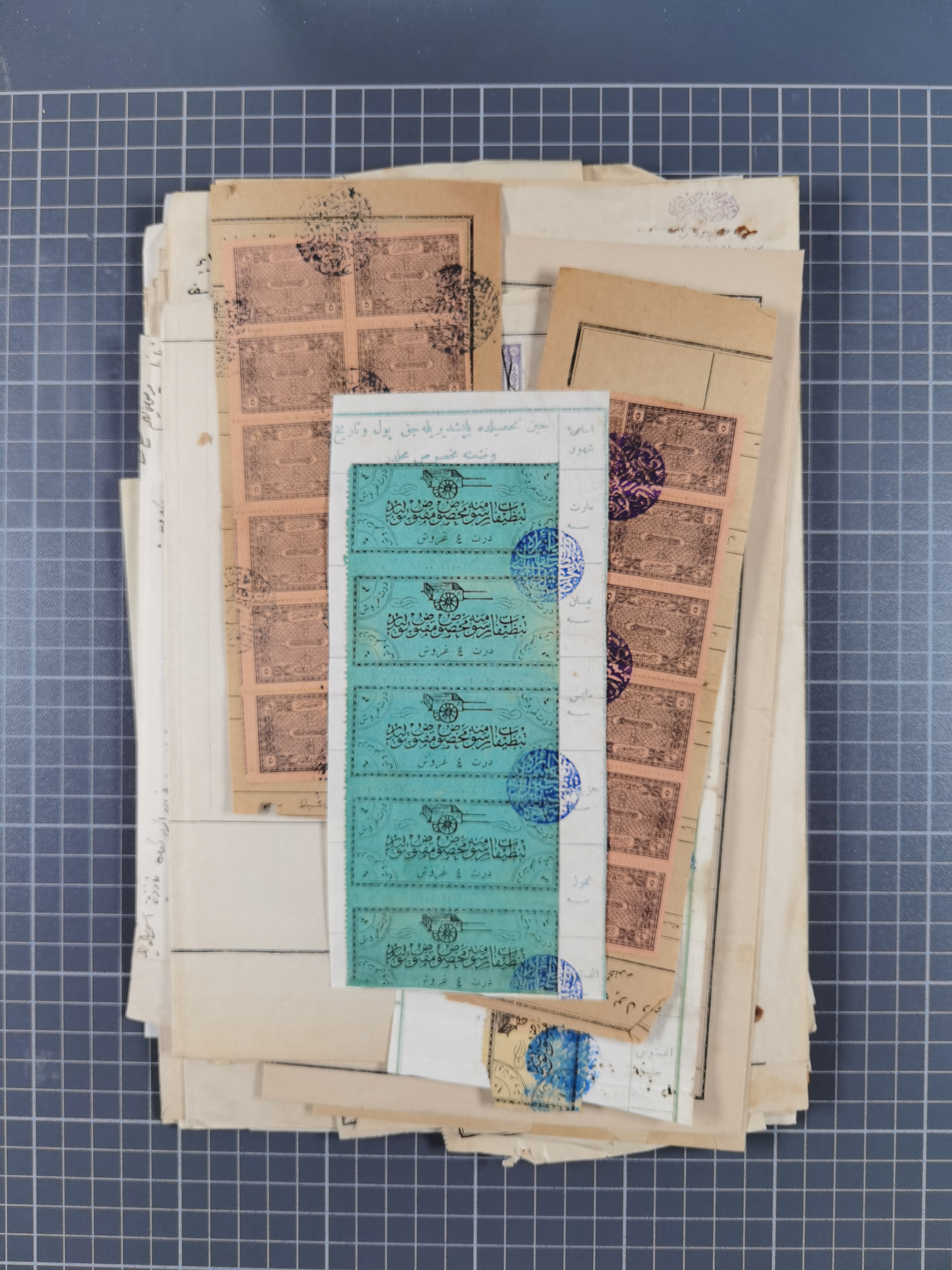 1900/30, hundreds of revenues on documents mainly cancelled with all arabic ottoman cancellations.