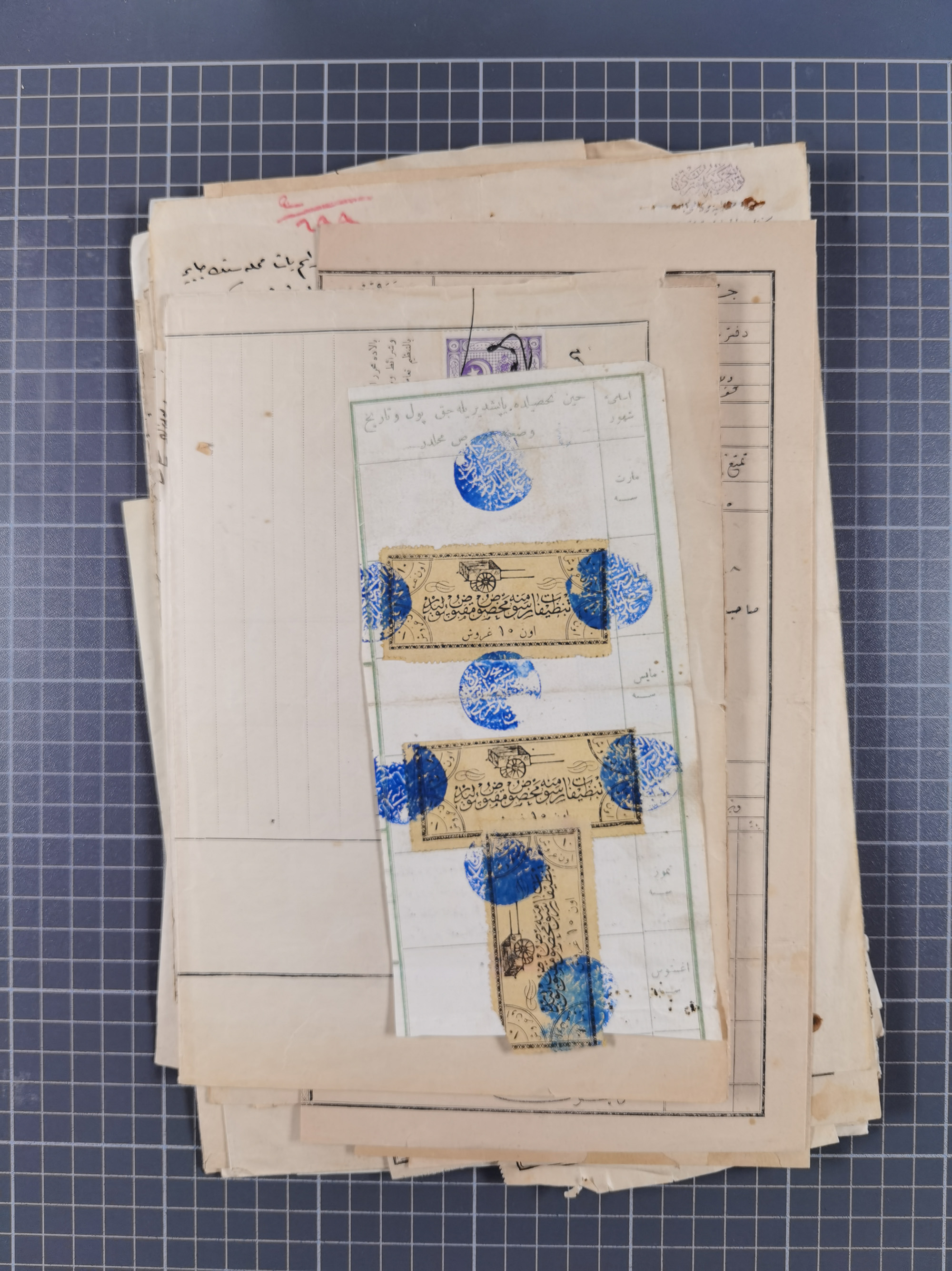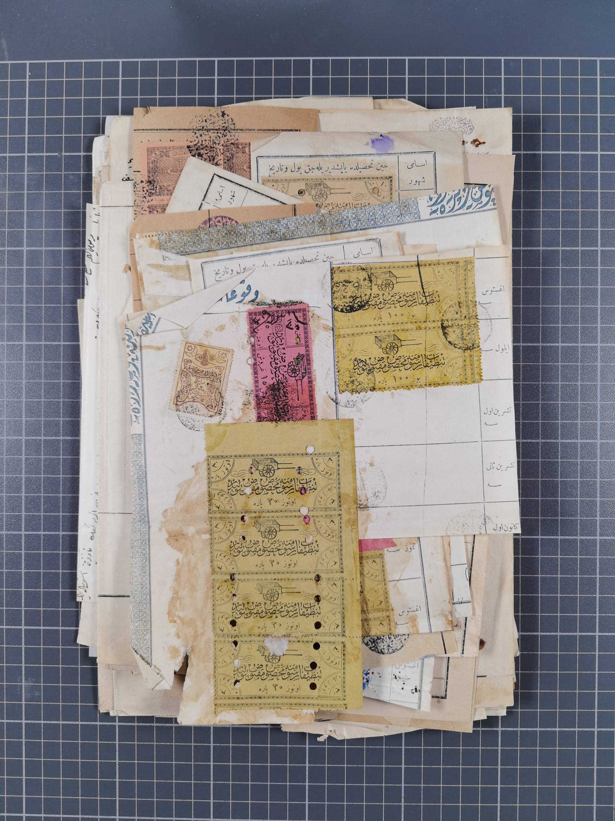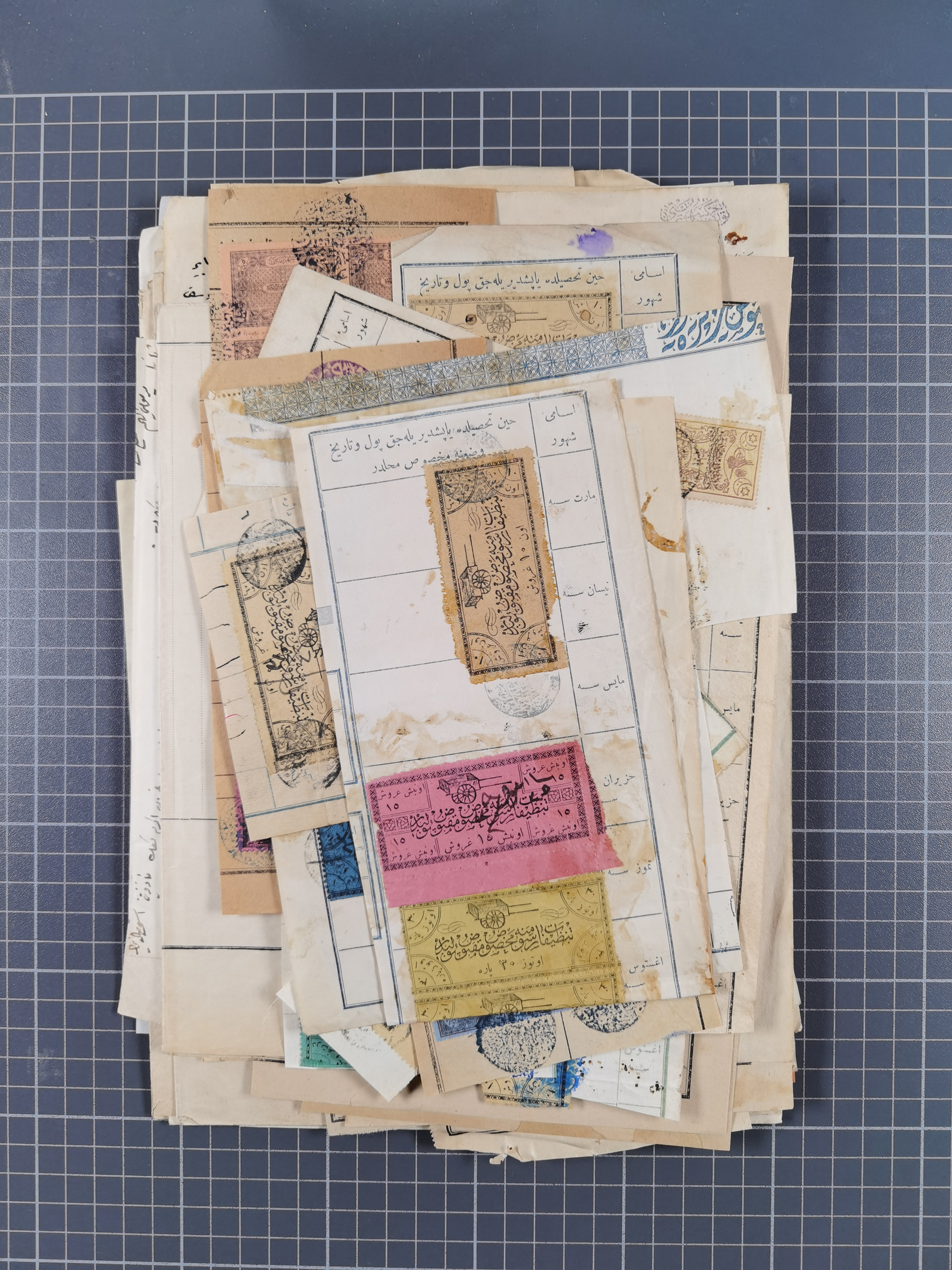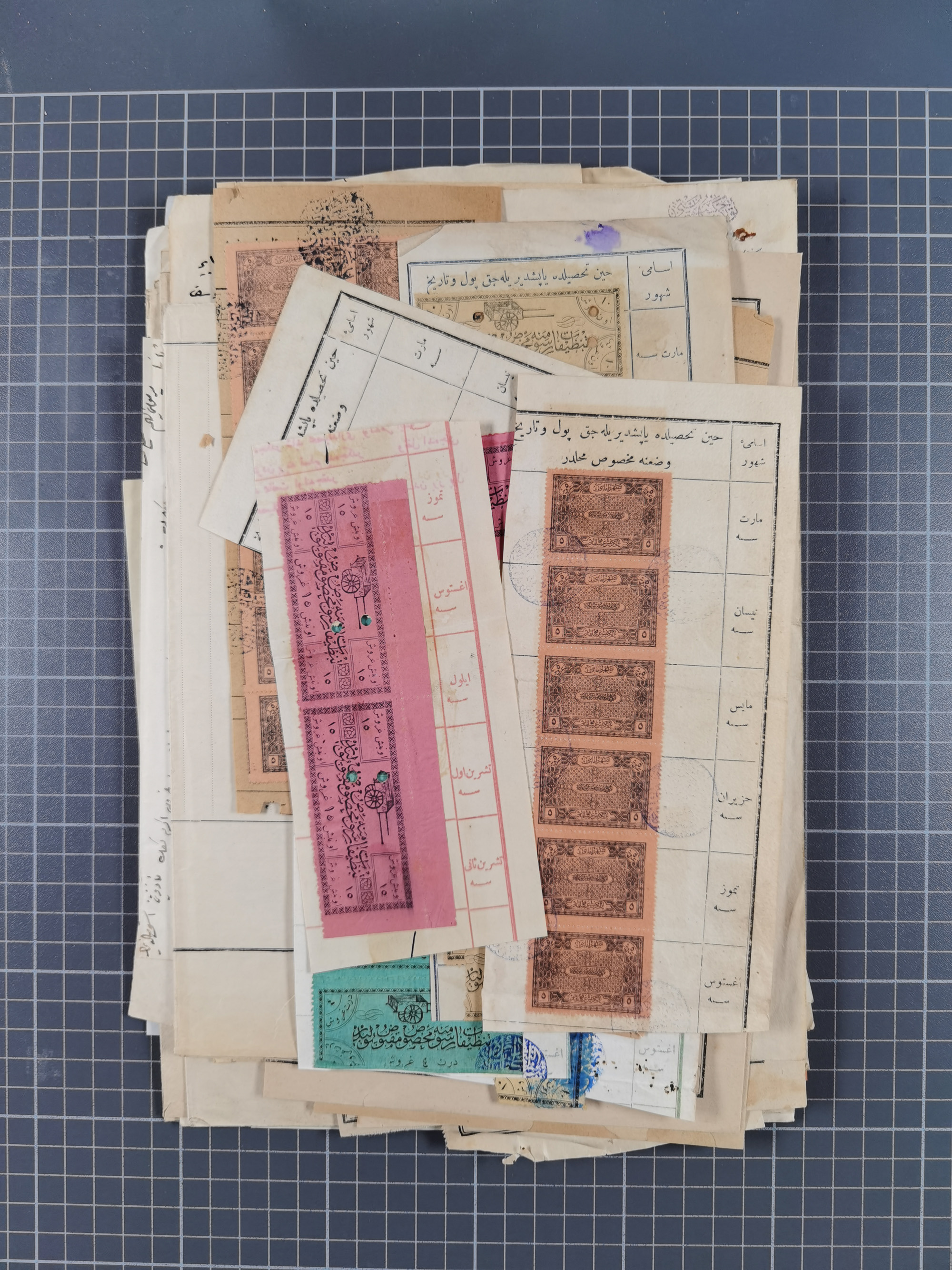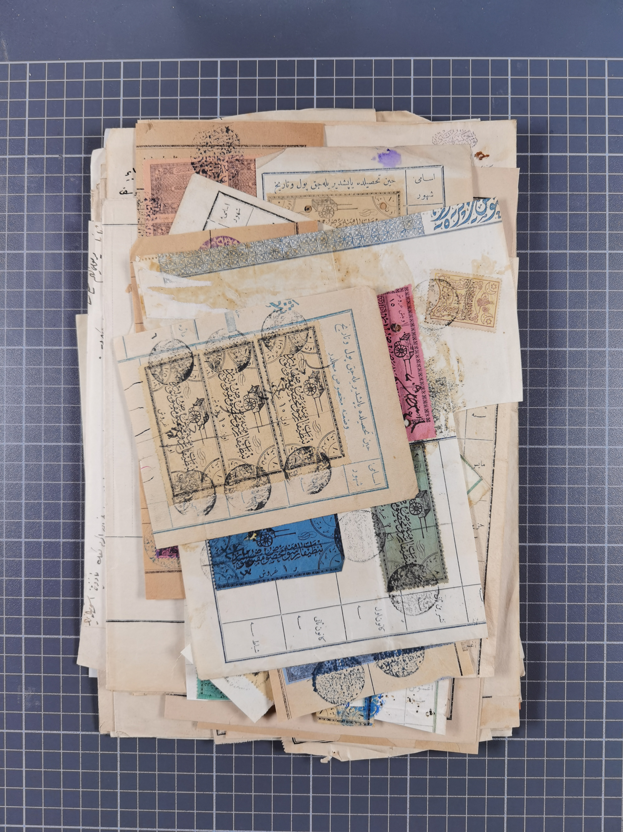 1900/30, hundreds of revenues on documents mainly cancelled with all arabic ottoman cancellations.