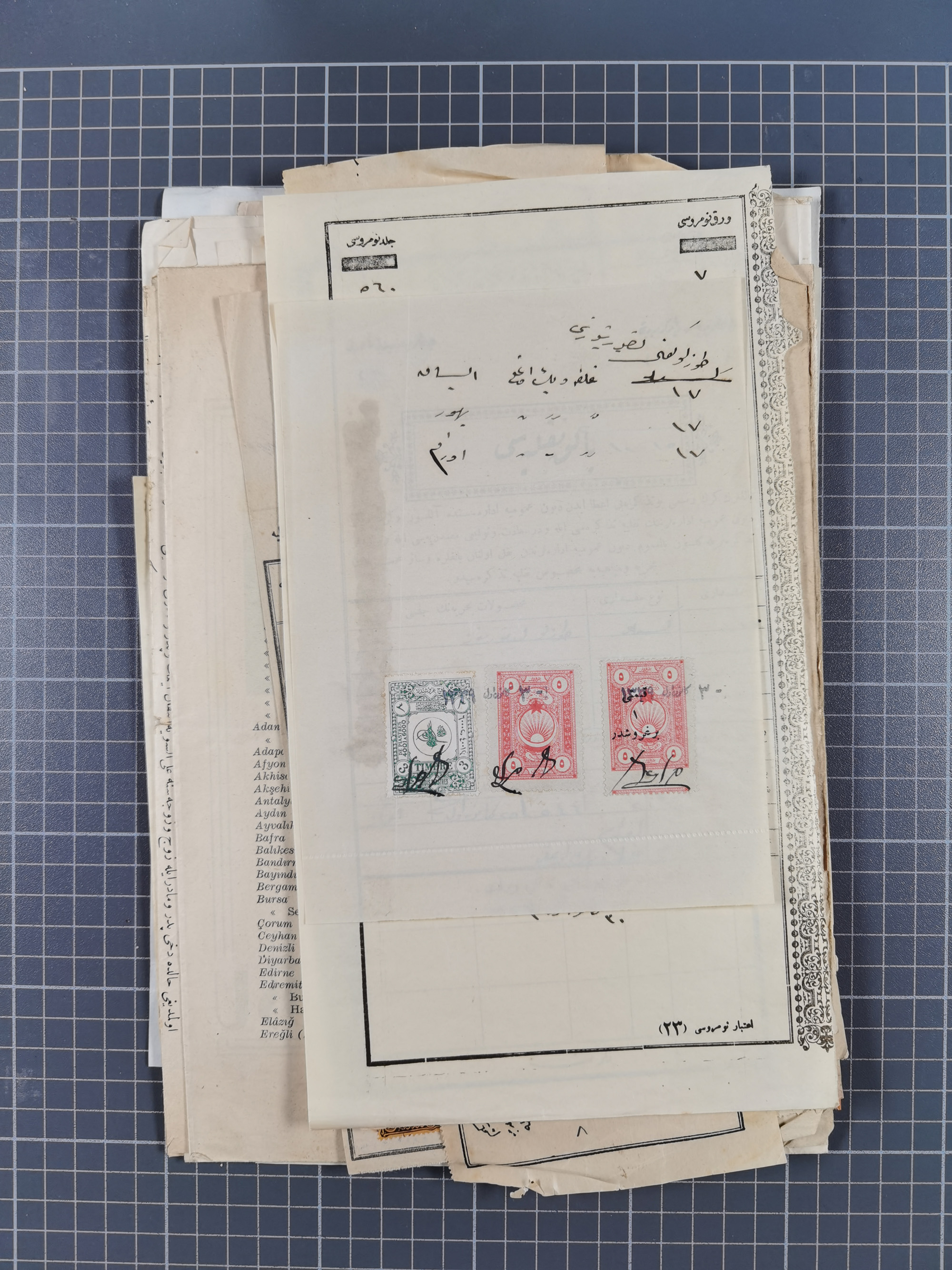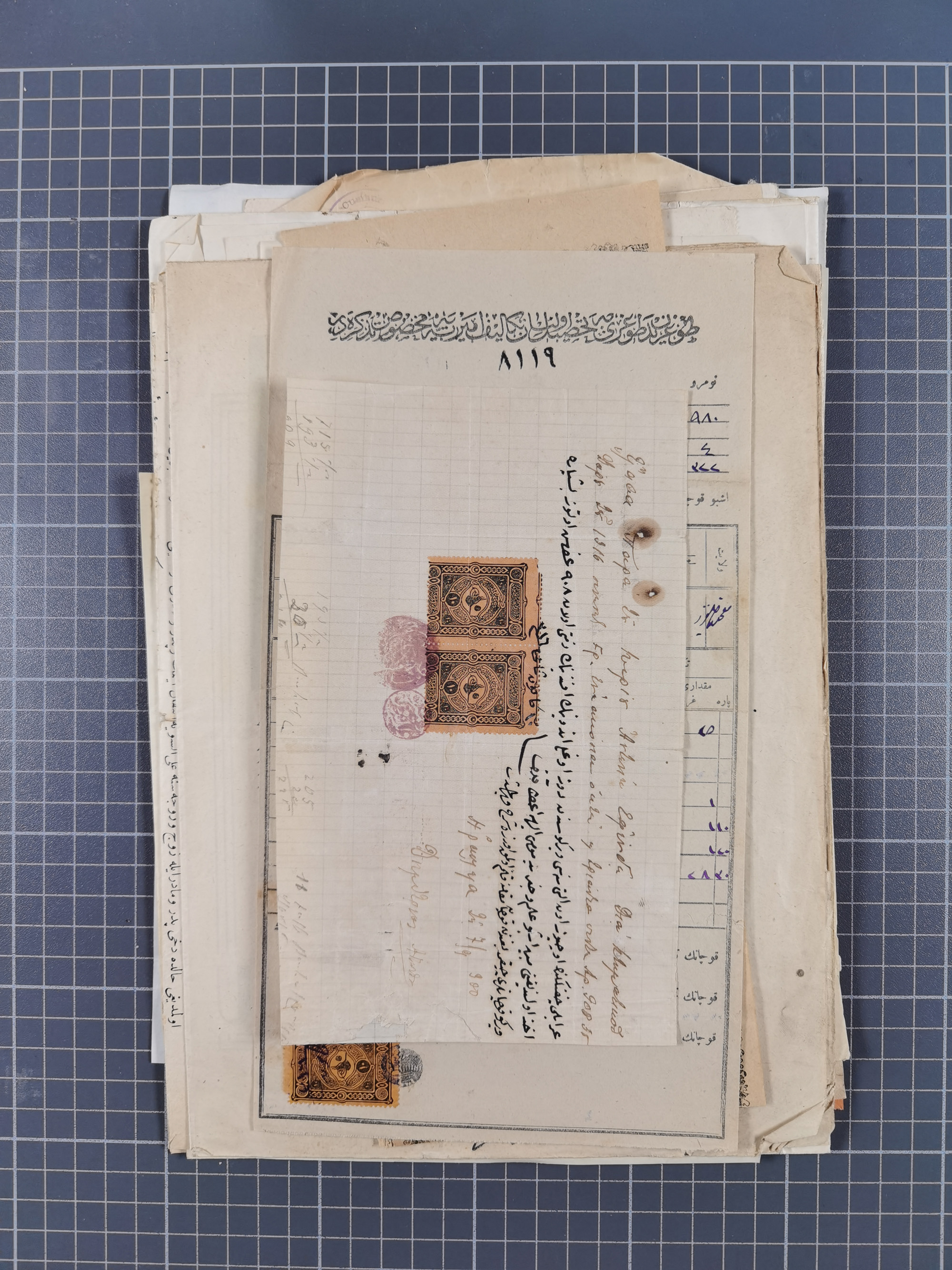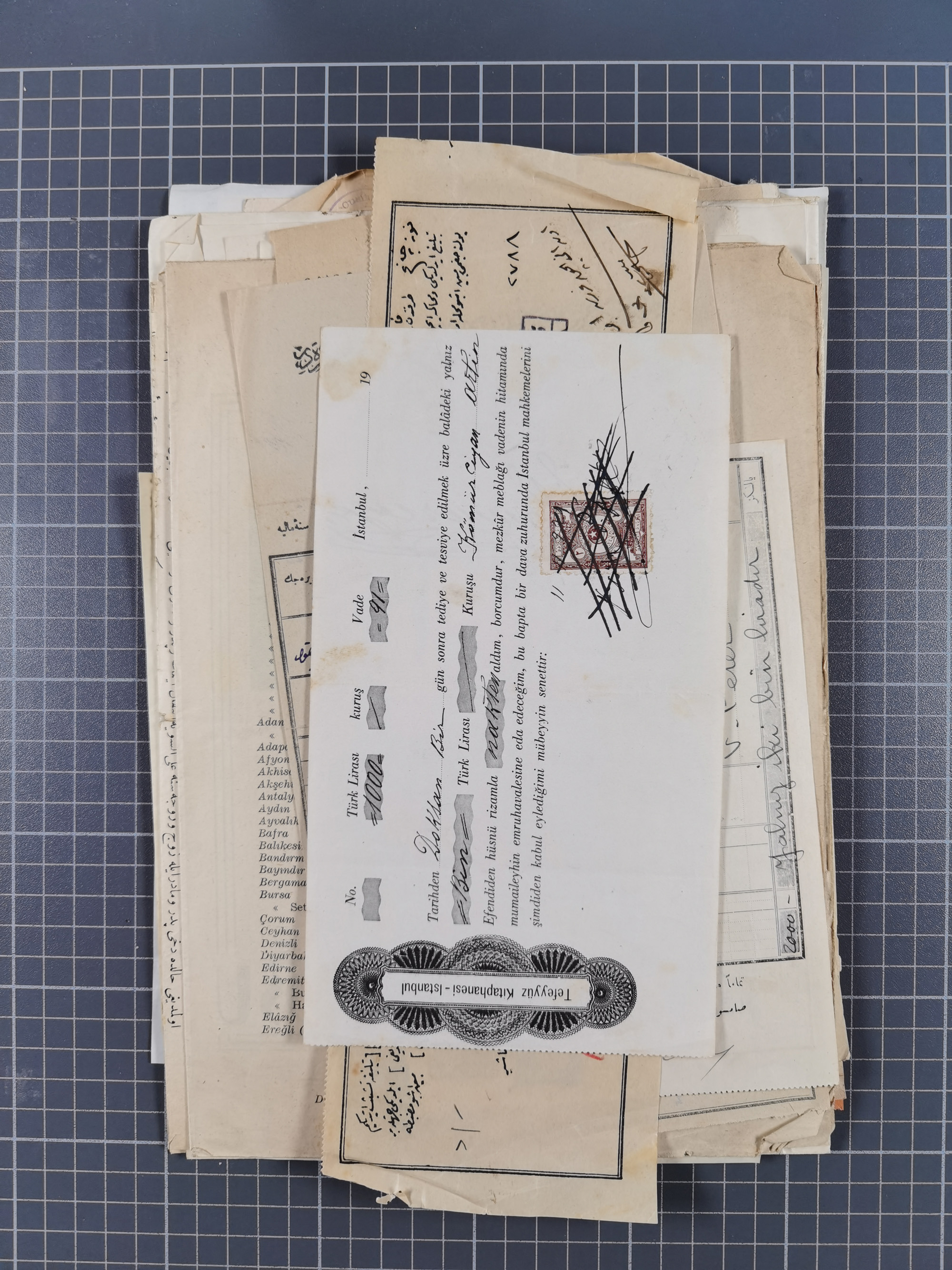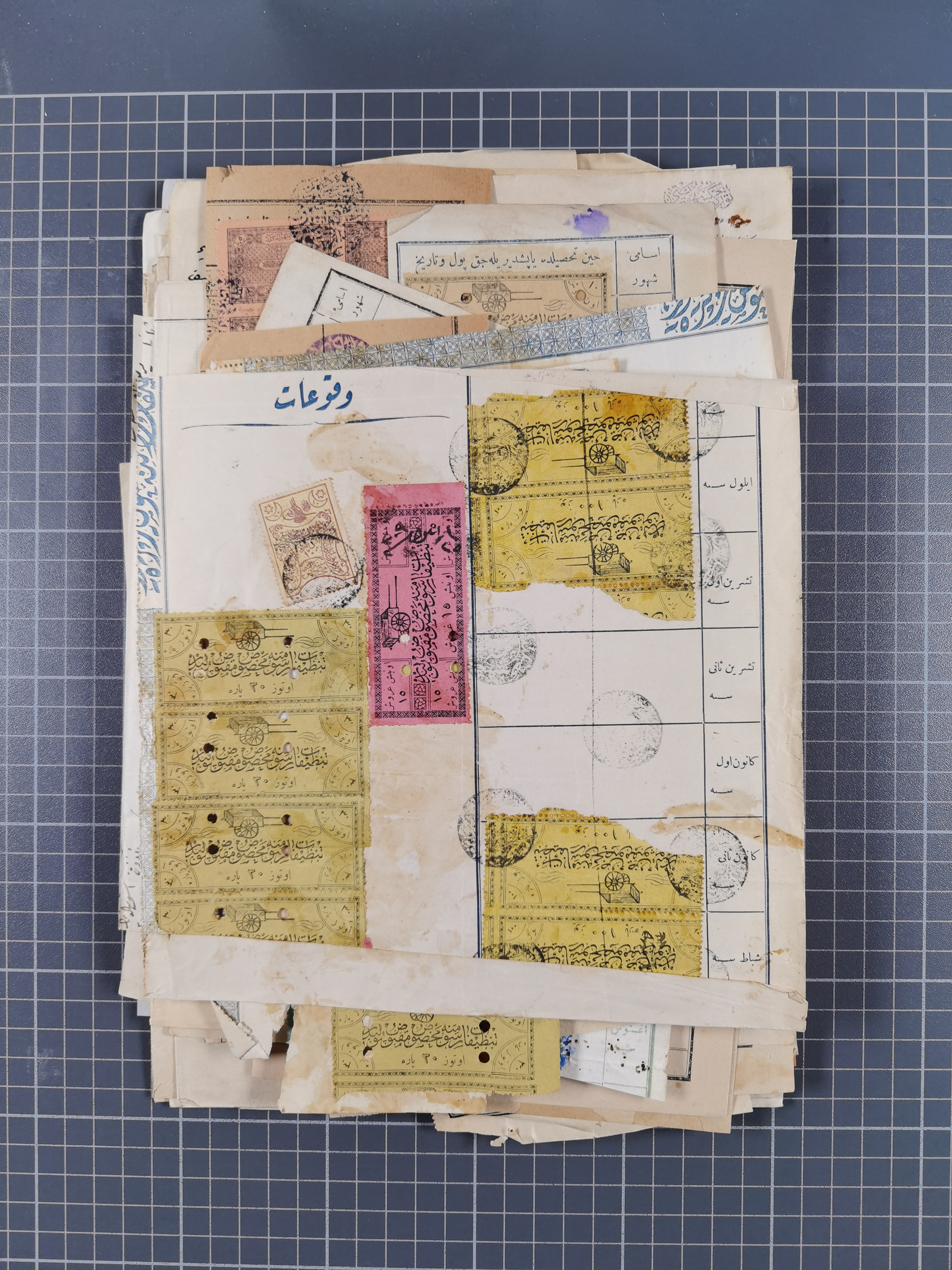 1900/30, hundreds of revenues on documents mainly cancelled with all arabic ottoman cancellations.