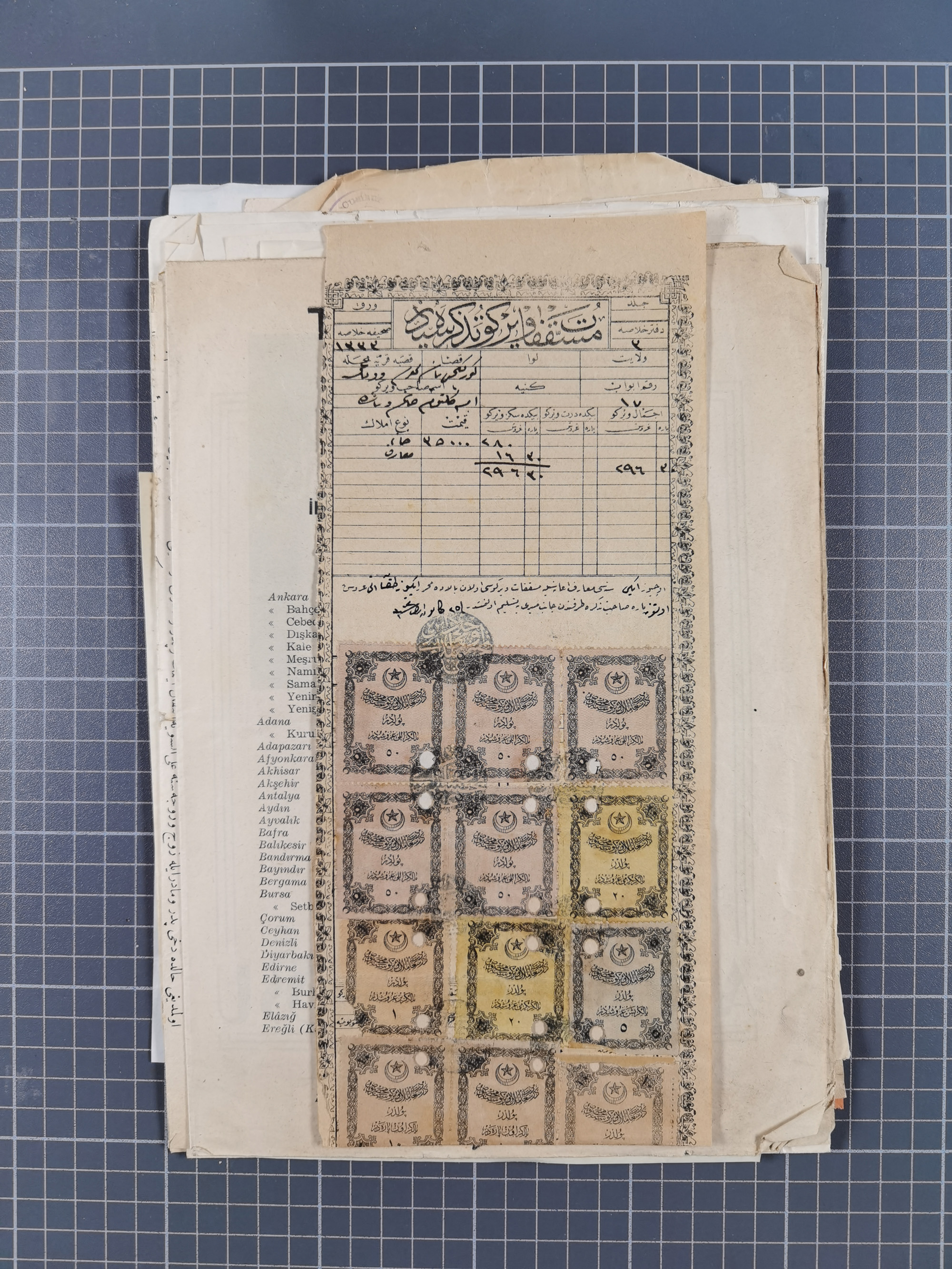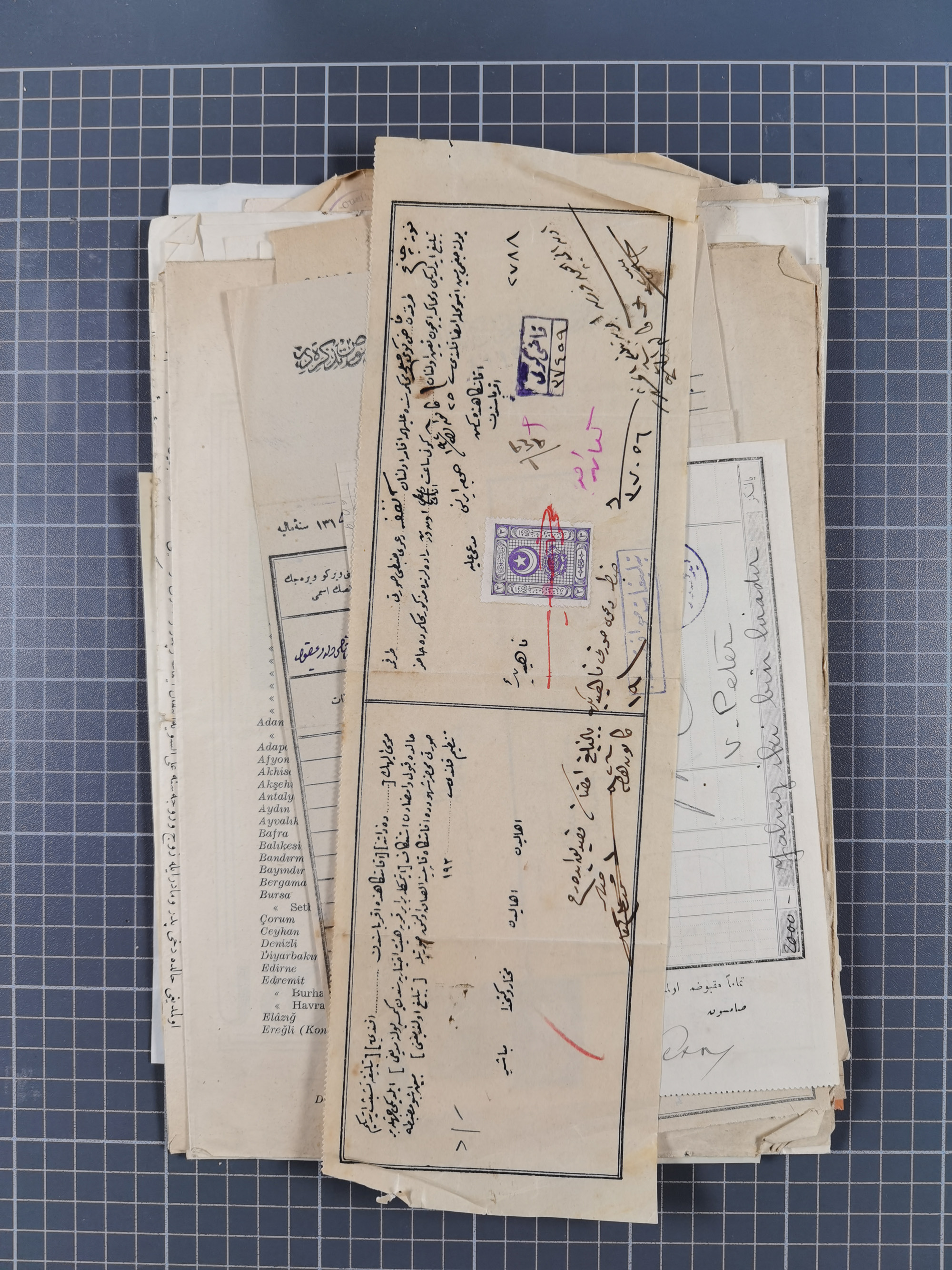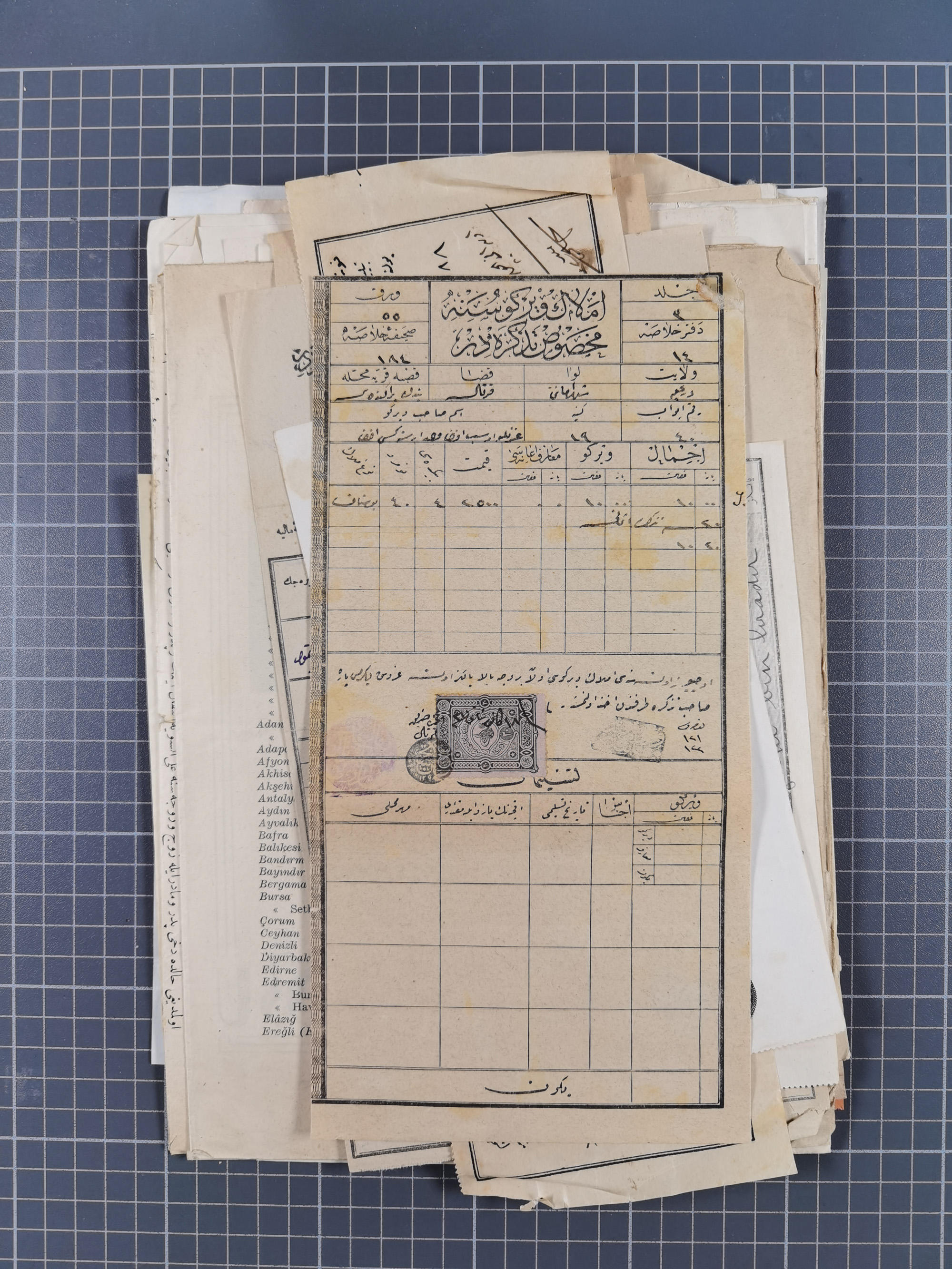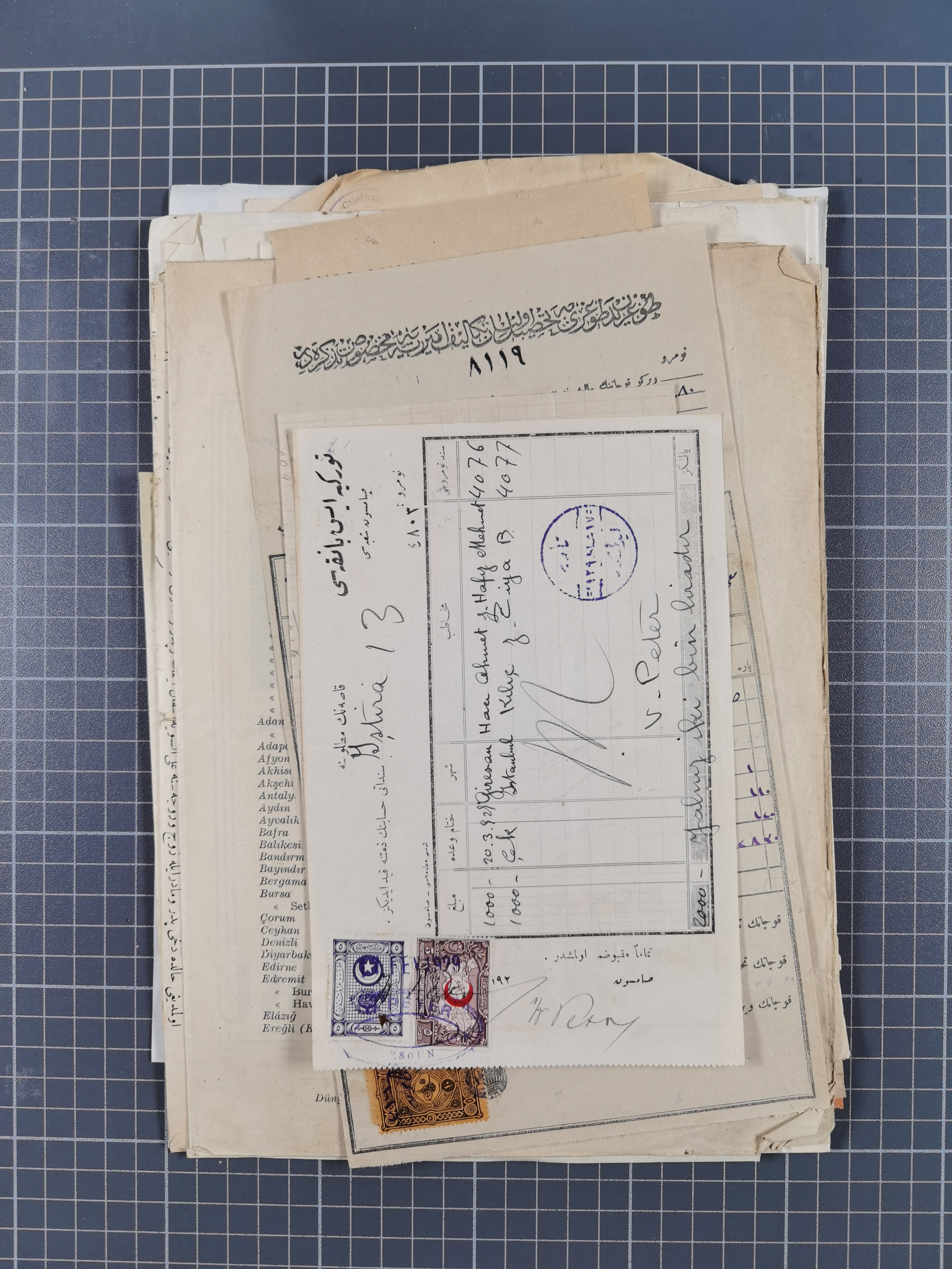 1900/30, hundreds of revenues on documents mainly cancelled with all arabic ottoman cancellations.