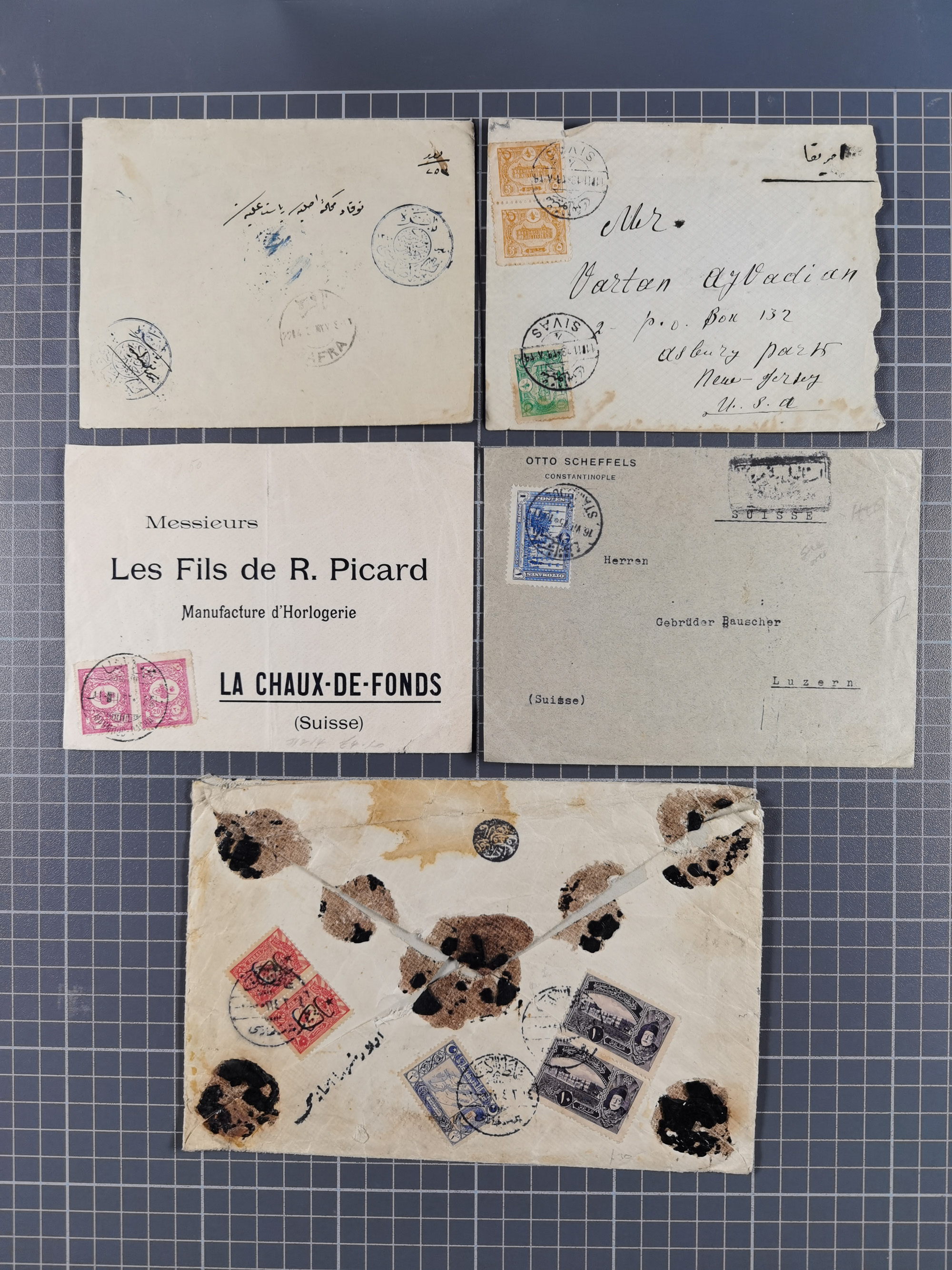 1871/1945, Armenians in Turkey: 20 covers, postcards and documents from Ottoman Empire to Republic with armenian imprints, senders and addresses, monastery document Samsun 1908, two nice postcards armenian village and Ararat, some faults and missing or added stamps, but an interesting collection for collectors with an interest in history.