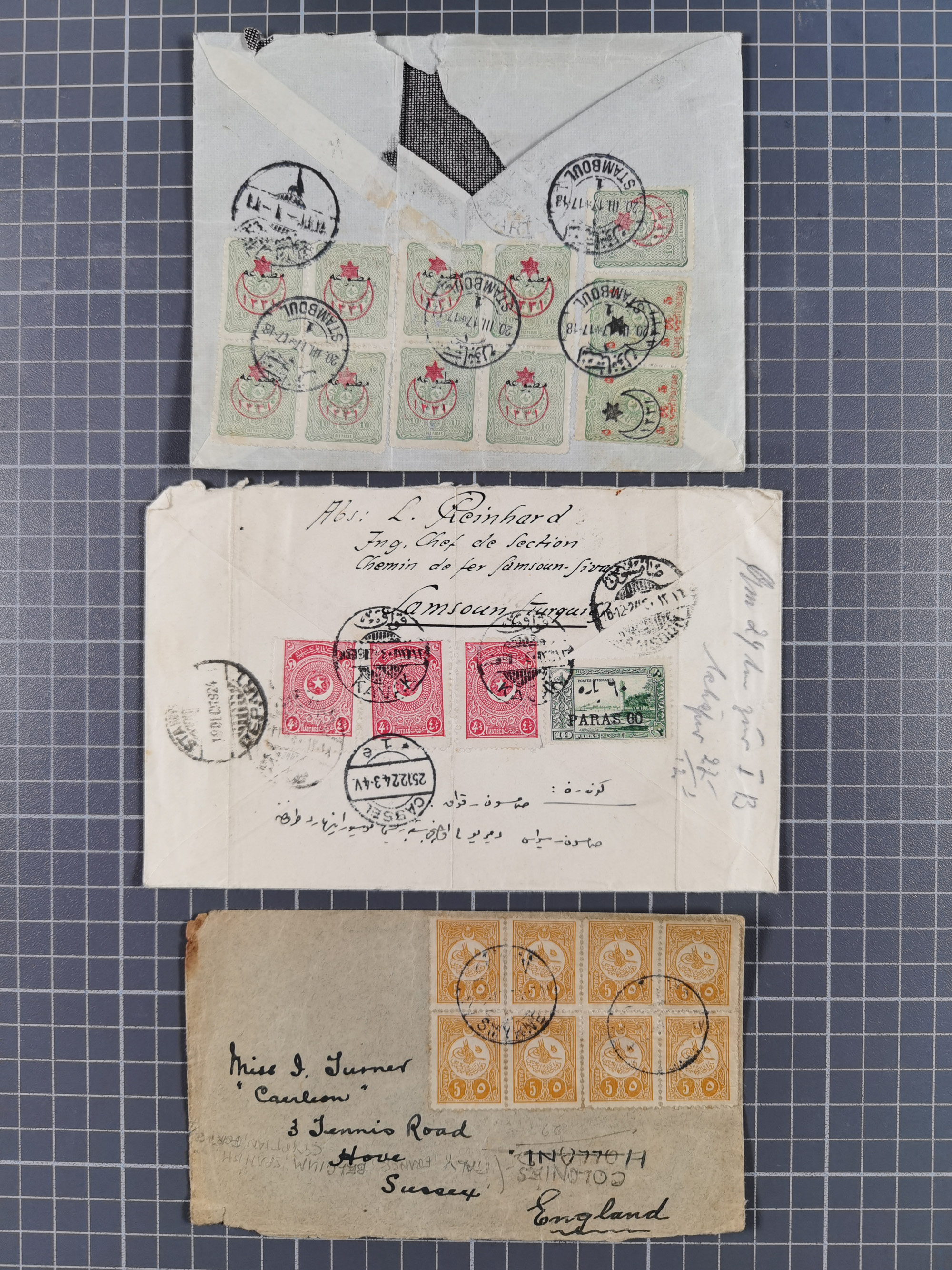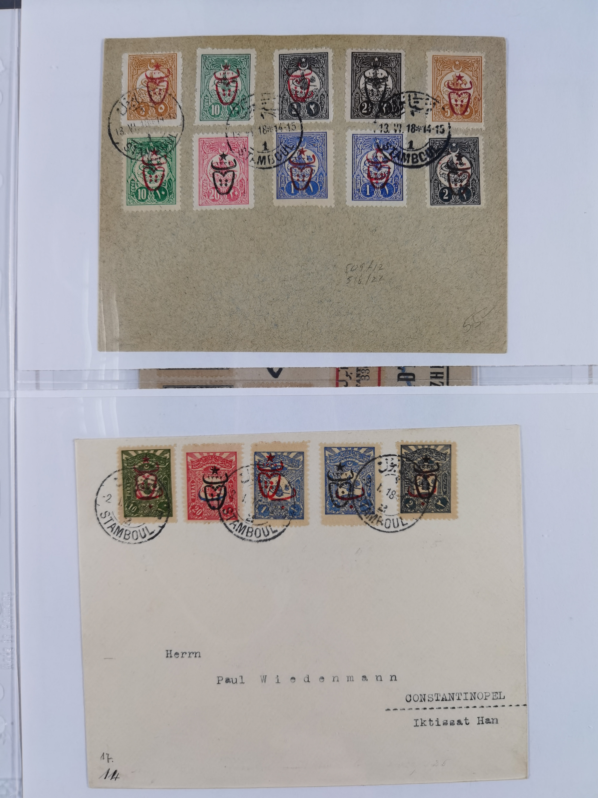 1900/17 (ca.), small accumulation on covers and (official) paper sheets, incl. Tur-u sina, Armistice, Abolution of Capitulation, unissued mount Sinai values, etc.