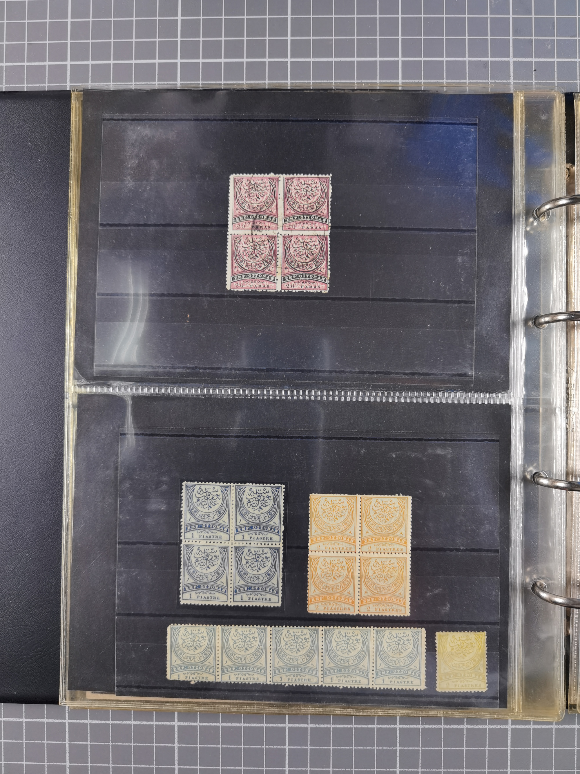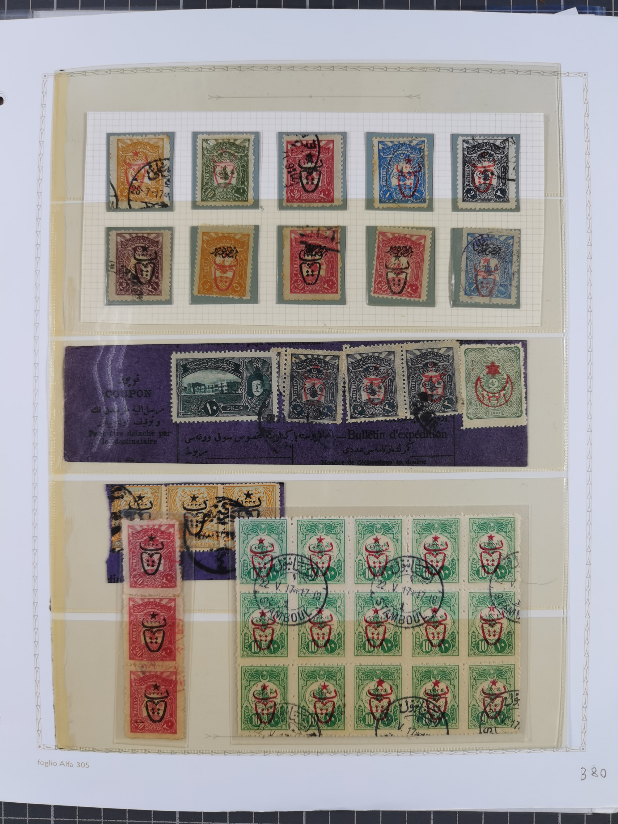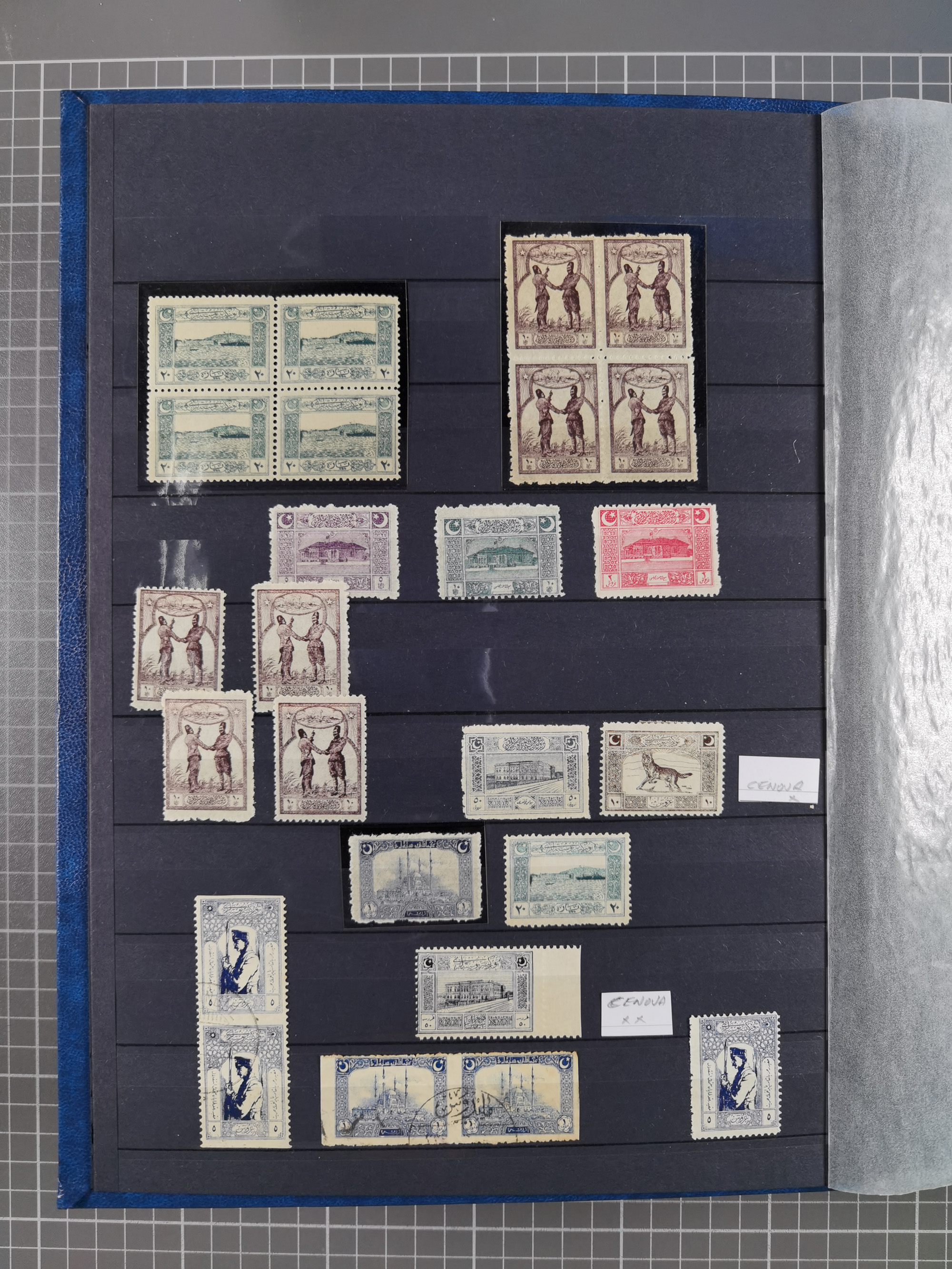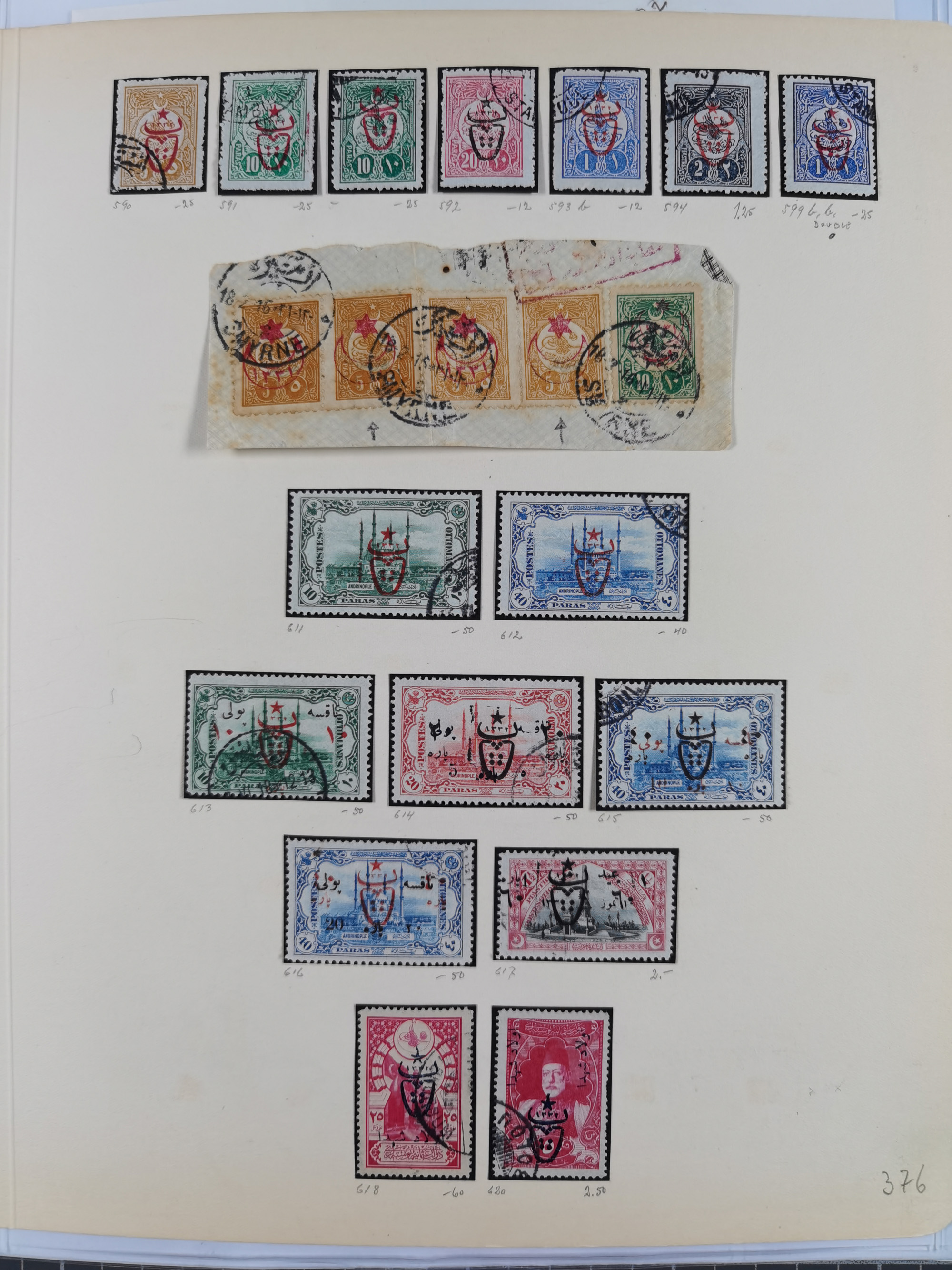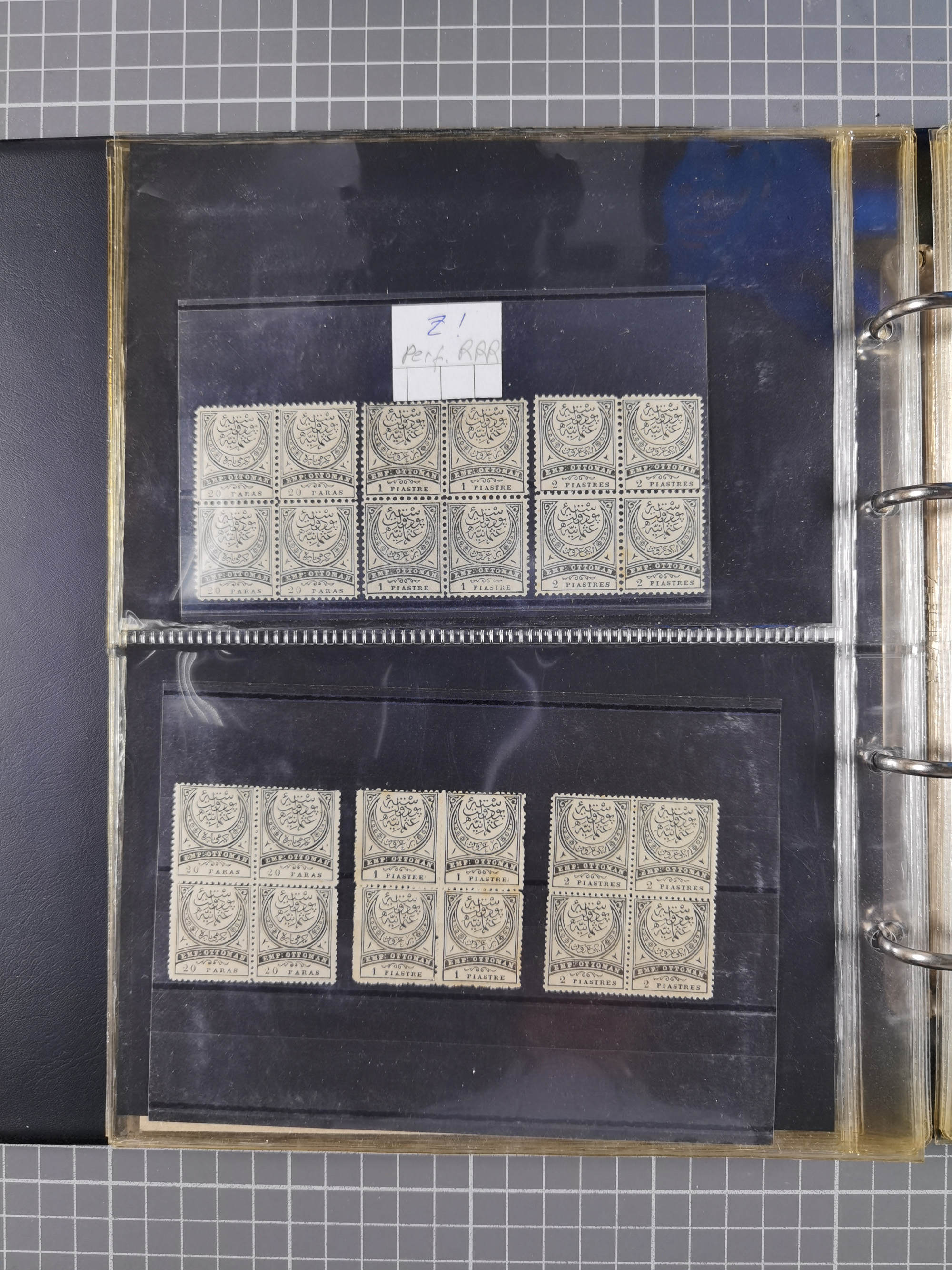1865/1980 (ca.), Collection of mostly excellent copies of the “Duloz” issues with nice and clear cancellations in a very lovingly designed album, 1 pia. yellow 1871 corner margin block of 15, ‘Arabkir’ on 1875 block of nine, ship cancels ‘Vapur’ and numeral railway marks, 1, 2, 3 and 6 of Smyrna Aidin railway. Lost territories with clear cancellations of Irak, Bulgaria, Greece with islands, Lebanon & Palestine, Albania and Yugoslawia, nice pieces and multiples, neatly in two albums, plus 22 Duloz envelopes. Coles & Walker handbooks Part 1, 2 and 4.