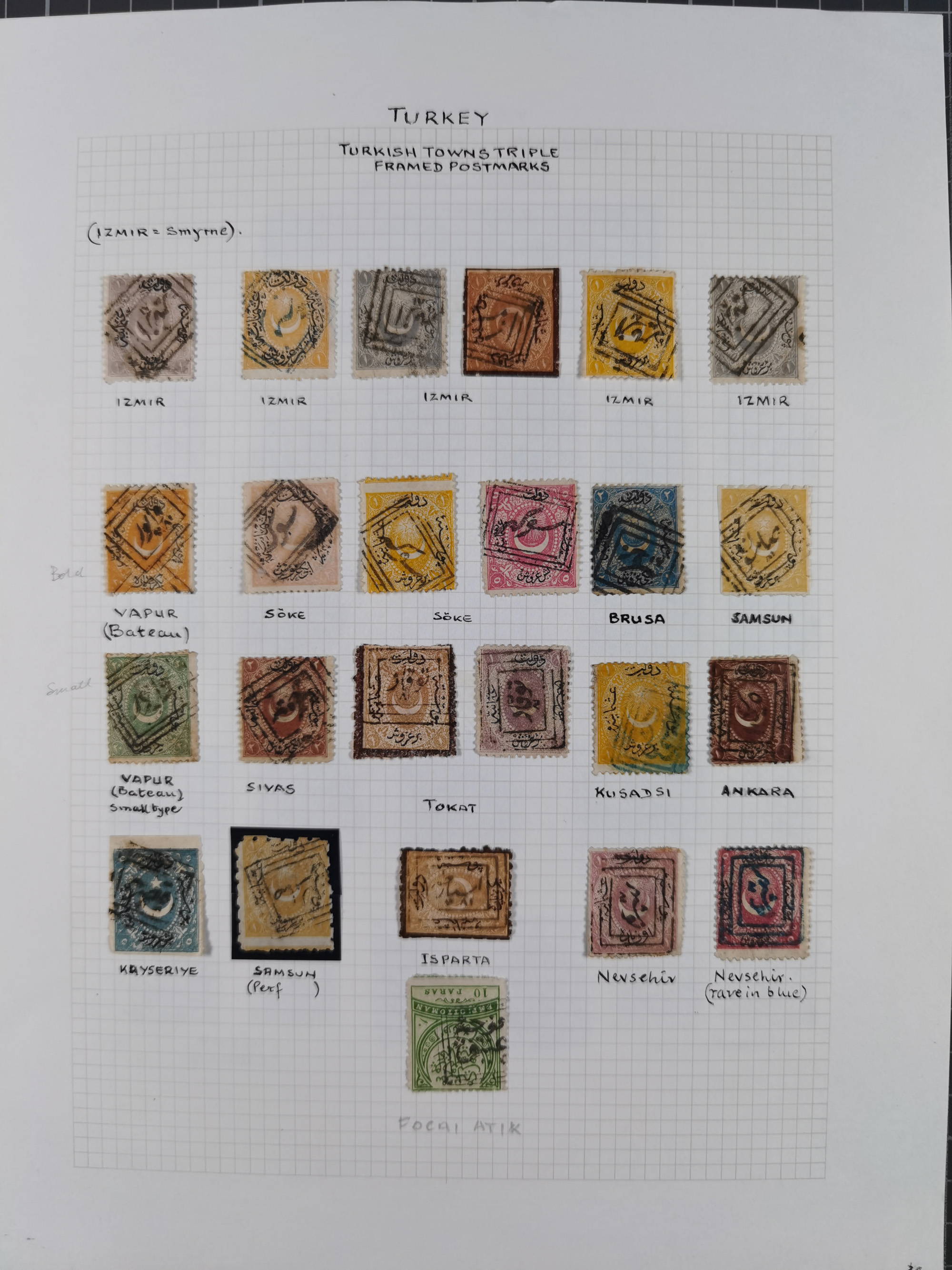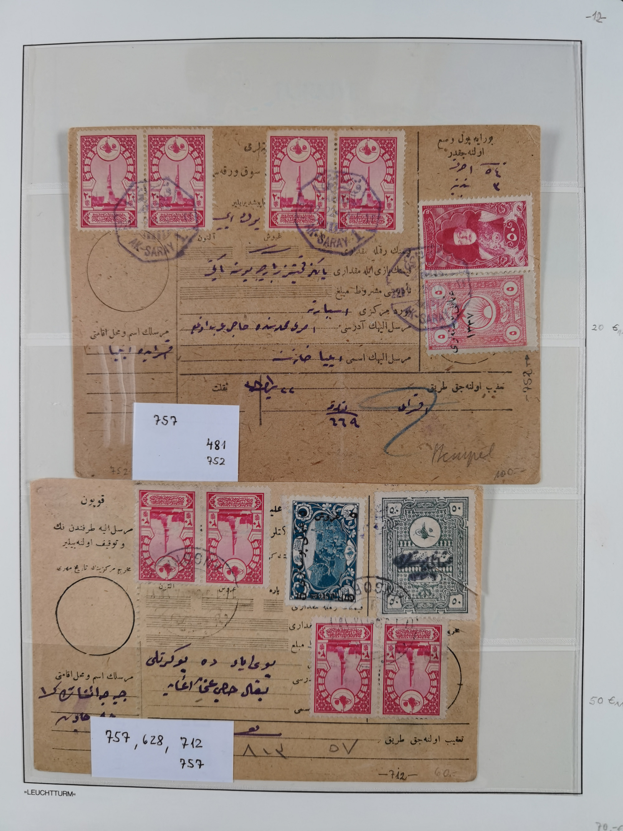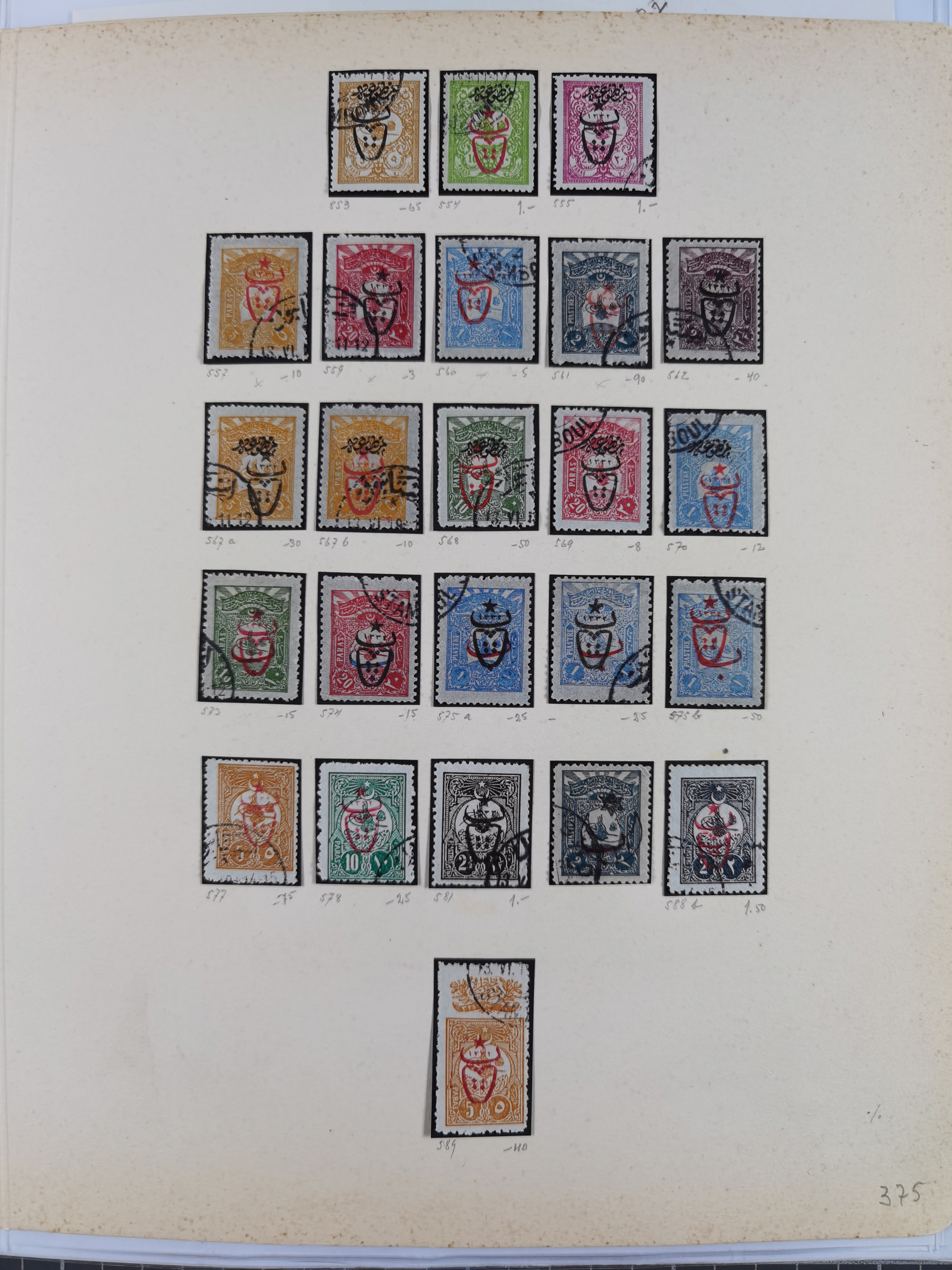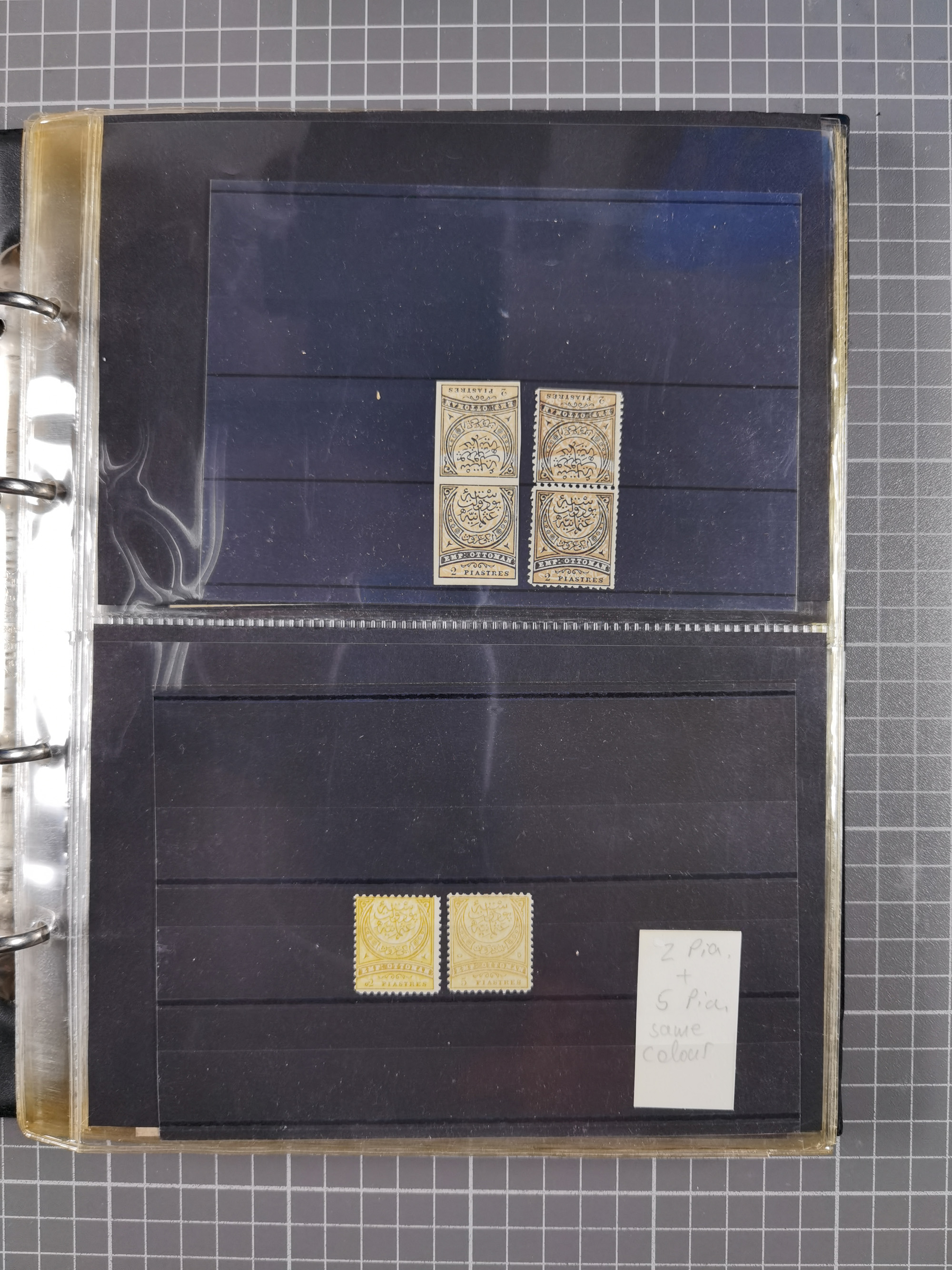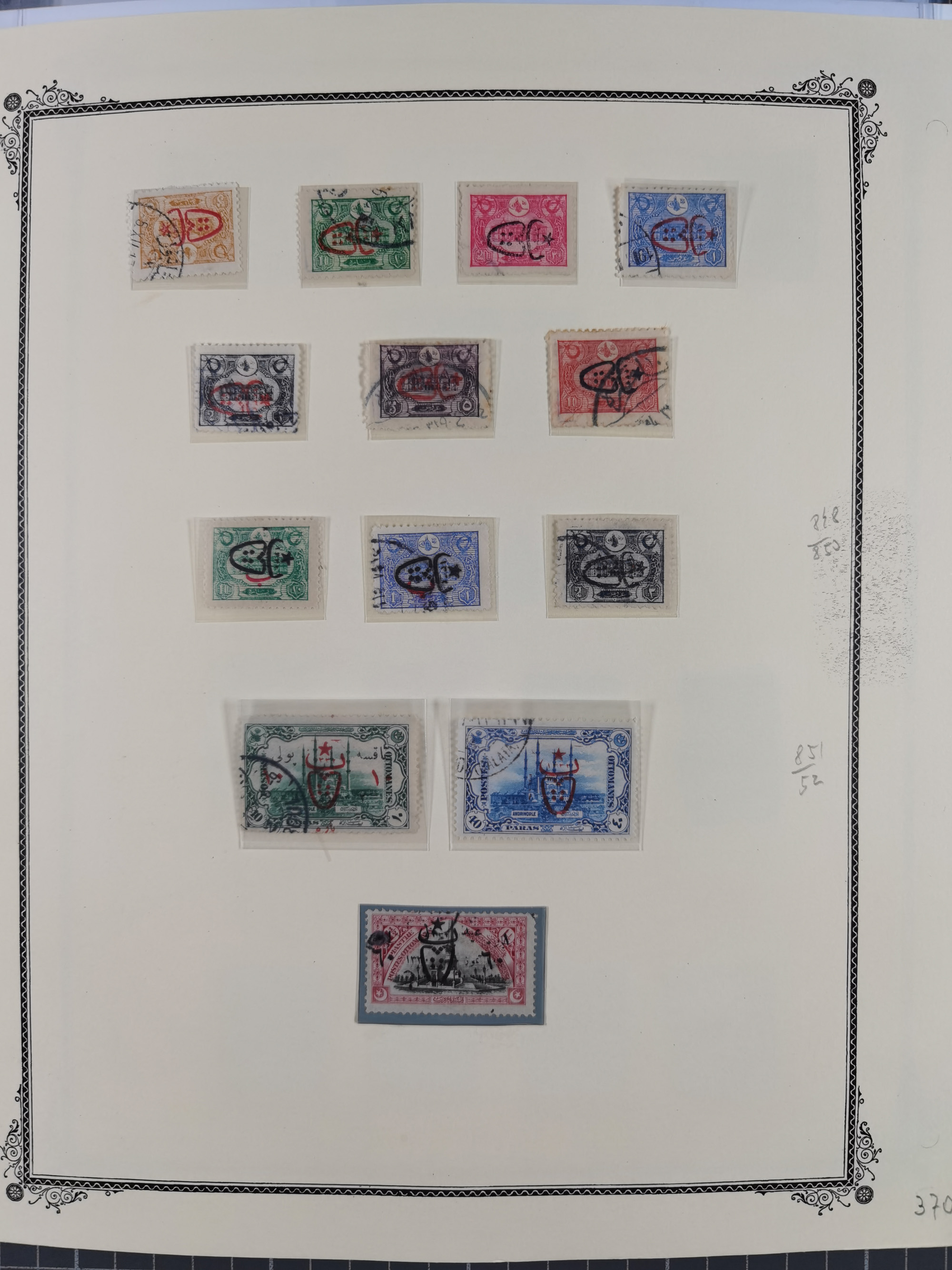 1865/1980 (ca.), Collection of mostly excellent copies of the “Duloz” issues with nice and clear cancellations in a very lovingly designed album, 1 pia. yellow 1871 corner margin block of 15, ‘Arabkir’ on 1875 block of nine, ship cancels ‘Vapur’ and numeral railway marks, 1, 2, 3 and 6 of Smyrna Aidin railway. Lost territories with clear cancellations of Irak, Bulgaria, Greece with islands, Lebanon & Palestine, Albania and Yugoslawia, nice pieces and multiples, neatly in two albums, plus 22 Duloz envelopes. Coles & Walker handbooks Part 1, 2 and 4.
