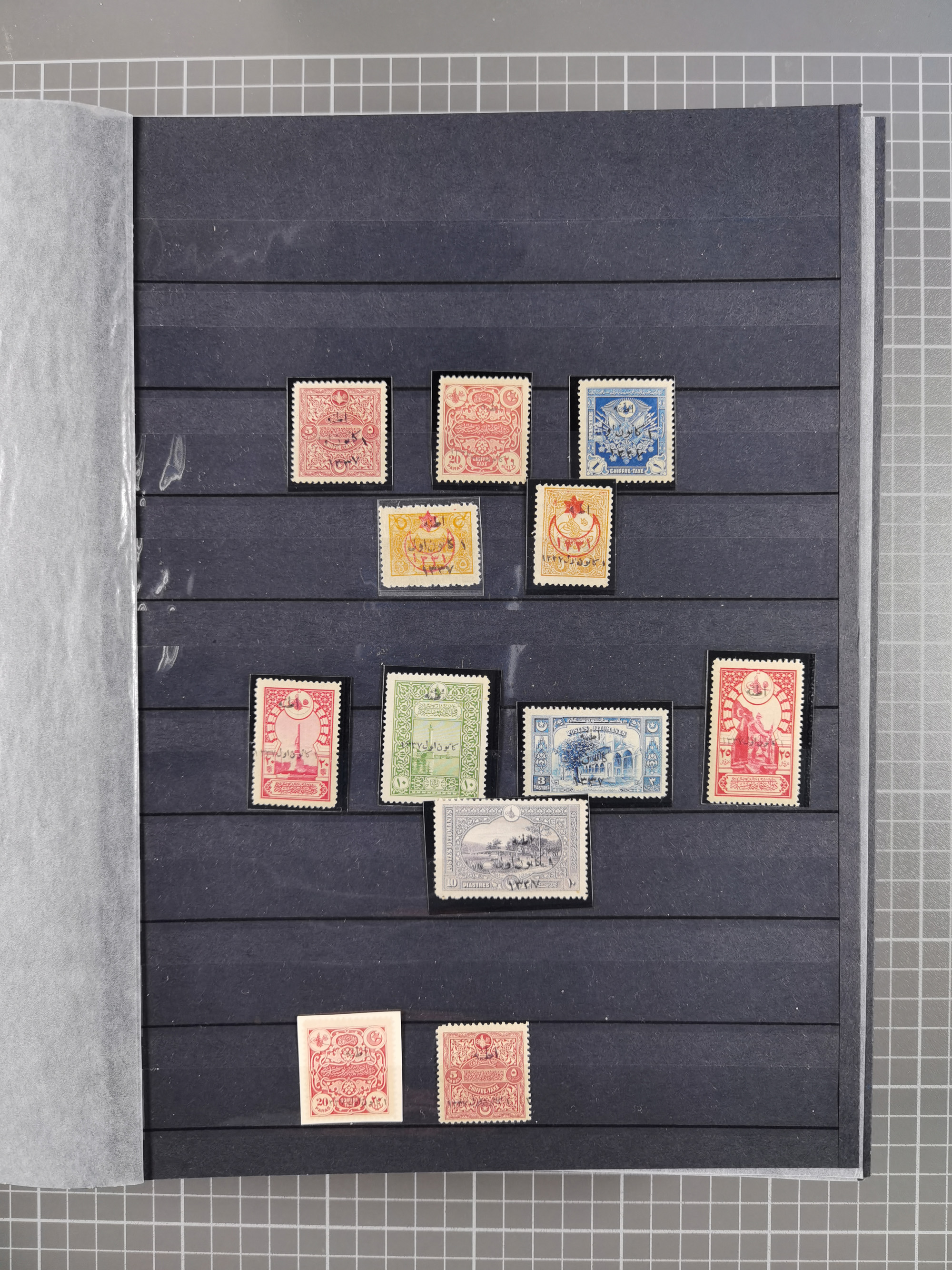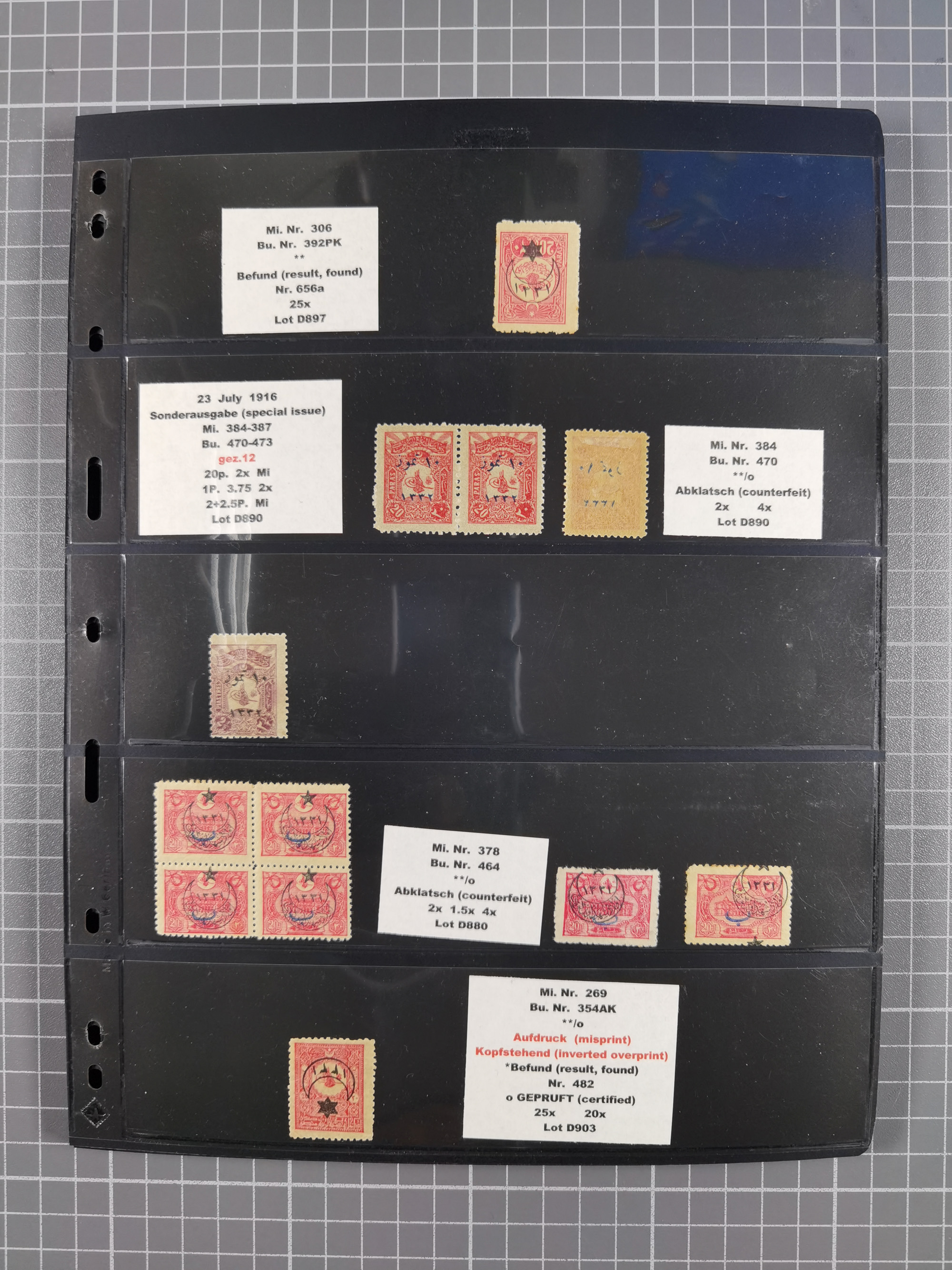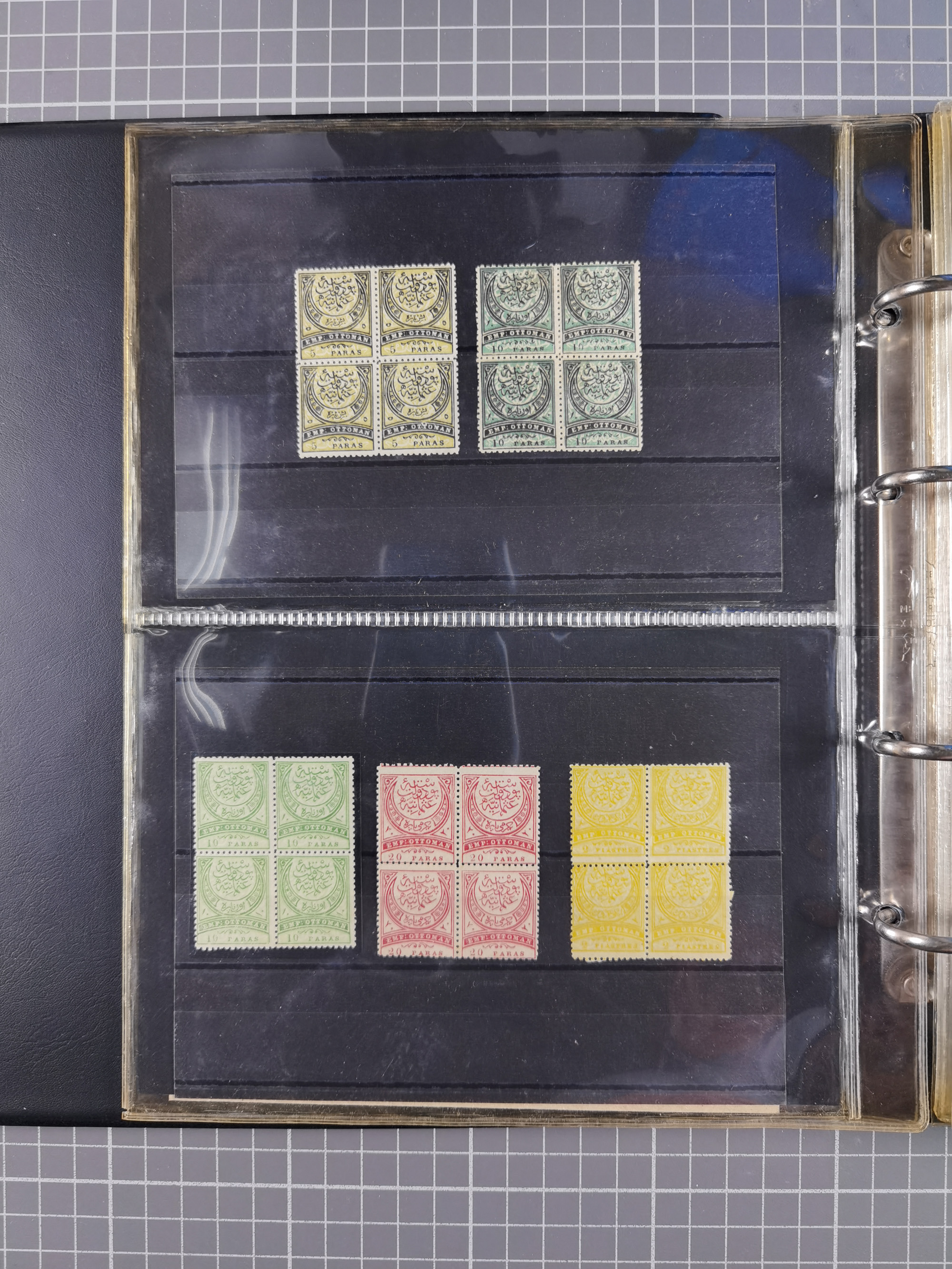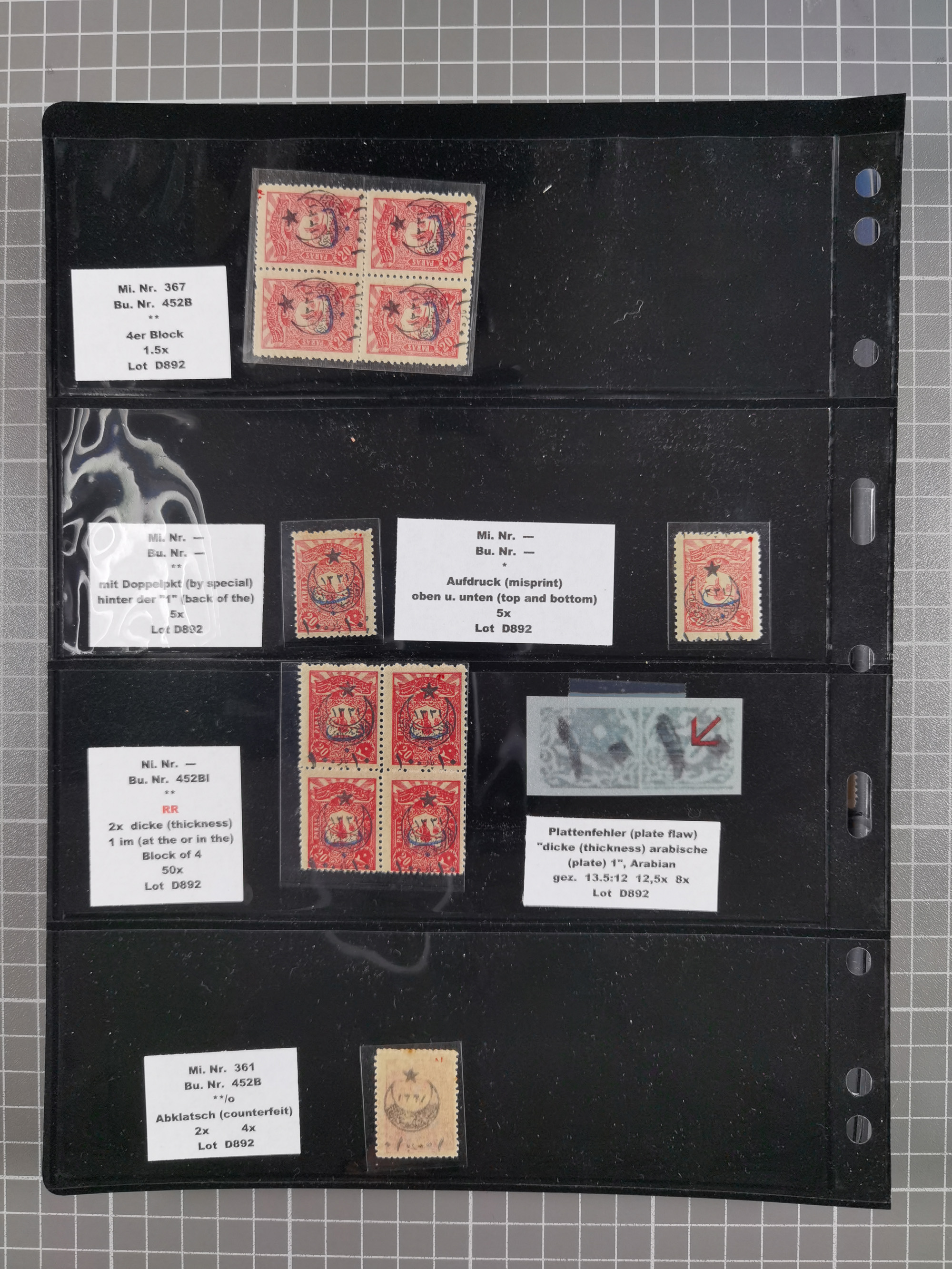 1865/1980 (ca.), Collection of mostly excellent copies of the “Duloz” issues with nice and clear cancellations in a very lovingly designed album, 1 pia. yellow 1871 corner margin block of 15, ‘Arabkir’ on 1875 block of nine, ship cancels ‘Vapur’ and numeral railway marks, 1, 2, 3 and 6 of Smyrna Aidin railway. Lost territories with clear cancellations of Irak, Bulgaria, Greece with islands, Lebanon & Palestine, Albania and Yugoslawia, nice pieces and multiples, neatly in two albums, plus 22 Duloz envelopes. Coles & Walker handbooks Part 1, 2 and 4.