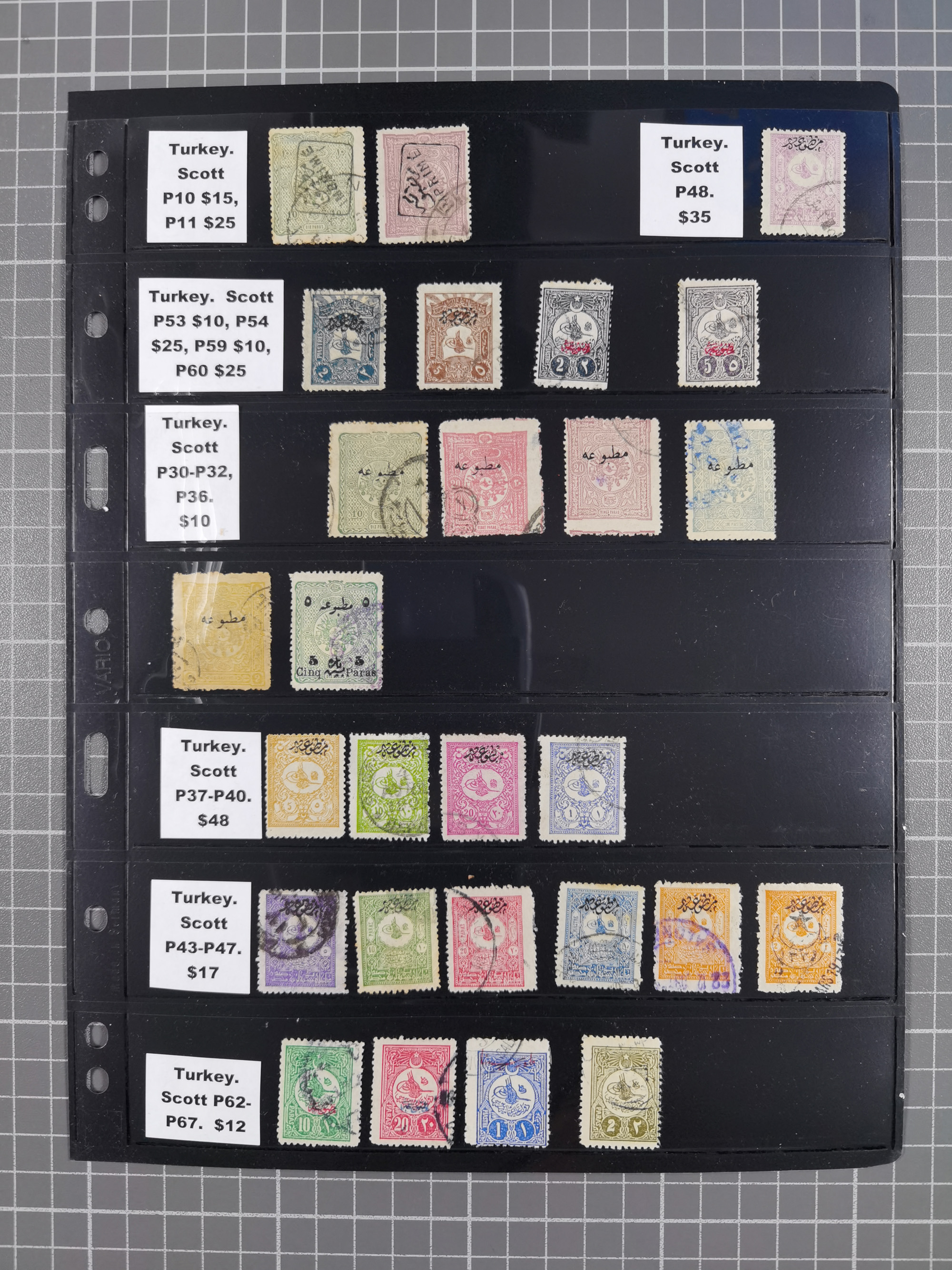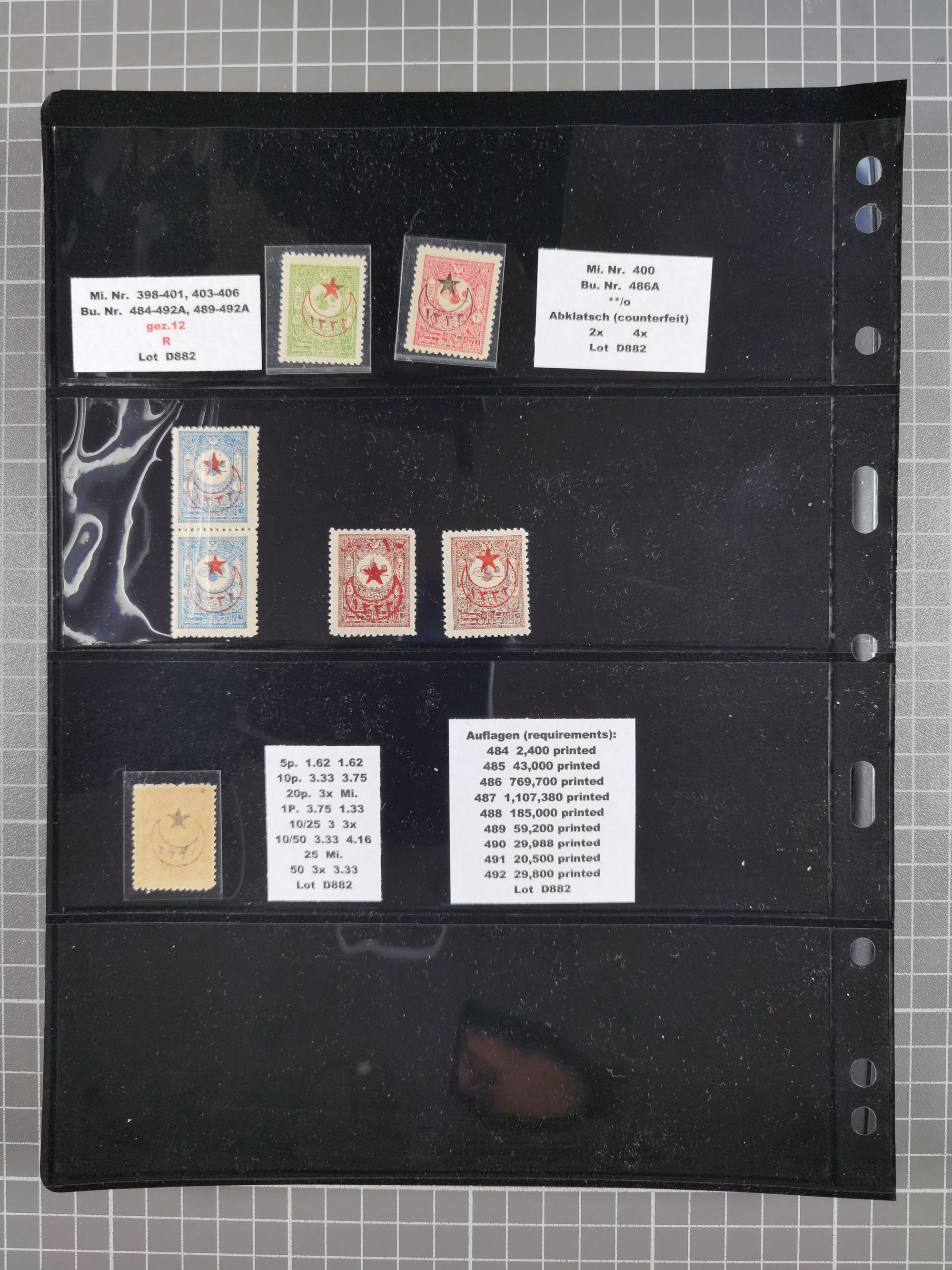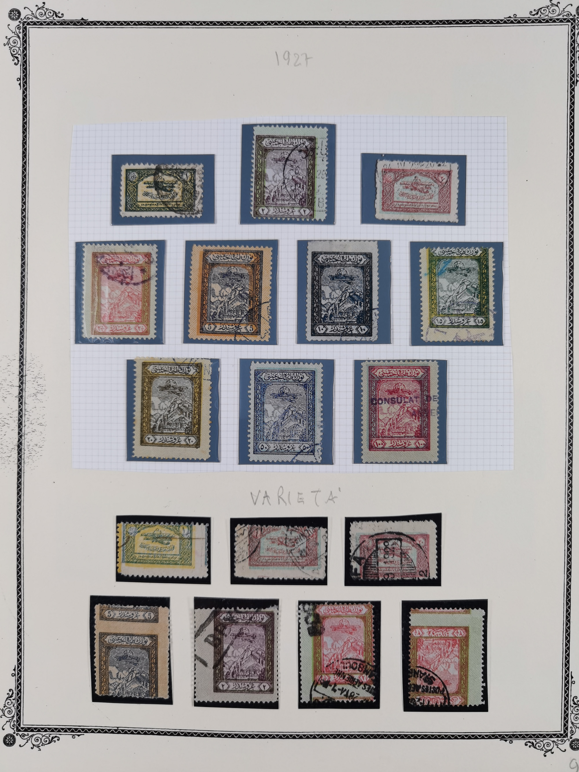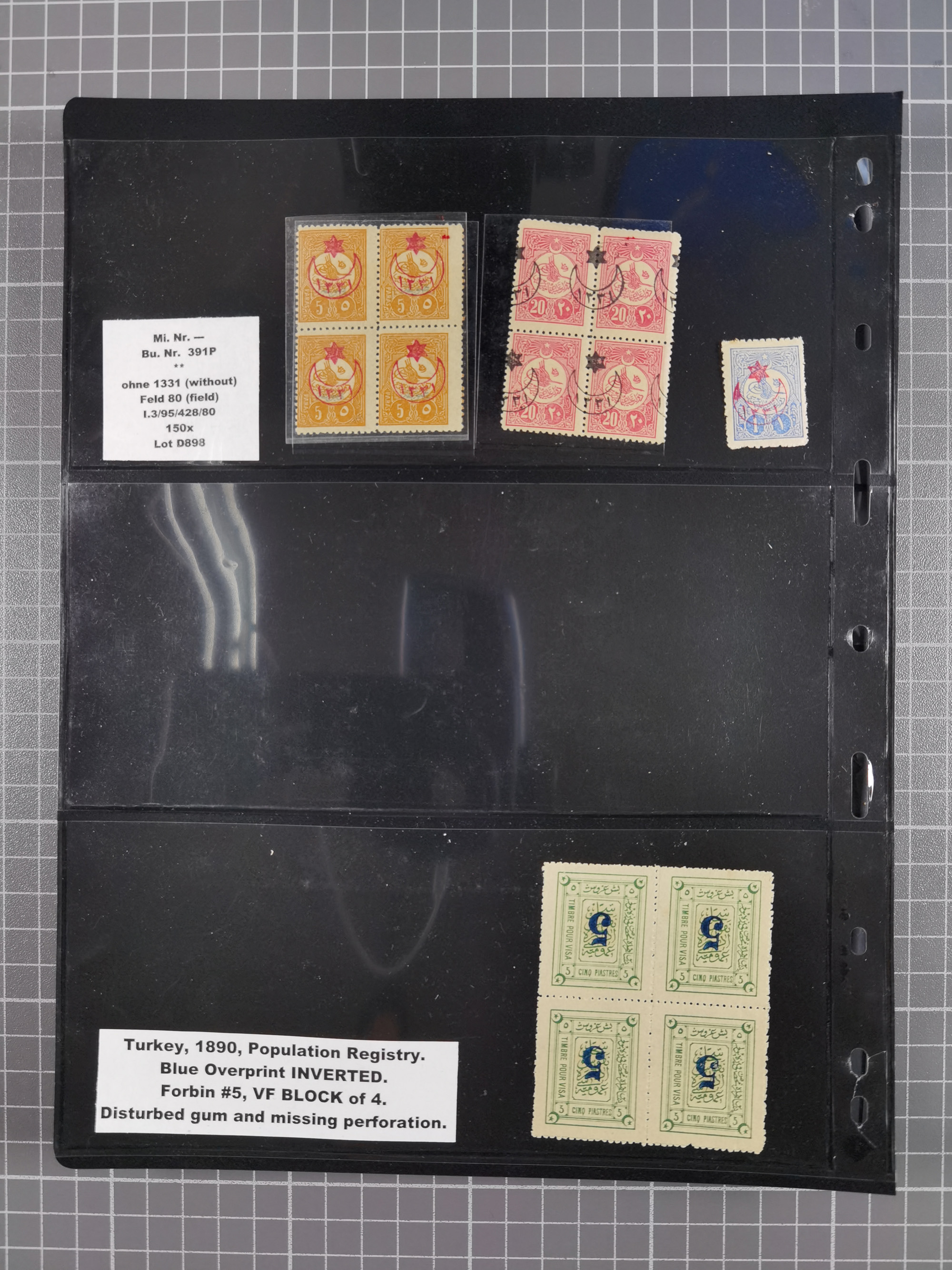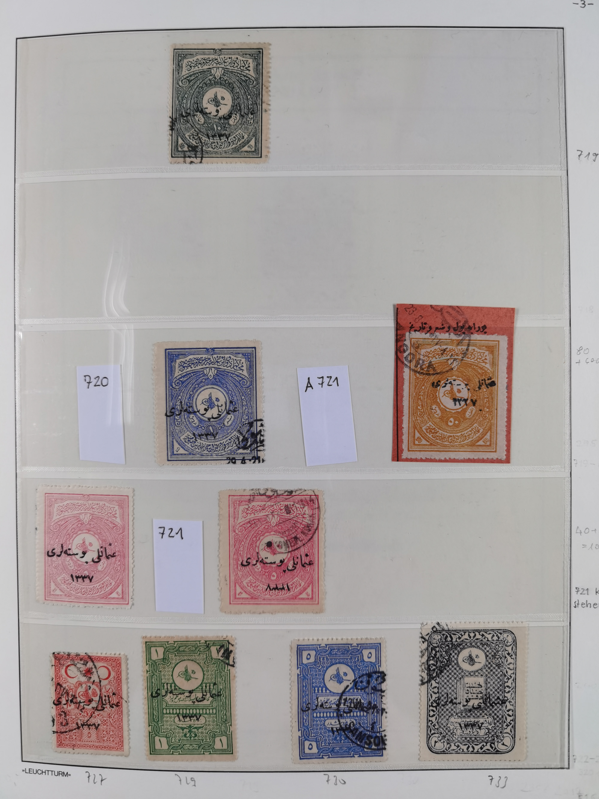 1865/1980 (ca.), Collection of mostly excellent copies of the “Duloz” issues with nice and clear cancellations in a very lovingly designed album, 1 pia. yellow 1871 corner margin block of 15, ‘Arabkir’ on 1875 block of nine, ship cancels ‘Vapur’ and numeral railway marks, 1, 2, 3 and 6 of Smyrna Aidin railway. Lost territories with clear cancellations of Irak, Bulgaria, Greece with islands, Lebanon & Palestine, Albania and Yugoslawia, nice pieces and multiples, neatly in two albums, plus 22 Duloz envelopes. Coles & Walker handbooks Part 1, 2 and 4.