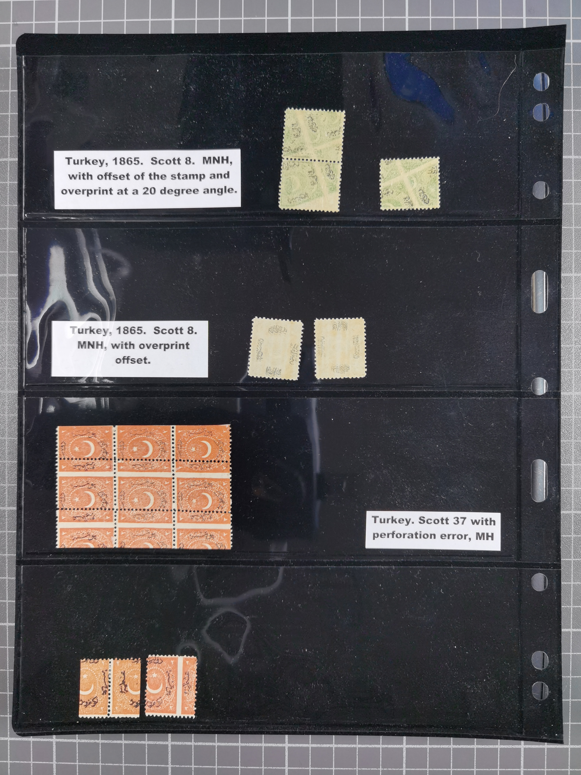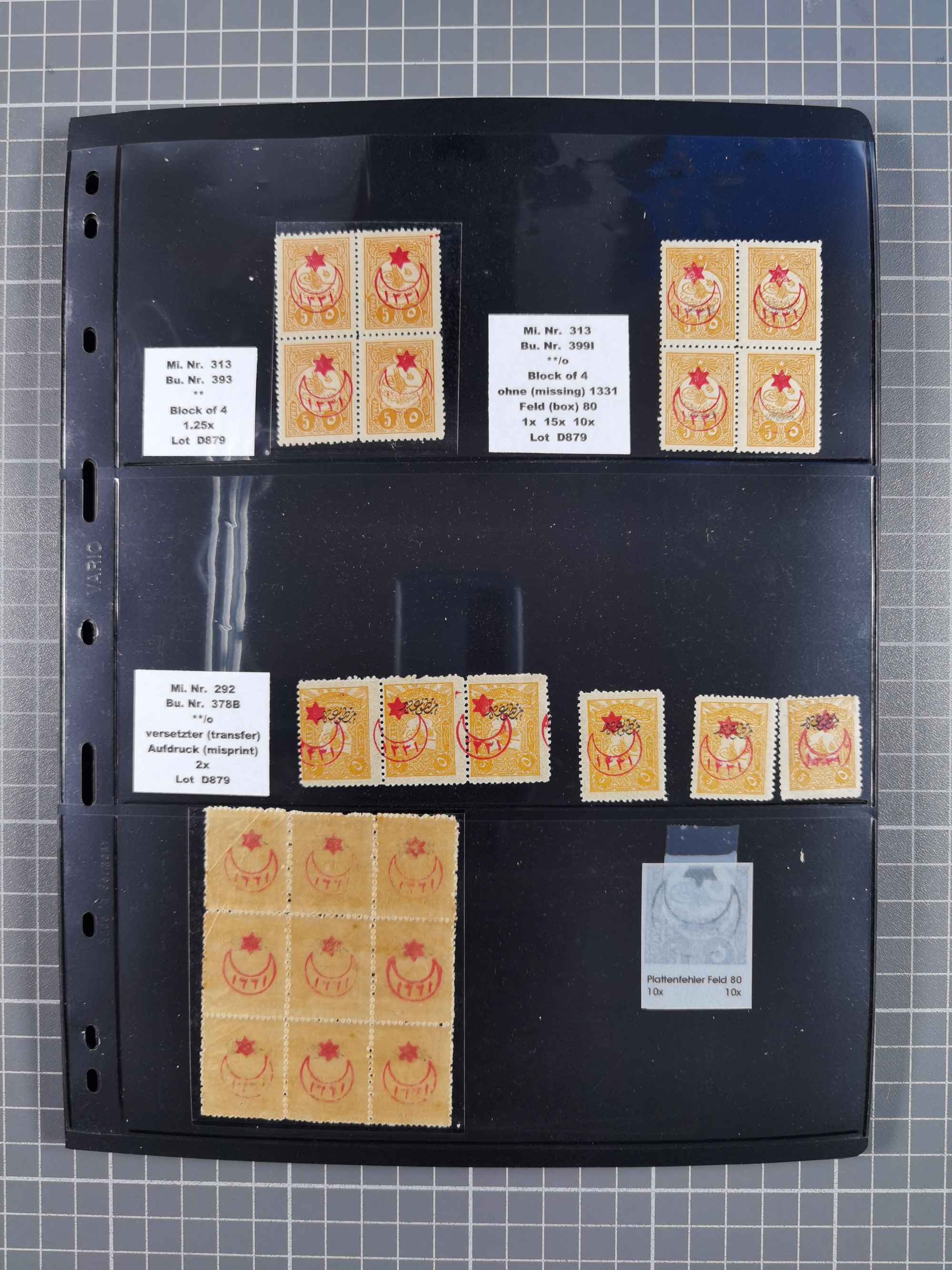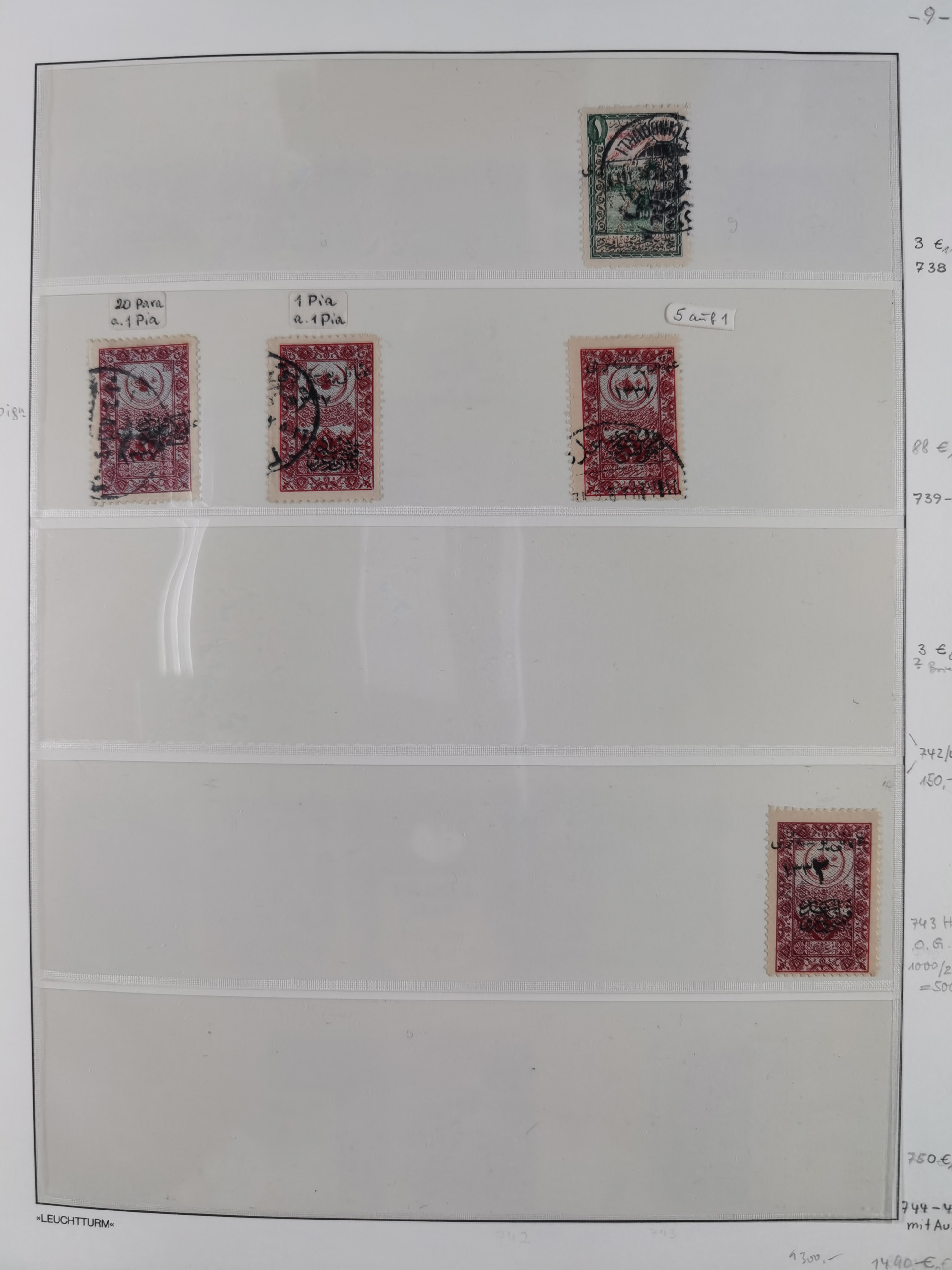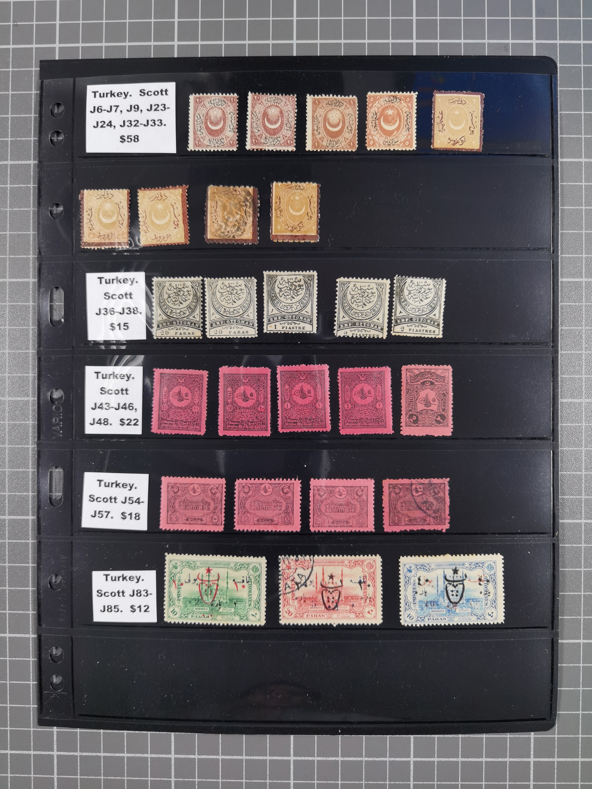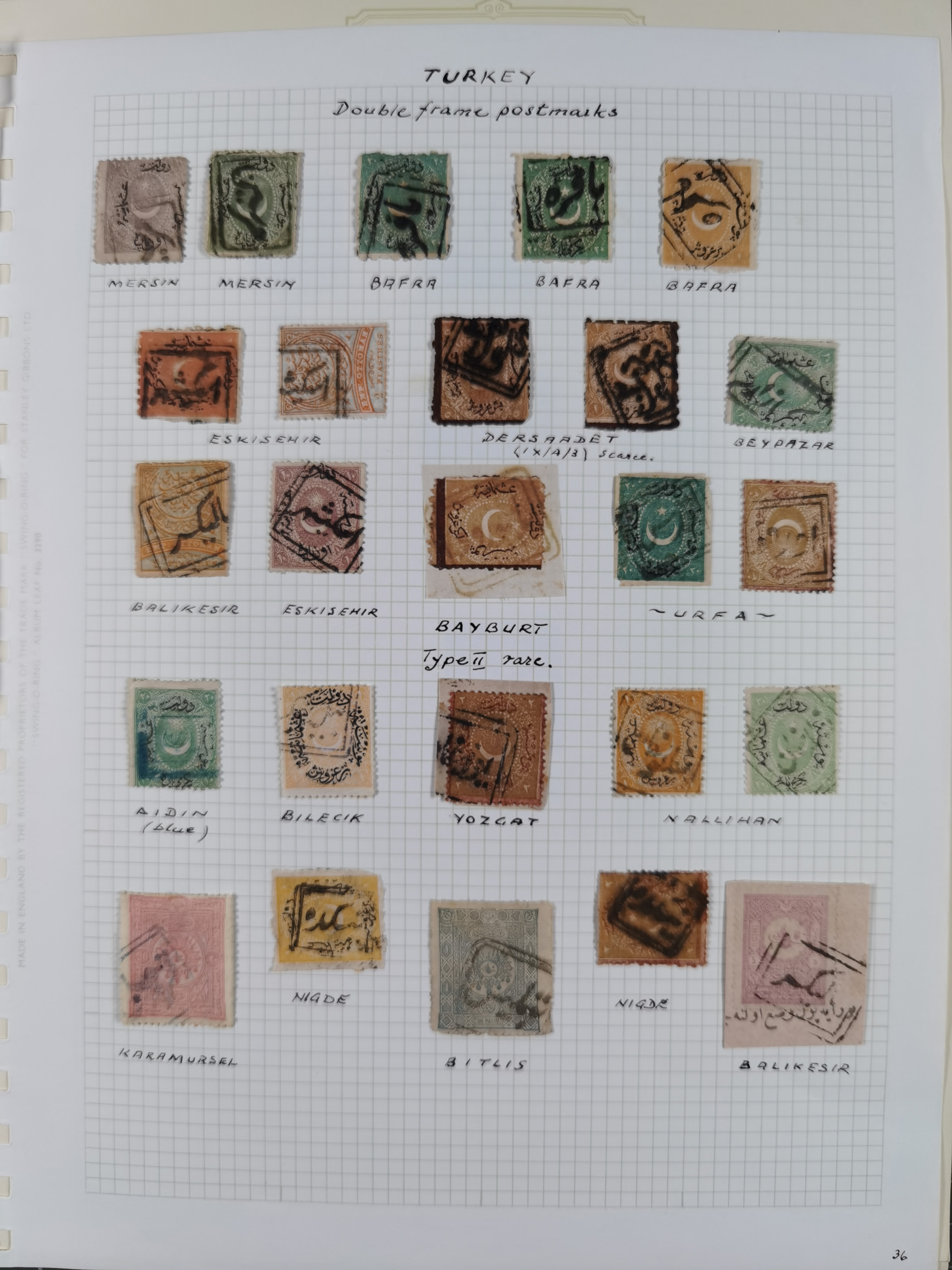 1865/1980 (ca.), Collection of mostly excellent copies of the “Duloz” issues with nice and clear cancellations in a very lovingly designed album, 1 pia. yellow 1871 corner margin block of 15, ‘Arabkir’ on 1875 block of nine, ship cancels ‘Vapur’ and numeral railway marks, 1, 2, 3 and 6 of Smyrna Aidin railway. Lost territories with clear cancellations of Irak, Bulgaria, Greece with islands, Lebanon & Palestine, Albania and Yugoslawia, nice pieces and multiples, neatly in two albums, plus 22 Duloz envelopes. Coles & Walker handbooks Part 1, 2 and 4.