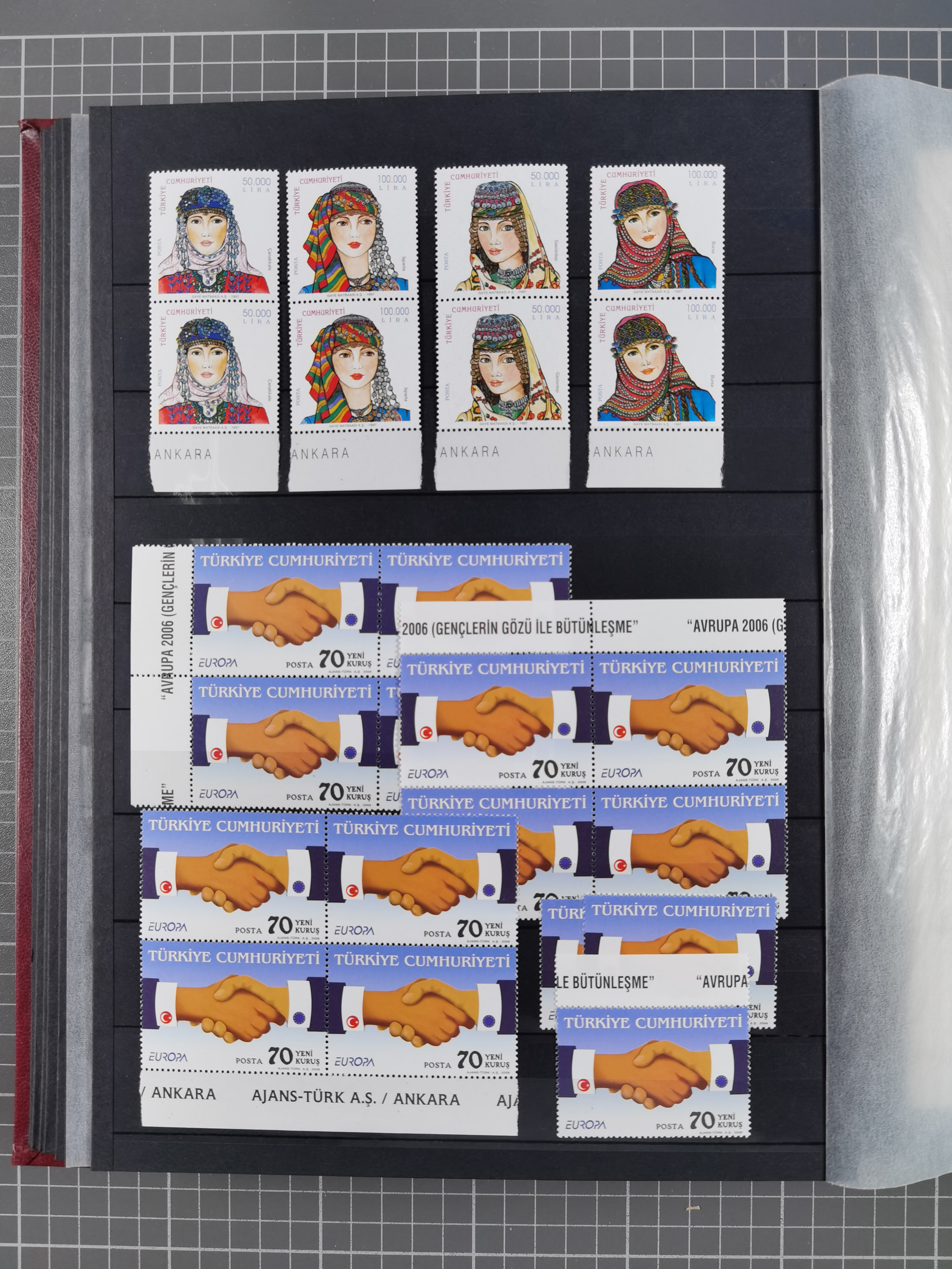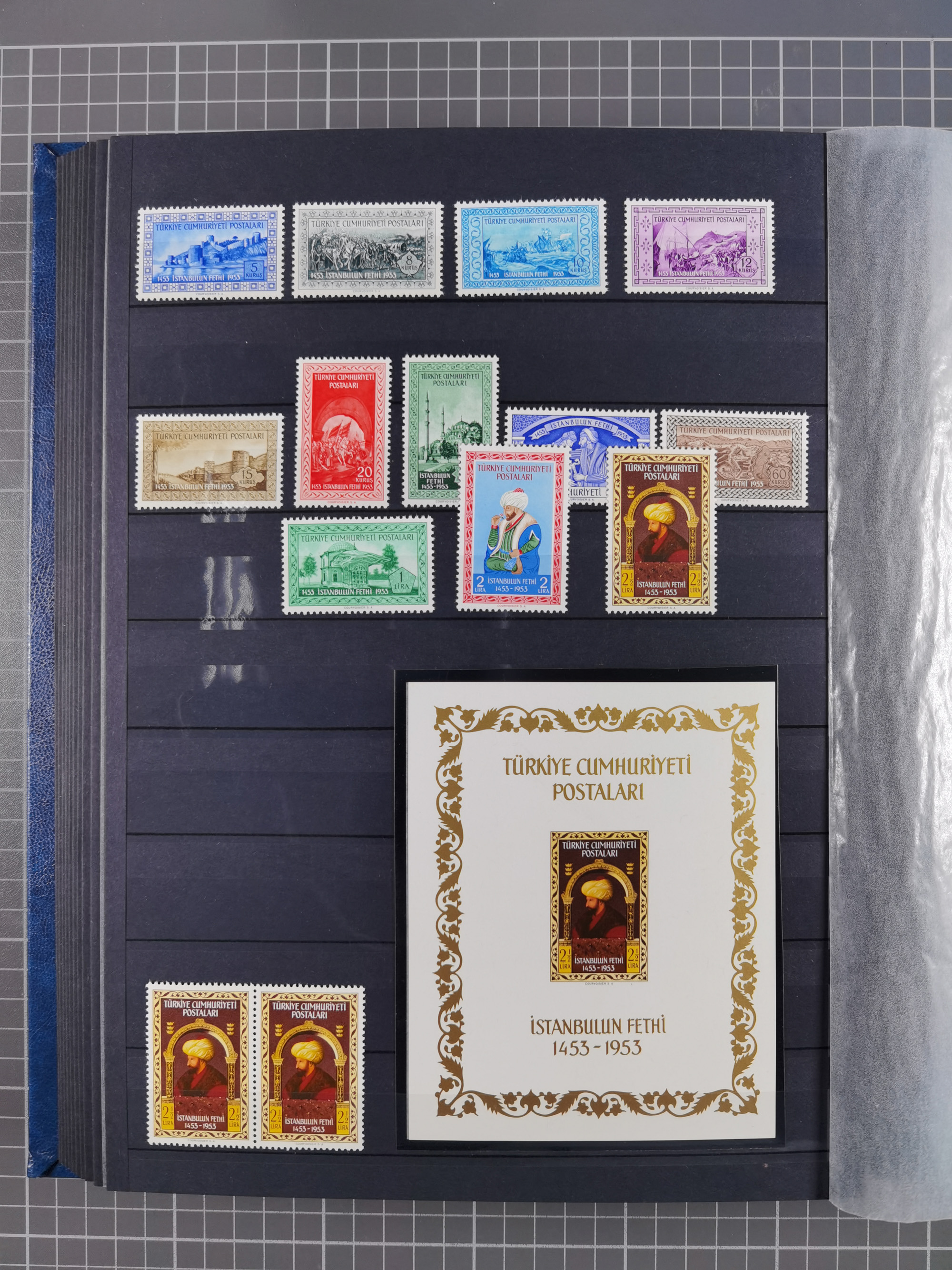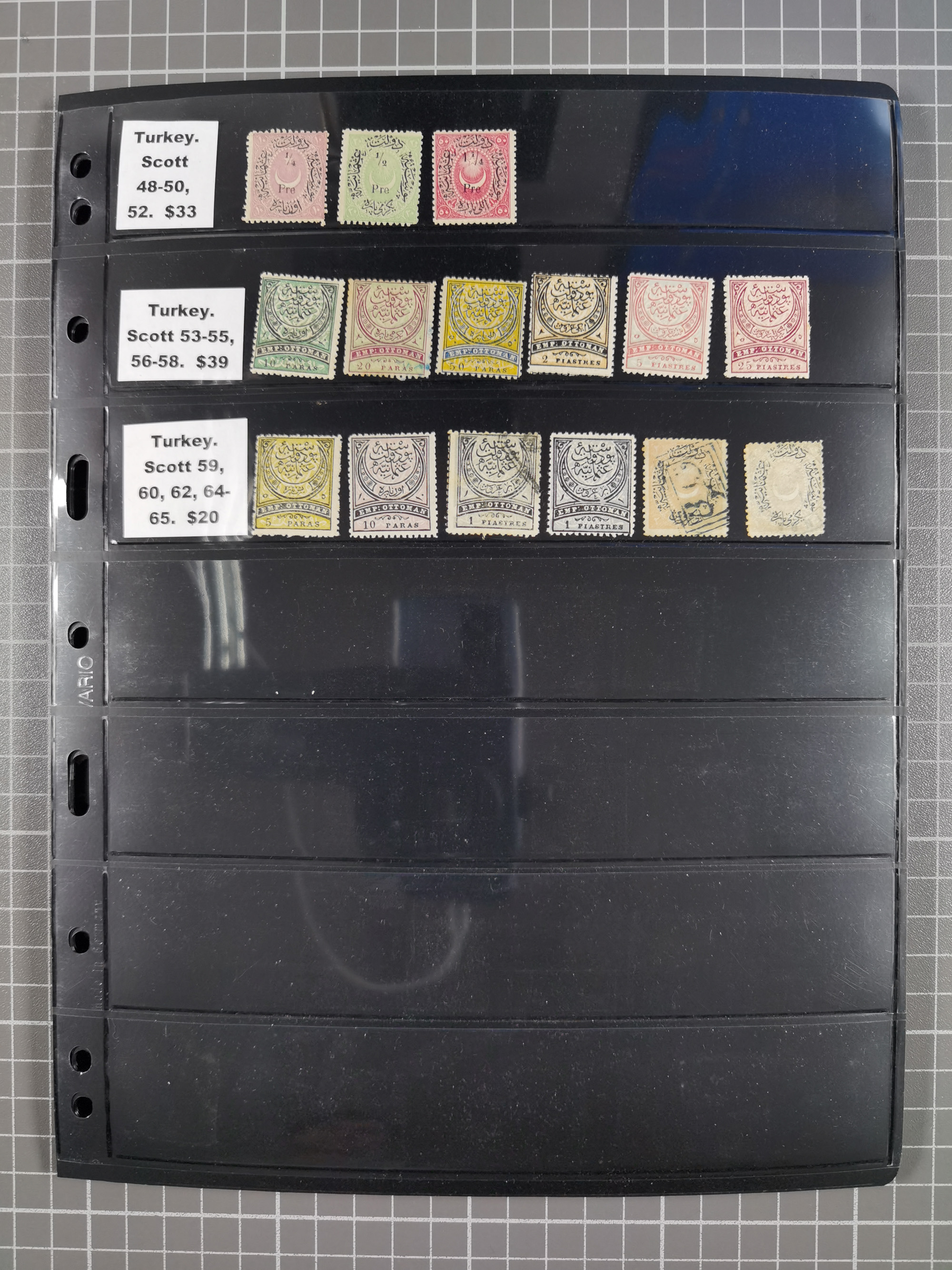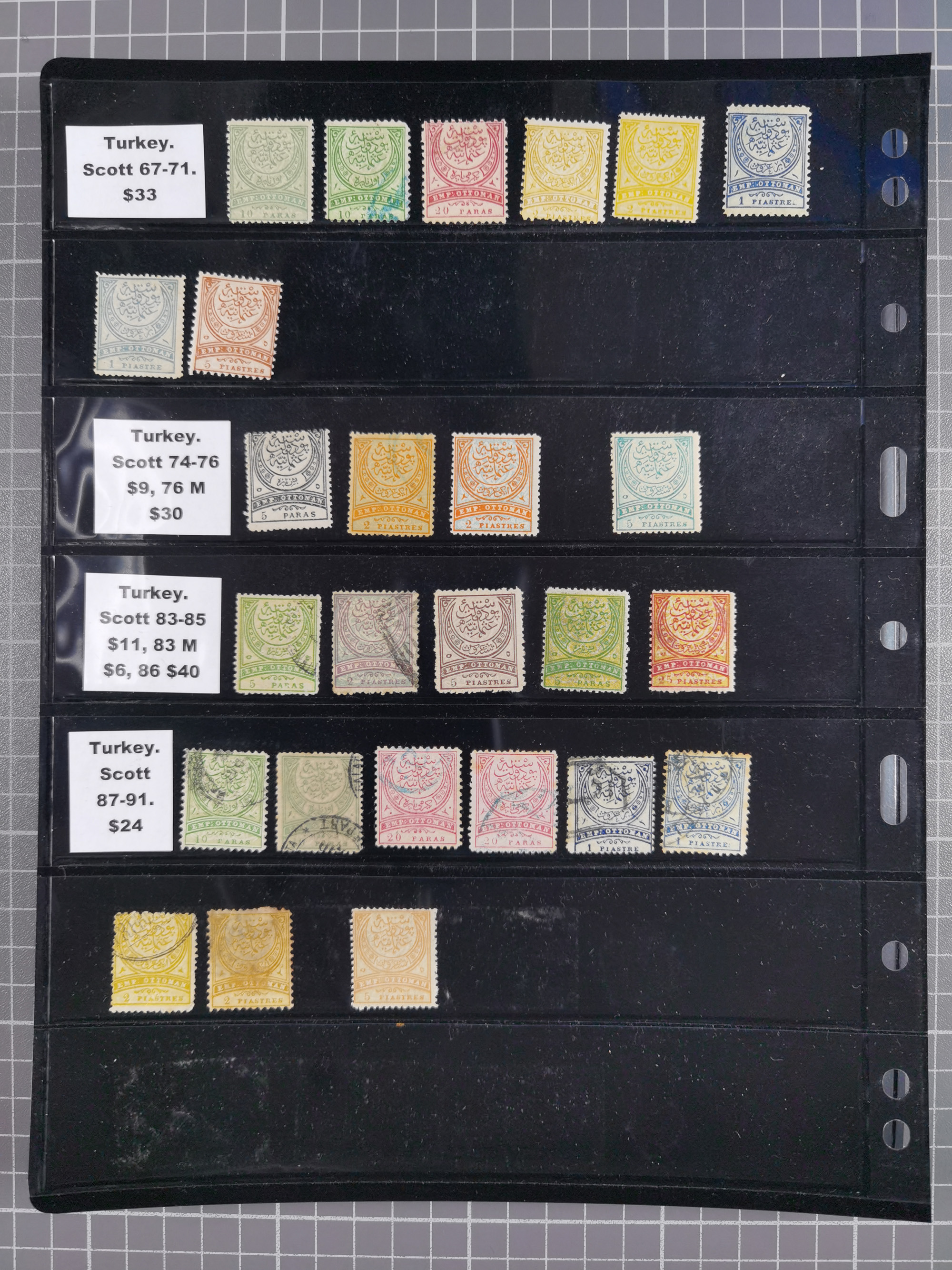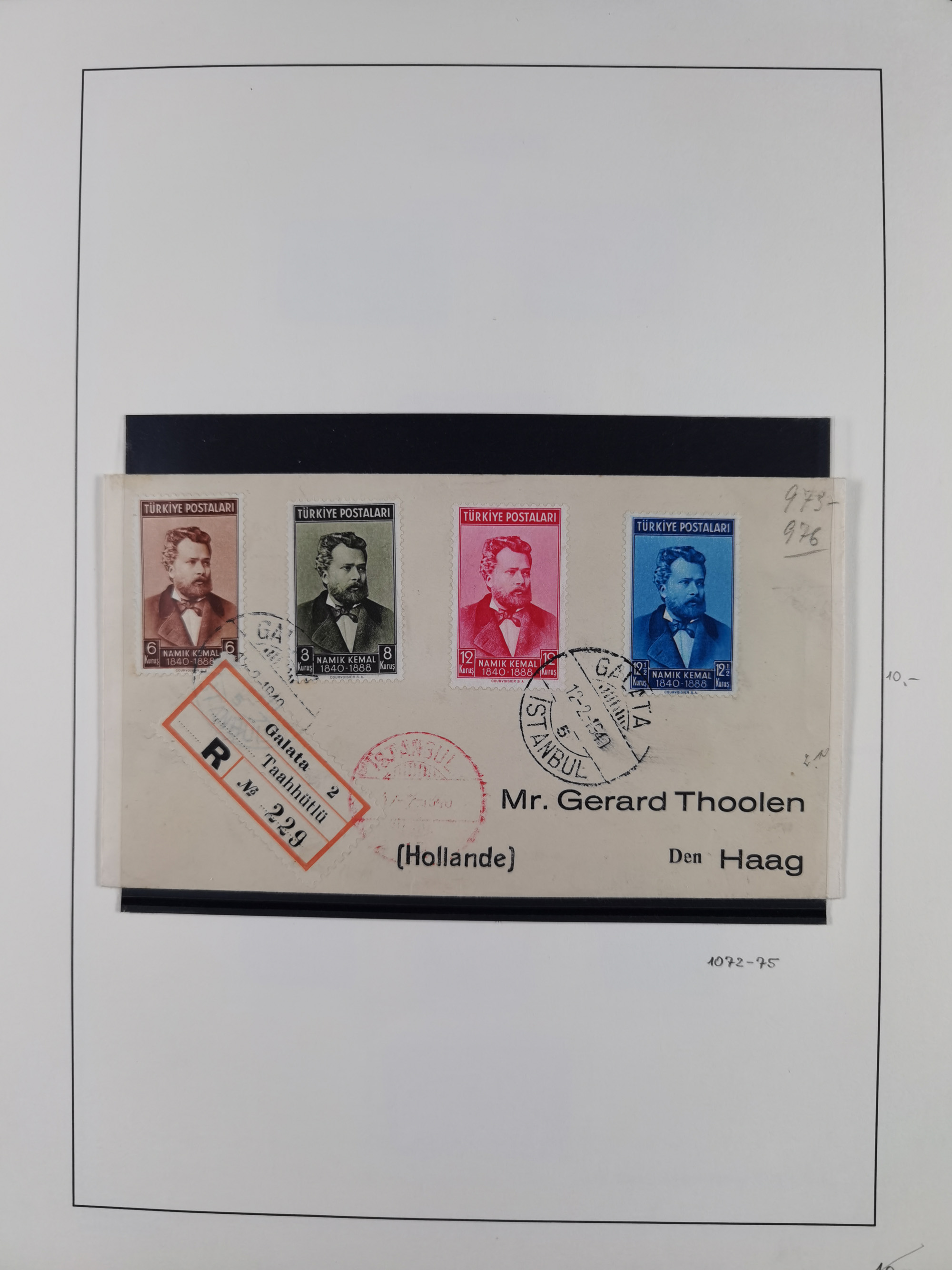 1865/1980 (ca.), Collection of mostly excellent copies of the “Duloz” issues with nice and clear cancellations in a very lovingly designed album, 1 pia. yellow 1871 corner margin block of 15, ‘Arabkir’ on 1875 block of nine, ship cancels ‘Vapur’ and numeral railway marks, 1, 2, 3 and 6 of Smyrna Aidin railway. Lost territories with clear cancellations of Irak, Bulgaria, Greece with islands, Lebanon & Palestine, Albania and Yugoslawia, nice pieces and multiples, neatly in two albums, plus 22 Duloz envelopes. Coles & Walker handbooks Part 1, 2 and 4.