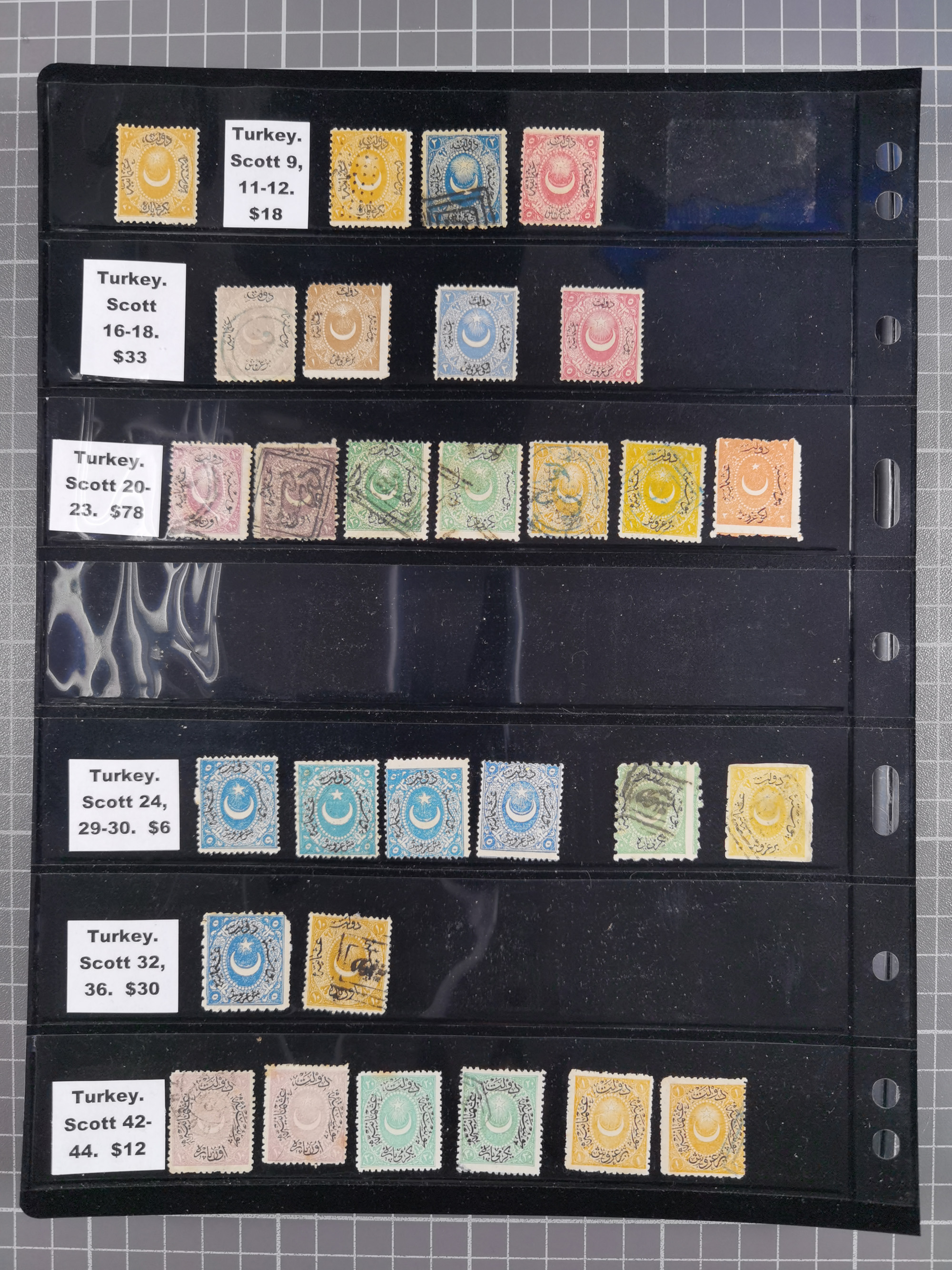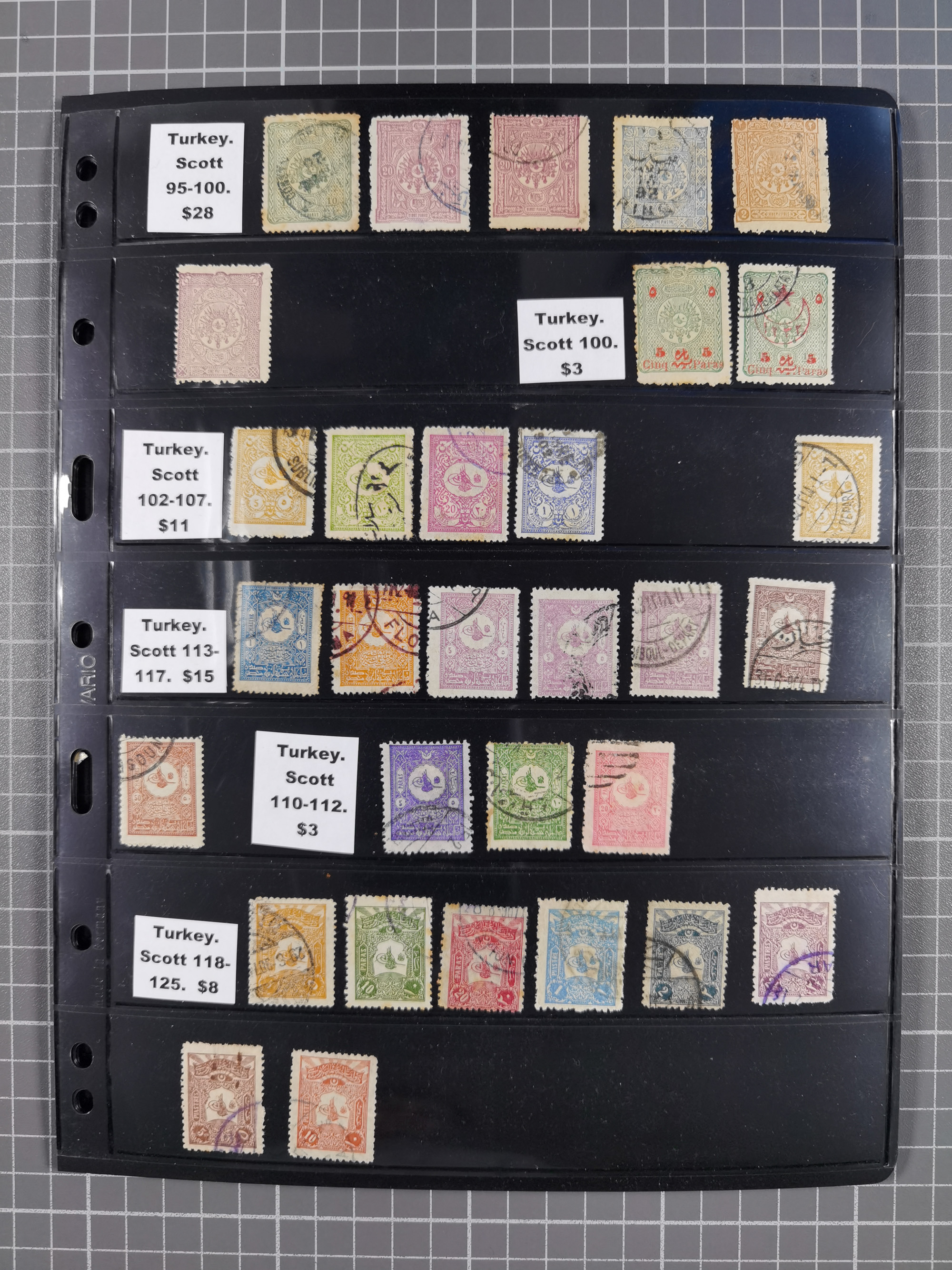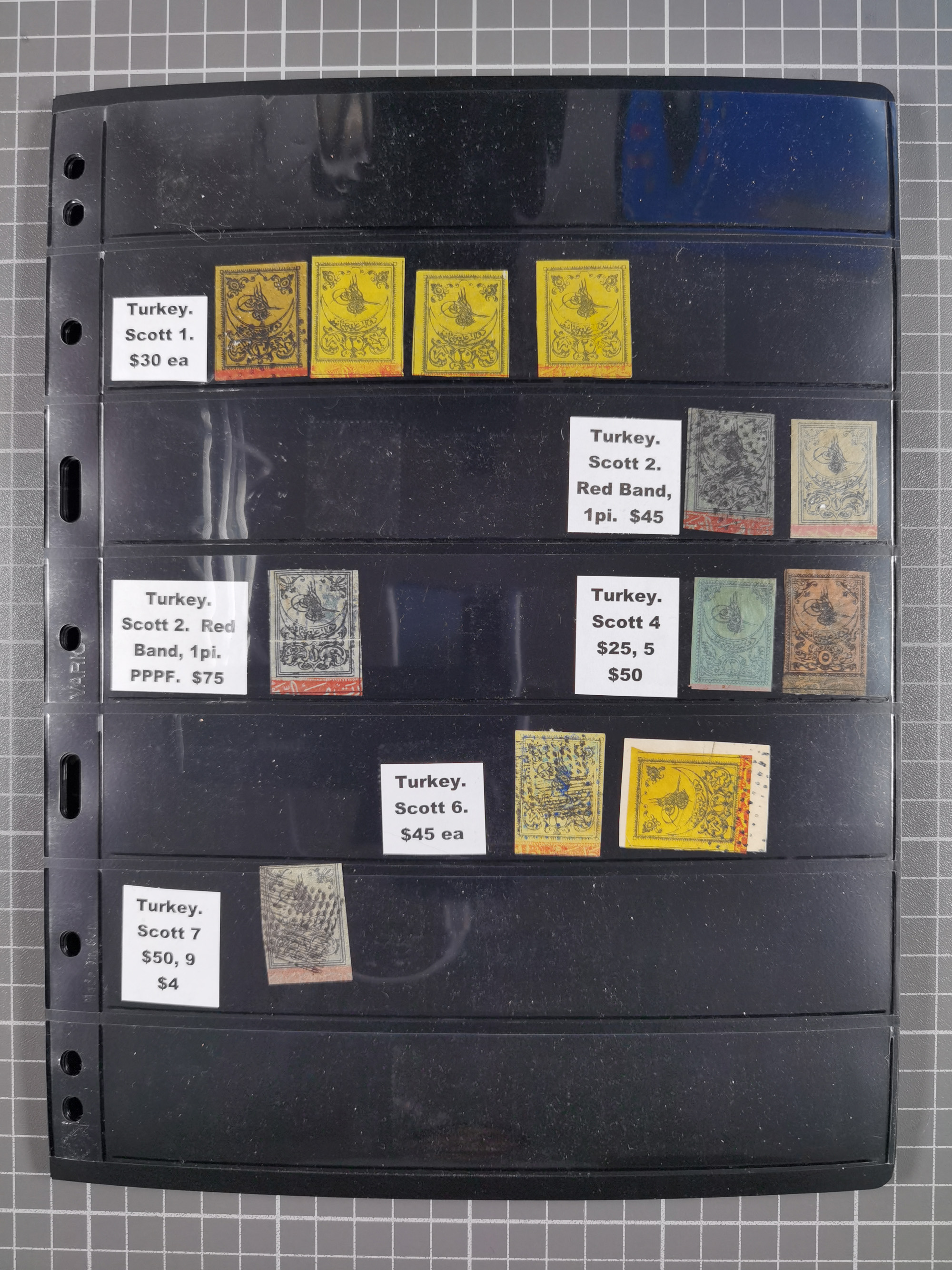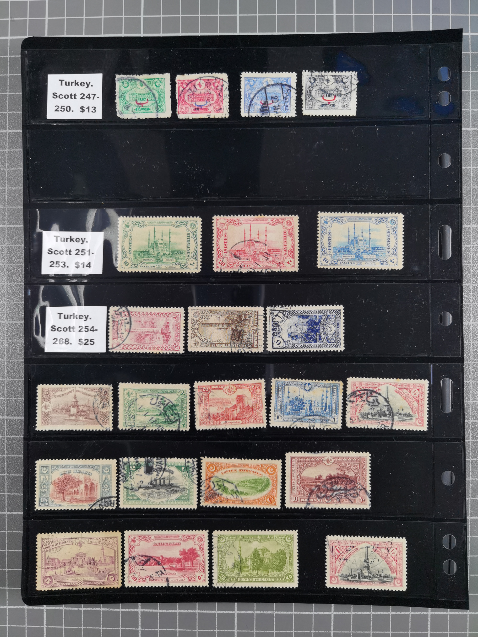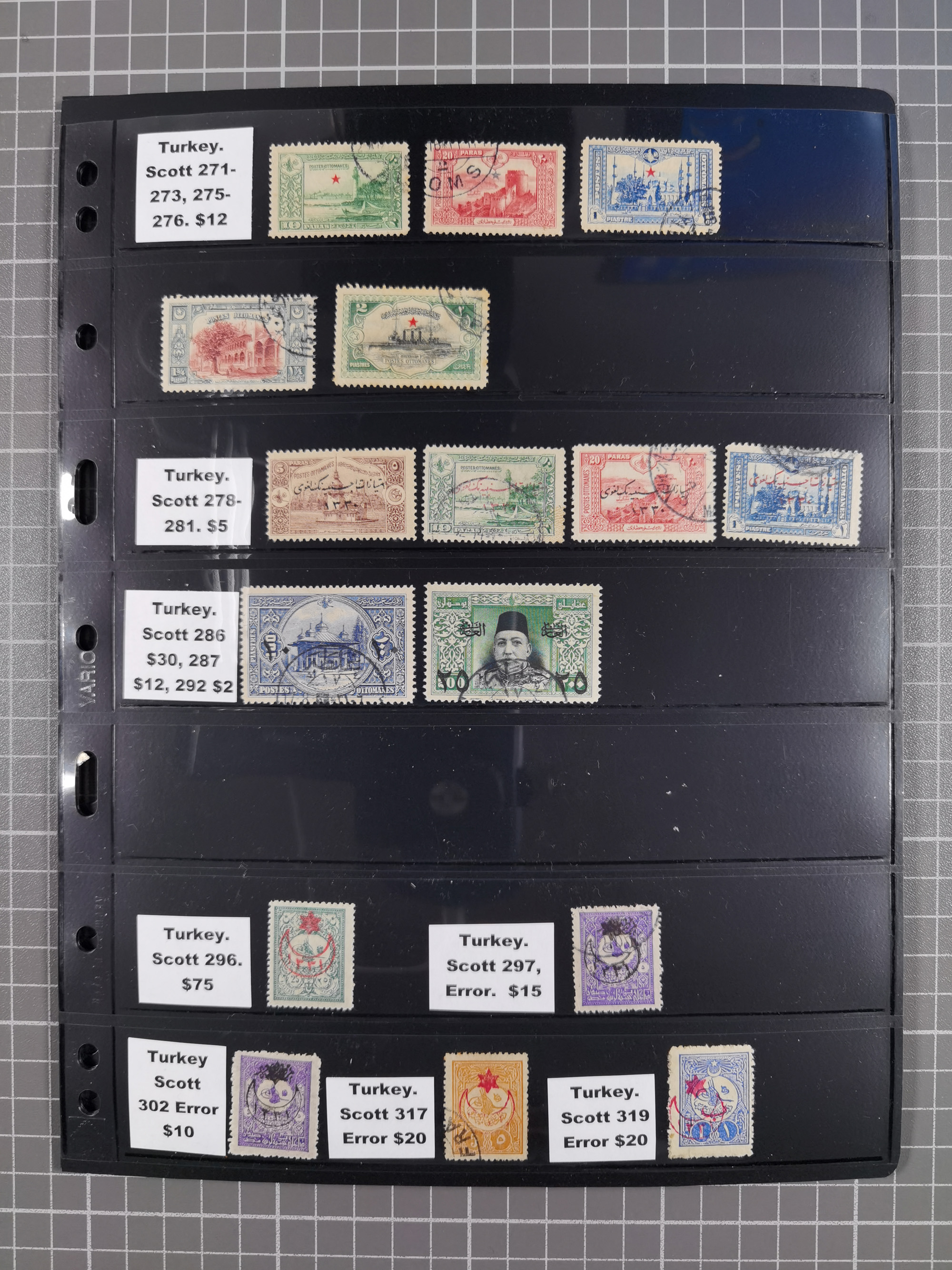 1865/1980 (ca.), Collection of mostly excellent copies of the “Duloz” issues with nice and clear cancellations in a very lovingly designed album, 1 pia. yellow 1871 corner margin block of 15, ‘Arabkir’ on 1875 block of nine, ship cancels ‘Vapur’ and numeral railway marks, 1, 2, 3 and 6 of Smyrna Aidin railway. Lost territories with clear cancellations of Irak, Bulgaria, Greece with islands, Lebanon & Palestine, Albania and Yugoslawia, nice pieces and multiples, neatly in two albums, plus 22 Duloz envelopes. Coles & Walker handbooks Part 1, 2 and 4.