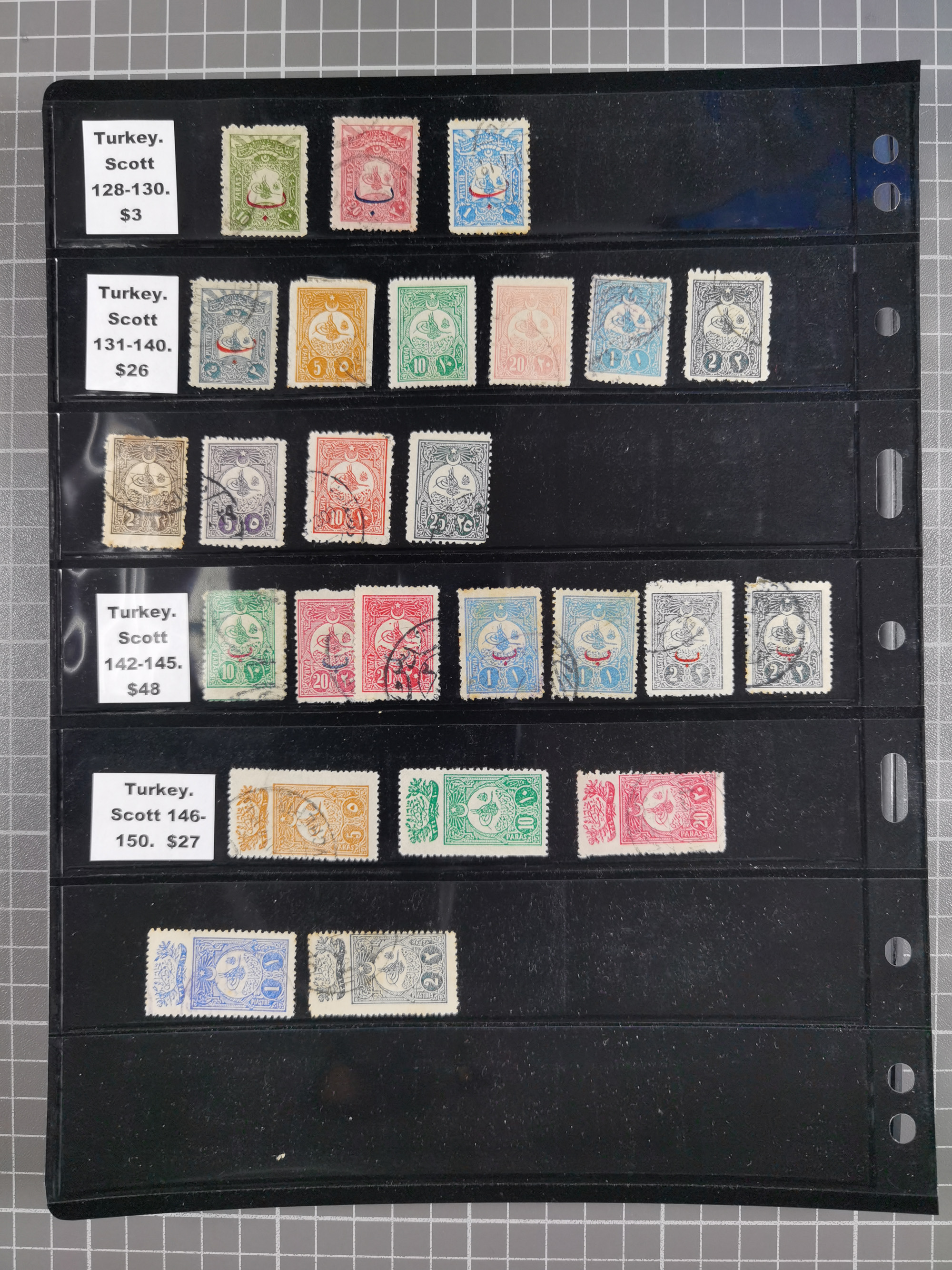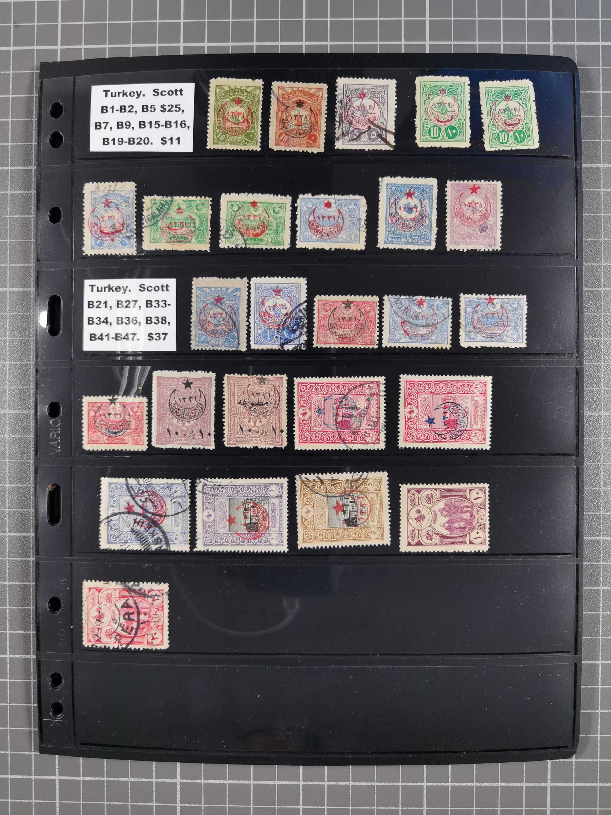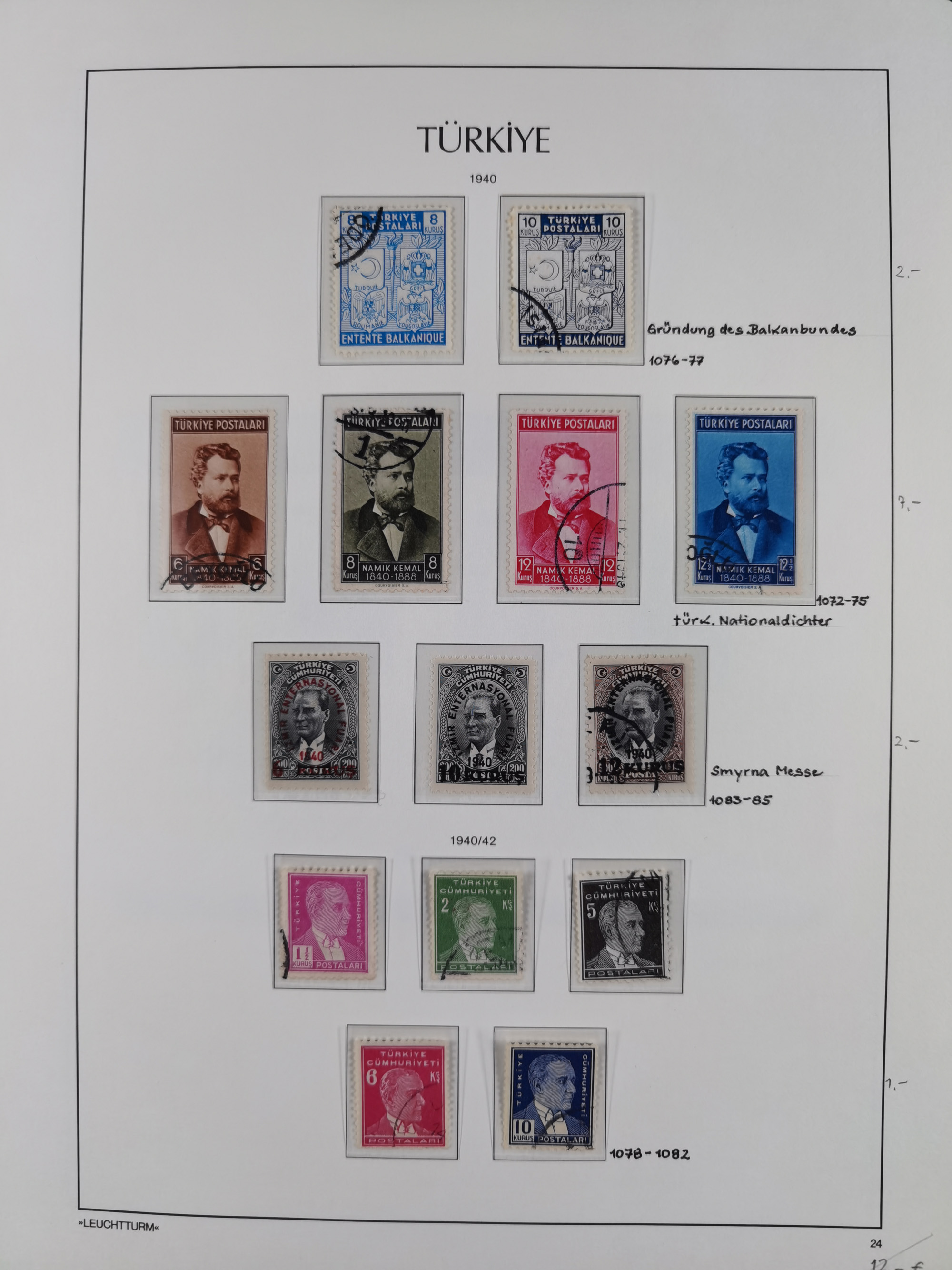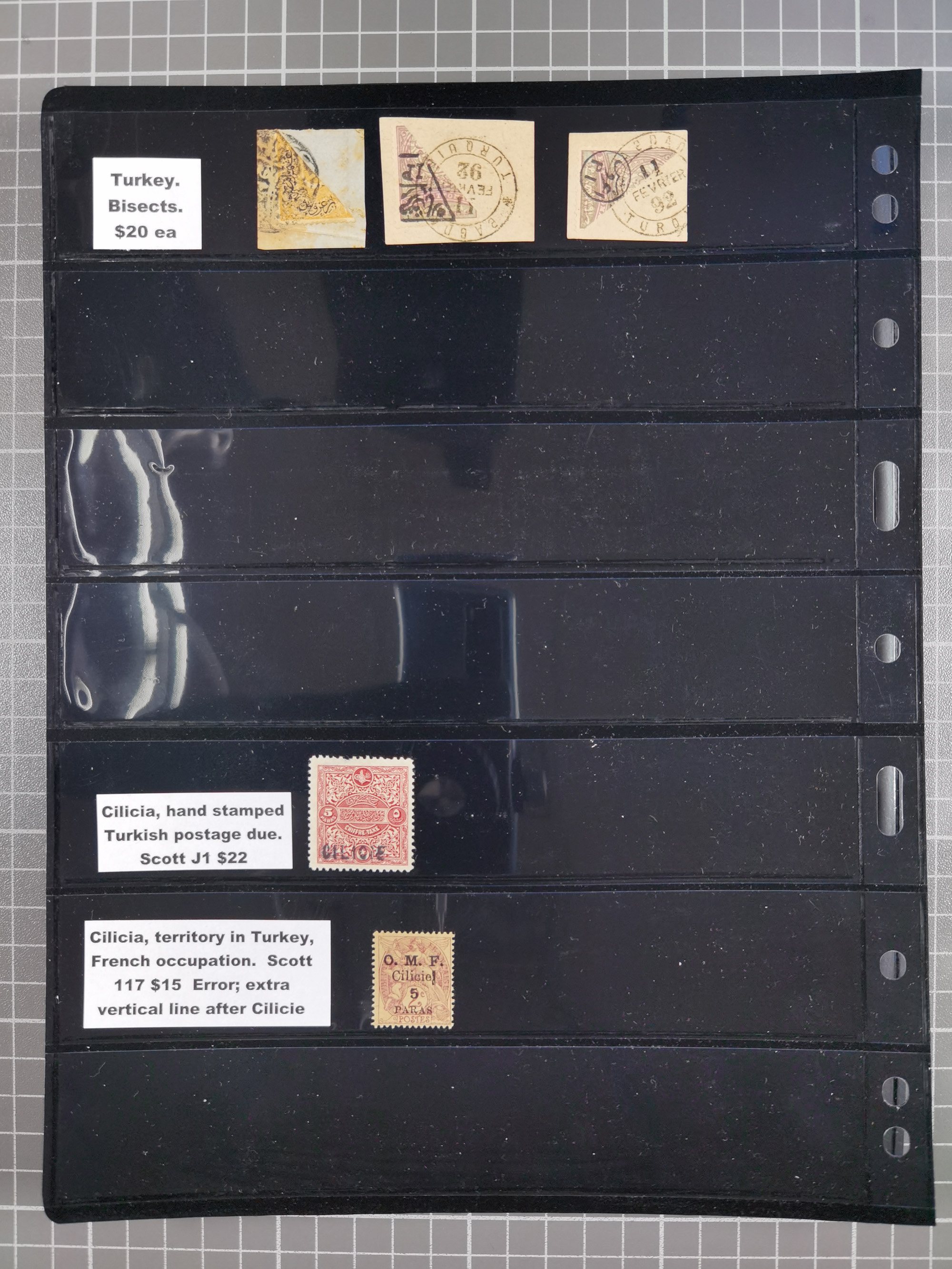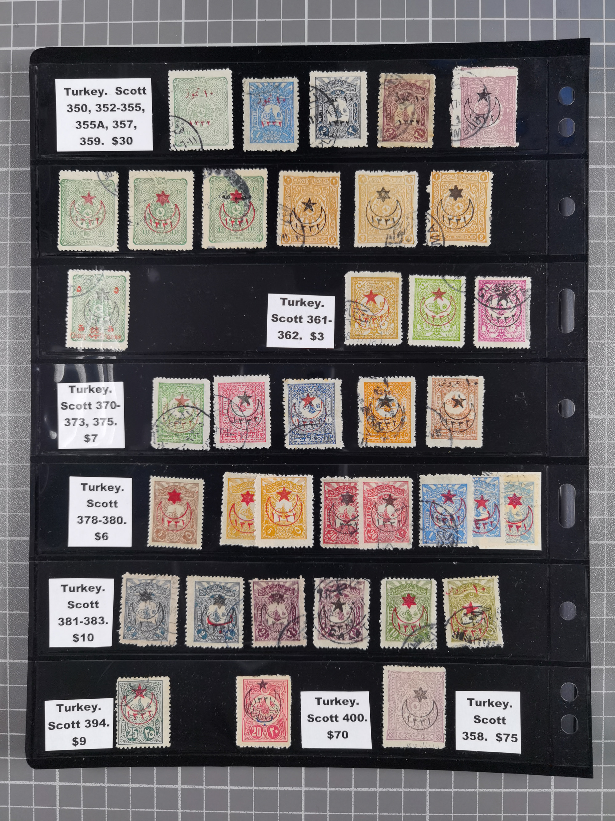 1865/1980 (ca.), Collection of mostly excellent copies of the “Duloz” issues with nice and clear cancellations in a very lovingly designed album, 1 pia. yellow 1871 corner margin block of 15, ‘Arabkir’ on 1875 block of nine, ship cancels ‘Vapur’ and numeral railway marks, 1, 2, 3 and 6 of Smyrna Aidin railway. Lost territories with clear cancellations of Irak, Bulgaria, Greece with islands, Lebanon & Palestine, Albania and Yugoslawia, nice pieces and multiples, neatly in two albums, plus 22 Duloz envelopes. Coles & Walker handbooks Part 1, 2 and 4.
