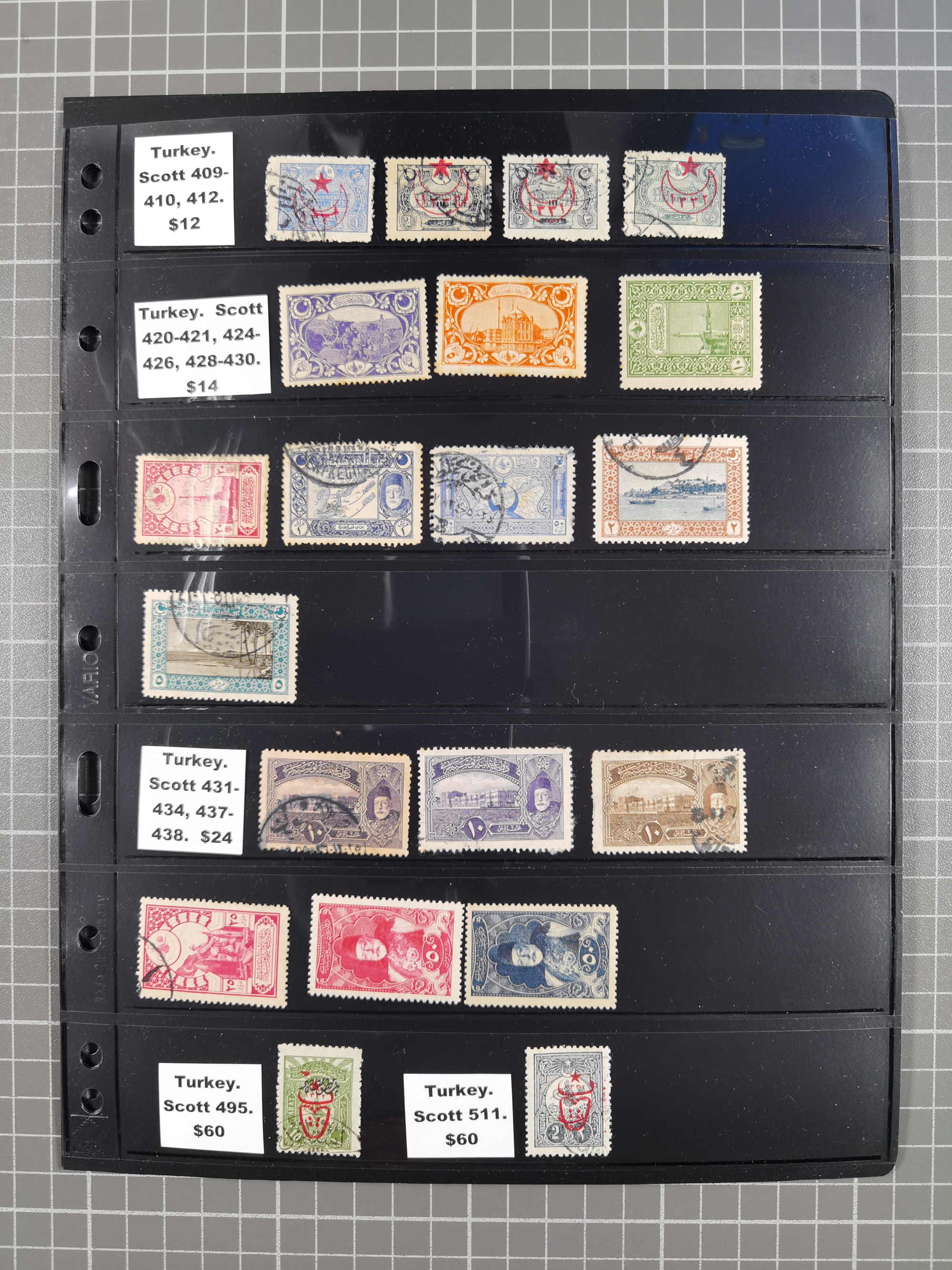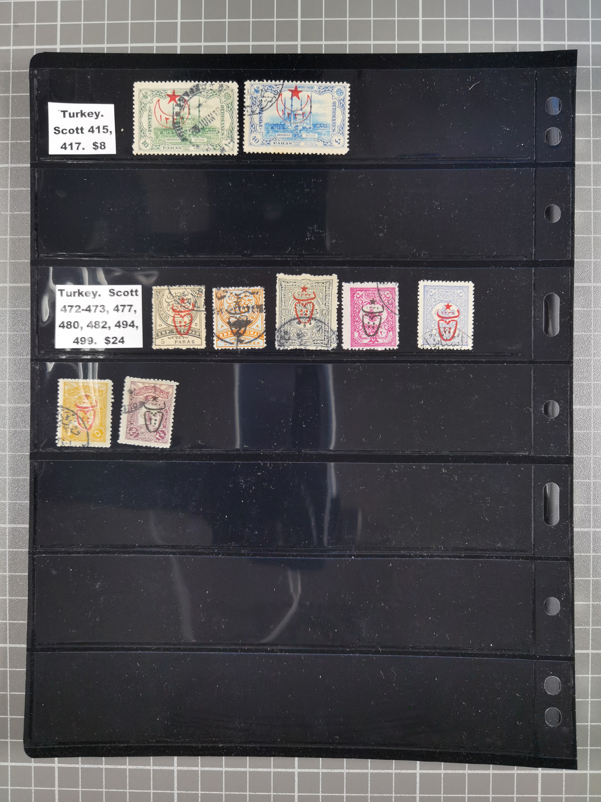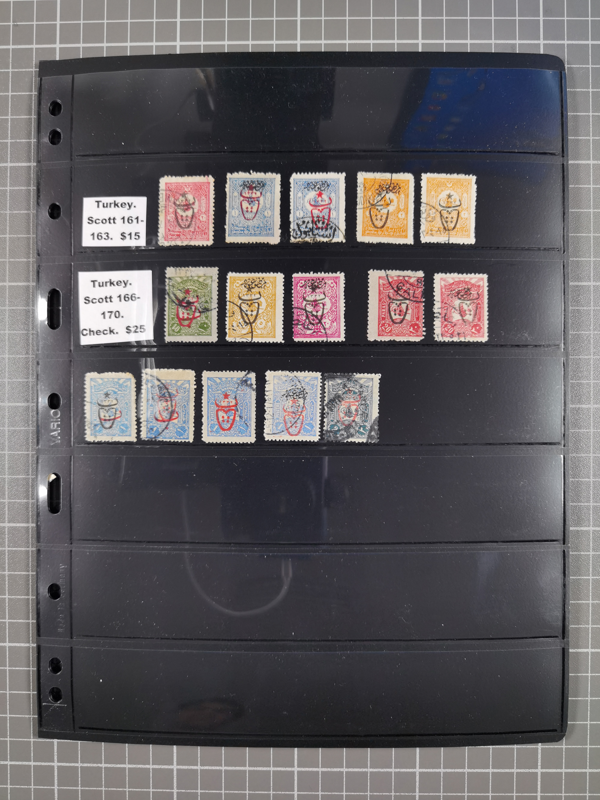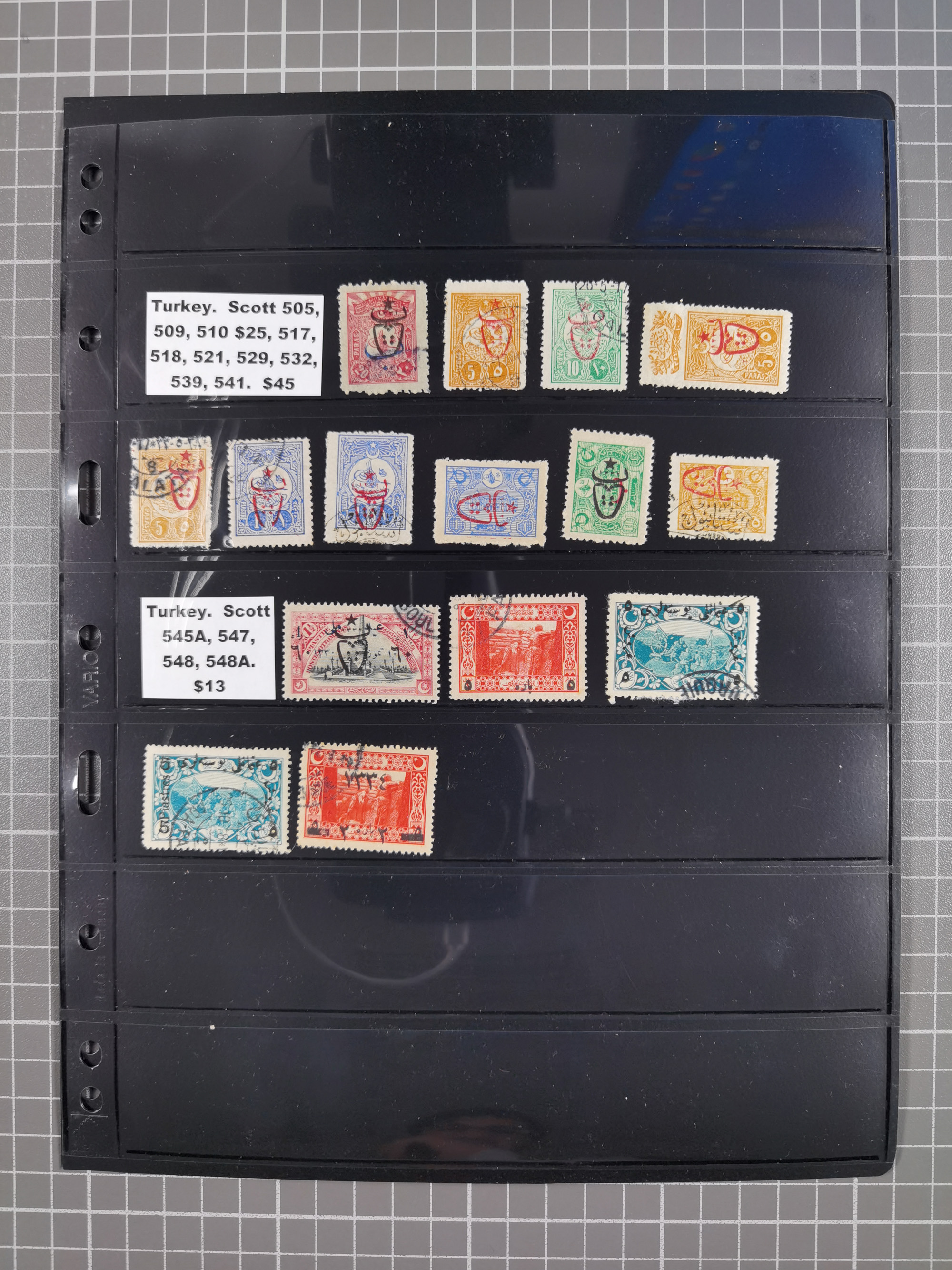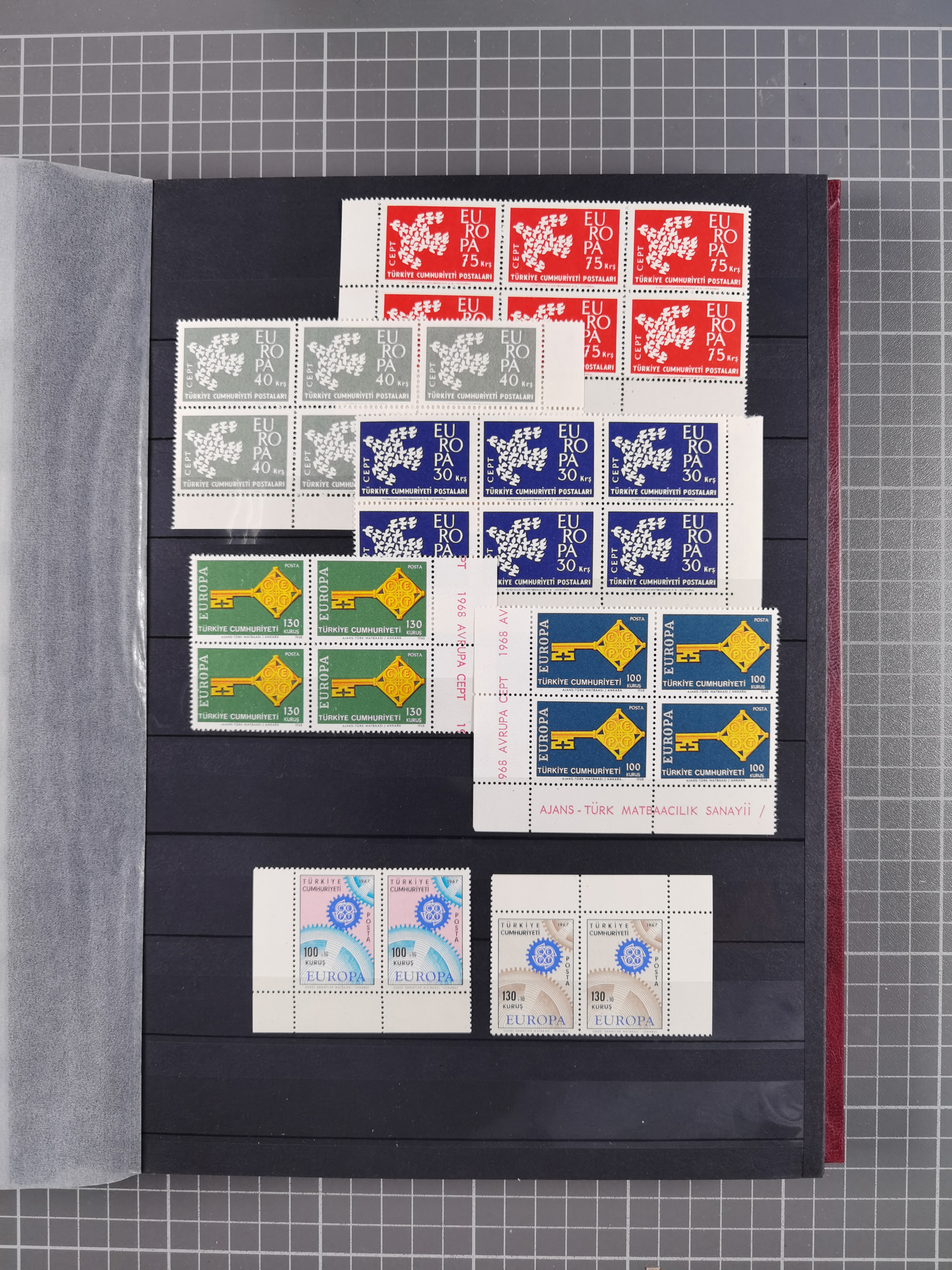 1865/1980 (ca.), Collection of mostly excellent copies of the “Duloz” issues with nice and clear cancellations in a very lovingly designed album, 1 pia. yellow 1871 corner margin block of 15, ‘Arabkir’ on 1875 block of nine, ship cancels ‘Vapur’ and numeral railway marks, 1, 2, 3 and 6 of Smyrna Aidin railway. Lost territories with clear cancellations of Irak, Bulgaria, Greece with islands, Lebanon & Palestine, Albania and Yugoslawia, nice pieces and multiples, neatly in two albums, plus 22 Duloz envelopes. Coles & Walker handbooks Part 1, 2 and 4.
