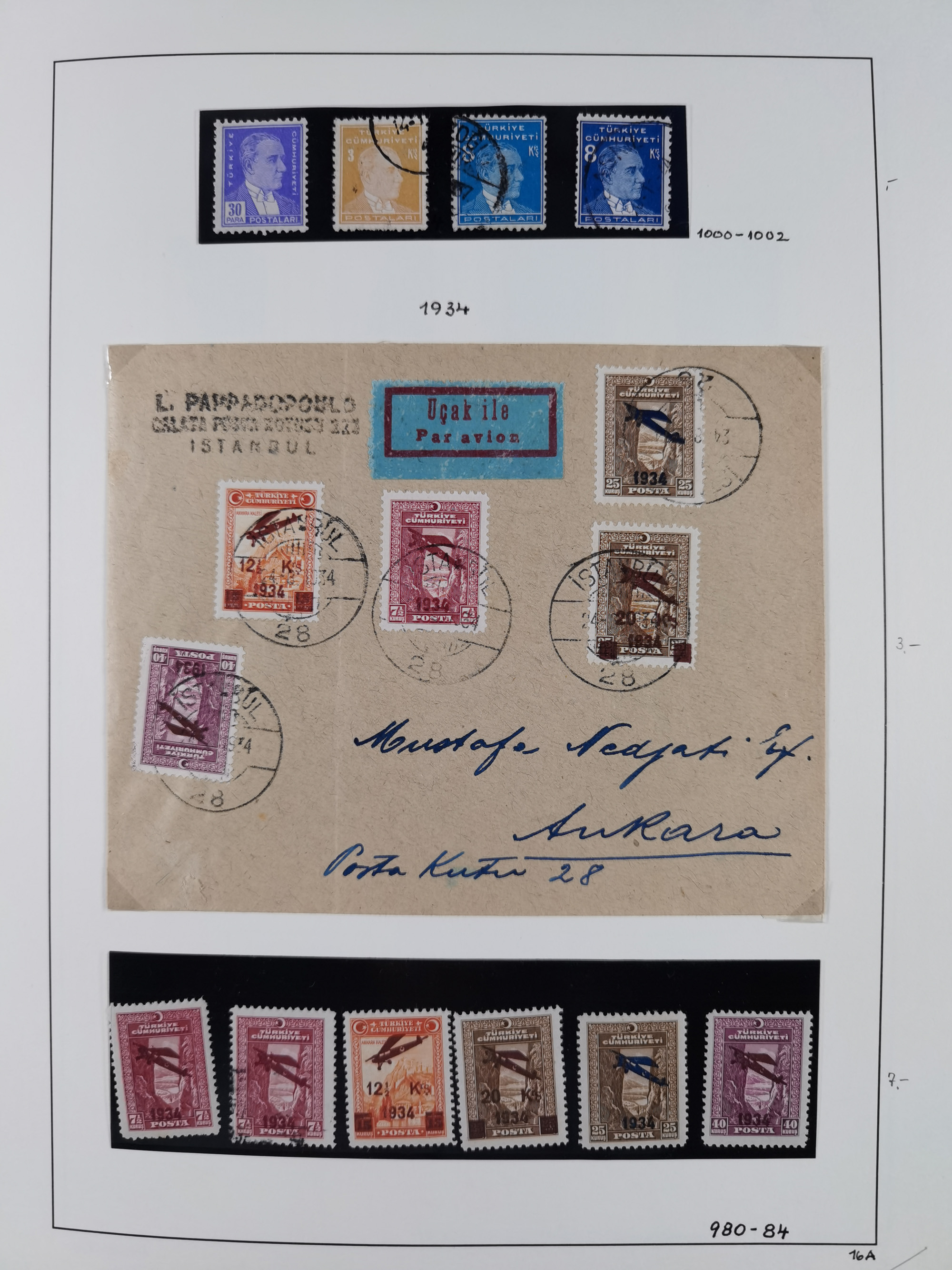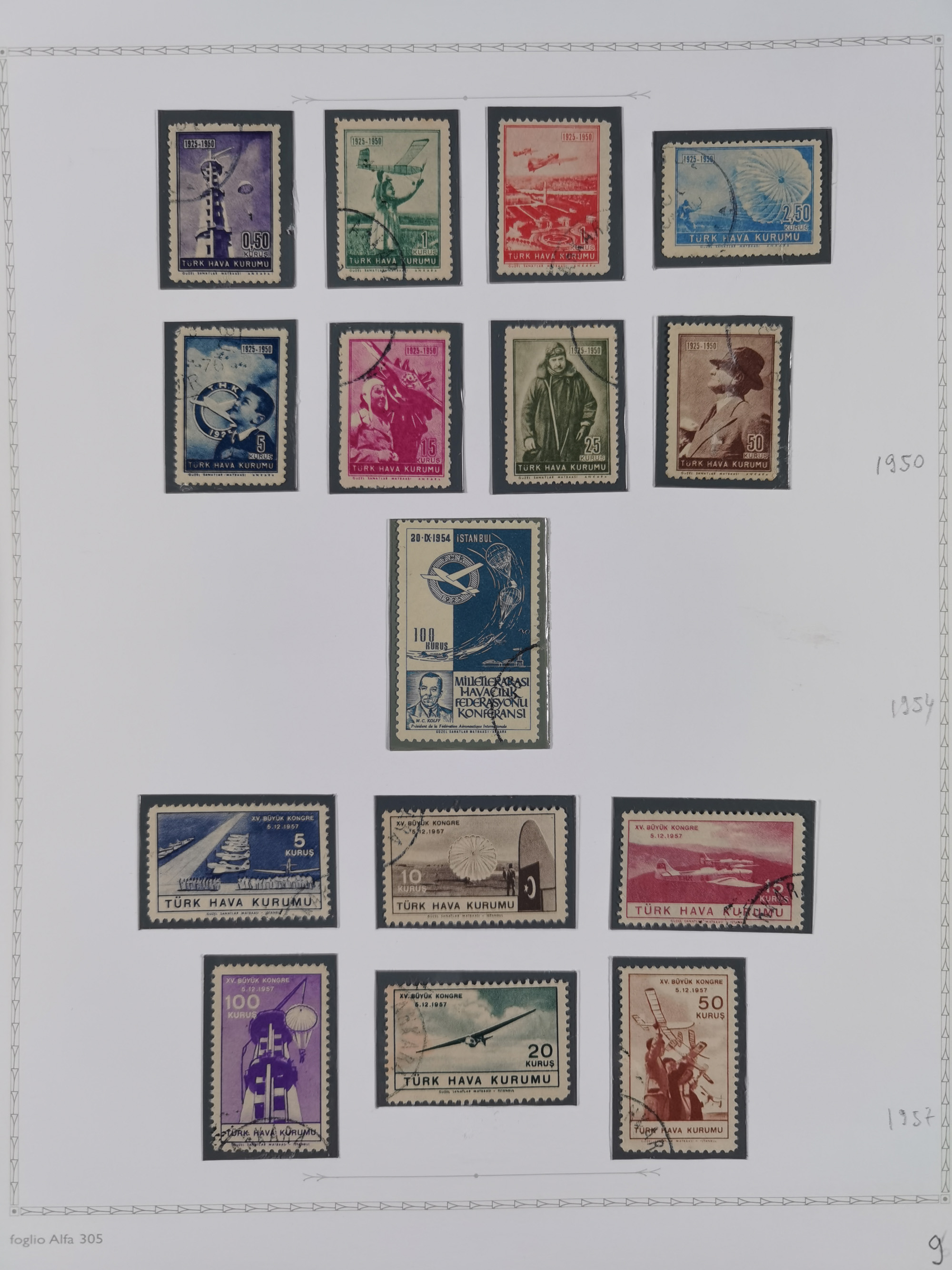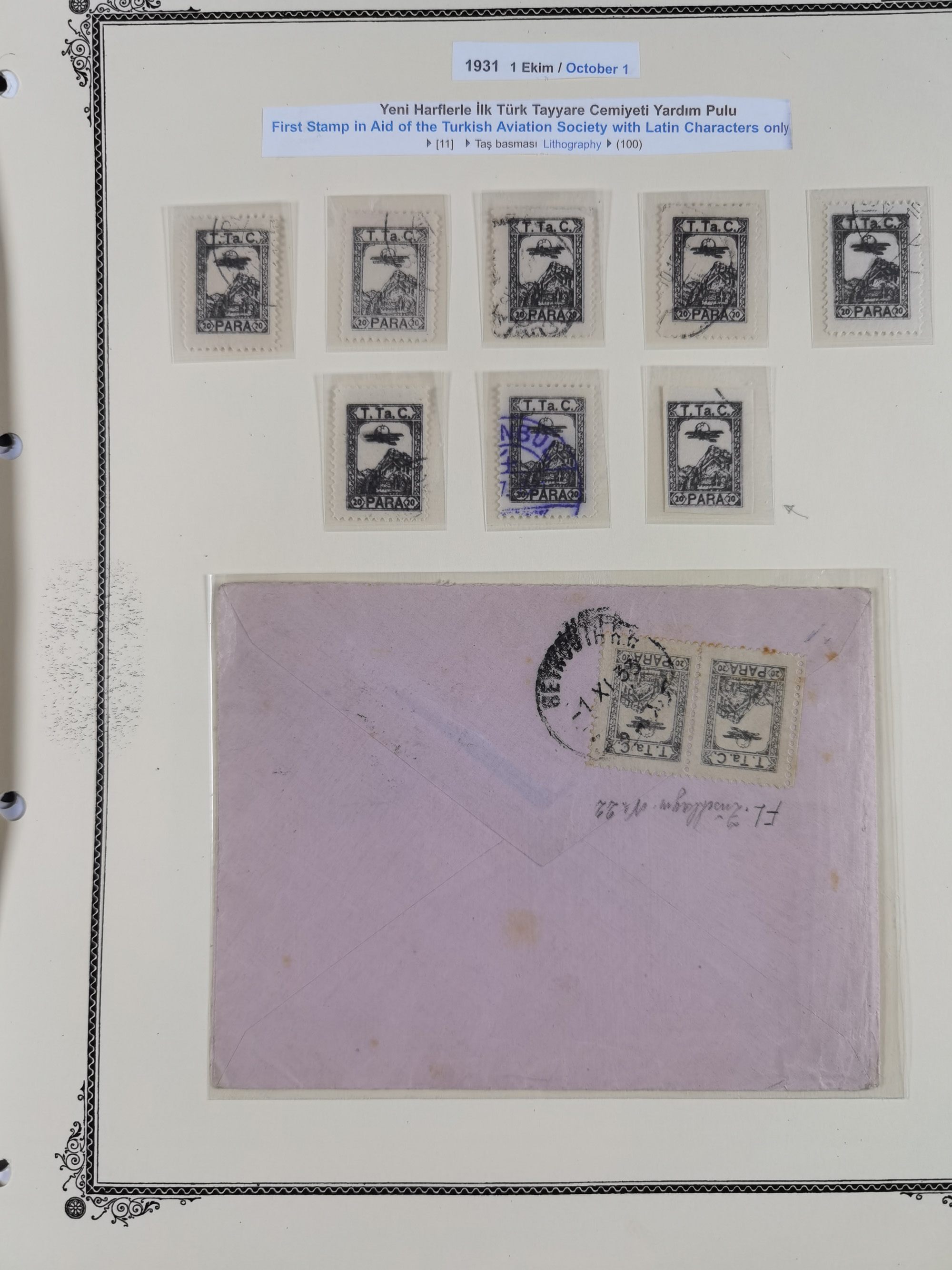 1925/60, Turkish Air Assosiation Collection of stamps, covers and documents including early issues, revenues, aid stamps with covers, mounted on 25 album pages, mostly fine.