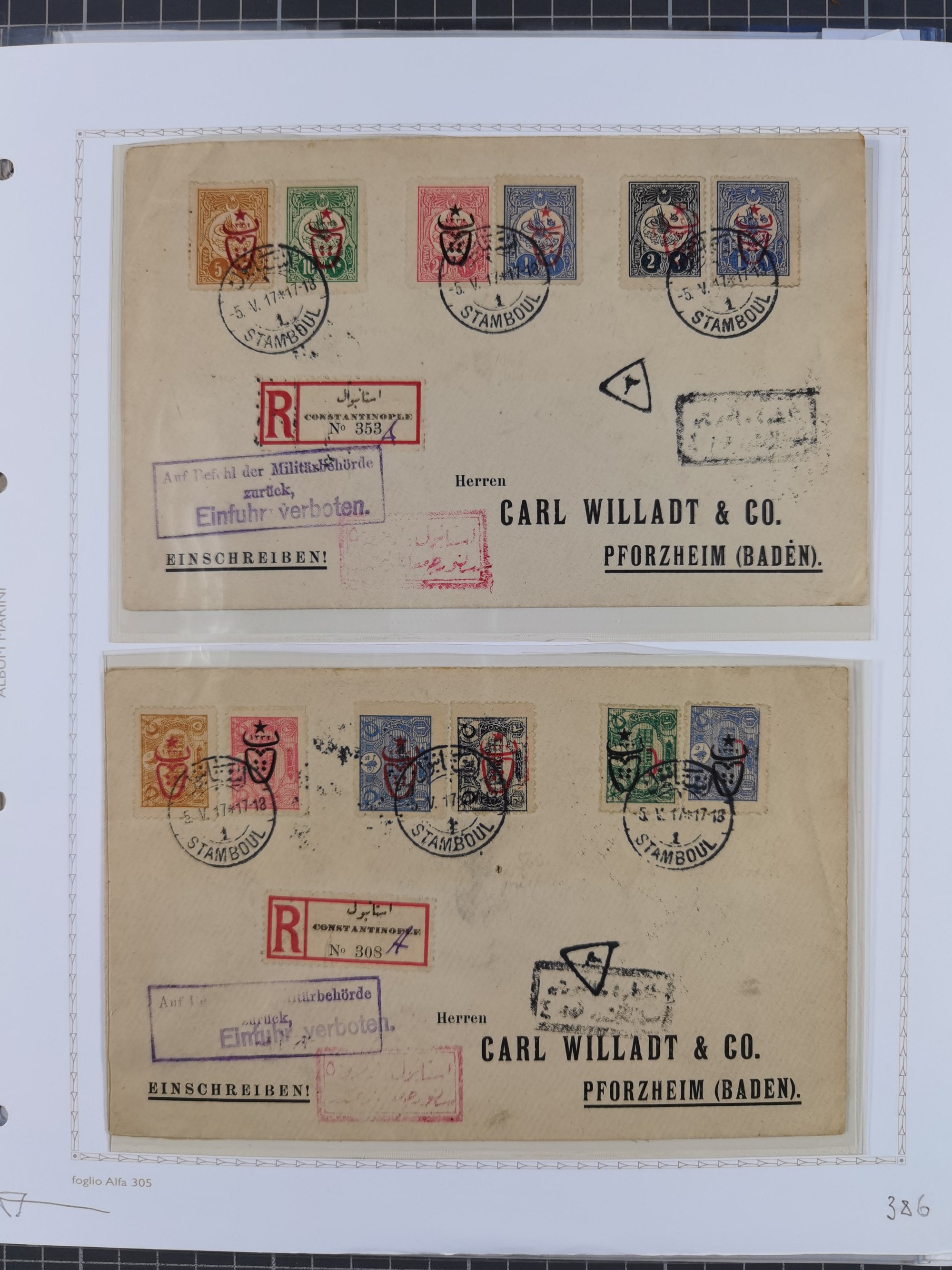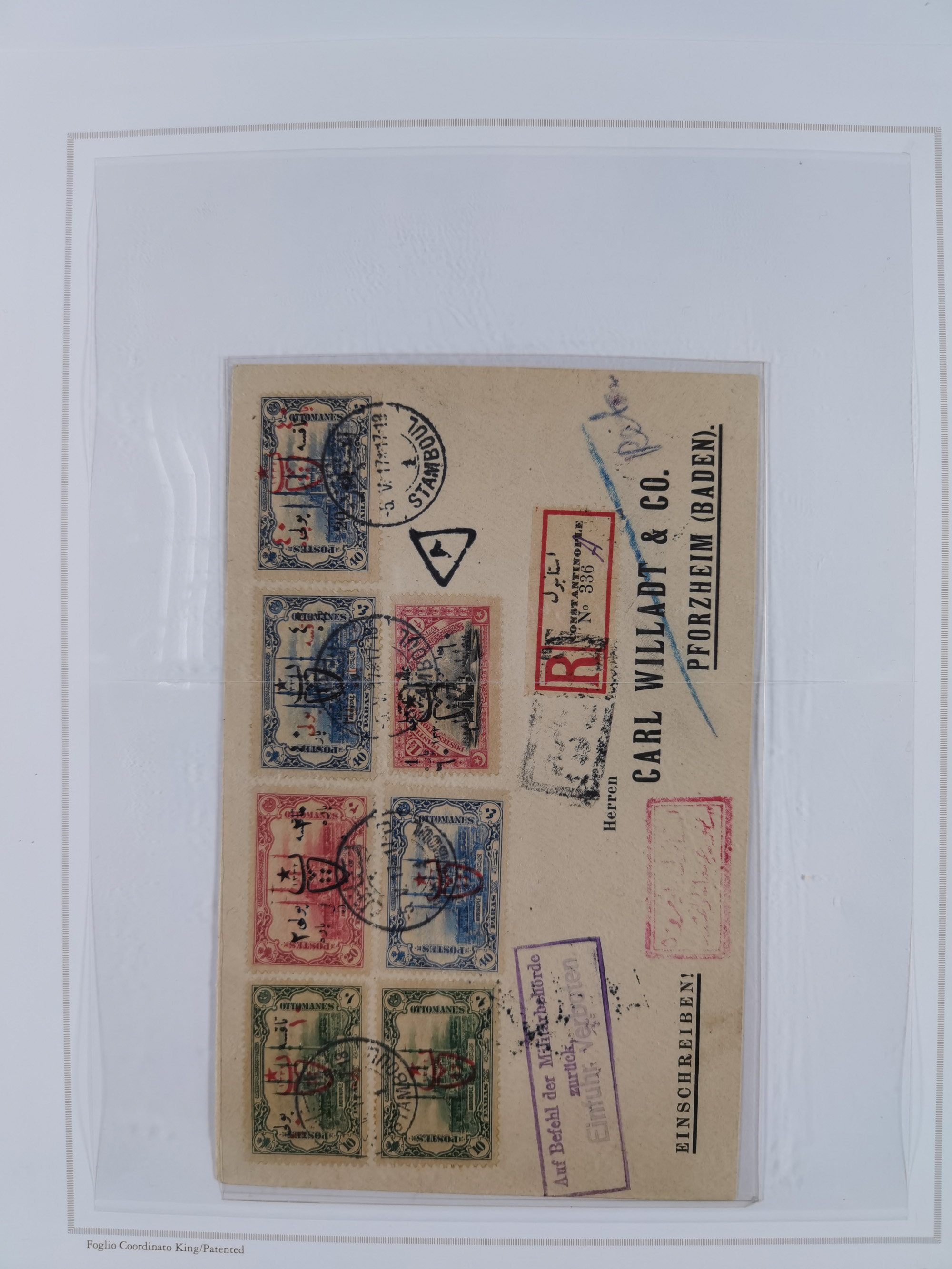 1917, OX-HEAD (PTT) Issues specialized collection on 24 selfmade album pages including a mainly used set, many high values 25 pia. on piece, some blocks und multiples, 19 covers with pure PTT-Frankings, some of them registered to Germany, a collection that is difficult to assemble in such richness.