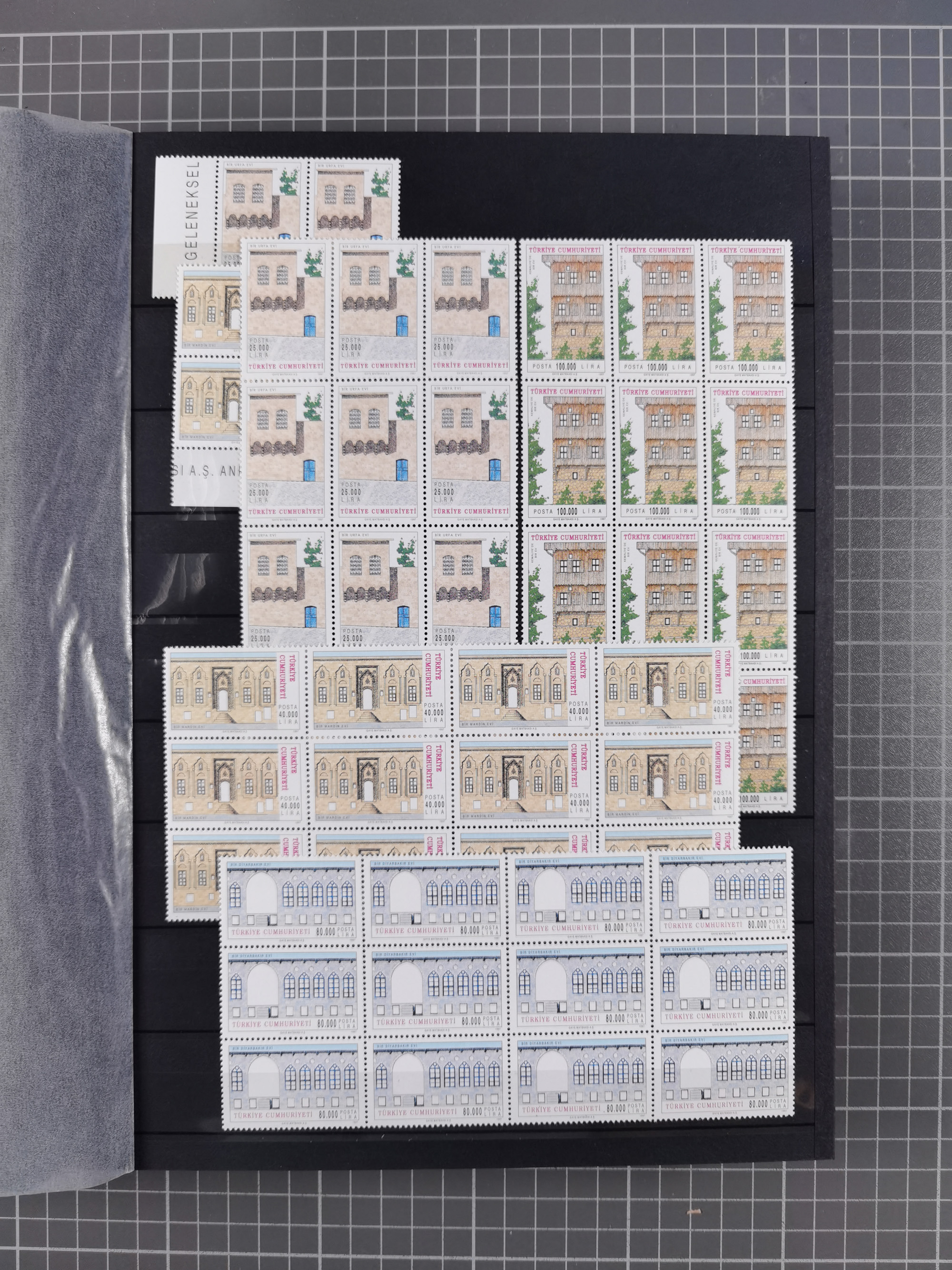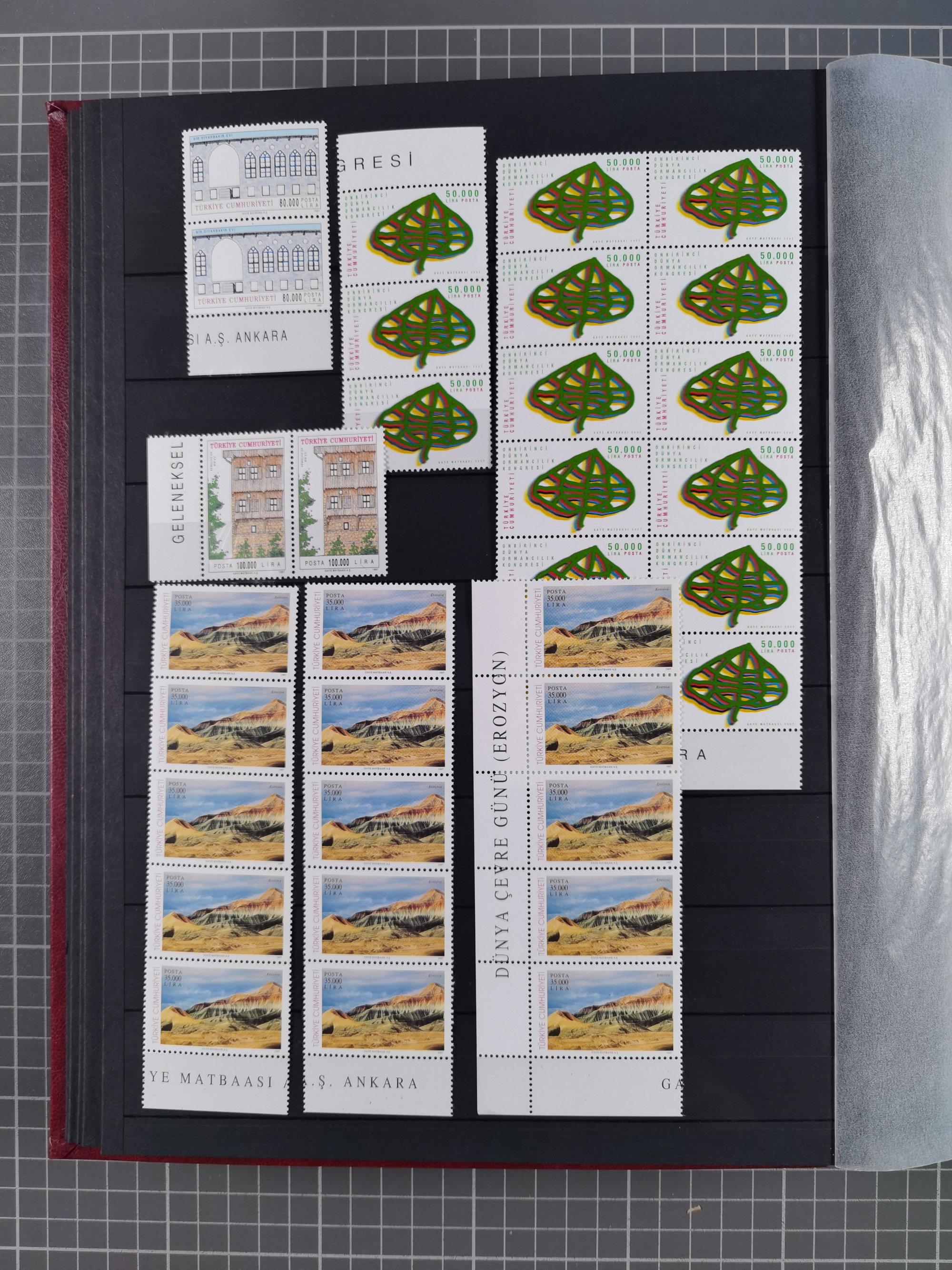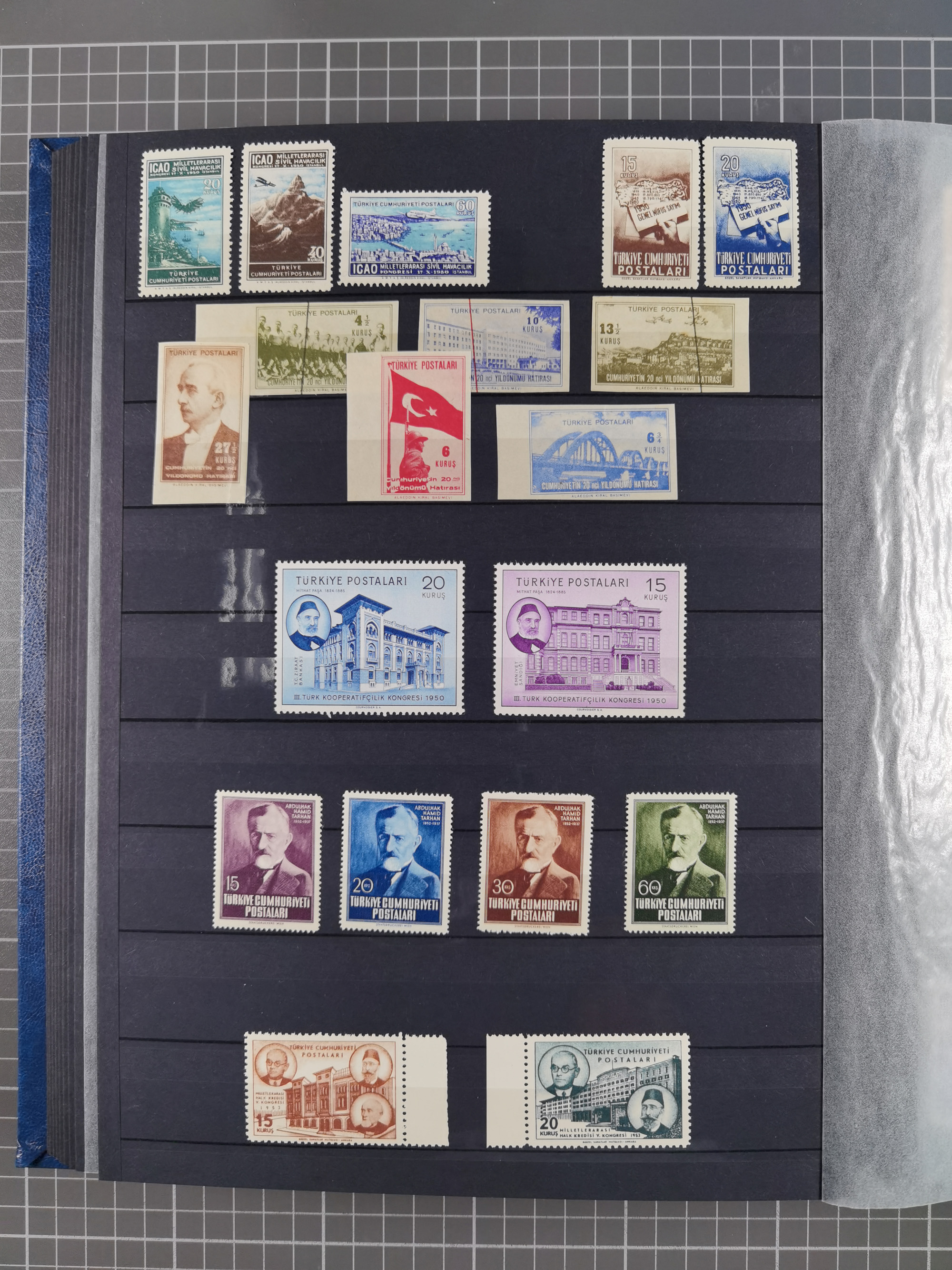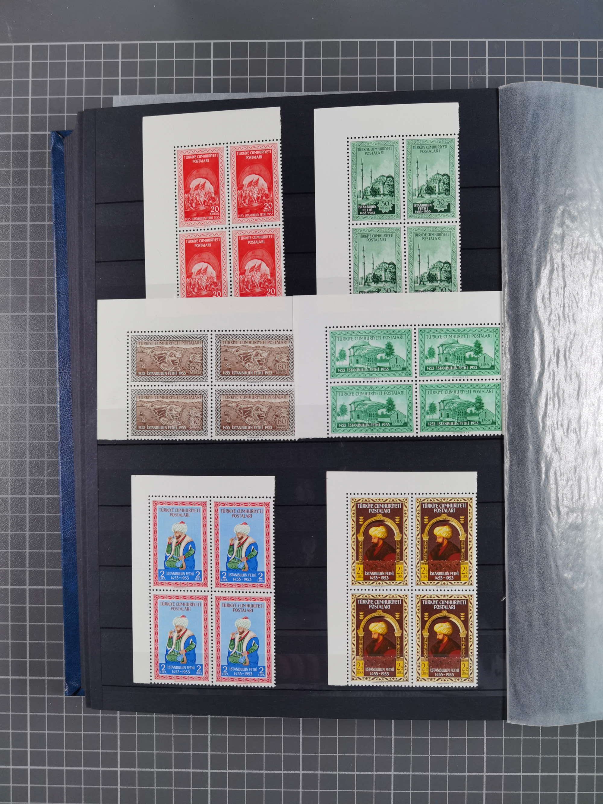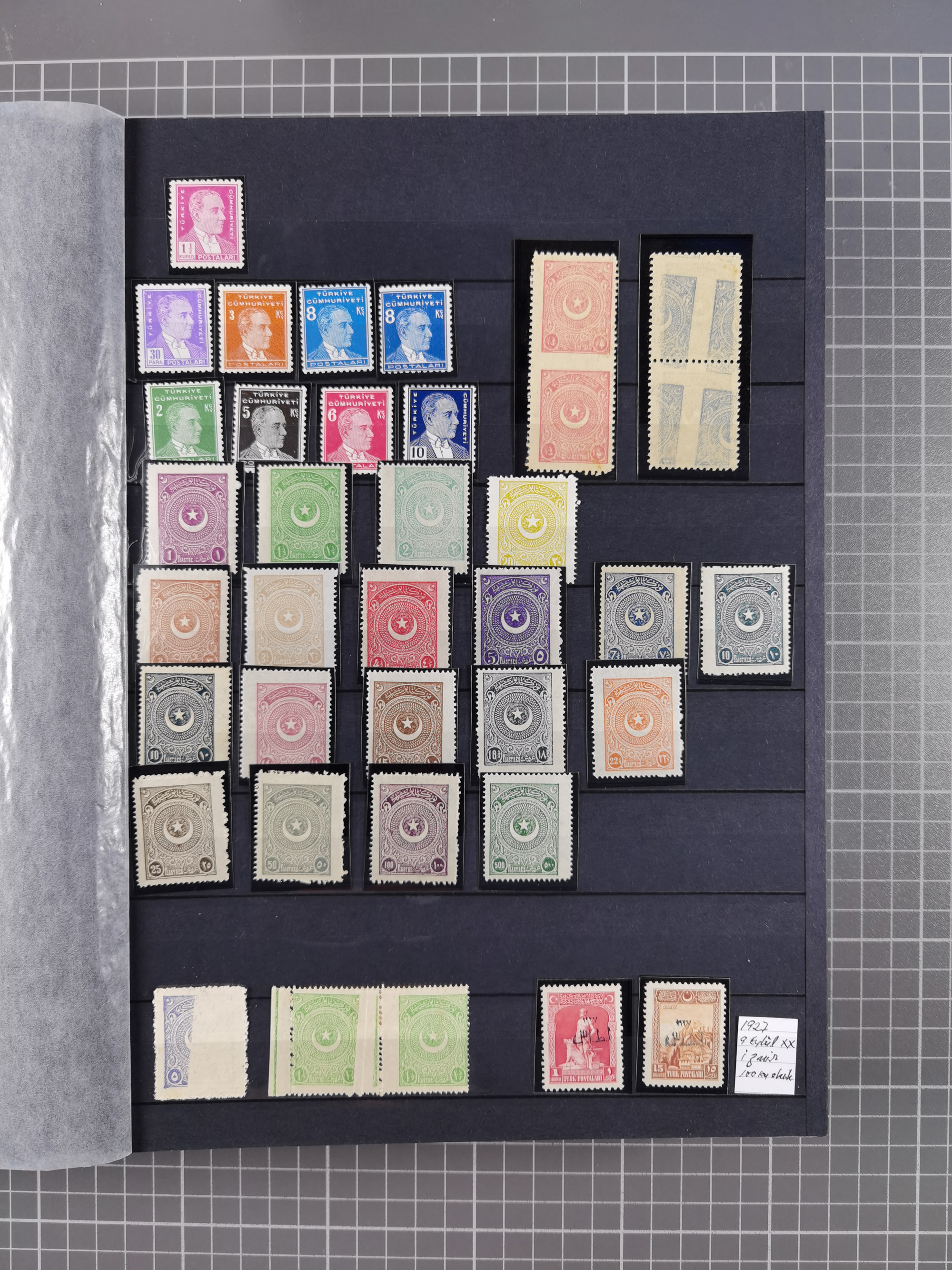 1921/55, valuable holding in stock book with many better issues, often in blocks, some varieties and specialities, containing for instance First Adana set (Mi. 754-66), Crescent issue with 500 pia. green (Mi.825) and Sivas Railway complete sets unused, Women Congress mnh, imperf sets, air mails and official issues in blocks of four, etc. A great lot
