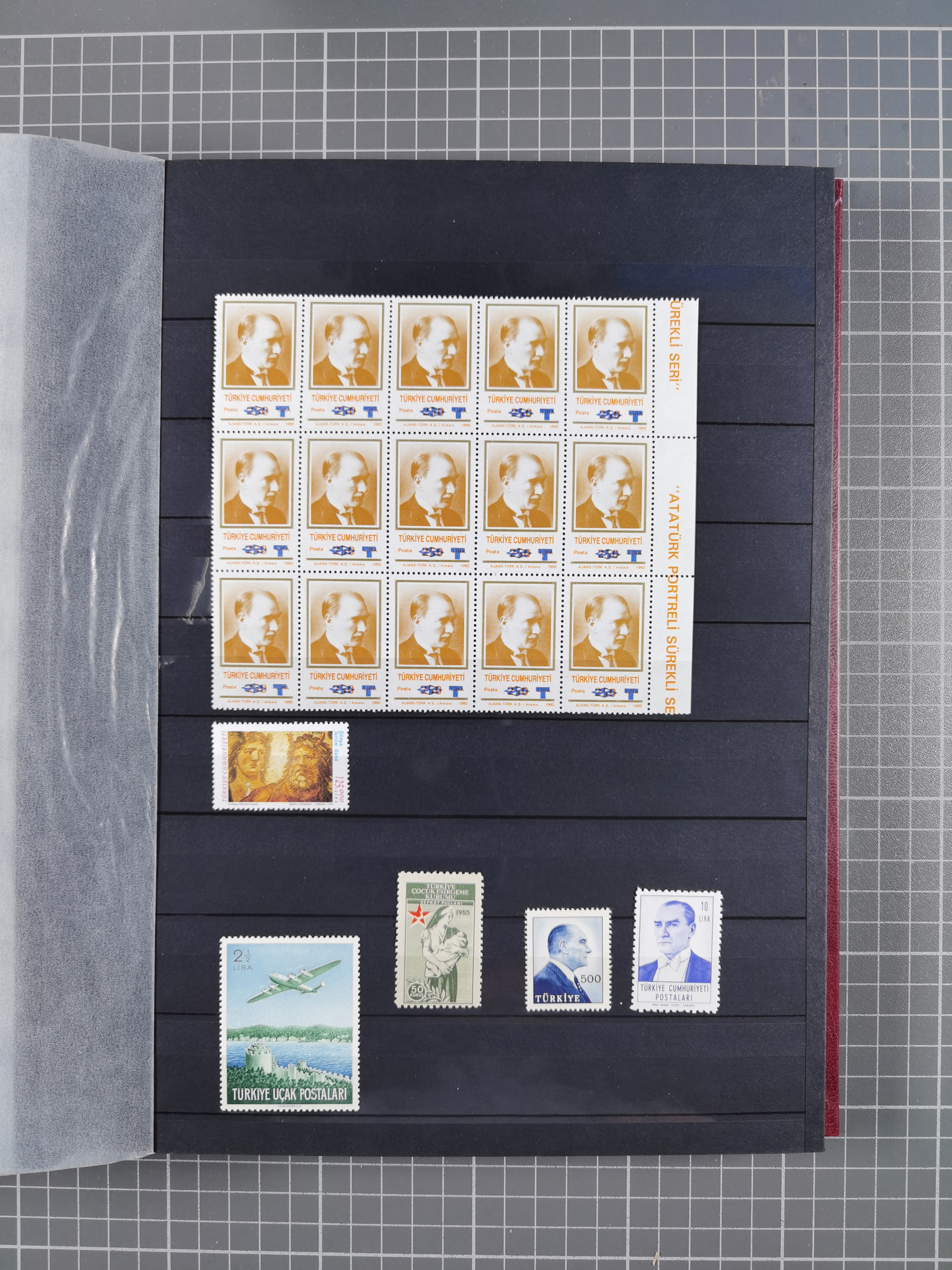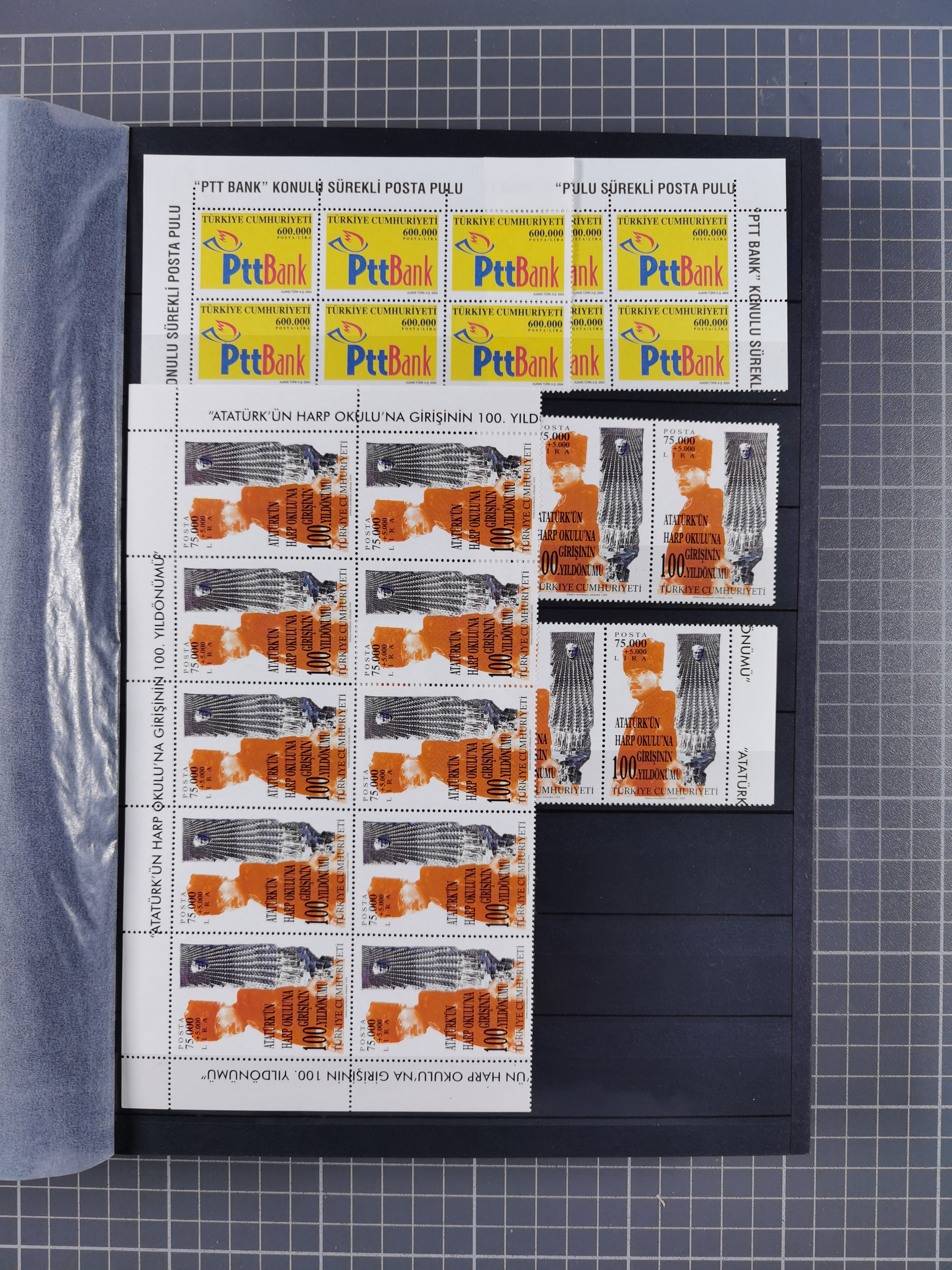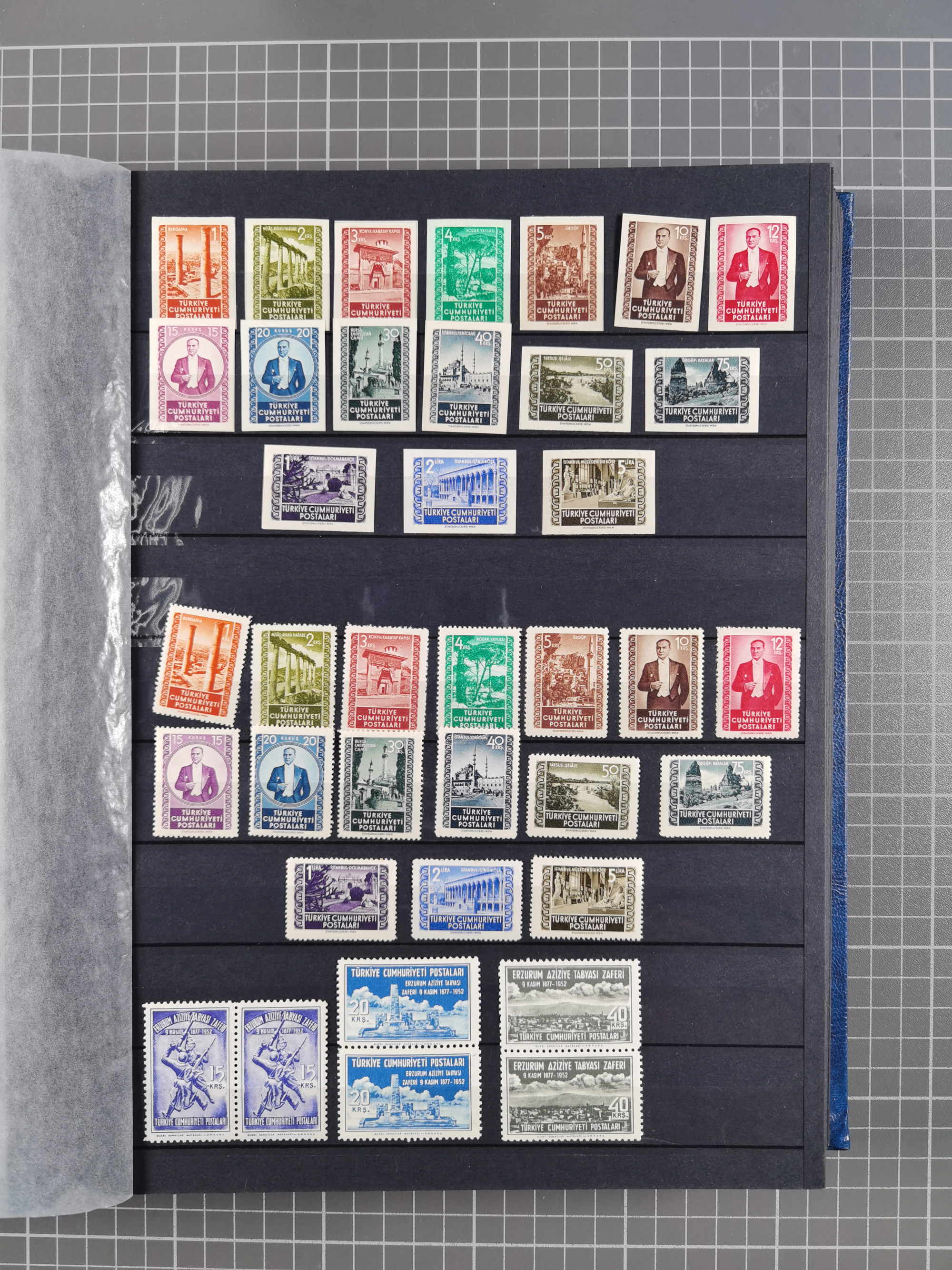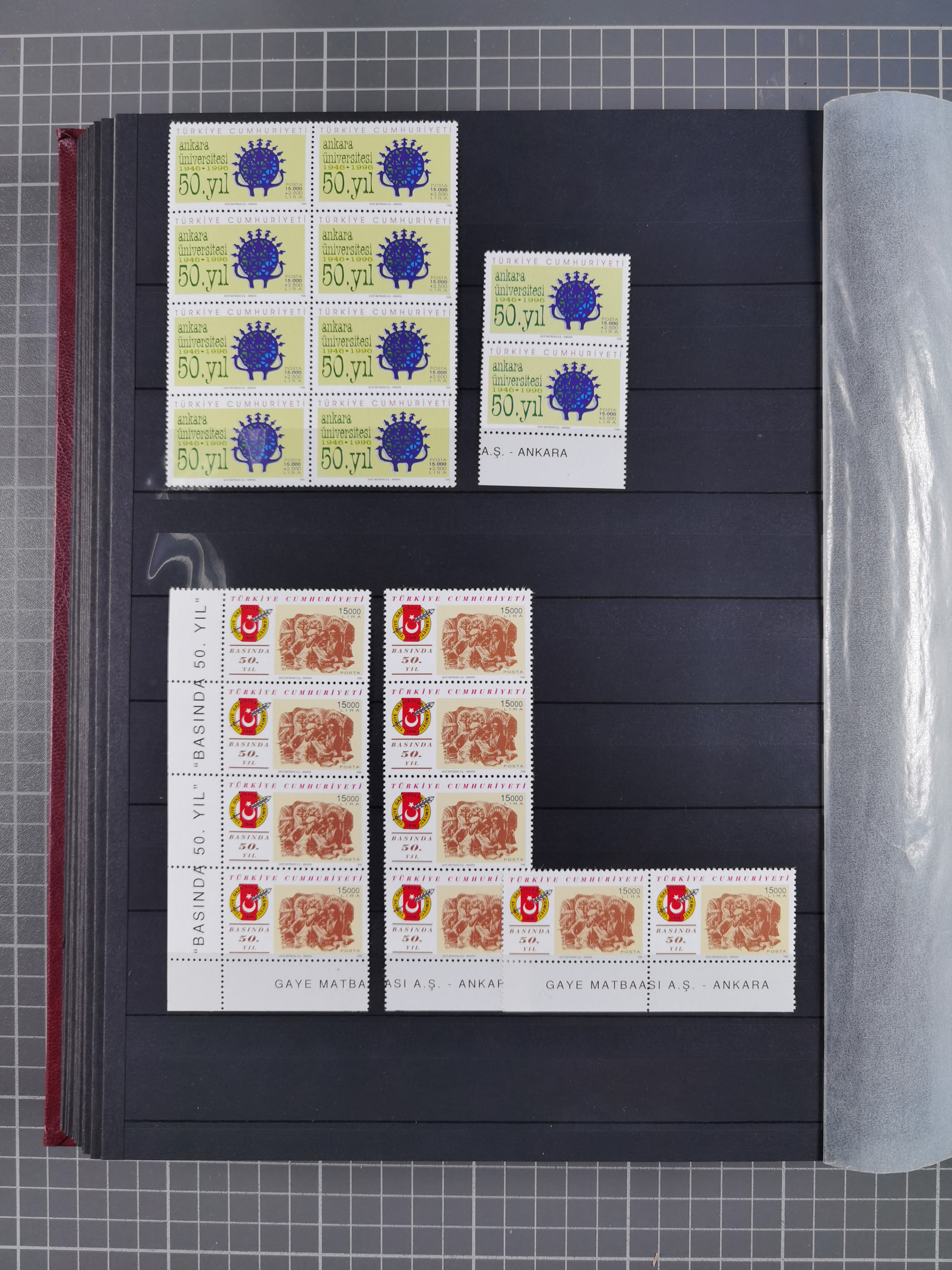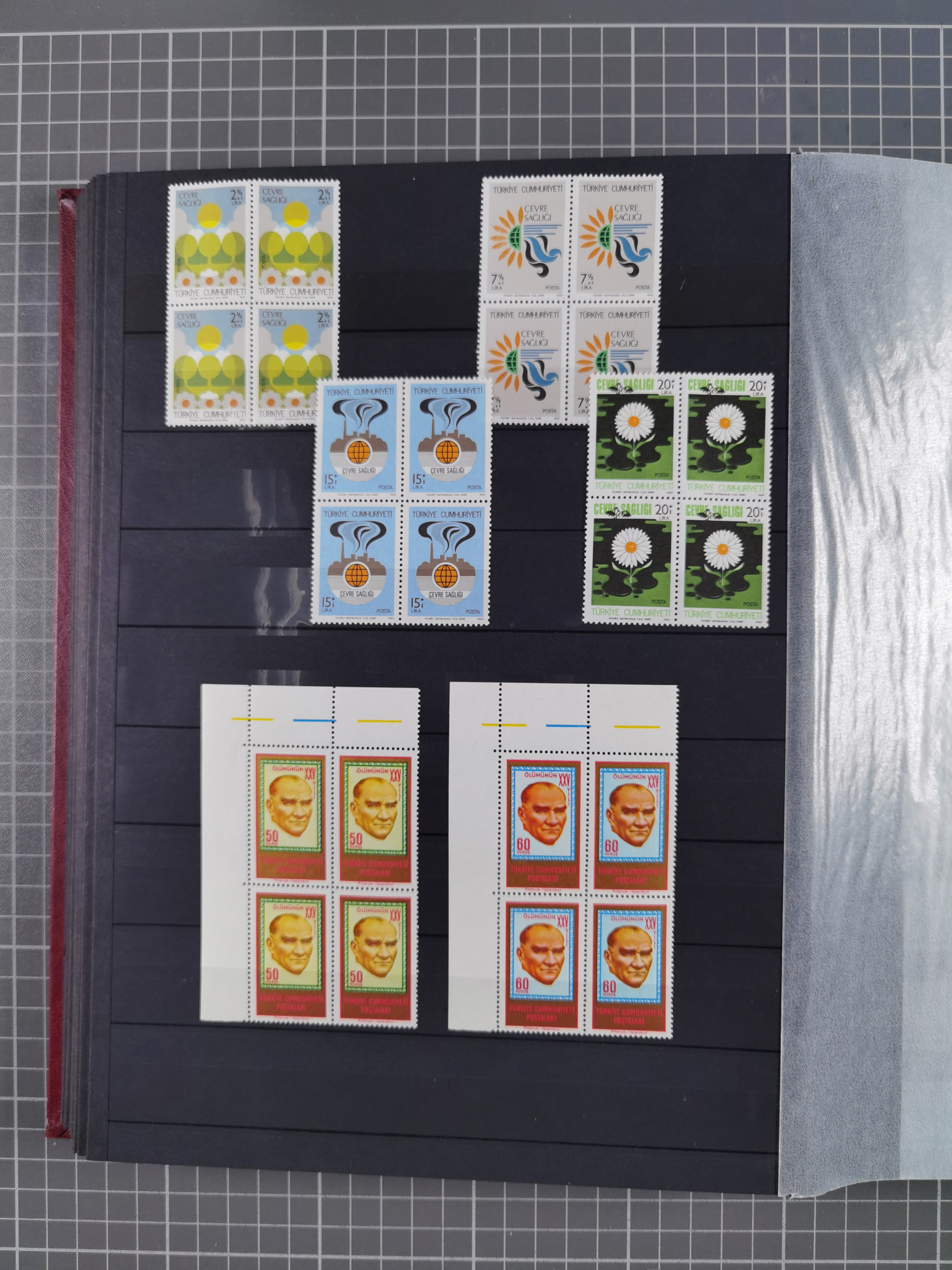 1921/55, valuable holding in stock book with many better issues, often in blocks, some varieties and specialities, containing for instance First Adana set (Mi. 754-66), Crescent issue with 500 pia. green (Mi.825) and Sivas Railway complete sets unused, Women Congress mnh, imperf sets, air mails and official issues in blocks of four, etc. A great lot