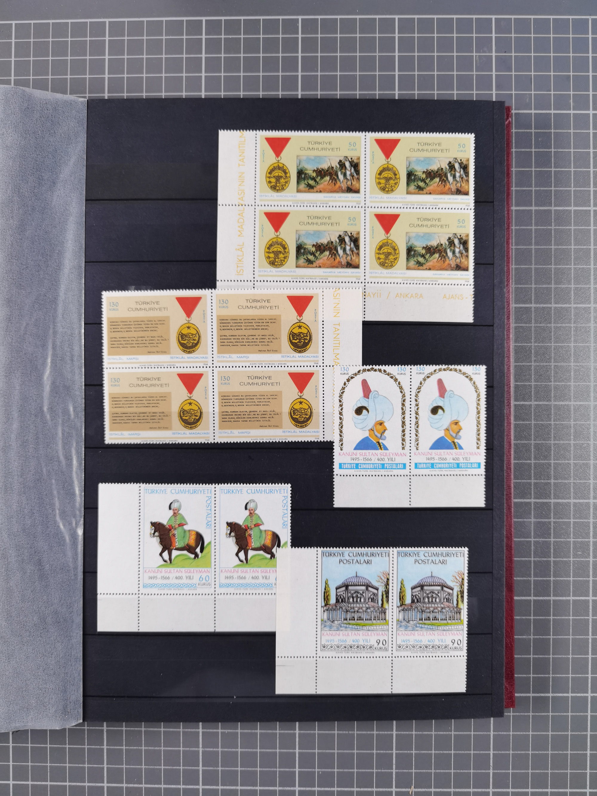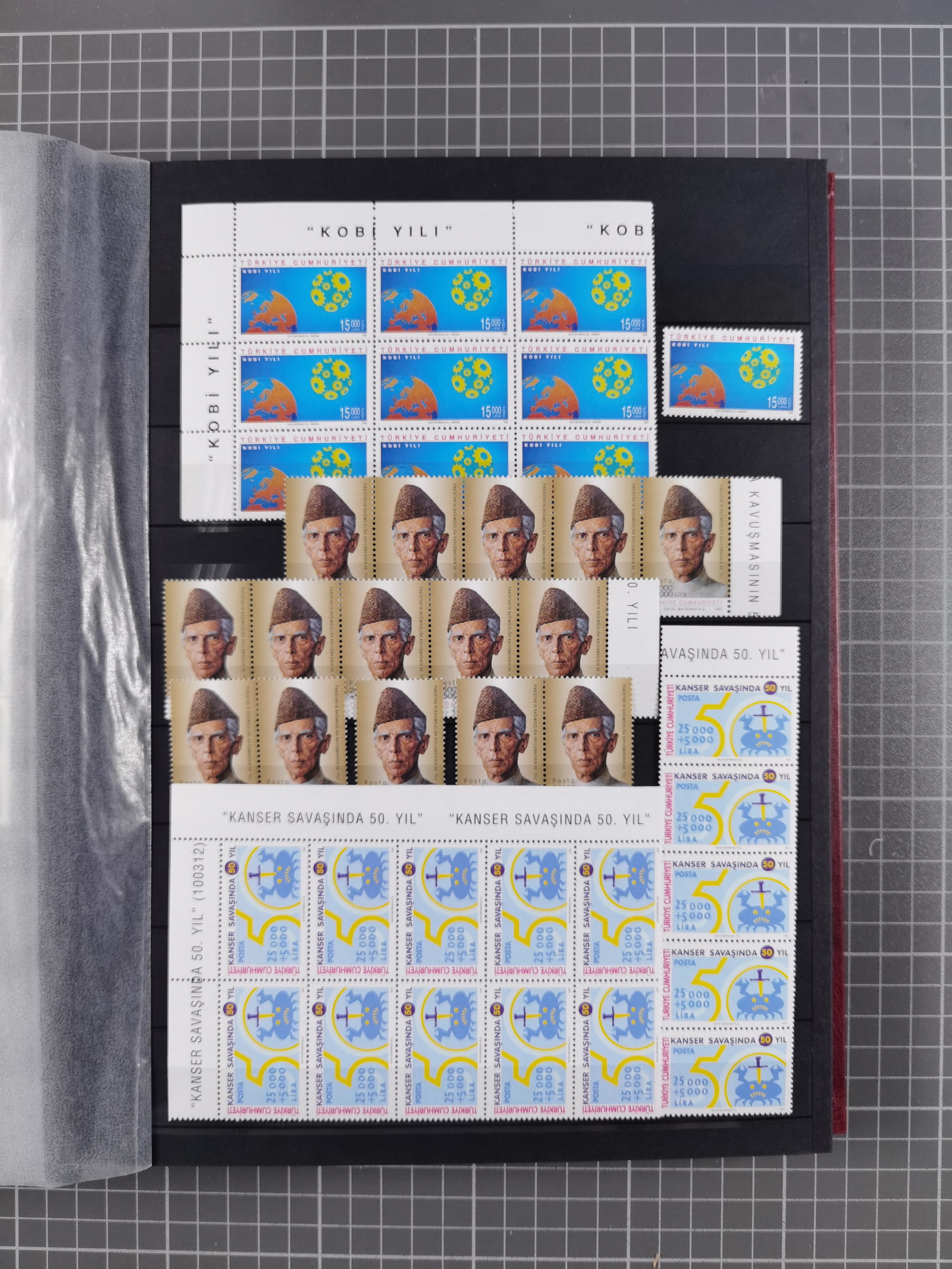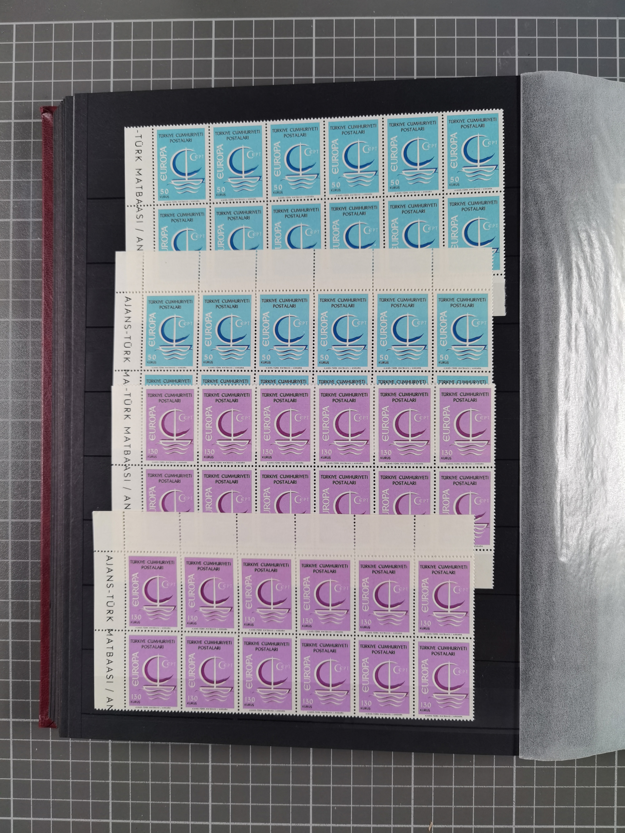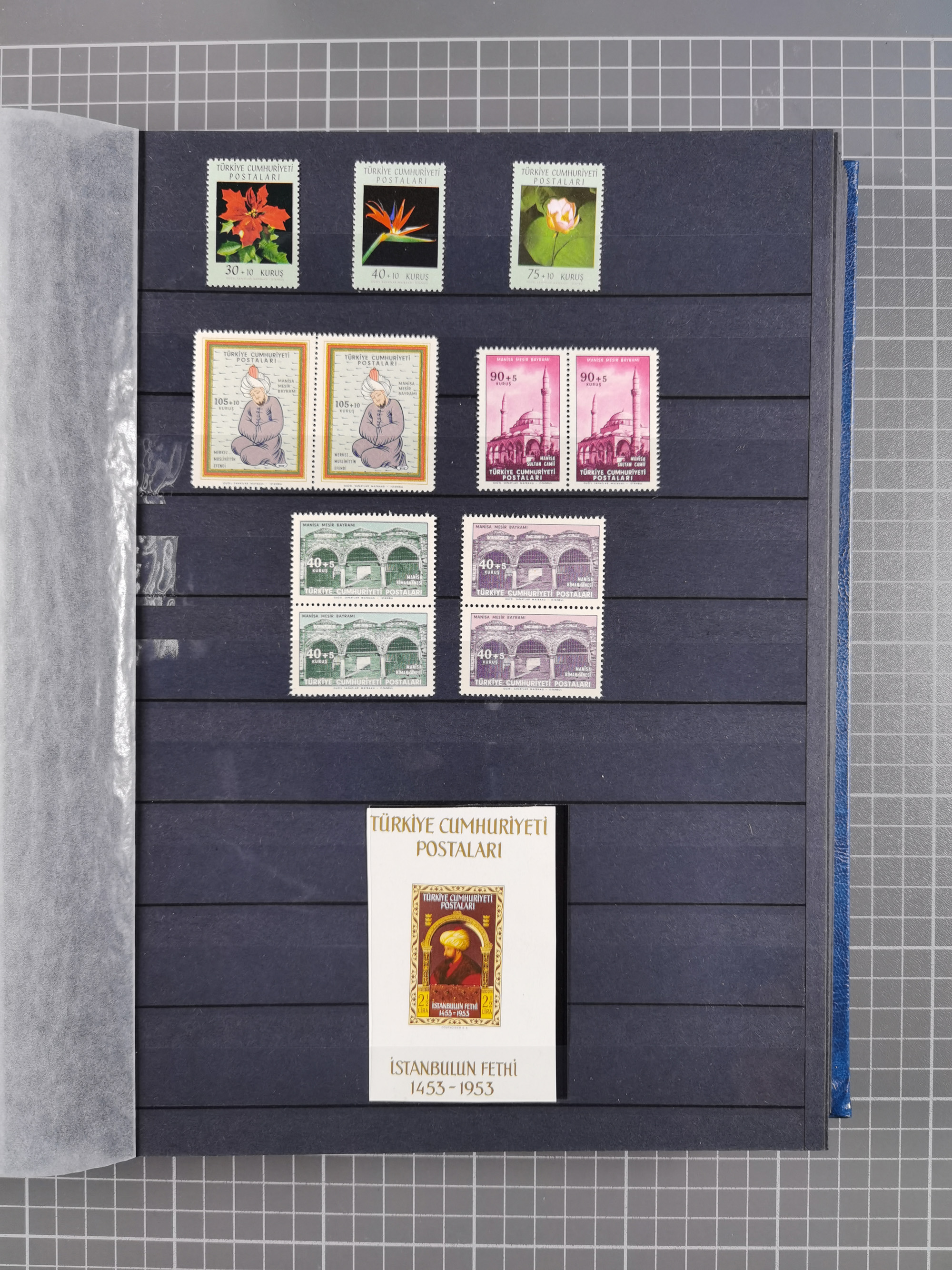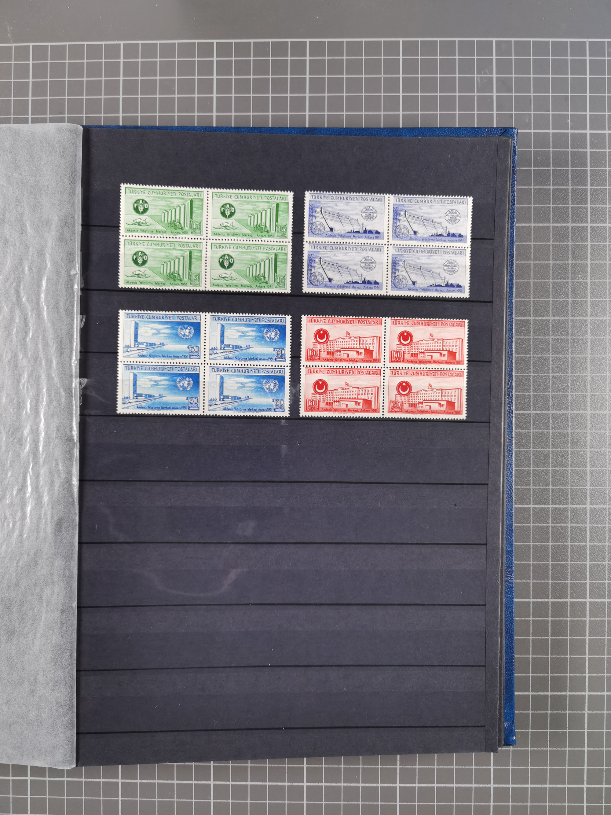 1921/55, valuable holding in stock book with many better issues, often in blocks, some varieties and specialities, containing for instance First Adana set (Mi. 754-66), Crescent issue with 500 pia. green (Mi.825) and Sivas Railway complete sets unused, Women Congress mnh, imperf sets, air mails and official issues in blocks of four, etc. A great lot