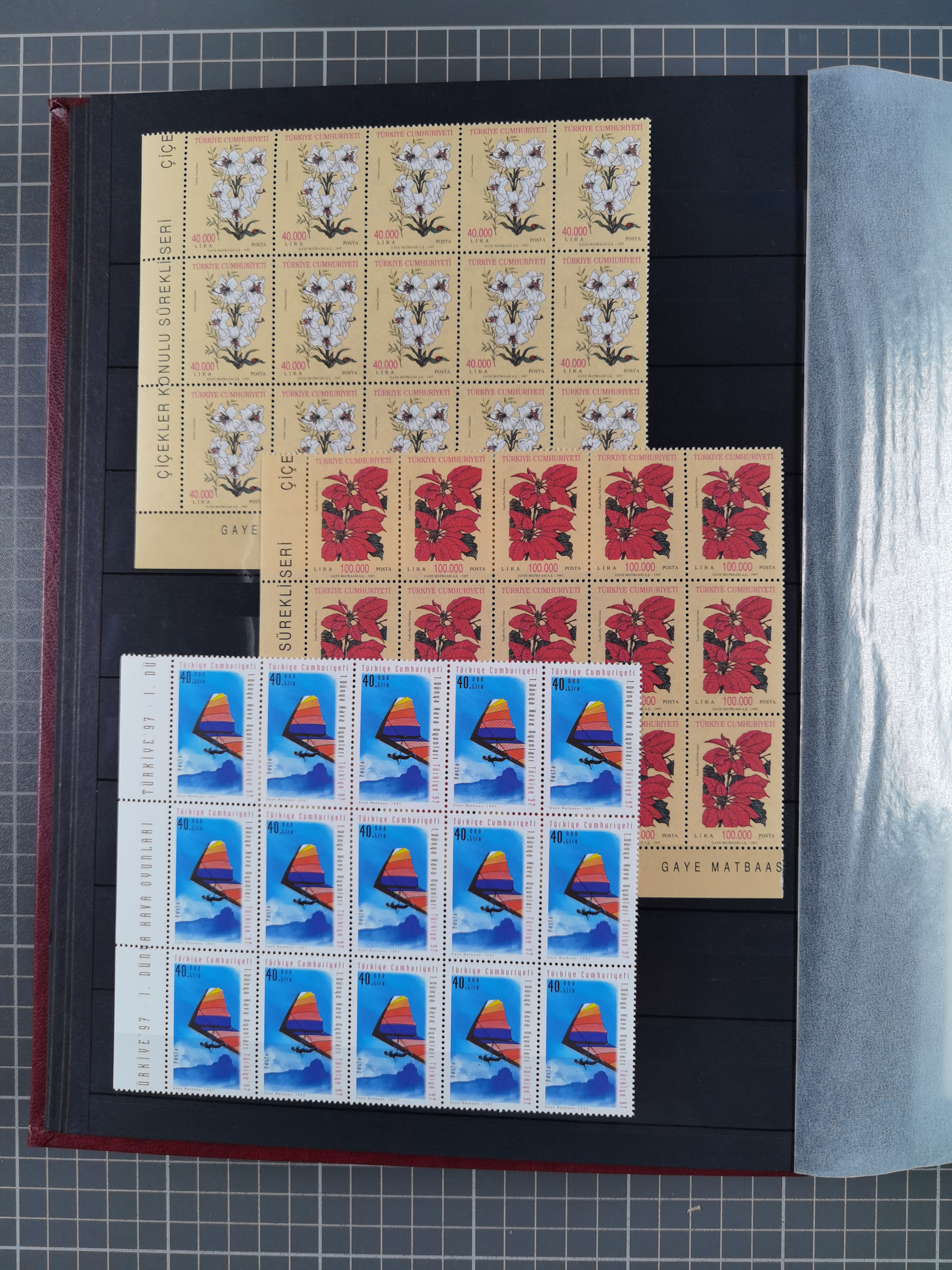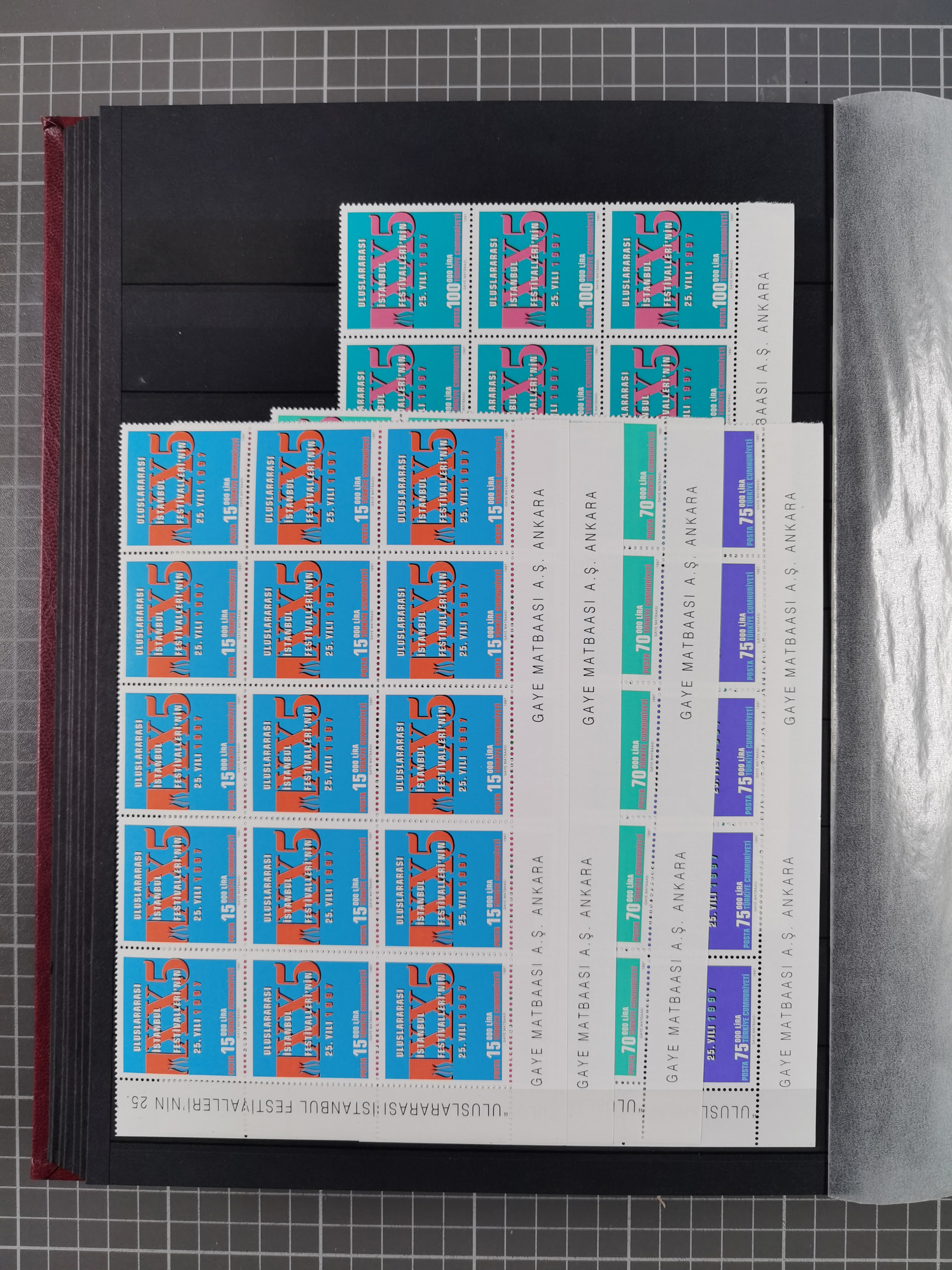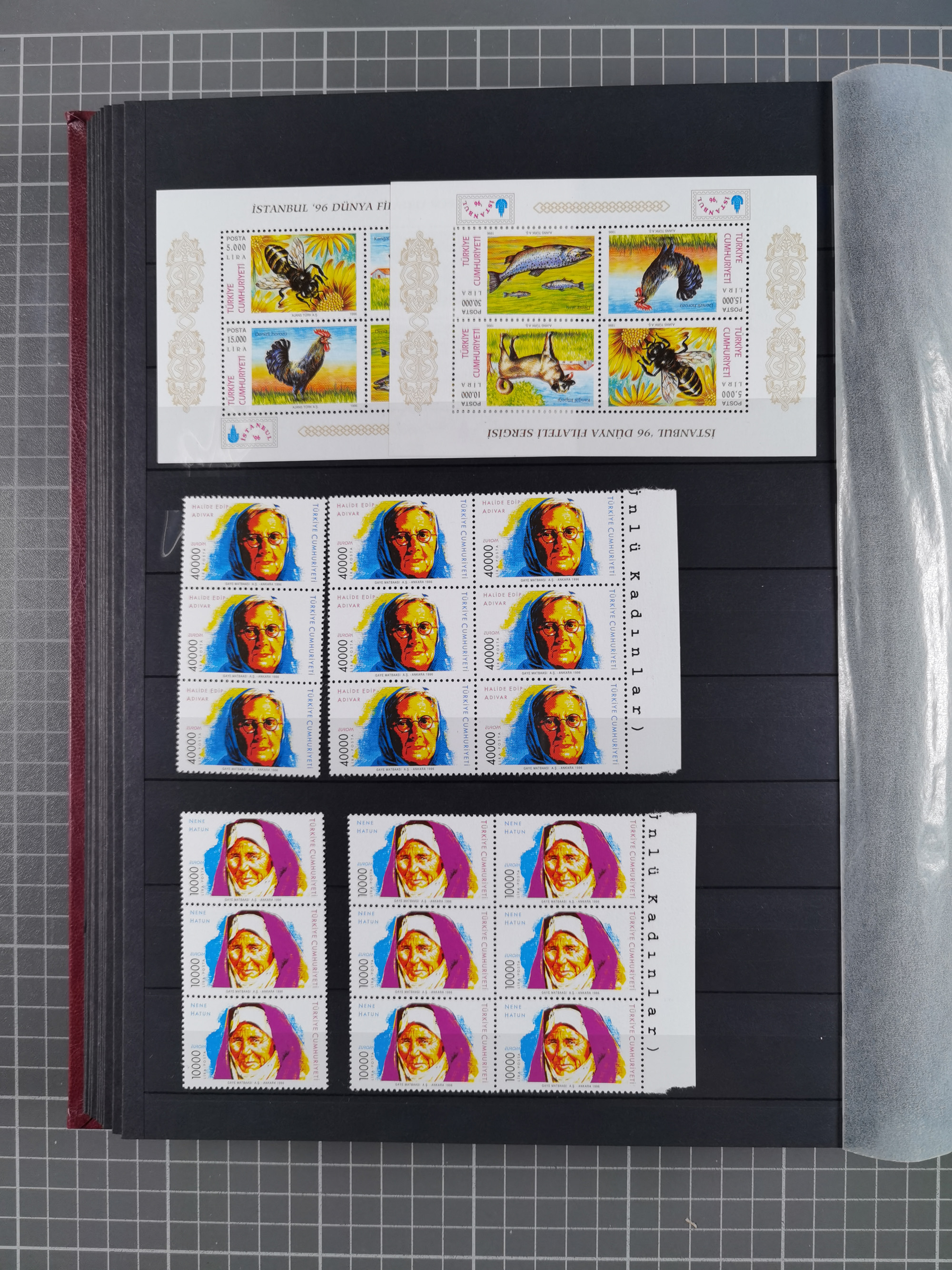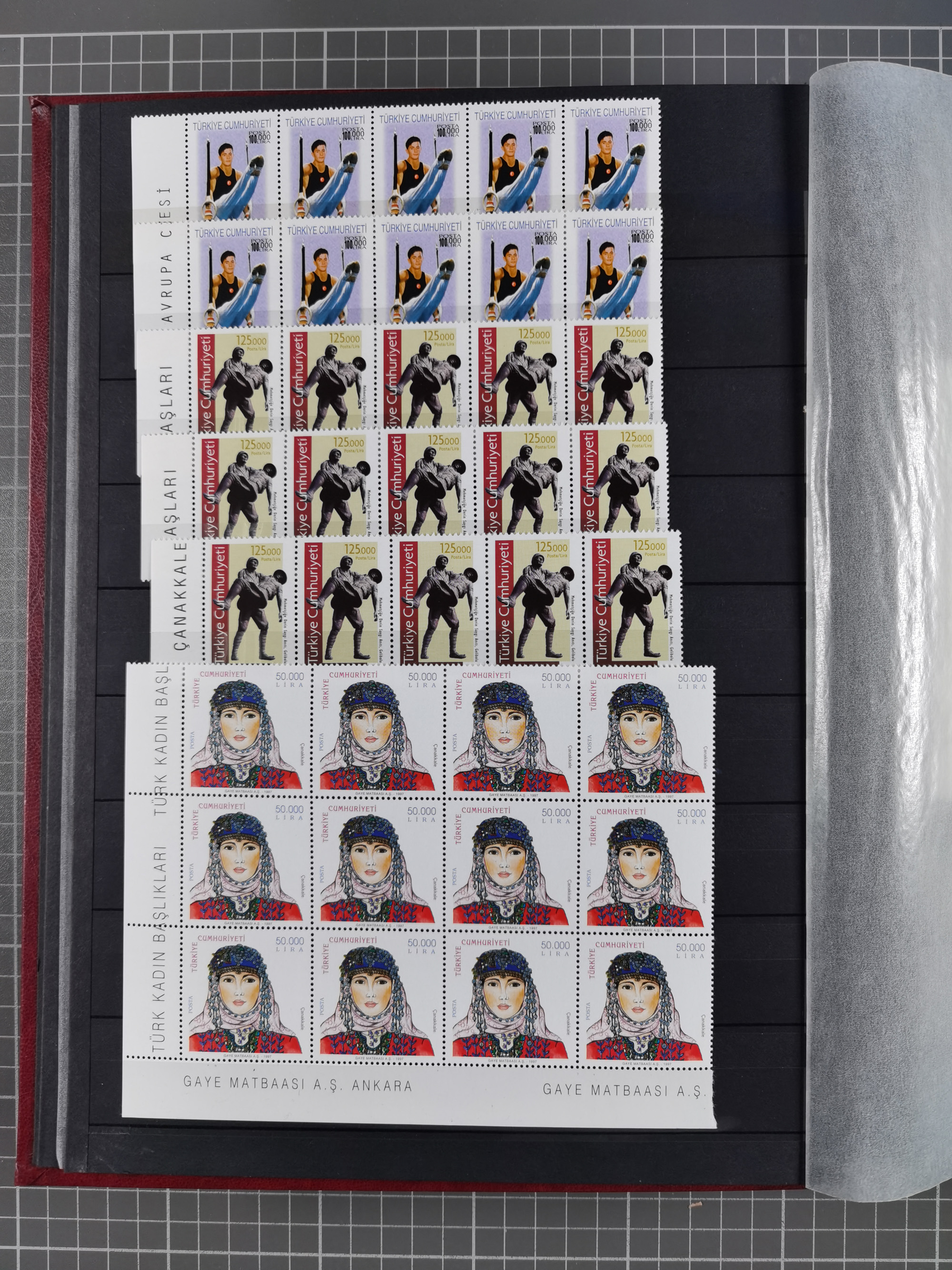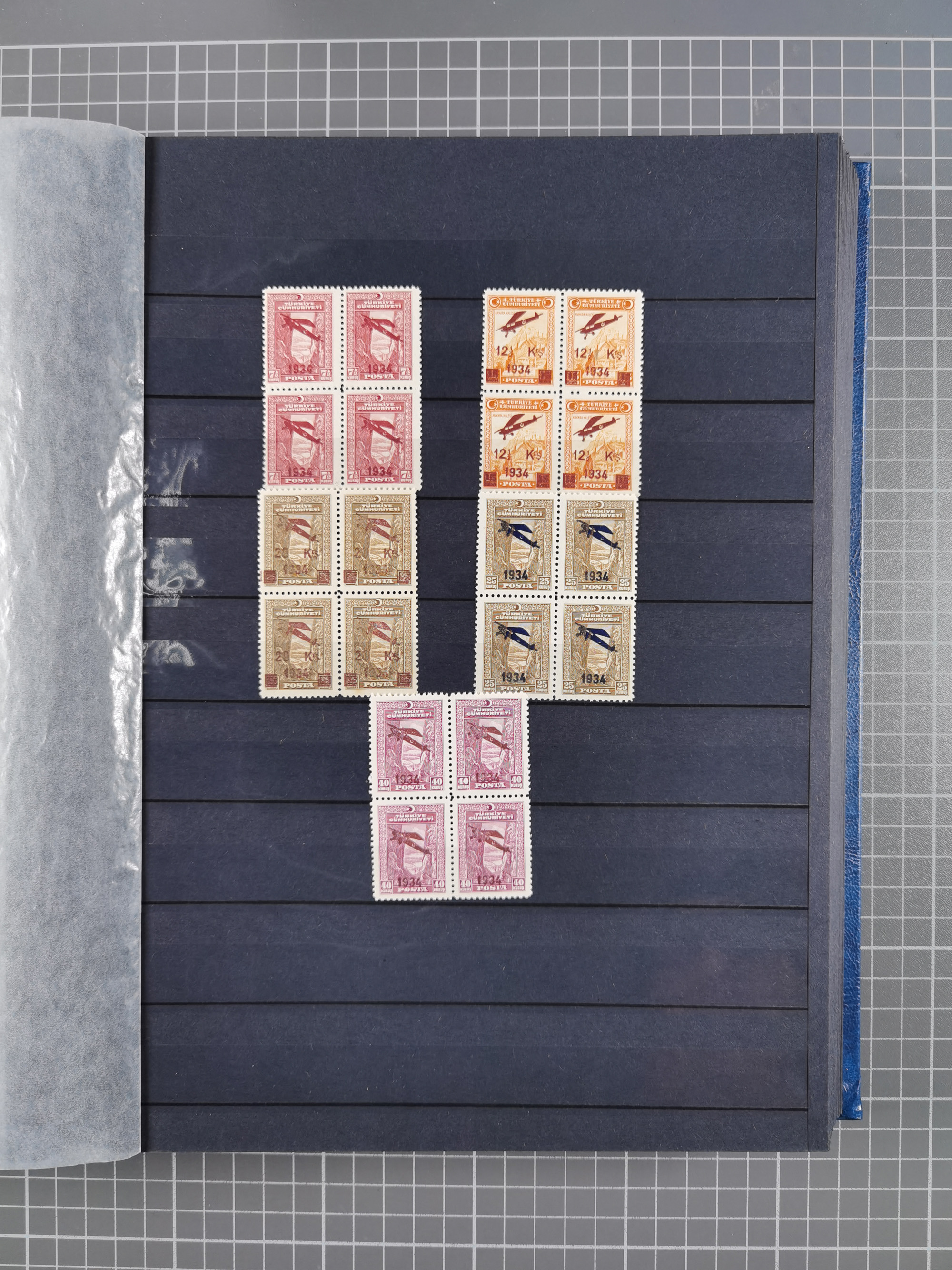 1921/55, valuable holding in stock book with many better issues, often in blocks, some varieties and specialities, containing for instance First Adana set (Mi. 754-66), Crescent issue with 500 pia. green (Mi.825) and Sivas Railway complete sets unused, Women Congress mnh, imperf sets, air mails and official issues in blocks of four, etc. A great lot
