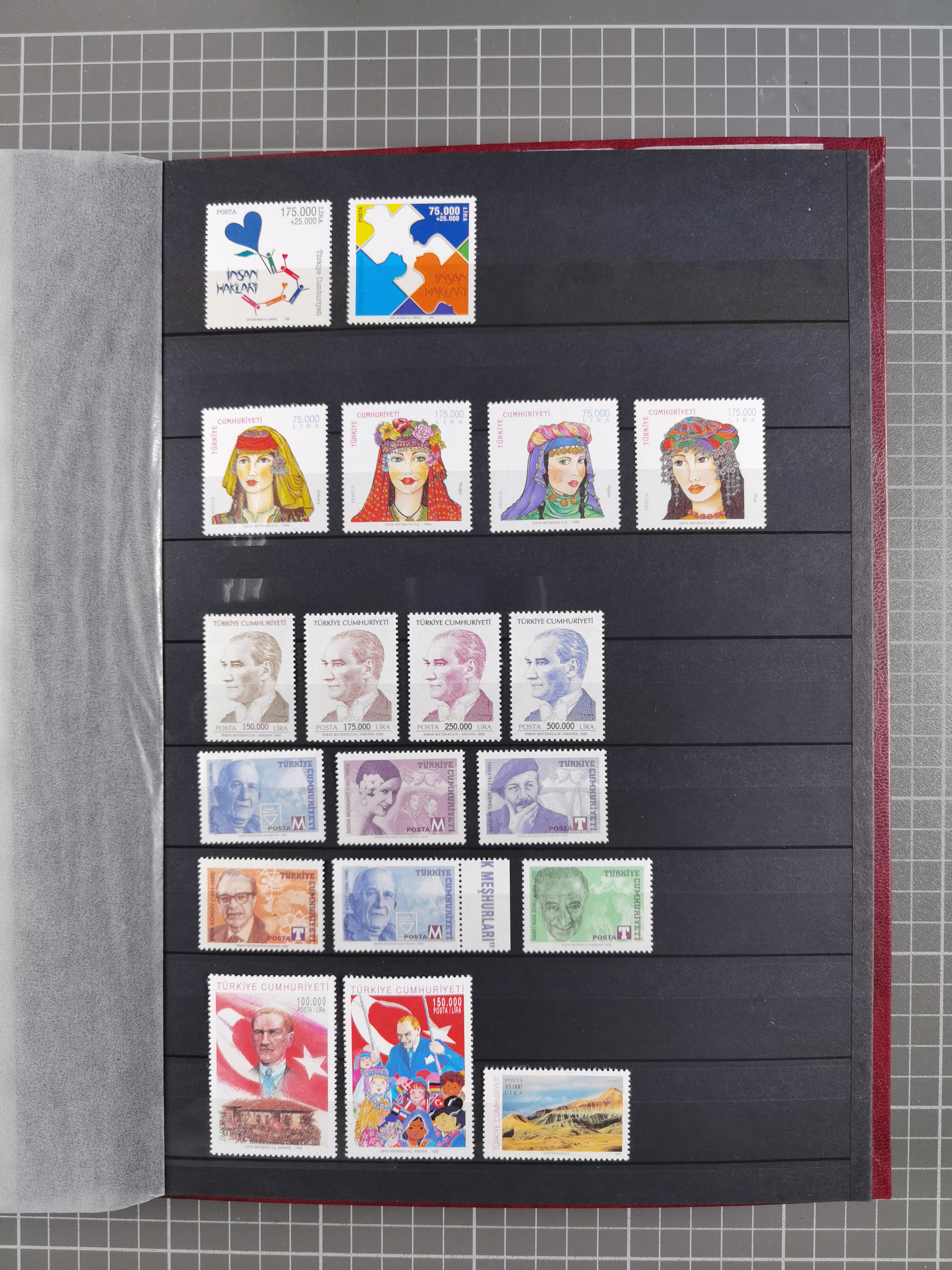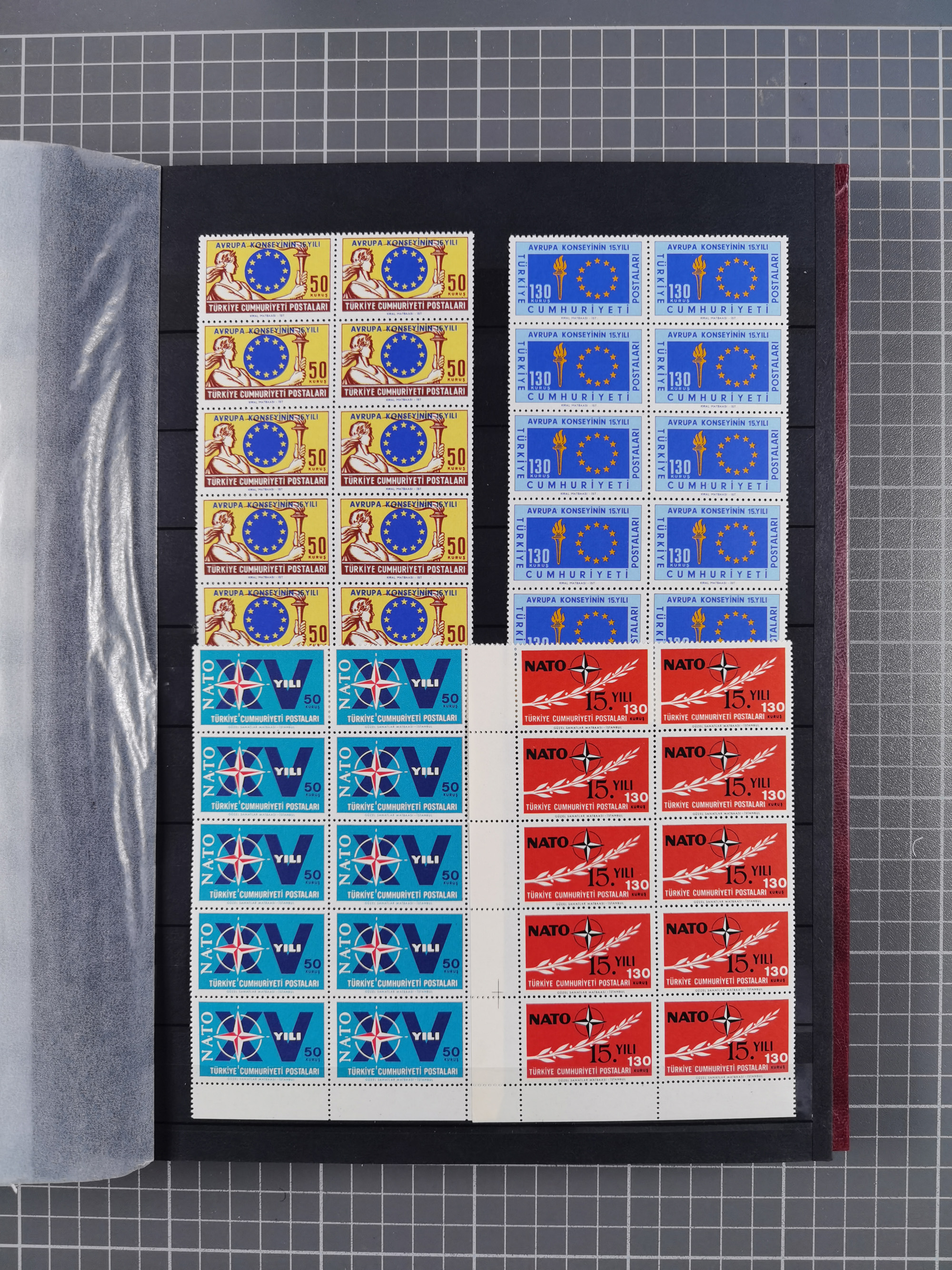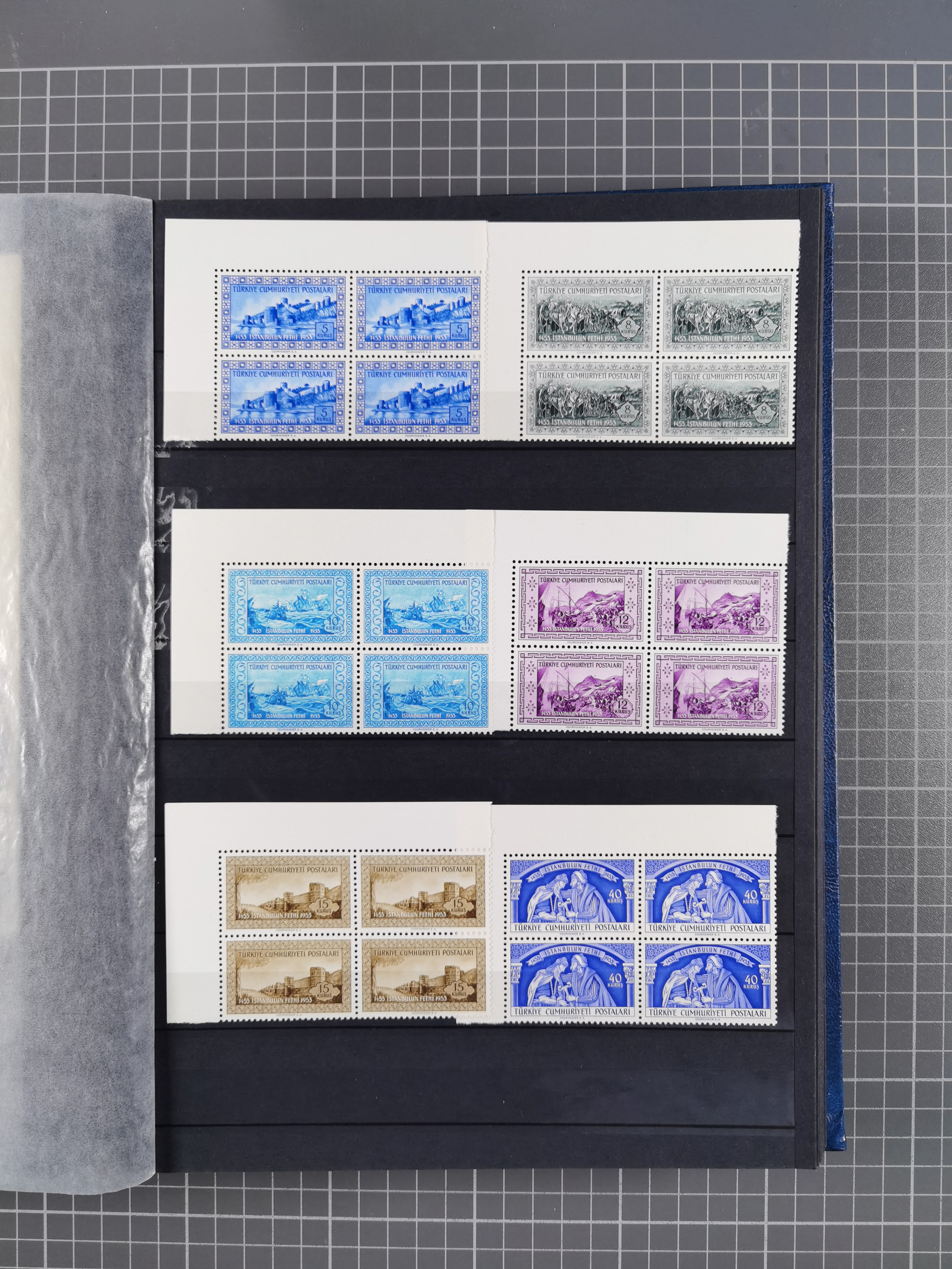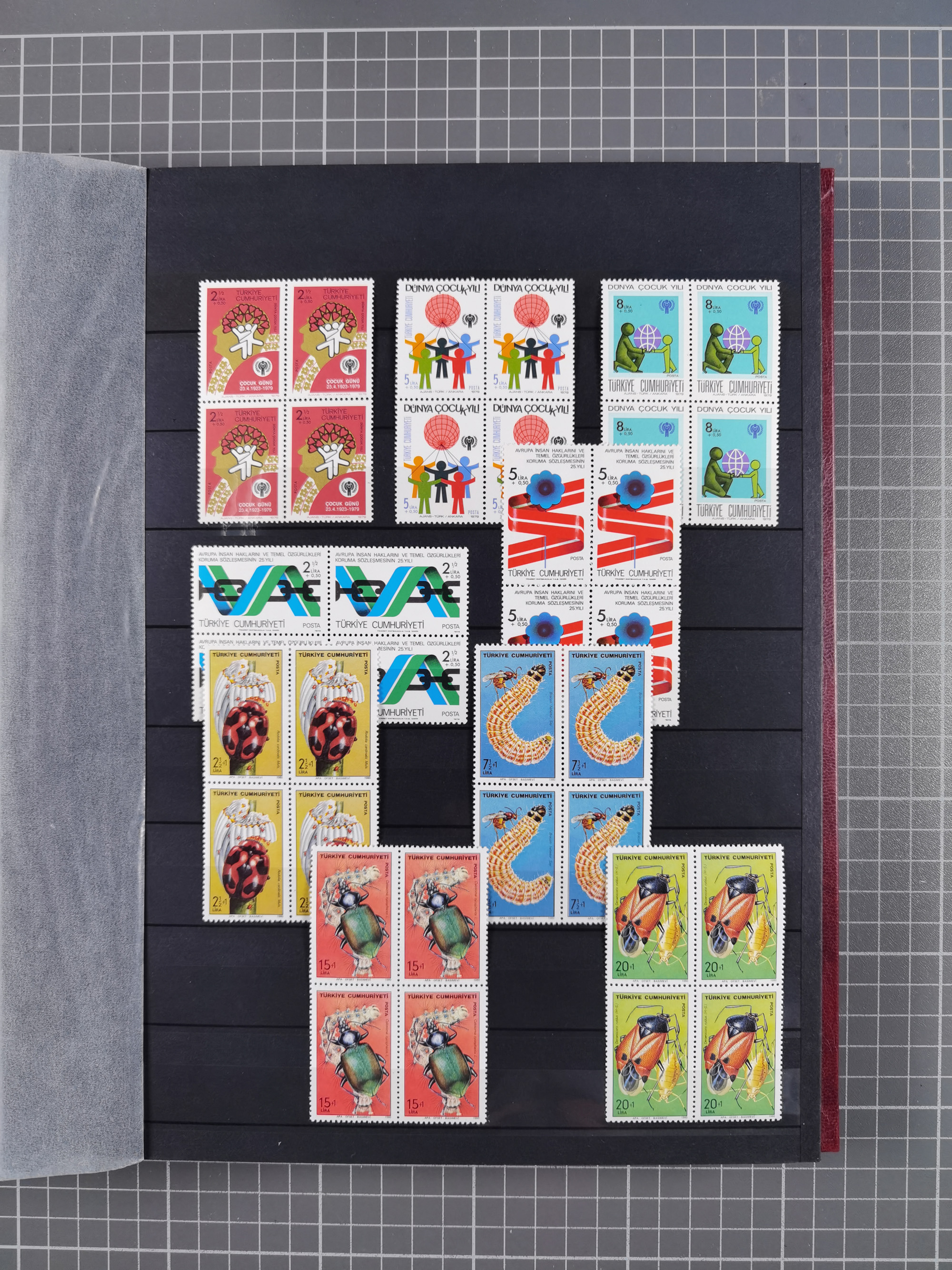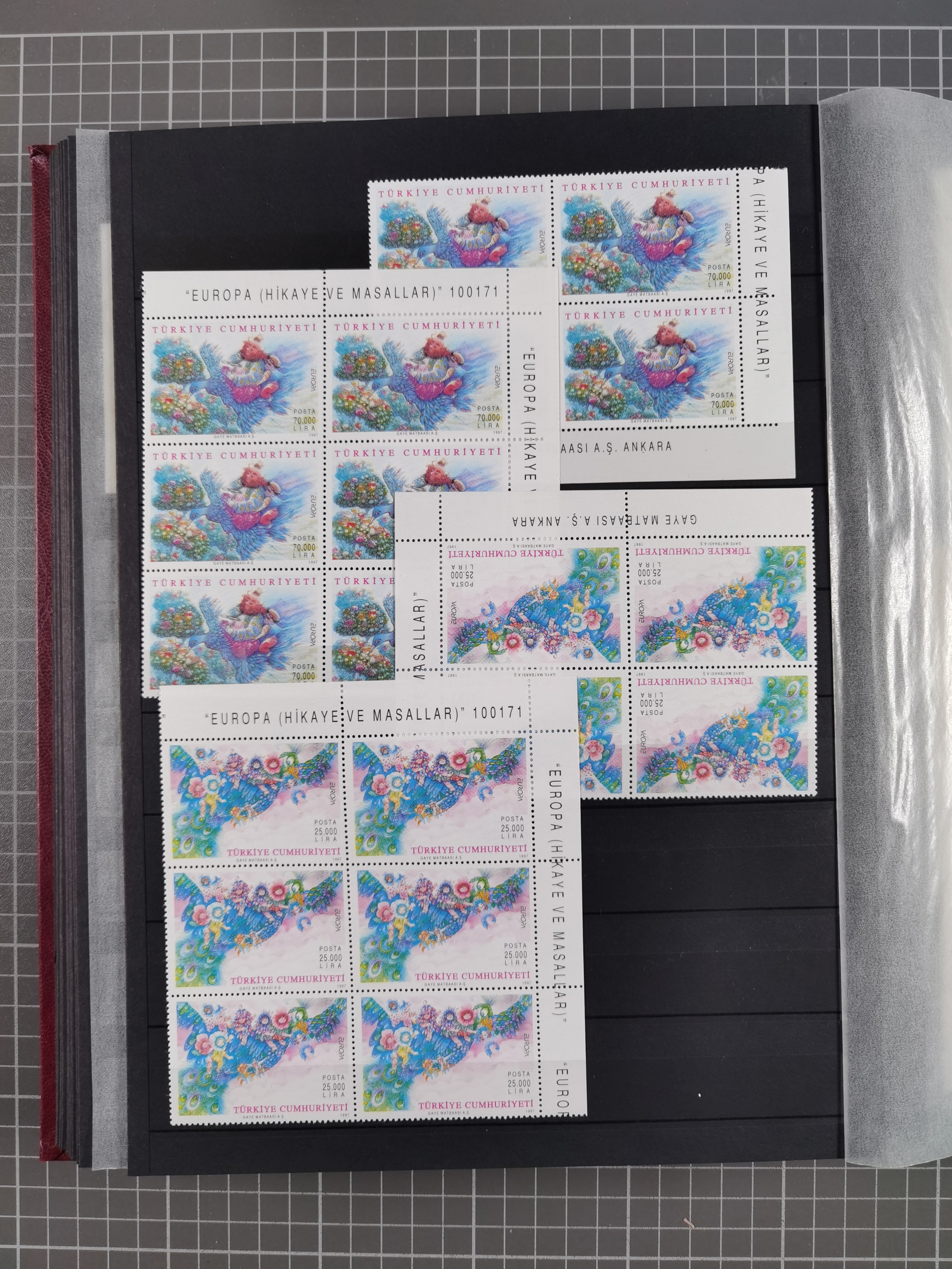 1921/55, valuable holding in stock book with many better issues, often in blocks, some varieties and specialities, containing for instance First Adana set (Mi. 754-66), Crescent issue with 500 pia. green (Mi.825) and Sivas Railway complete sets unused, Women Congress mnh, imperf sets, air mails and official issues in blocks of four, etc. A great lot