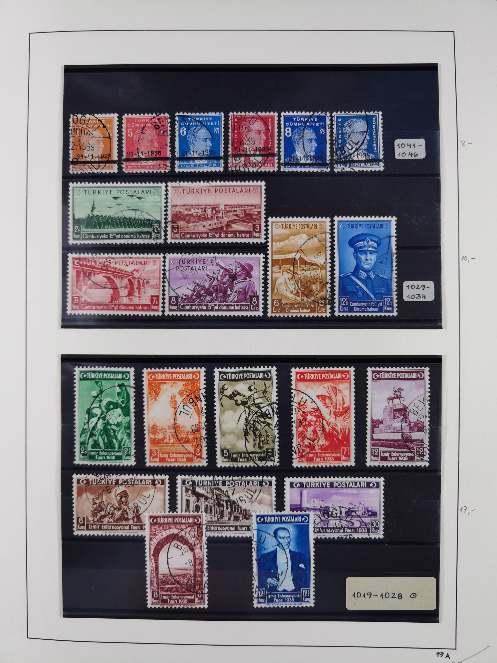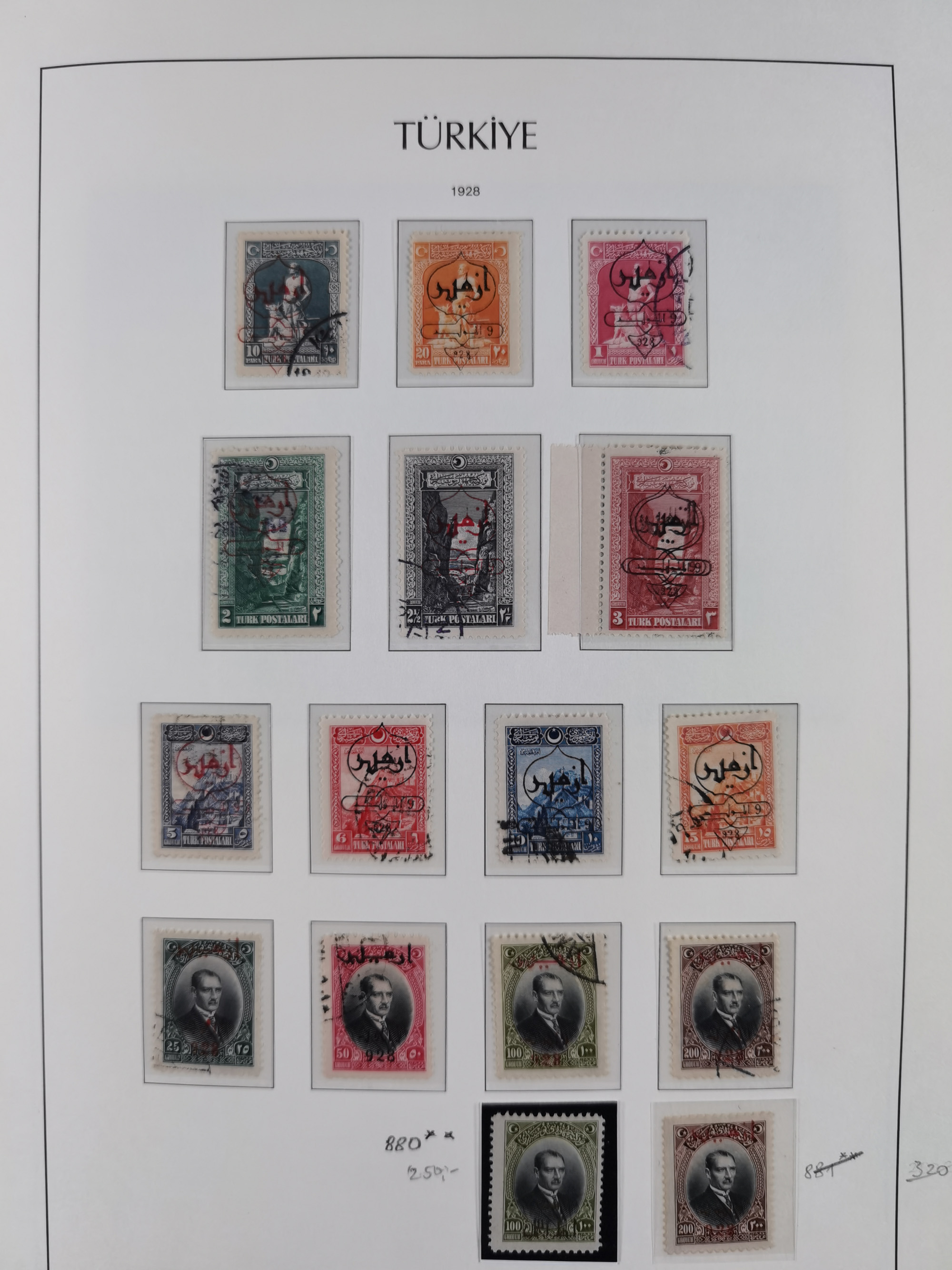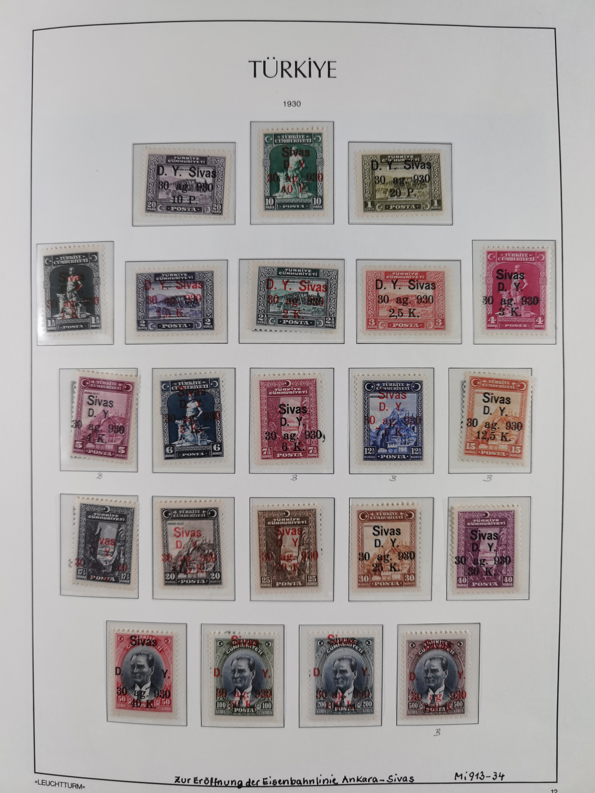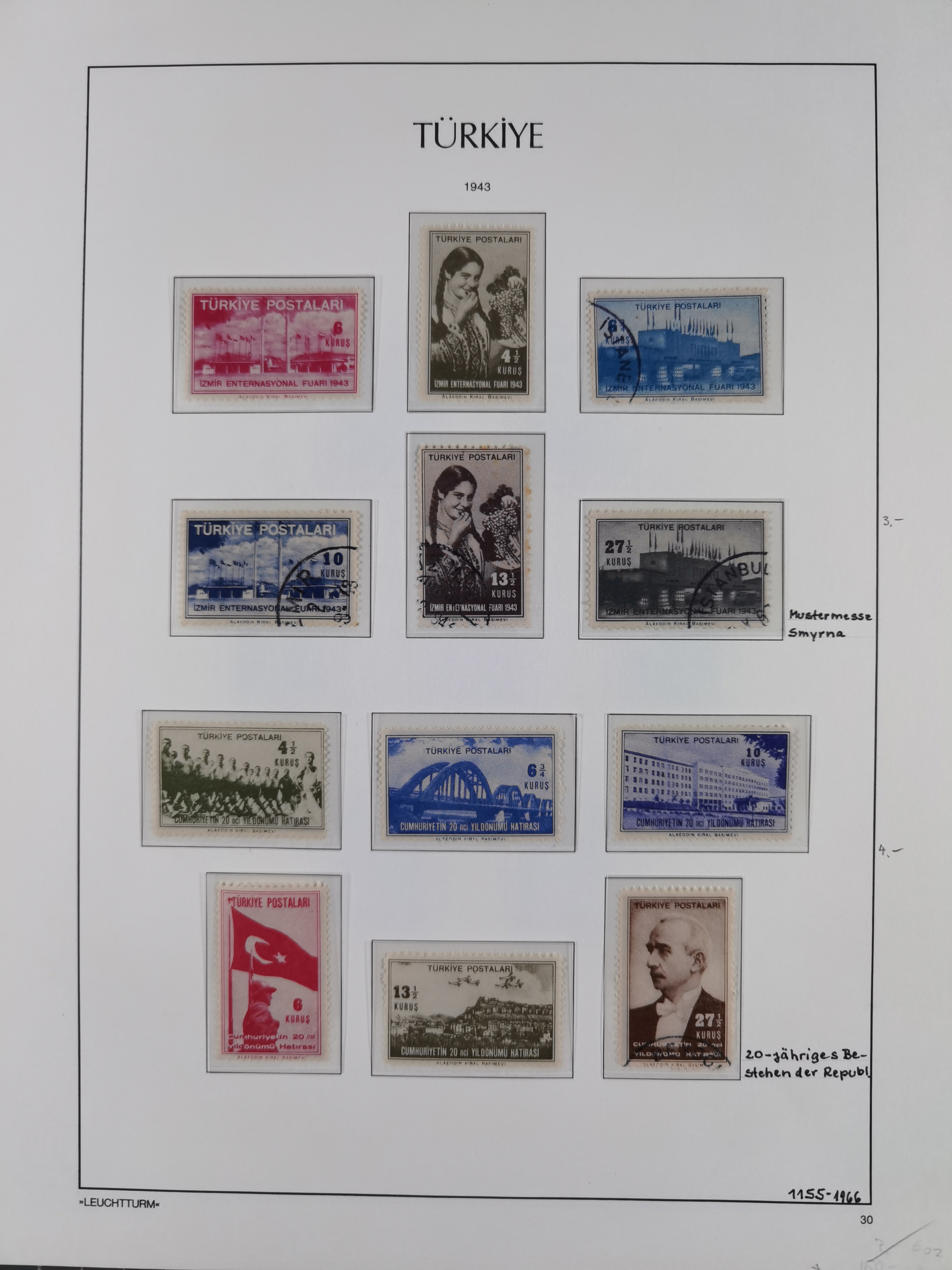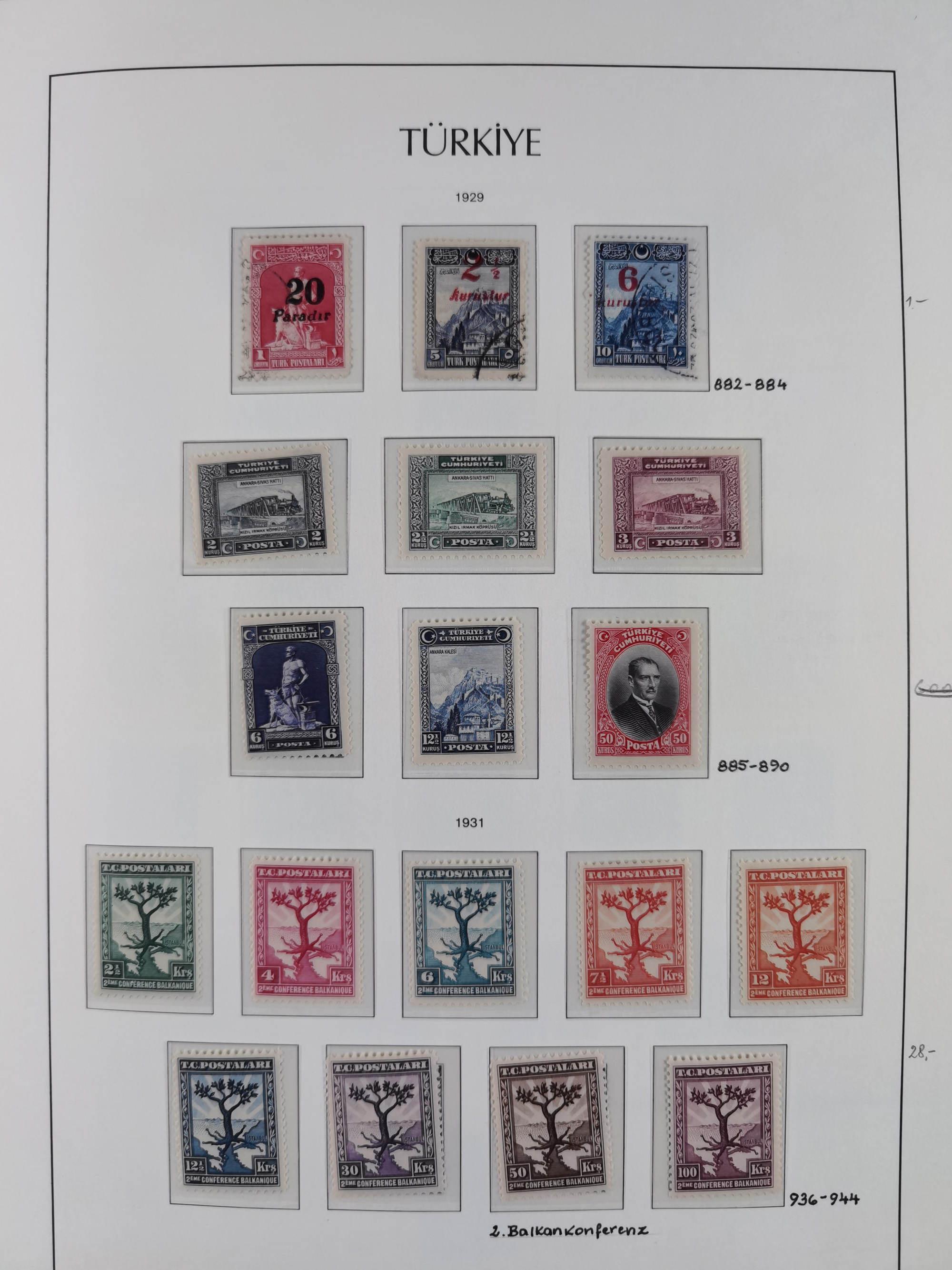 1920/69, mostly unused/mint and cancelled collection ‘Republic of Turkey’ in album with some better and complete issues Angora Government (Mi.705-708, 714-15, A721, 728H inverted and double), as well as some special items, including Mi. No. 754-766 unused (better signed or cert.), Sivas Railway (Mi. 913-934) unused. Many better stamps signed, condition from slightly flawed to flawless.
