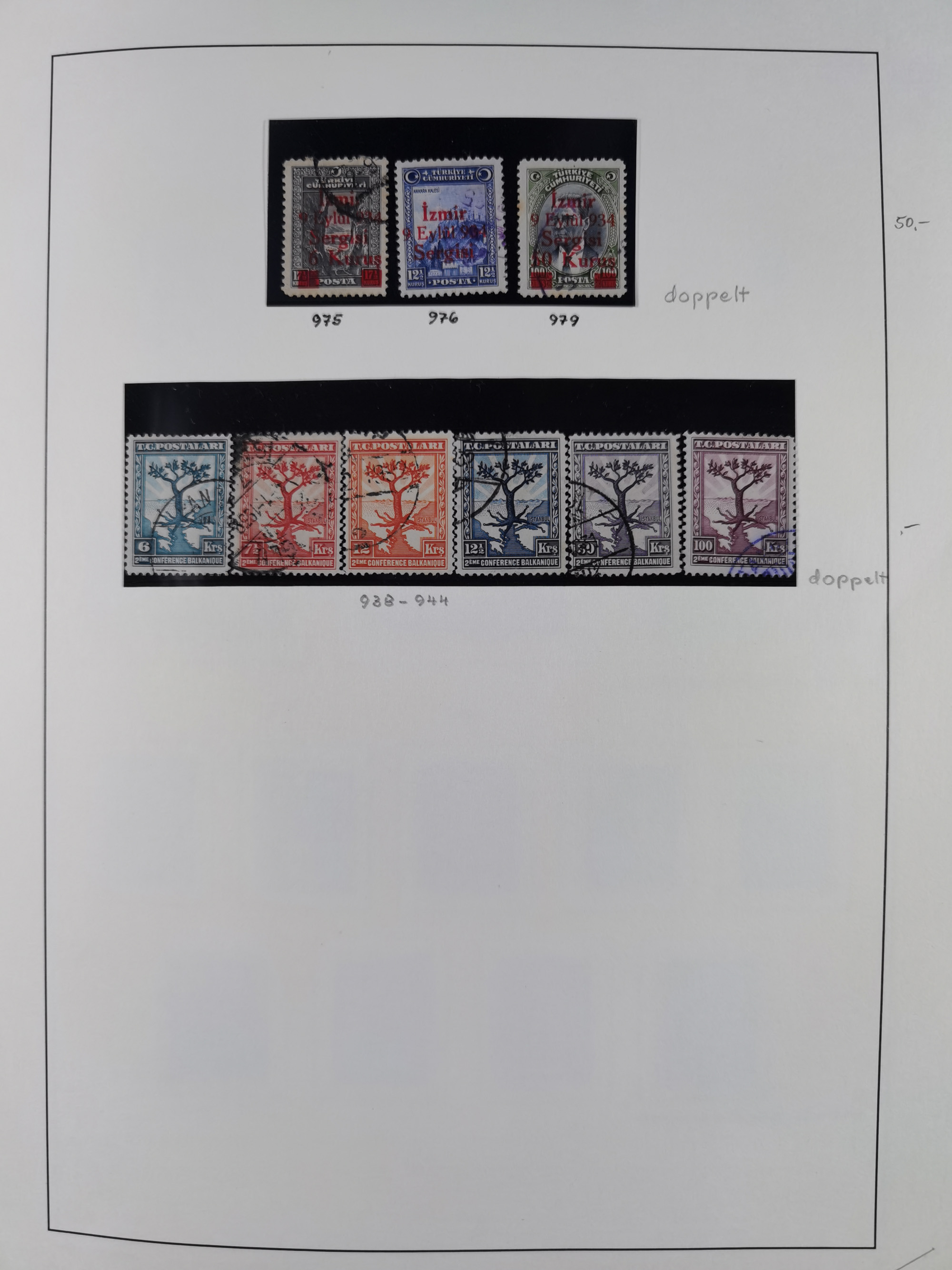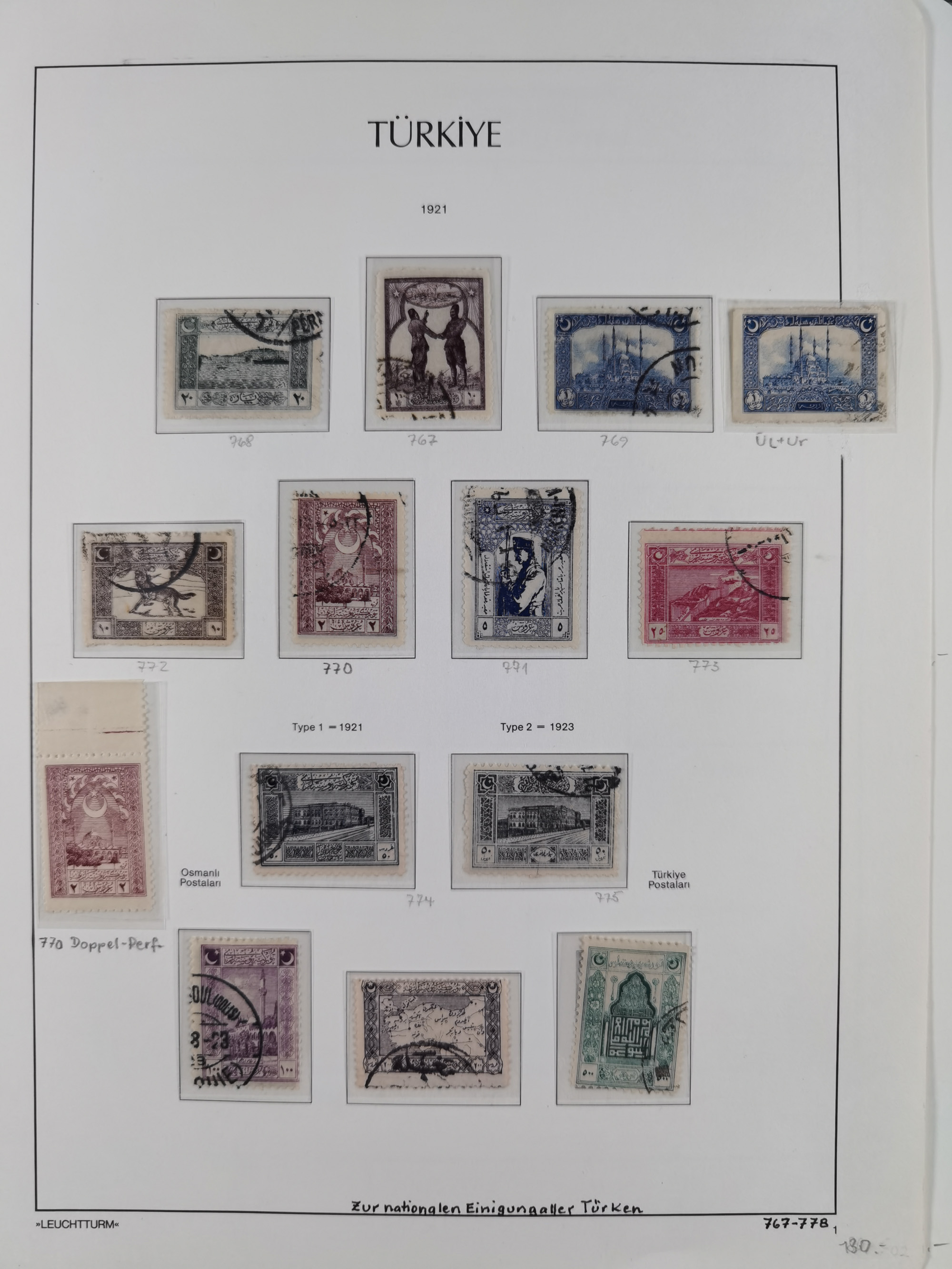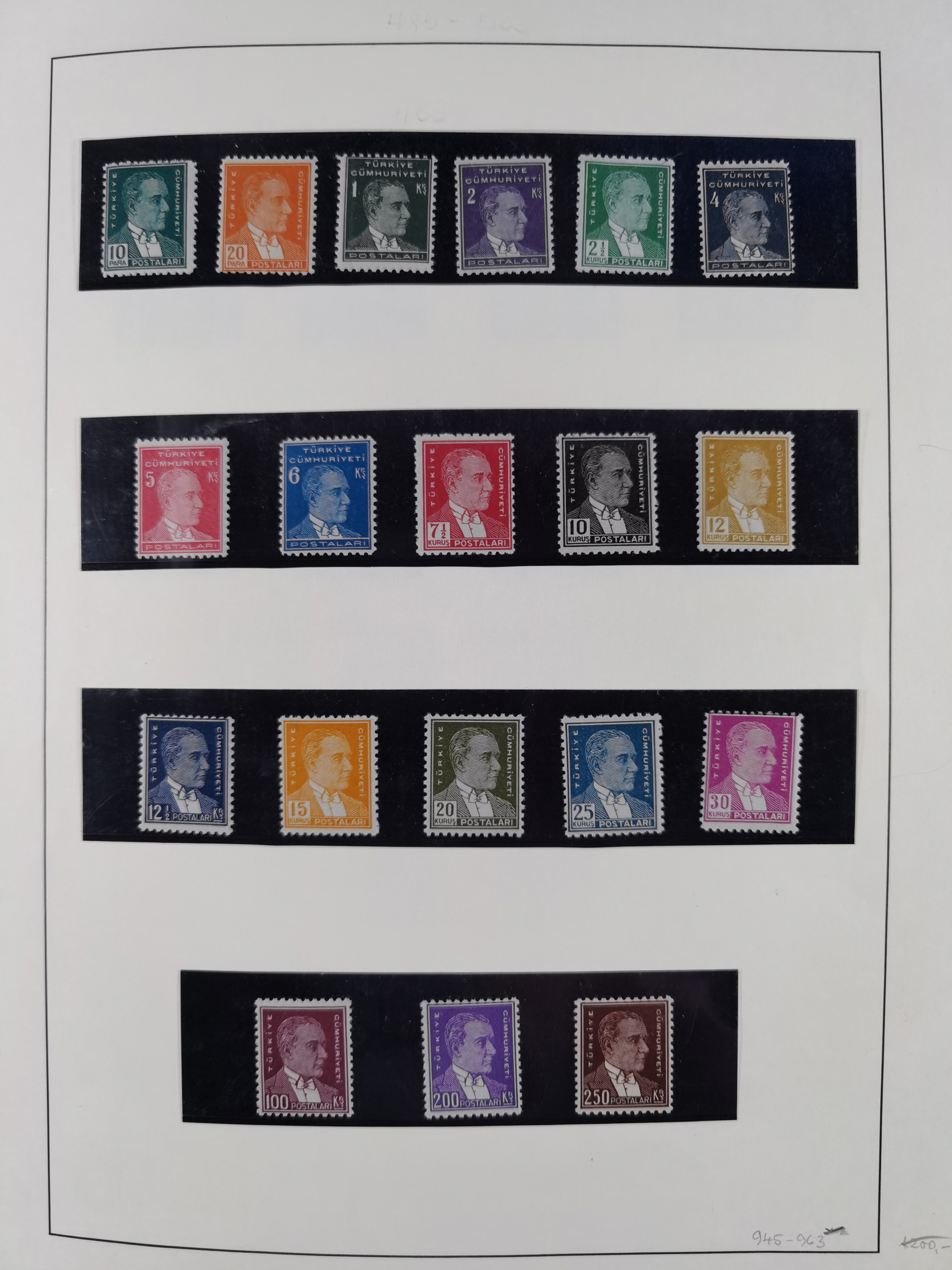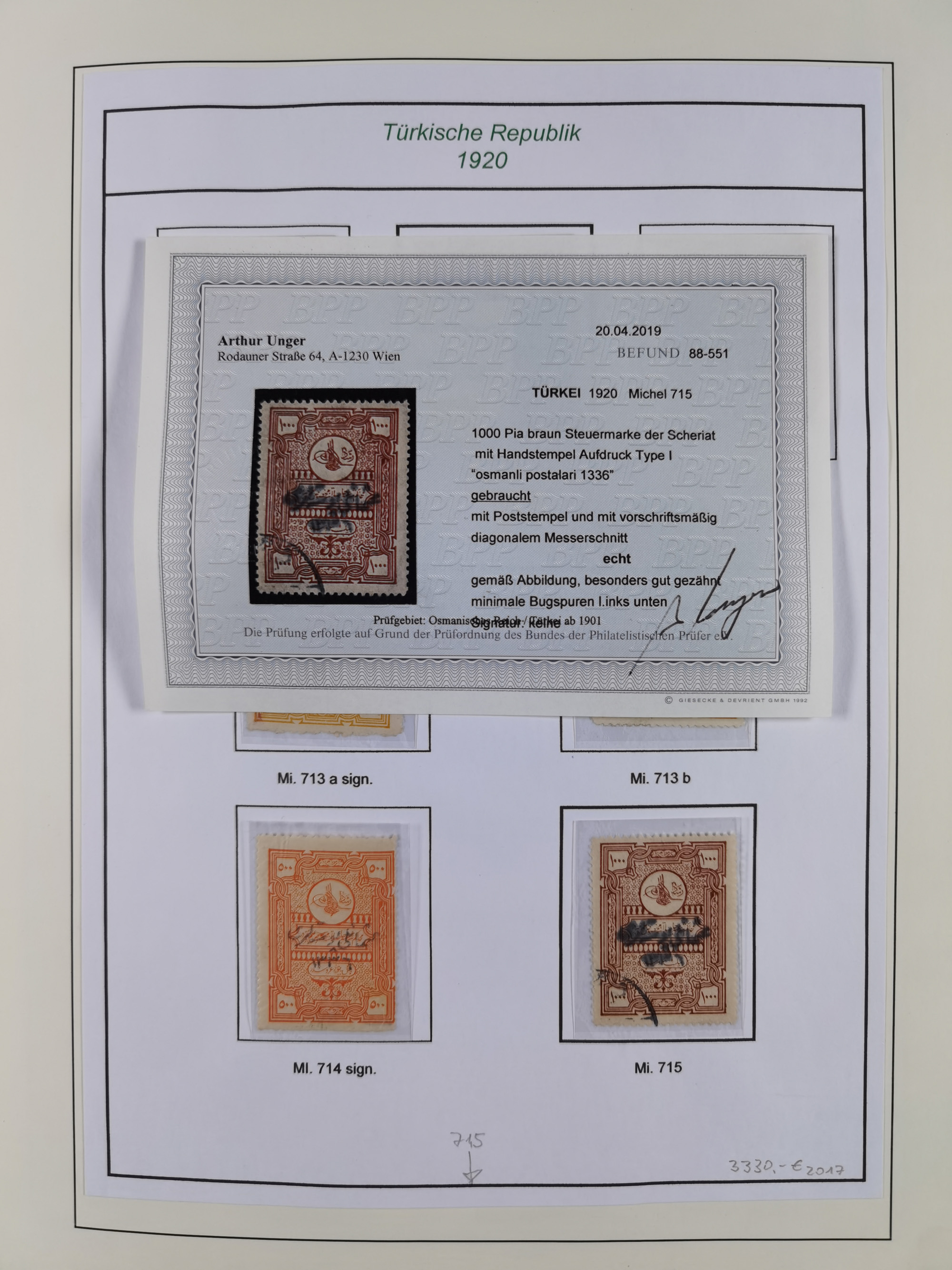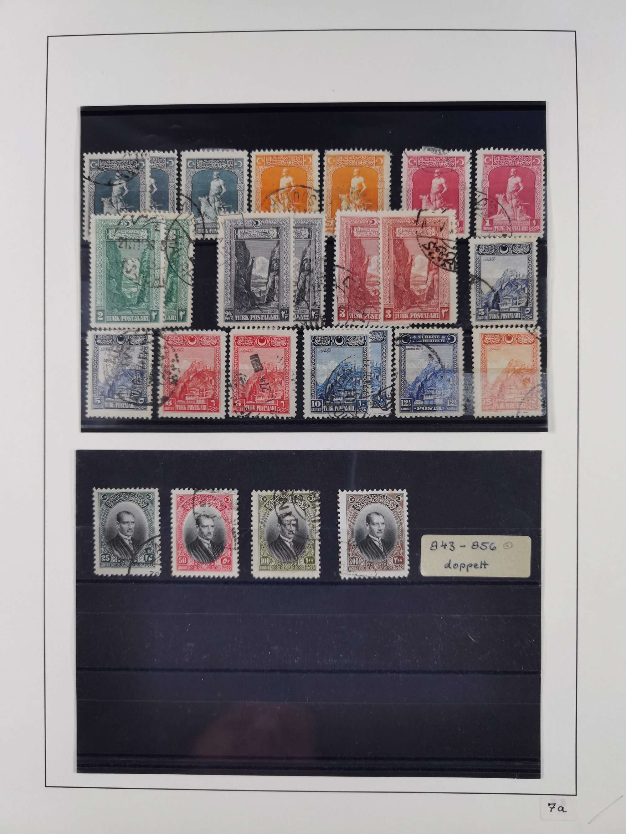 1920/69, mostly unused/mint and cancelled collection ‘Republic of Turkey’ in album with some better and complete issues Angora Government (Mi.705-708, 714-15, A721, 728H inverted and double), as well as some special items, including Mi. No. 754-766 unused (better signed or cert.), Sivas Railway (Mi. 913-934) unused. Many better stamps signed, condition from slightly flawed to flawless.