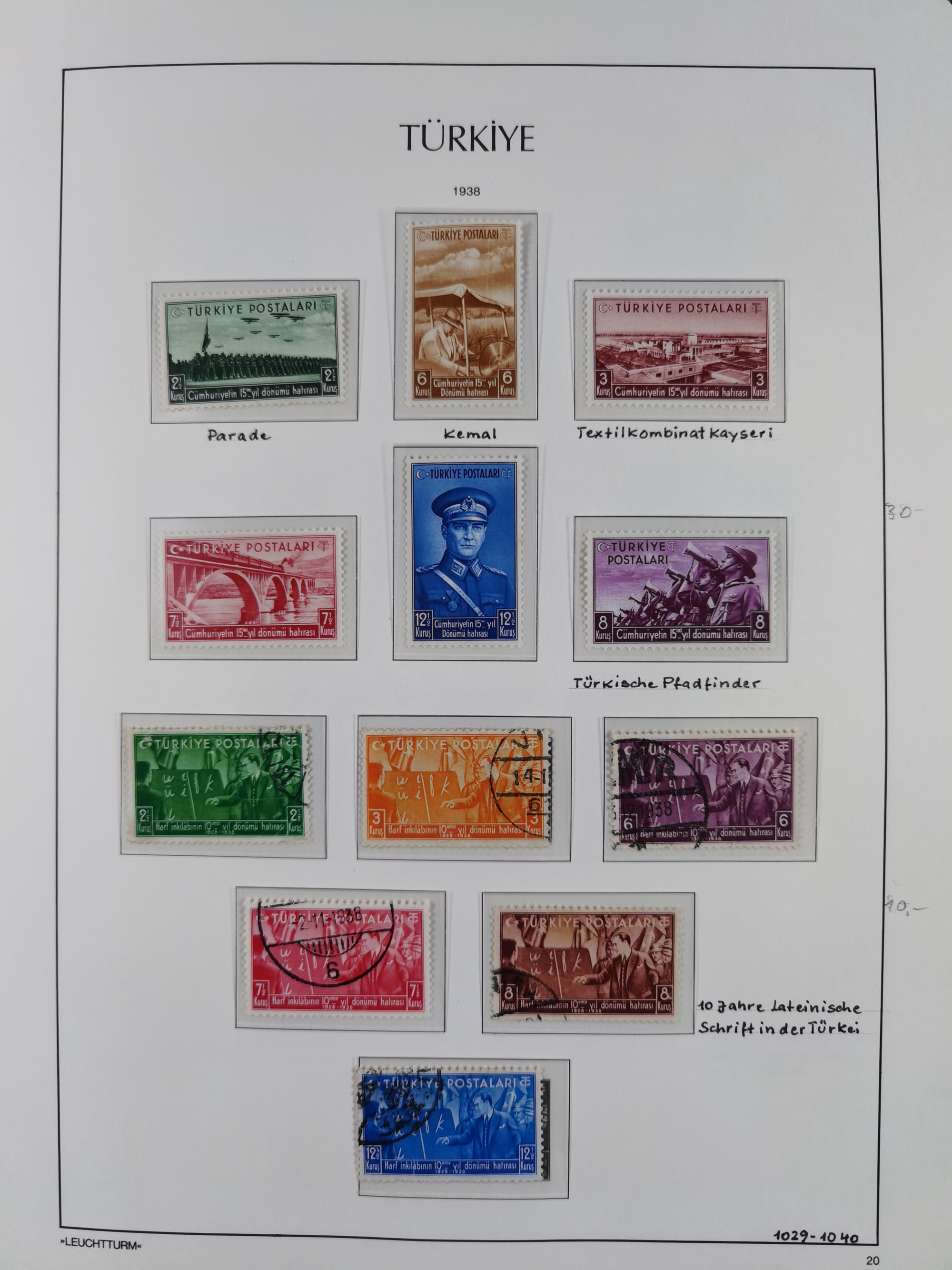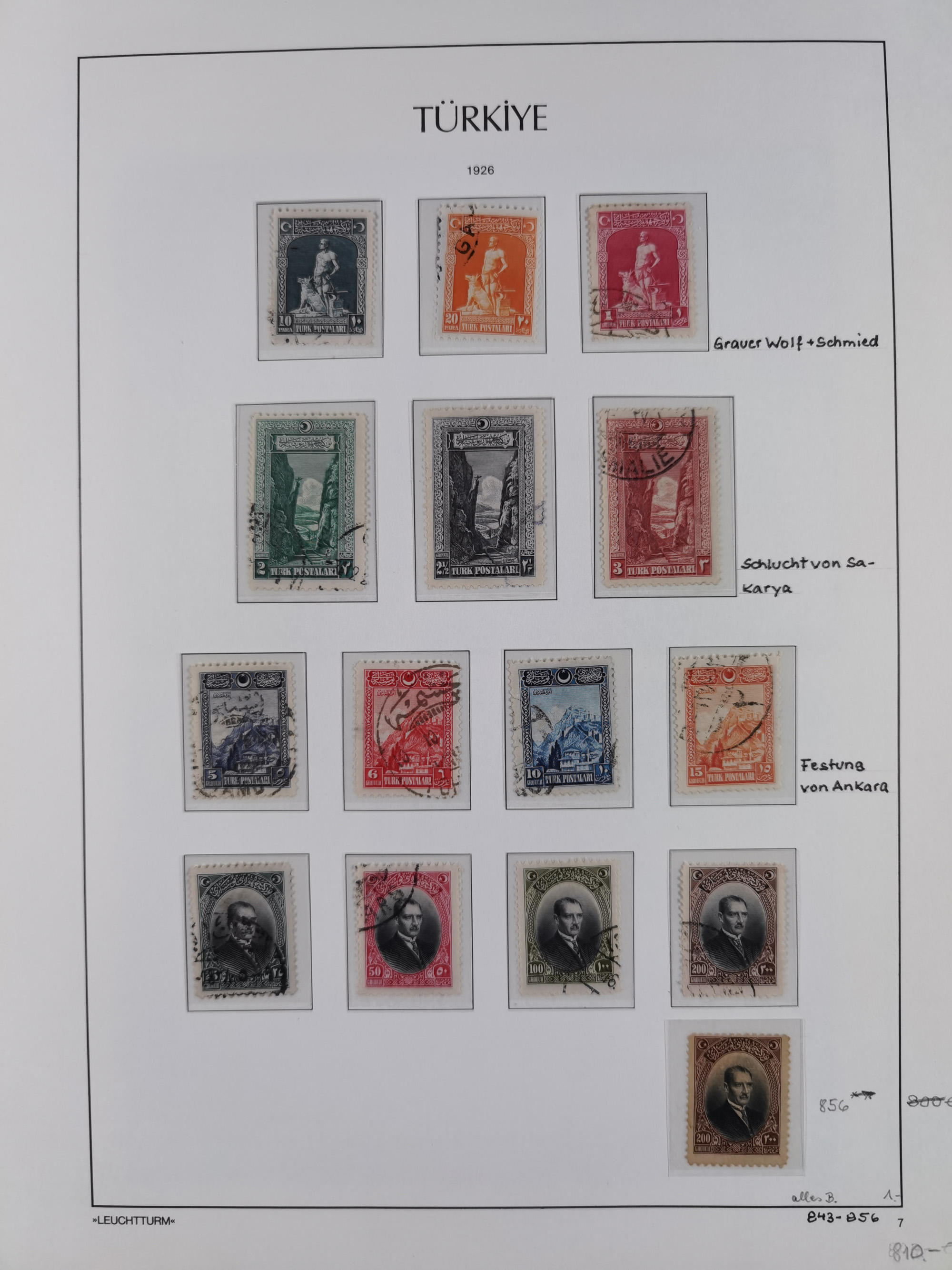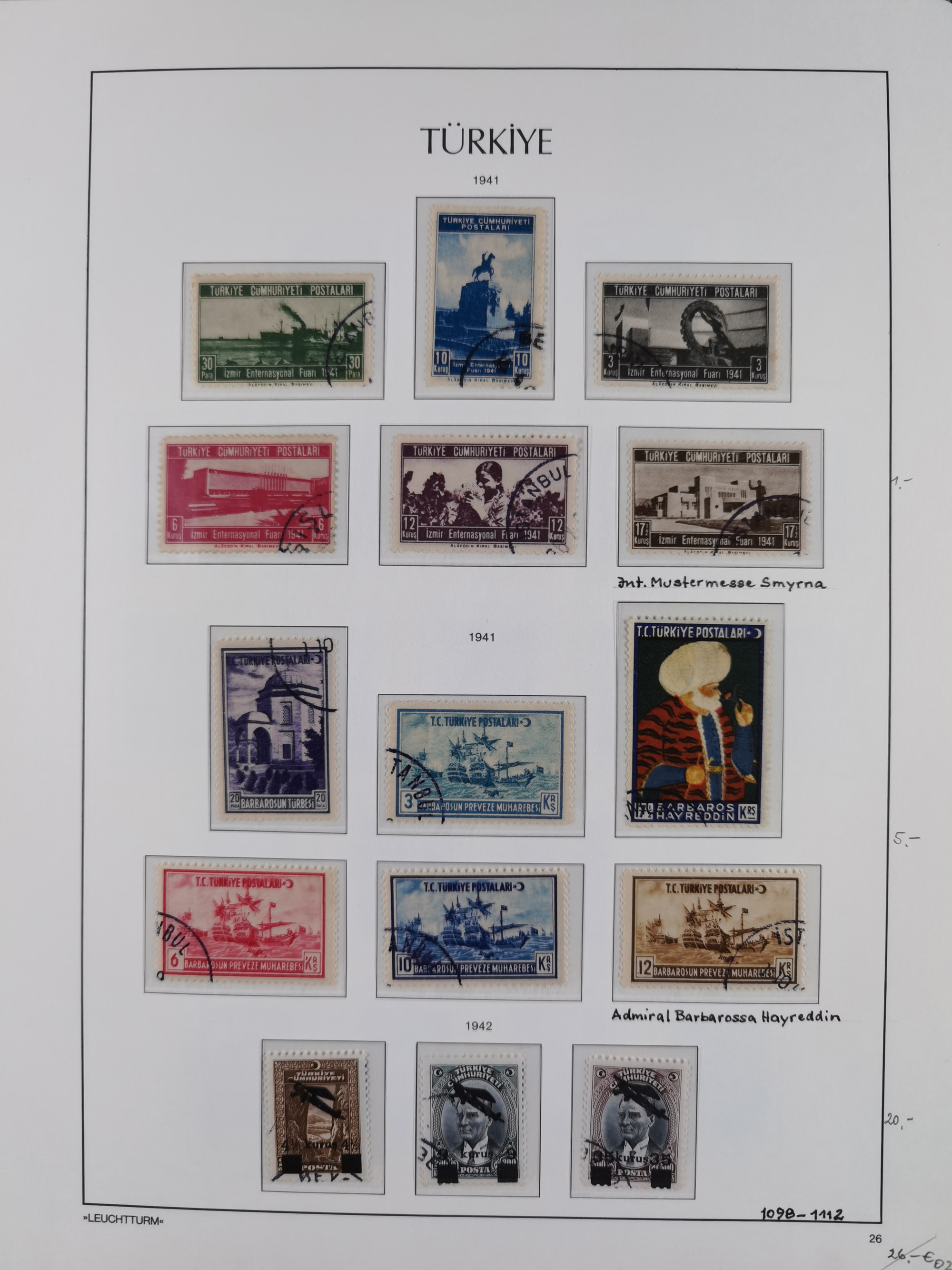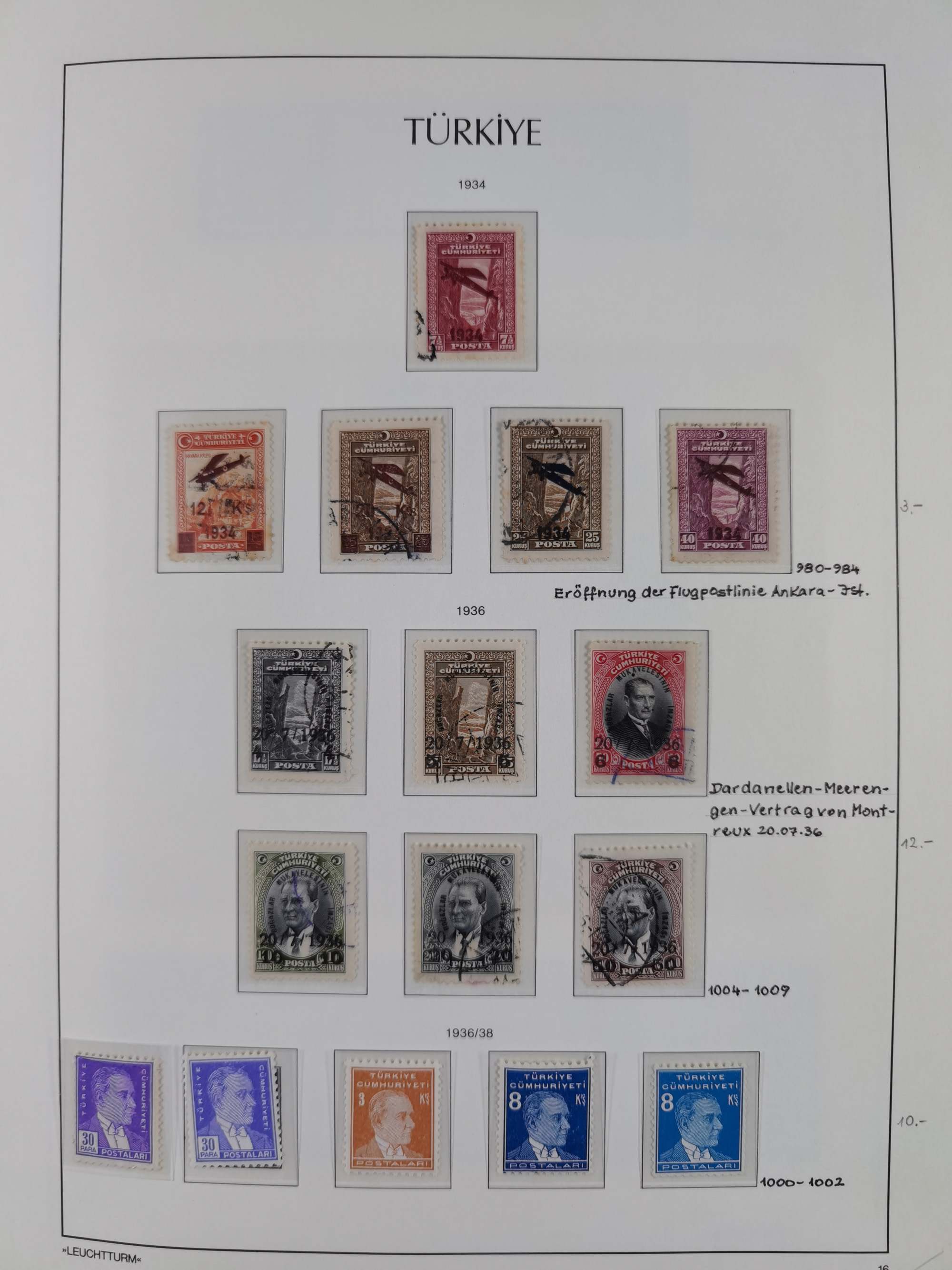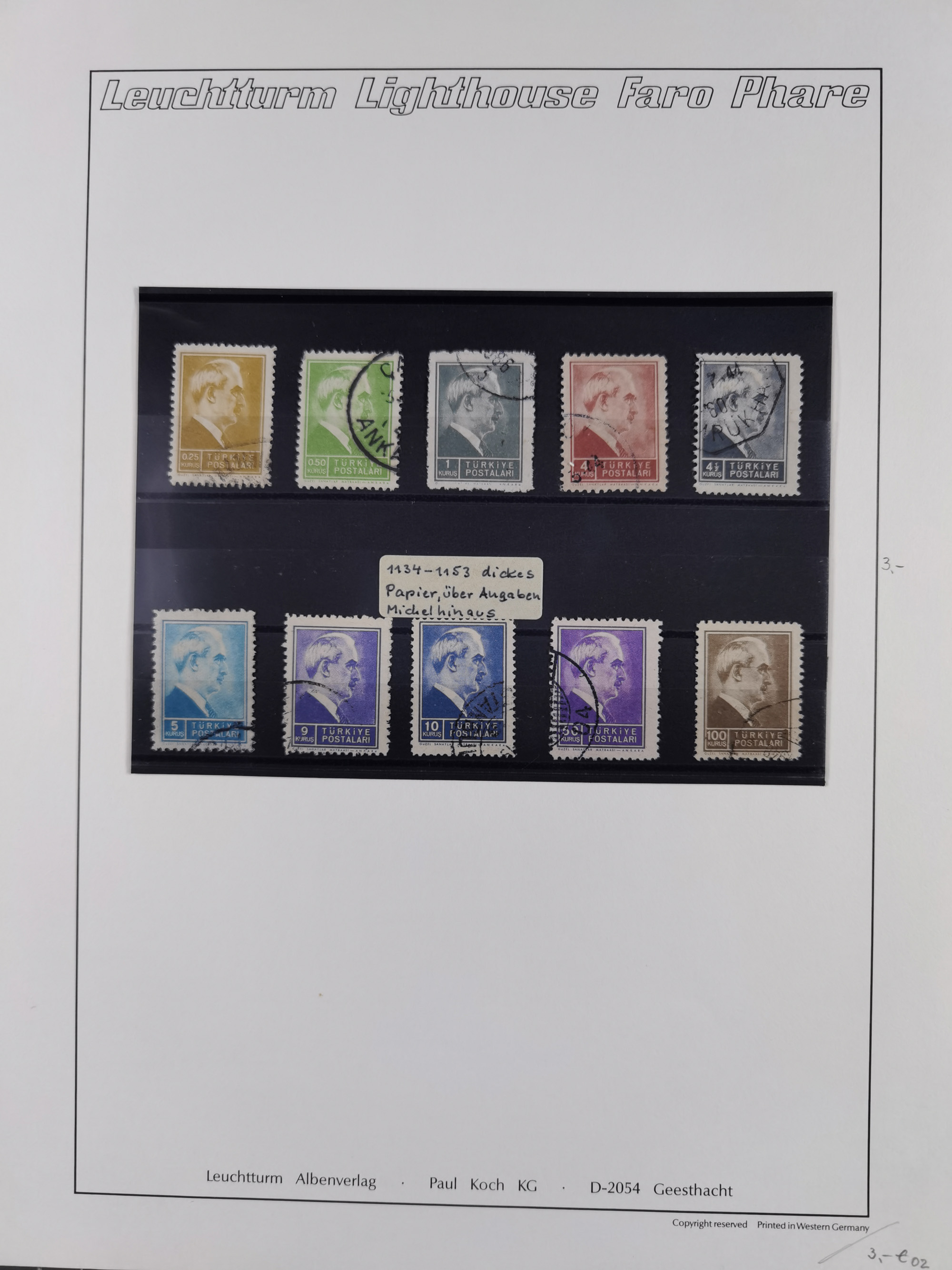 1920/69, mostly unused/mint and cancelled collection ‘Republic of Turkey’ in album with some better and complete issues Angora Government (Mi.705-708, 714-15, A721, 728H inverted and double), as well as some special items, including Mi. No. 754-766 unused (better signed or cert.), Sivas Railway (Mi. 913-934) unused. Many better stamps signed, condition from slightly flawed to flawless.