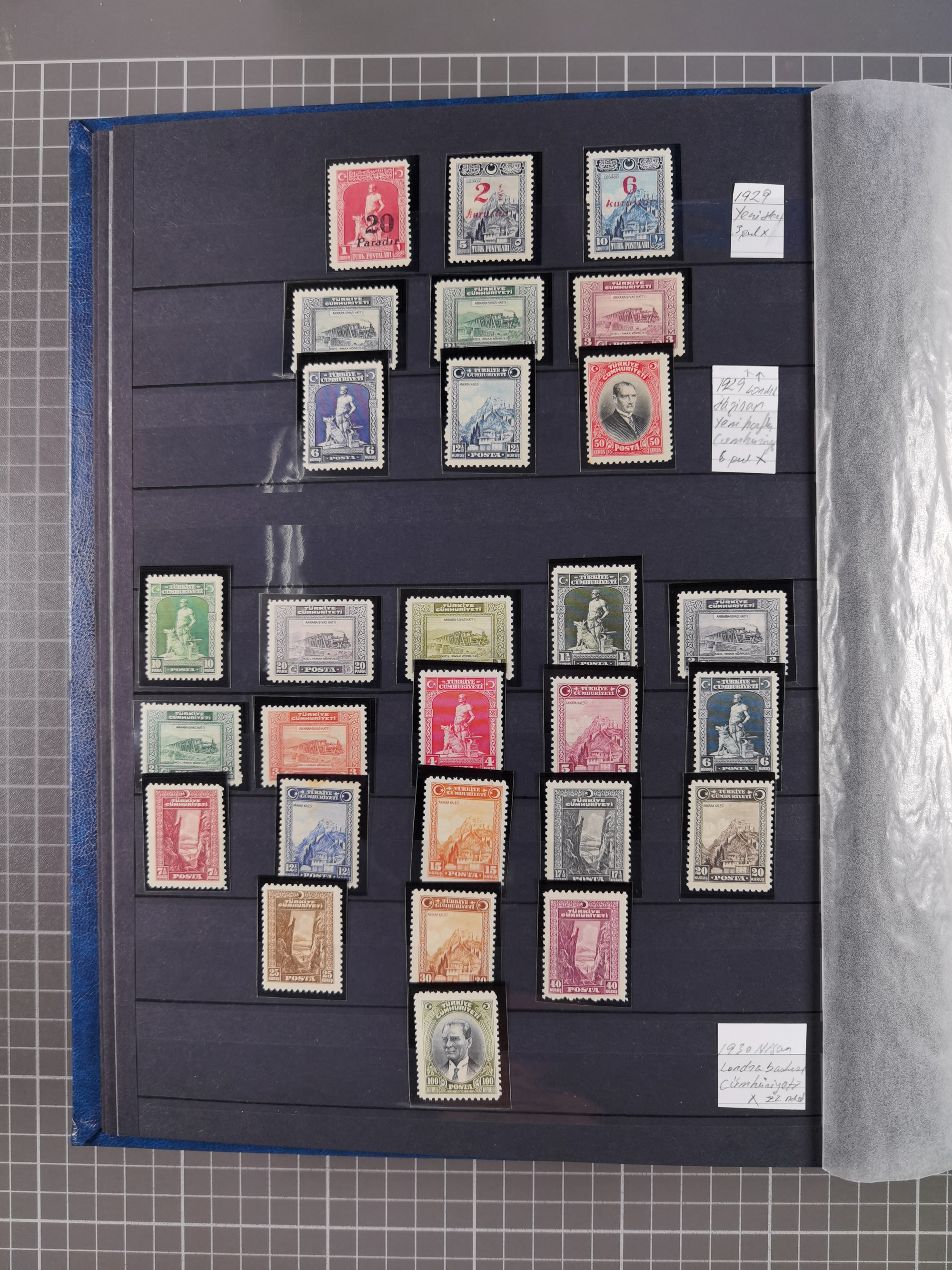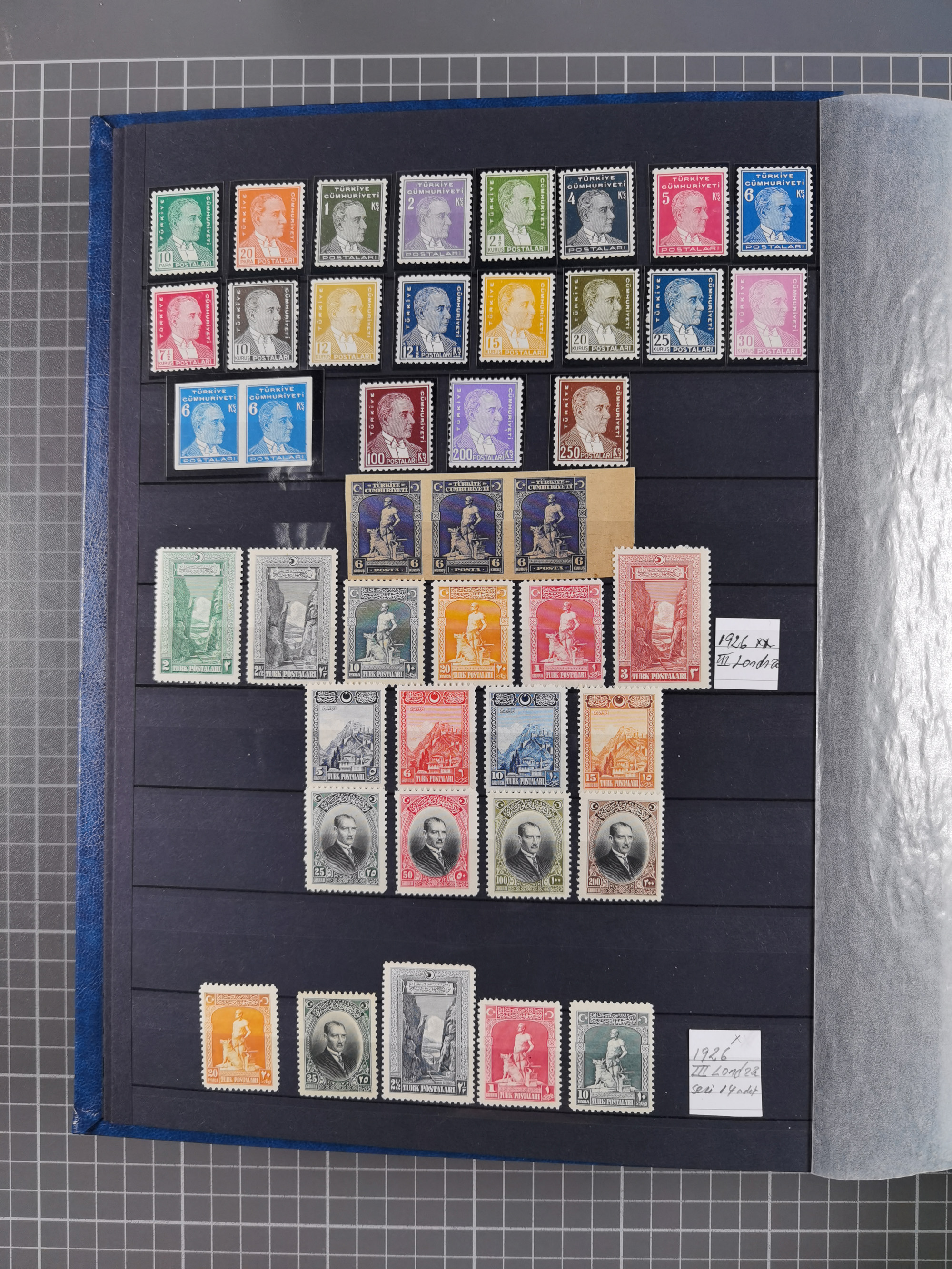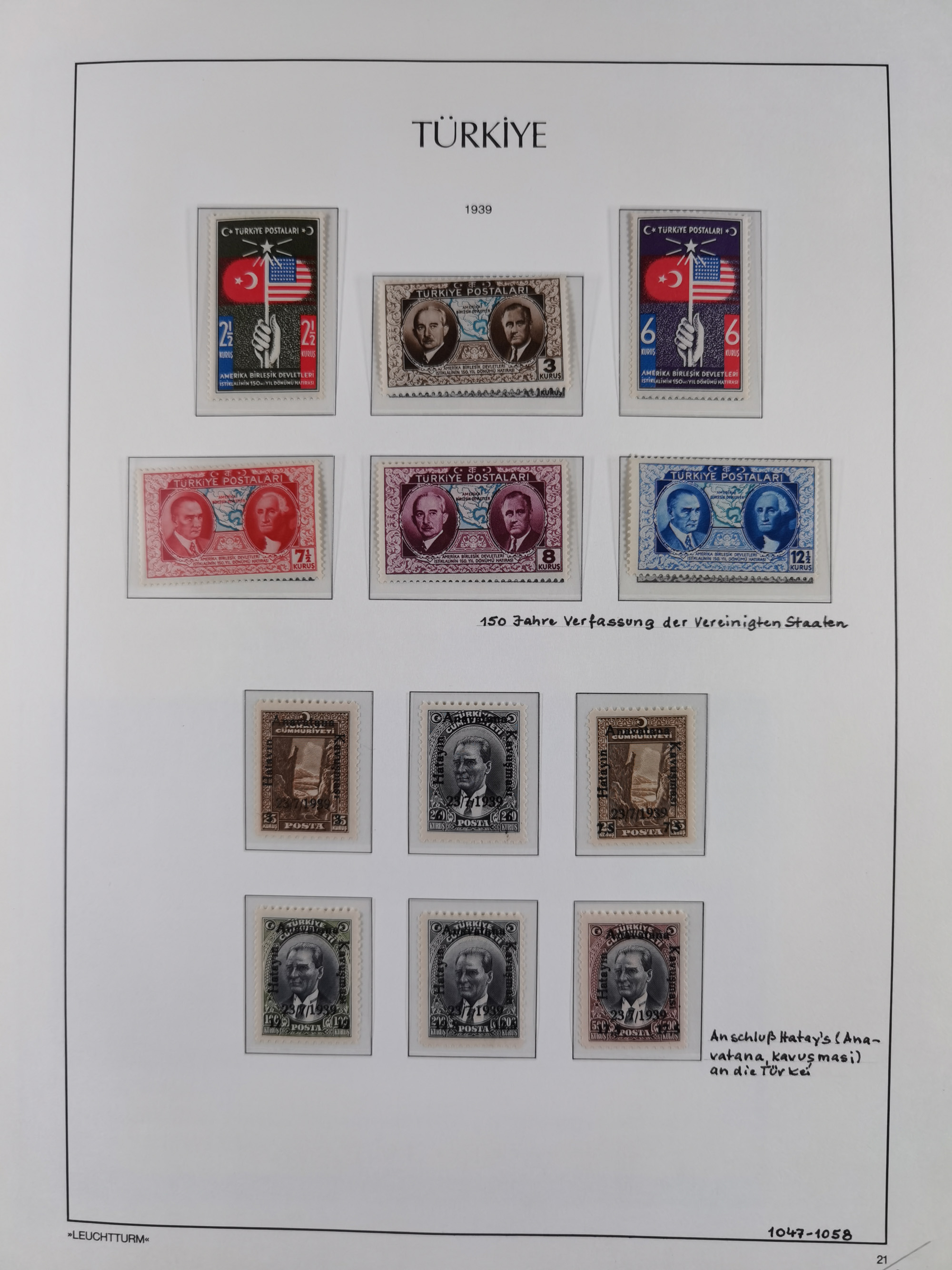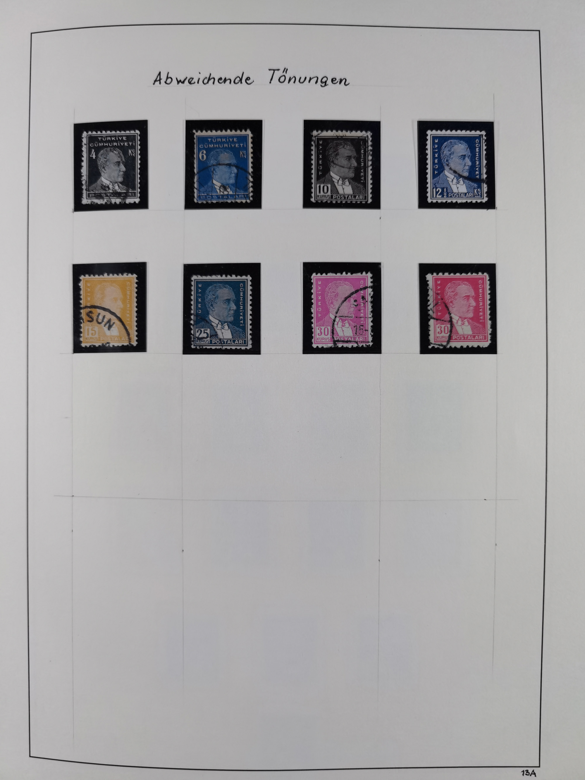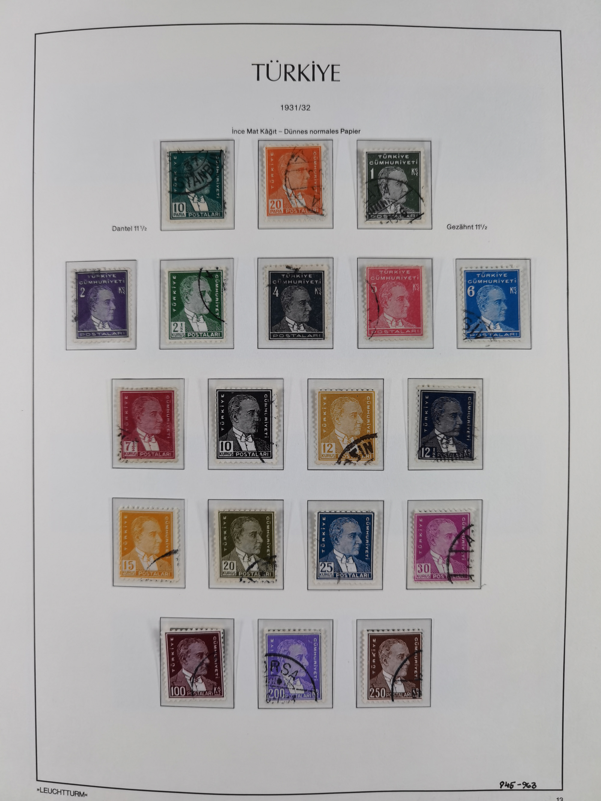 1920/69, mostly unused/mint and cancelled collection ‘Republic of Turkey’ in album with some better and complete issues Angora Government (Mi.705-708, 714-15, A721, 728H inverted and double), as well as some special items, including Mi. No. 754-766 unused (better signed or cert.), Sivas Railway (Mi. 913-934) unused. Many better stamps signed, condition from slightly flawed to flawless.
