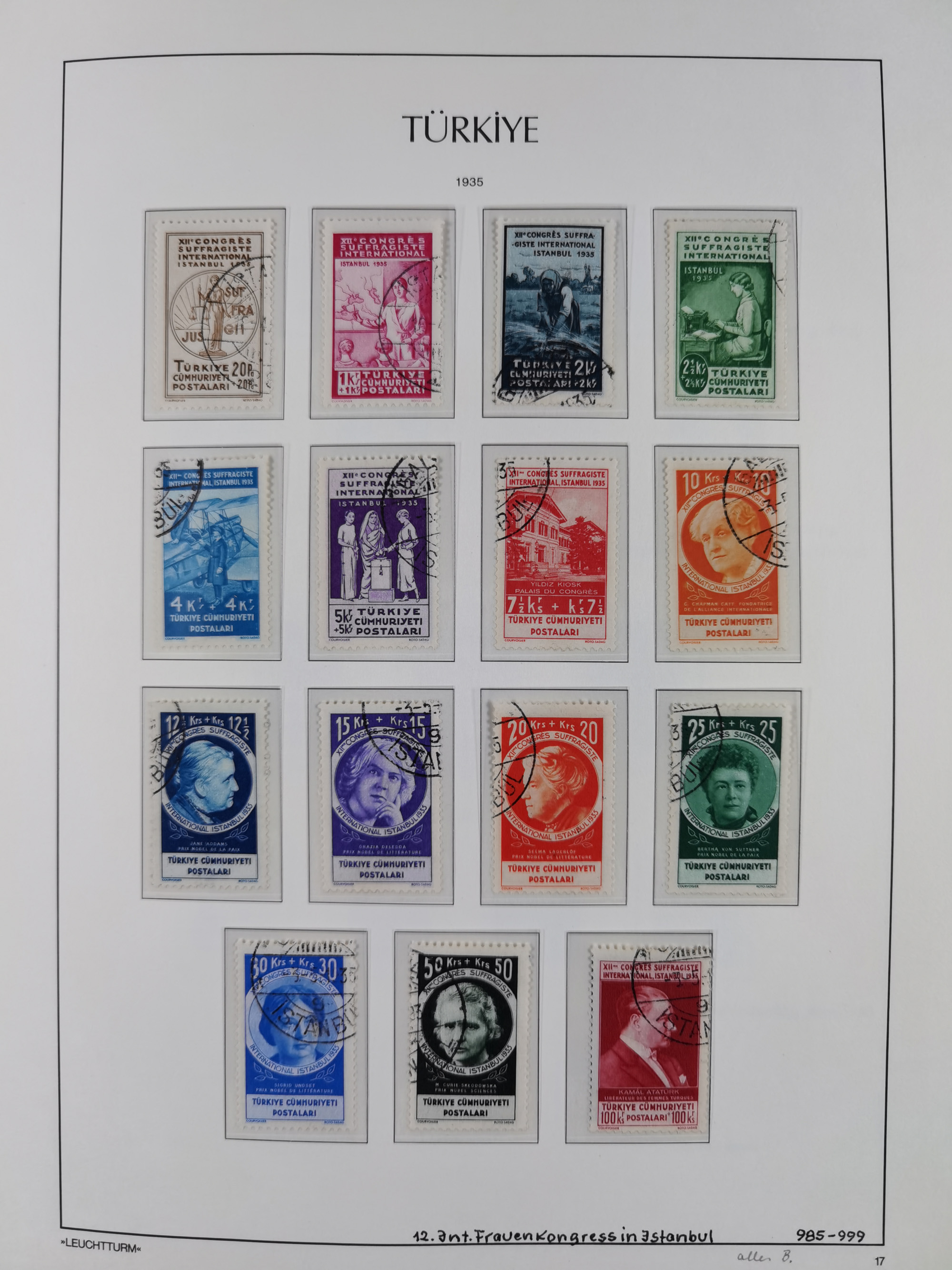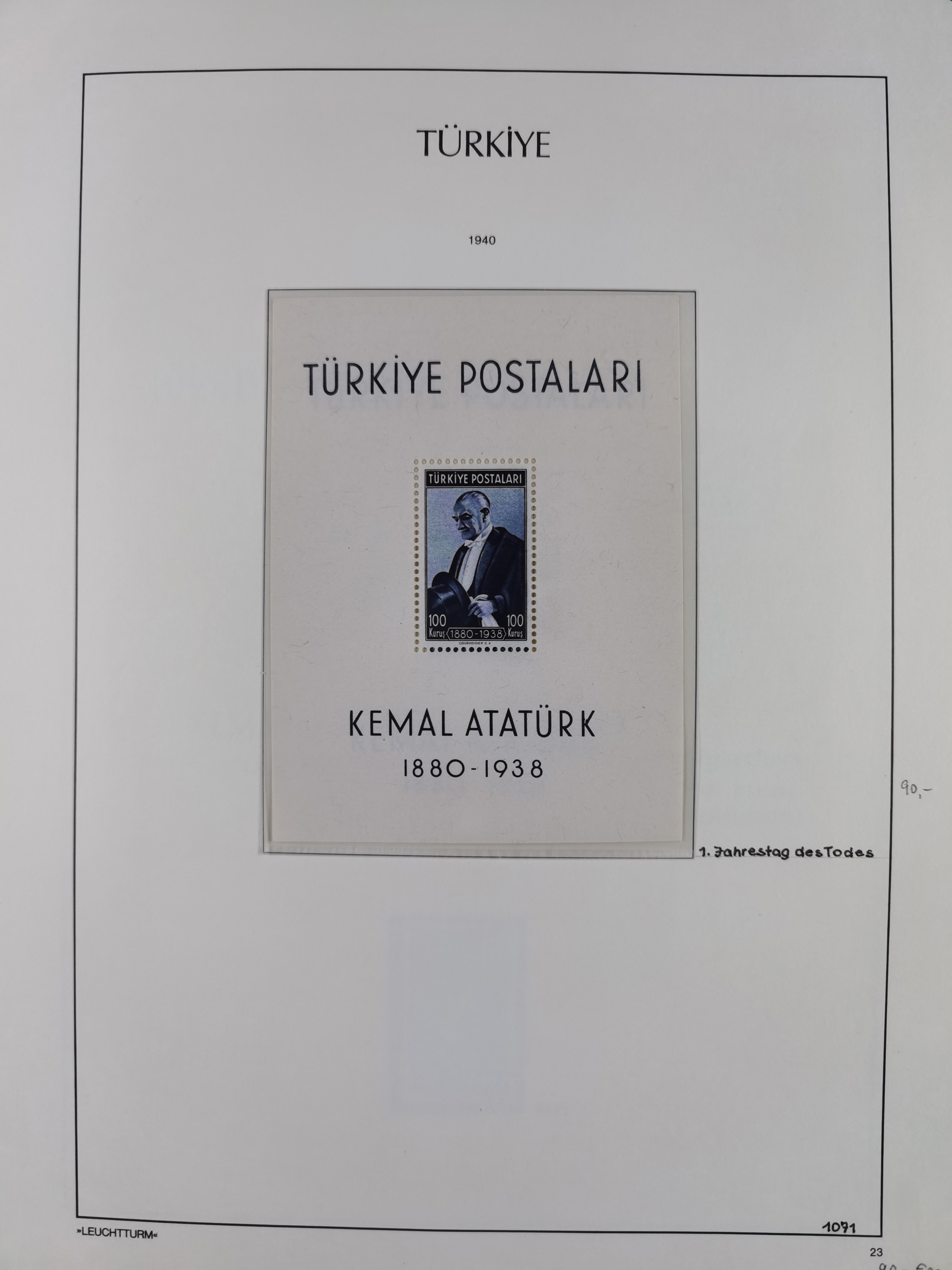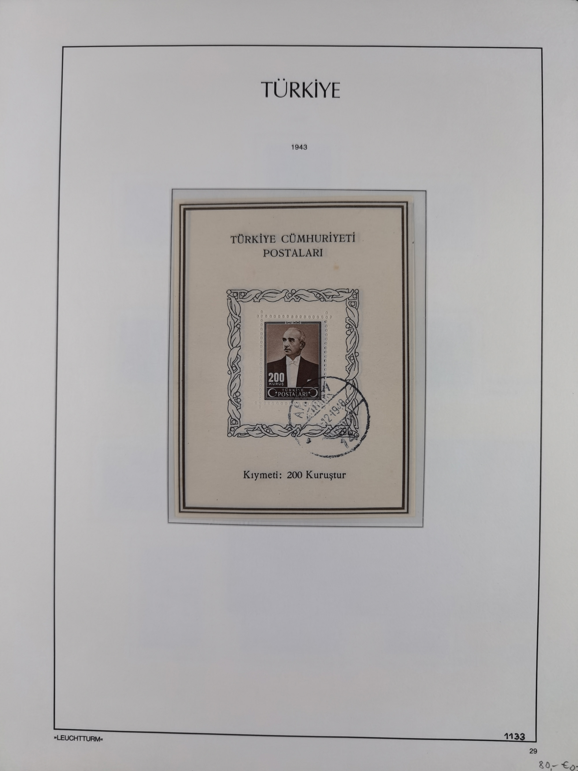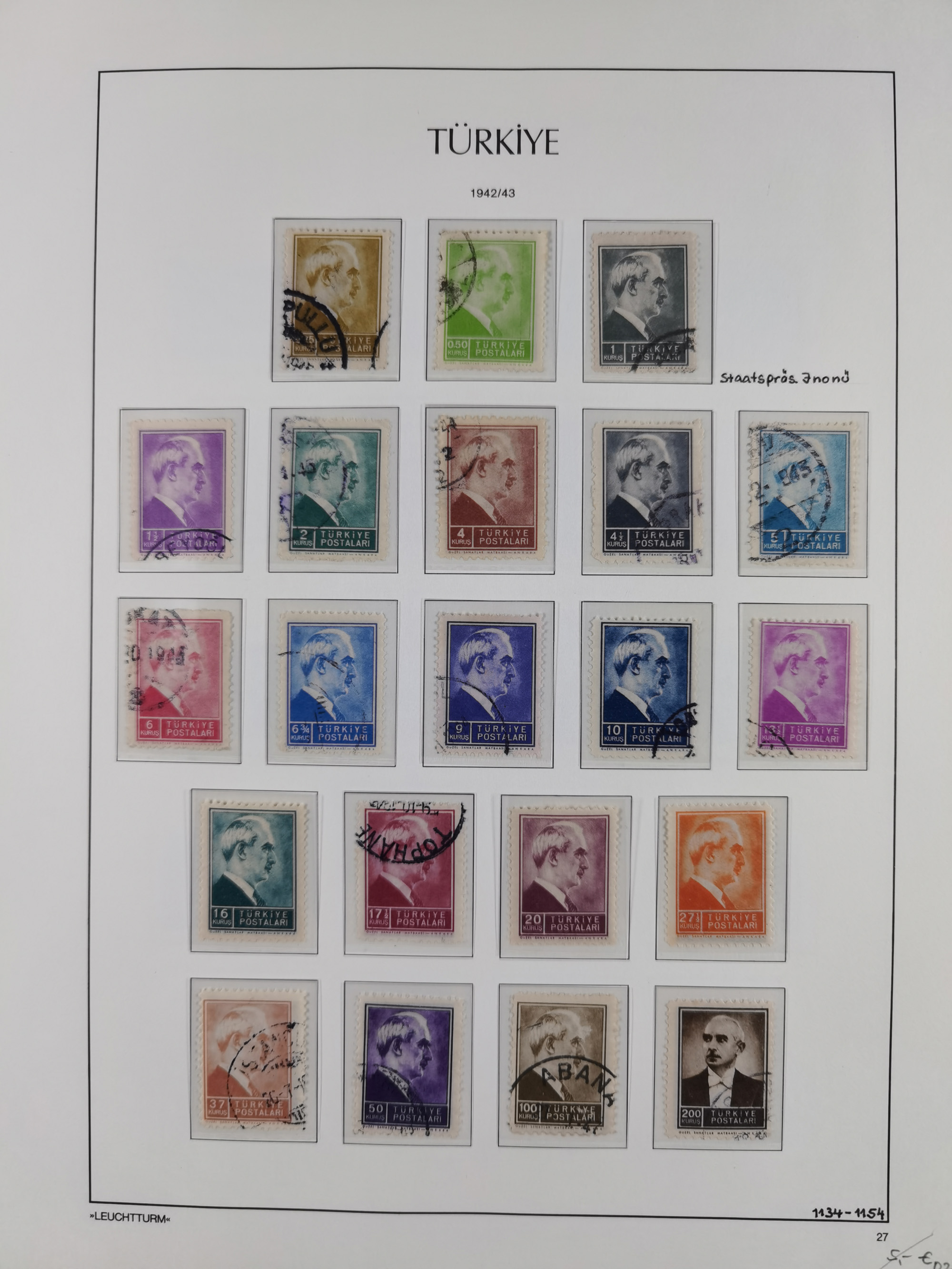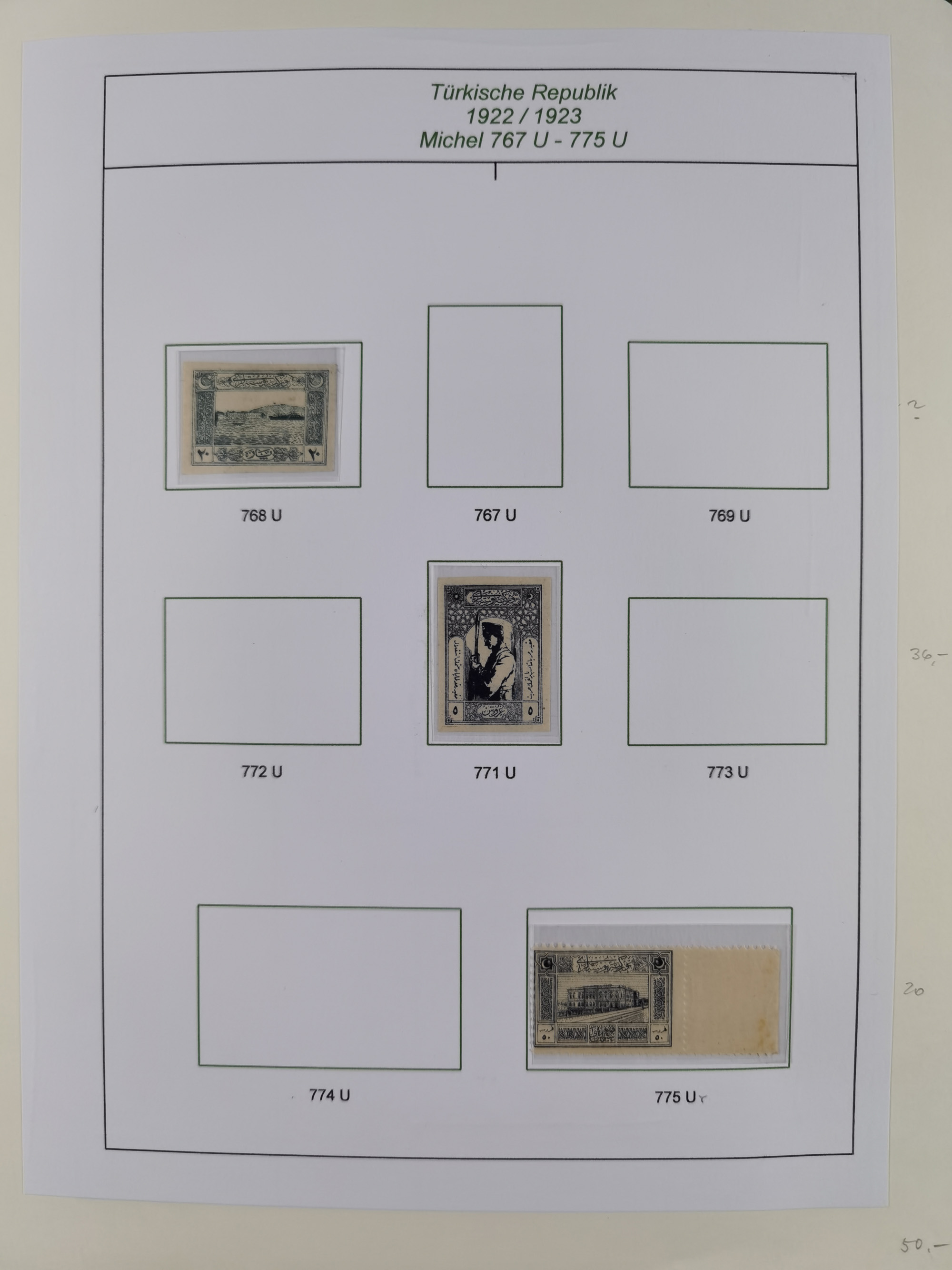 1920/69, mostly unused/mint and cancelled collection ‘Republic of Turkey’ in album with some better and complete issues Angora Government (Mi.705-708, 714-15, A721, 728H inverted and double), as well as some special items, including Mi. No. 754-766 unused (better signed or cert.), Sivas Railway (Mi. 913-934) unused. Many better stamps signed, condition from slightly flawed to flawless.