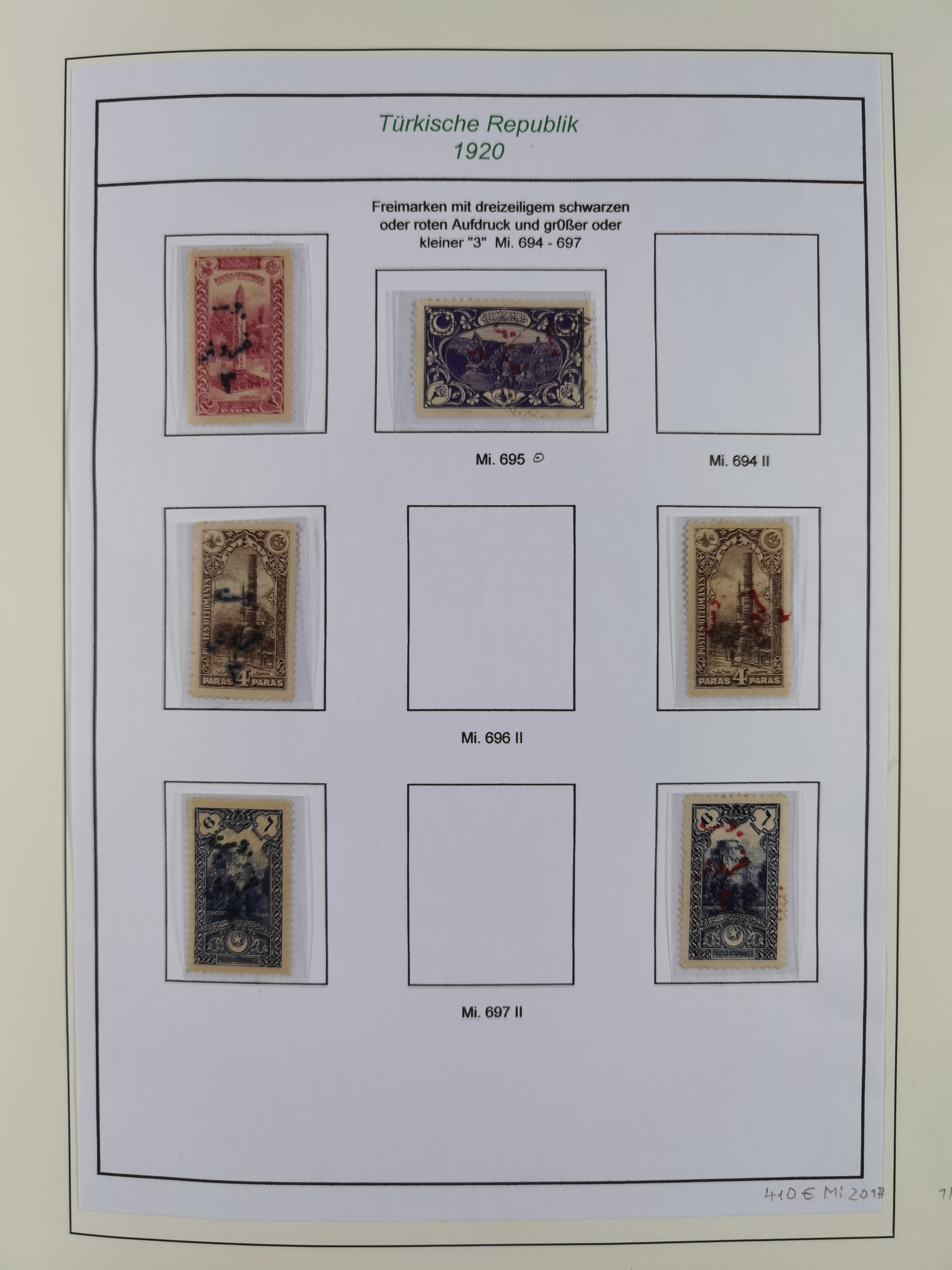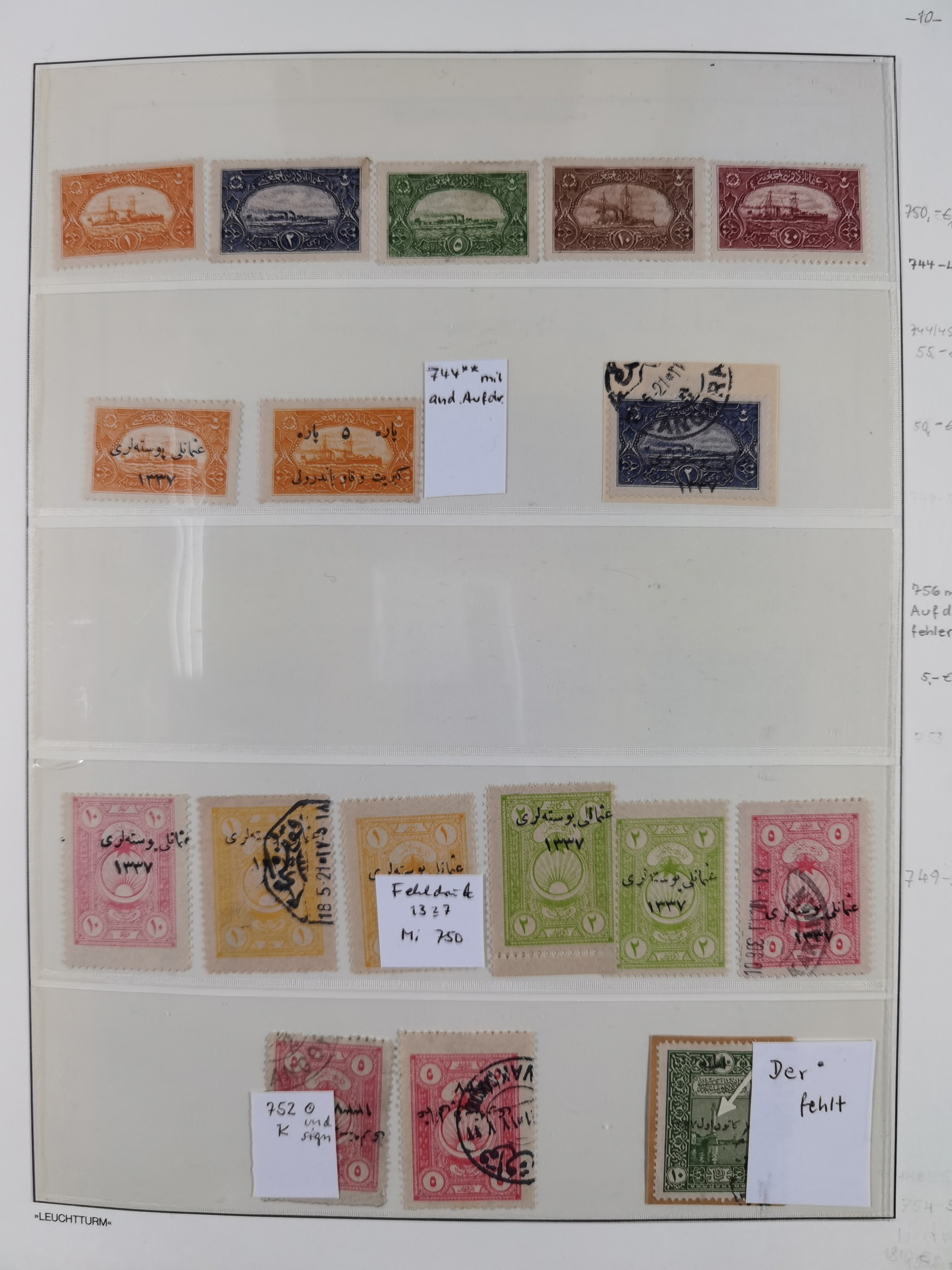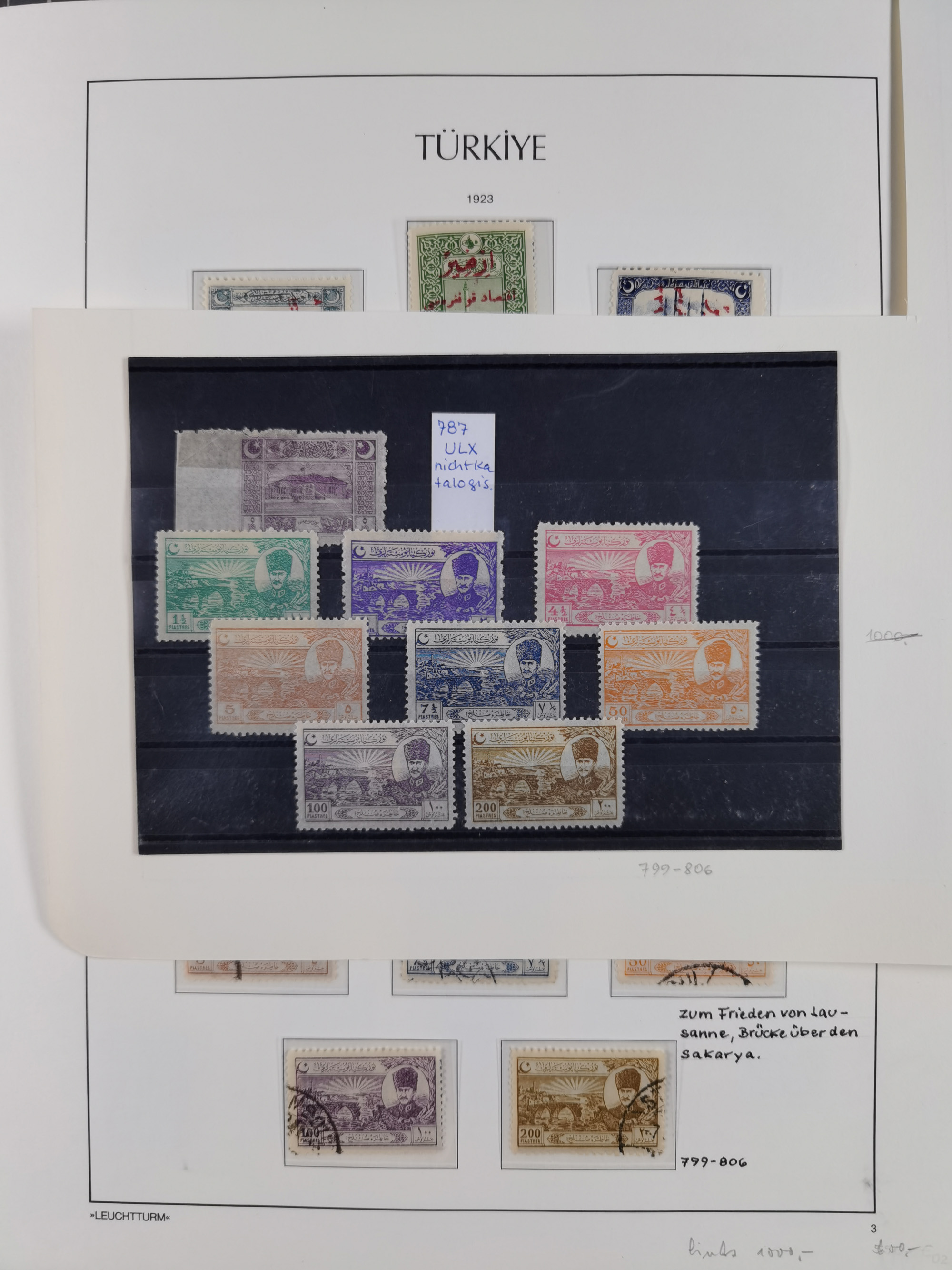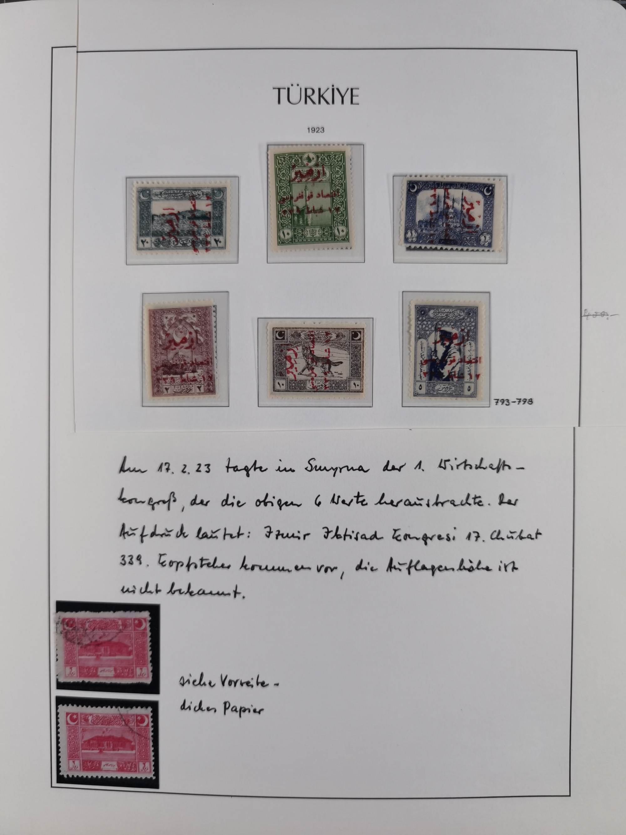 1920/23, Turkey in Asia collection on eight album pages starting with first issues, including Mi.739, 742 mint and used, specialized with inverted and double overprints, shifted overprints and errors, plate flaws catalogued according to the book by Max Mayo