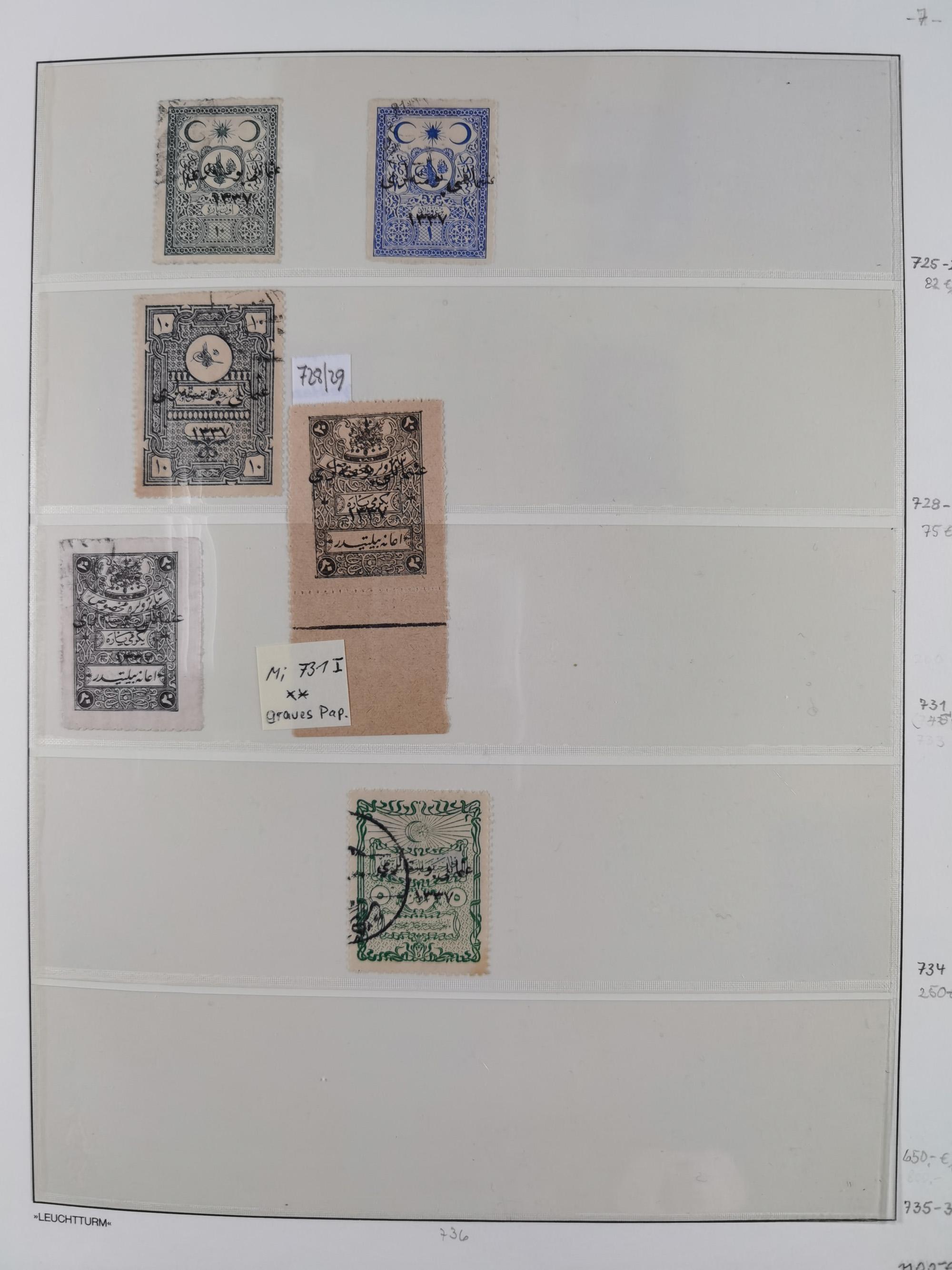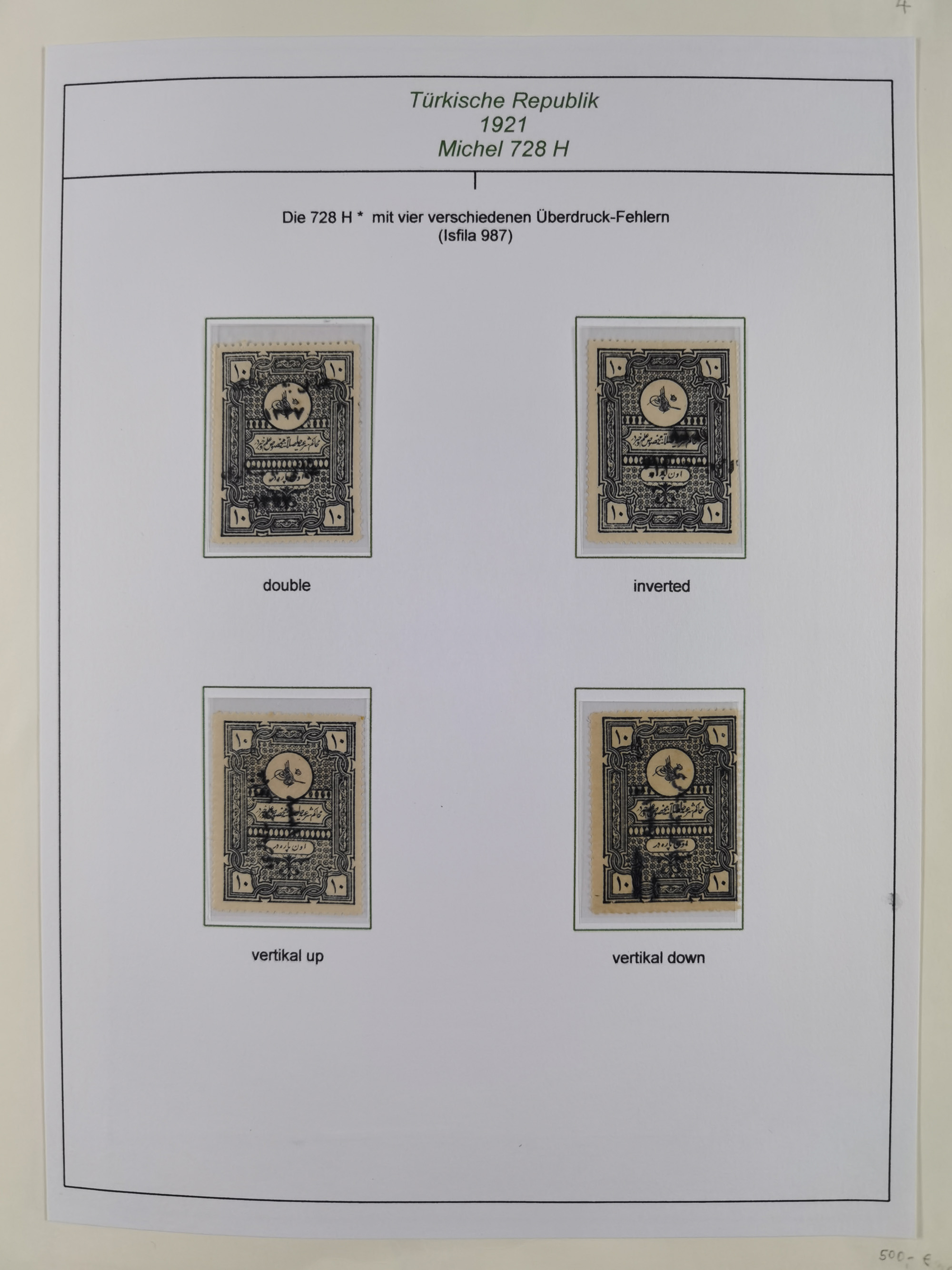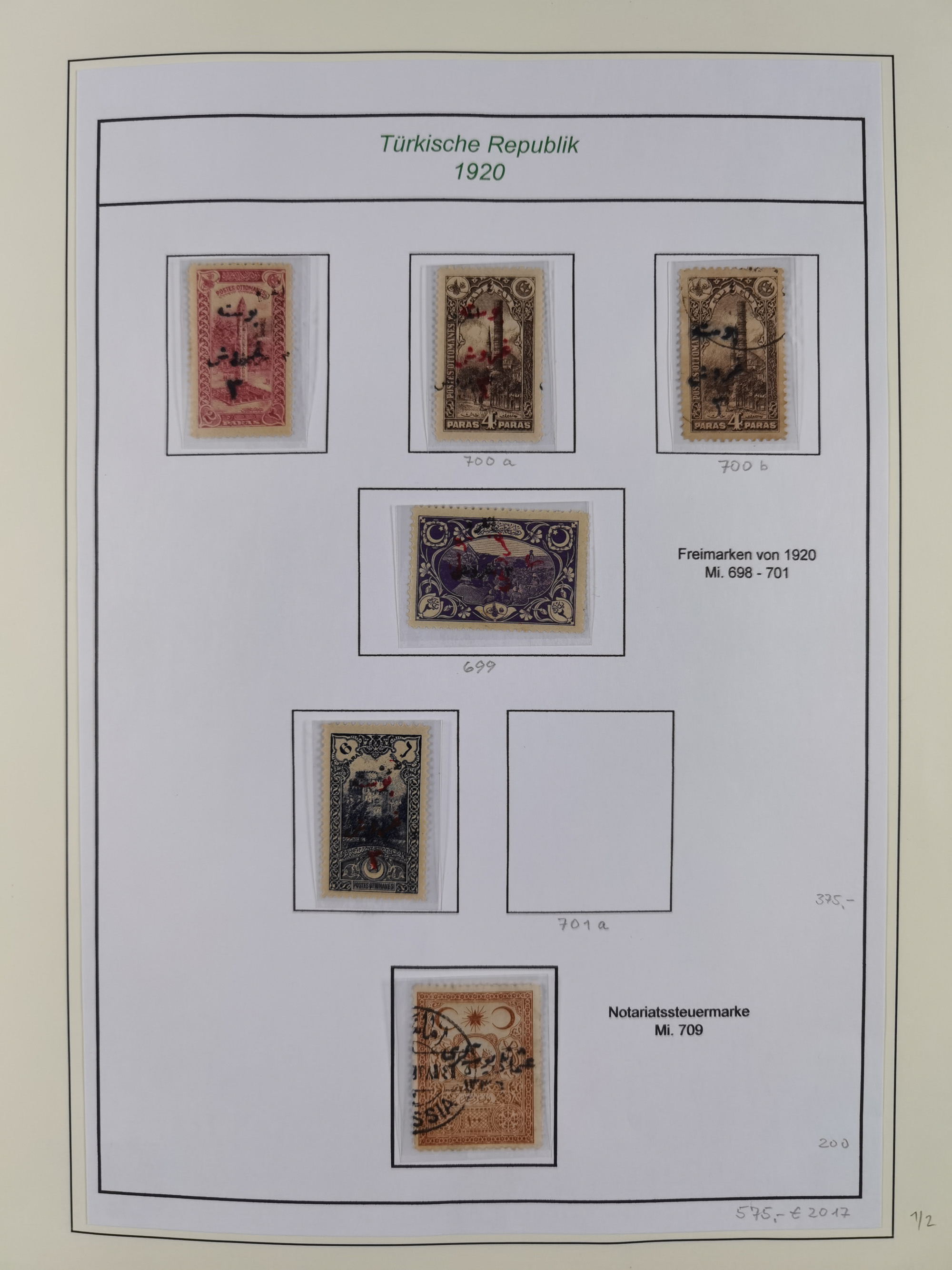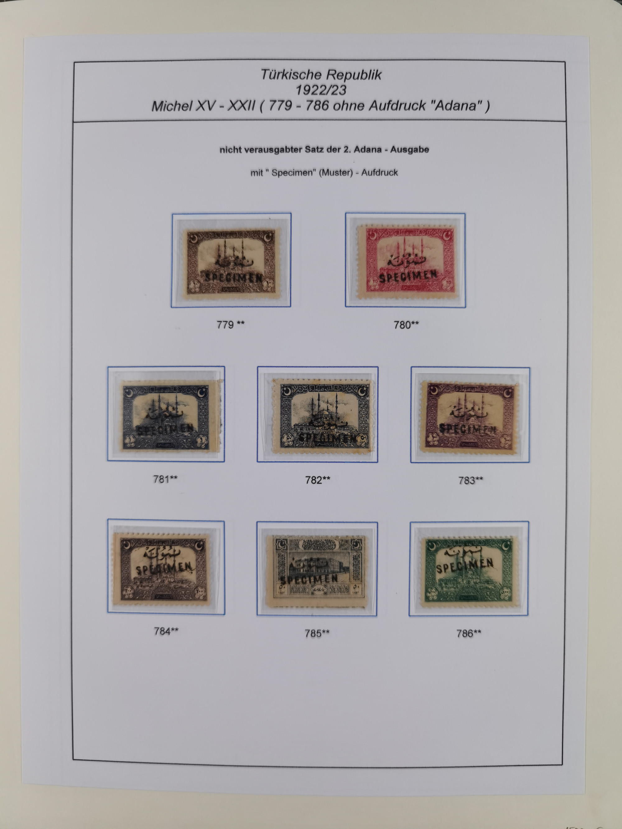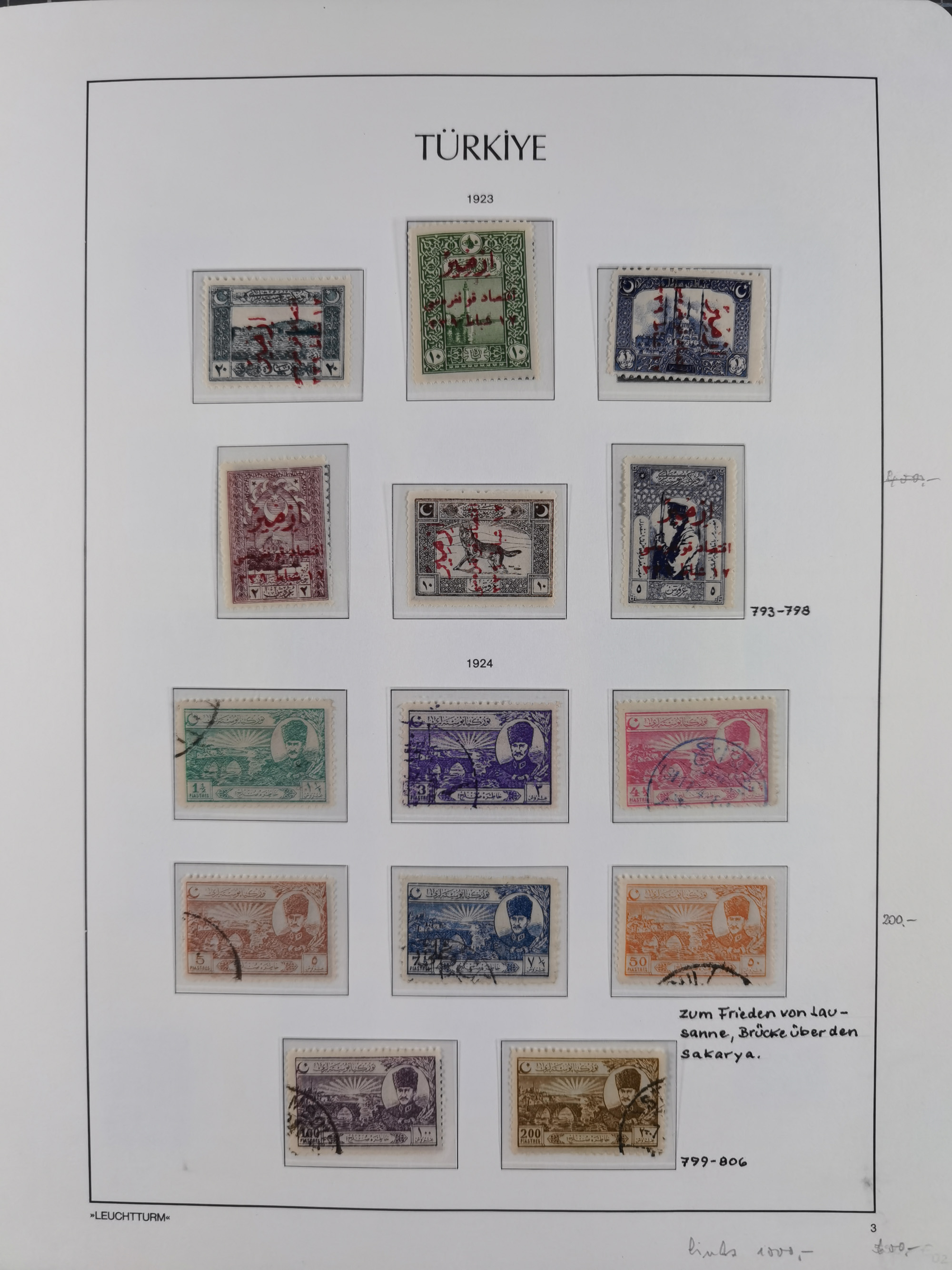 1920/23, Turkey in Asia collection on eight album pages starting with first issues, including Mi.739, 742 mint and used, specialized with inverted and double overprints, shifted overprints and errors, plate flaws catalogued according to the book by Max Mayo