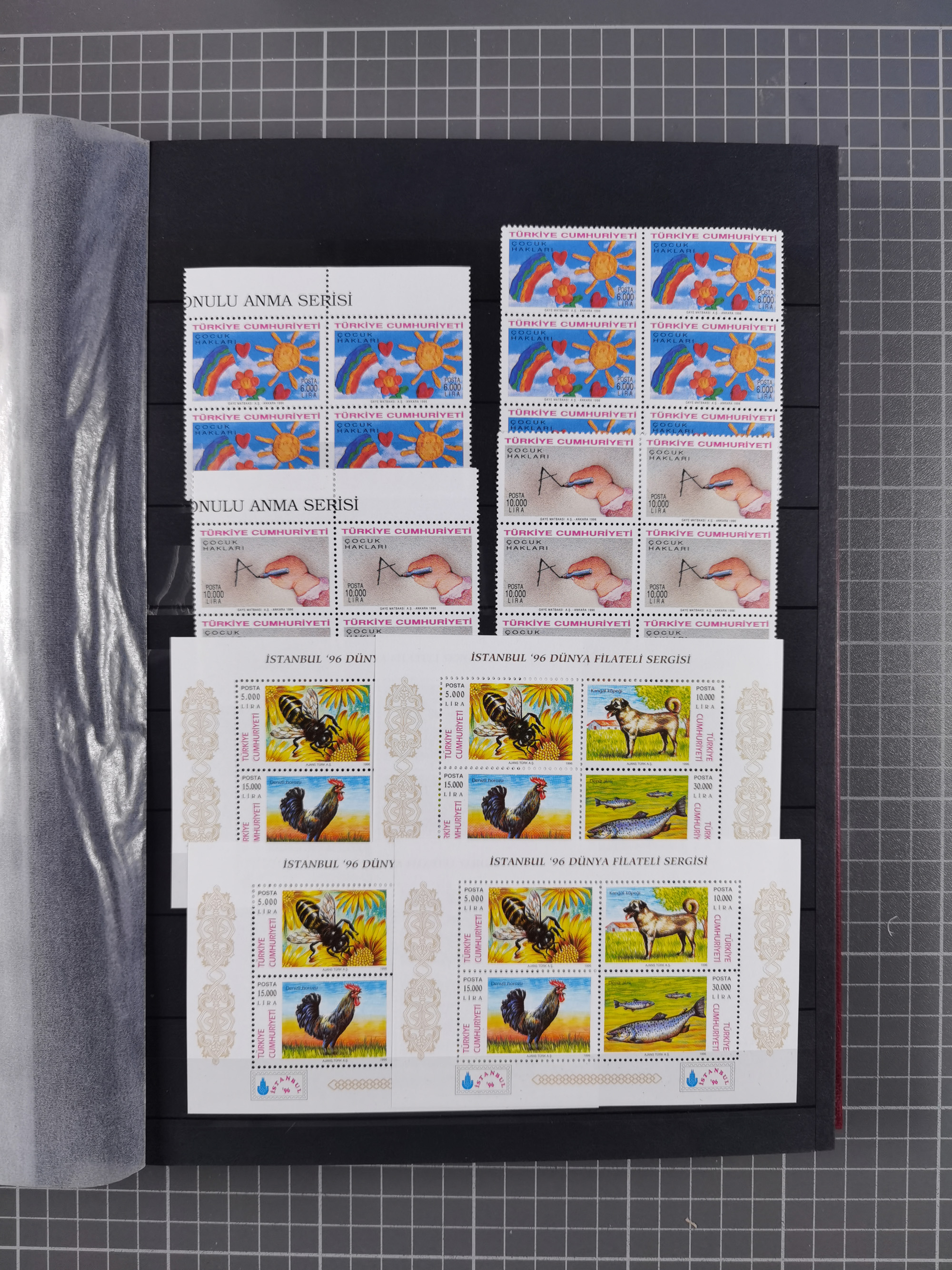 1960/2004, Stamps in blocks, all mint never hinged, including complete sheet animals 1979, 43 souvenir sheets, very fine.