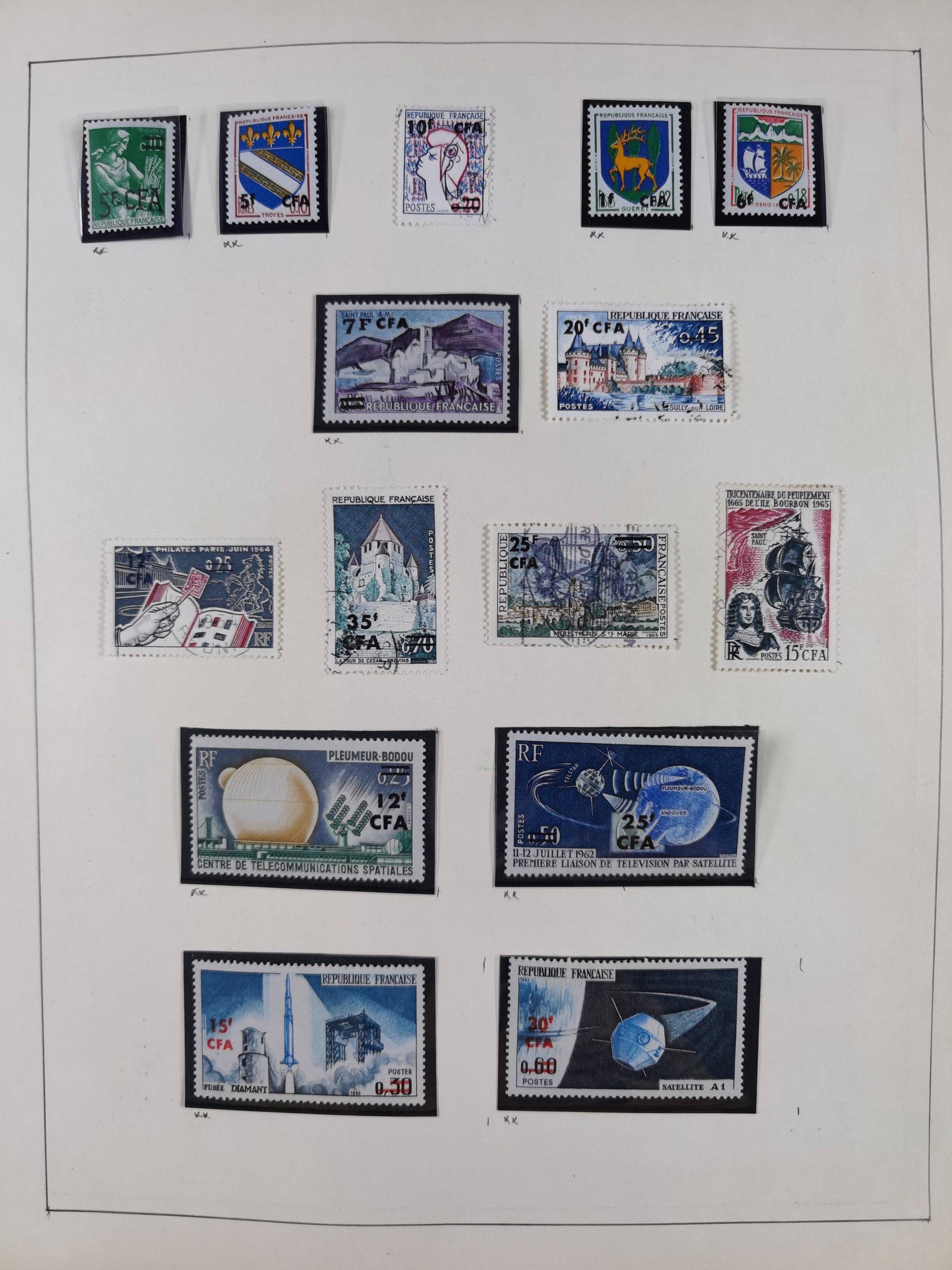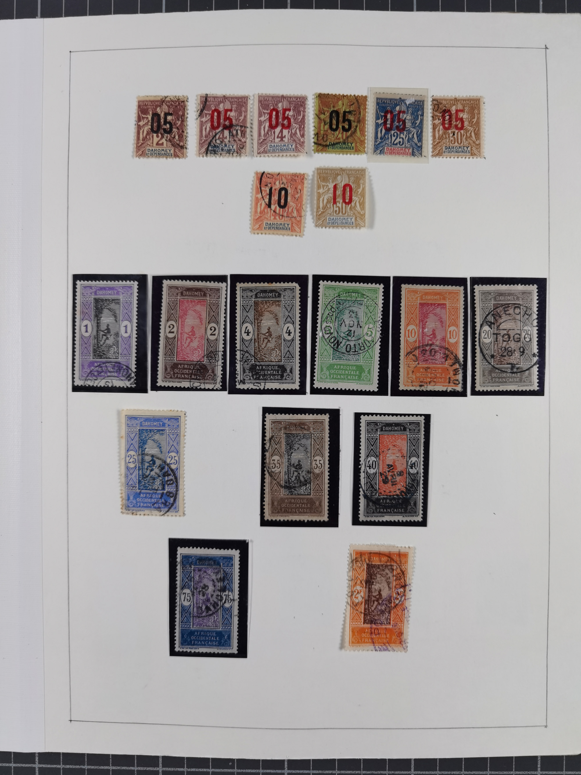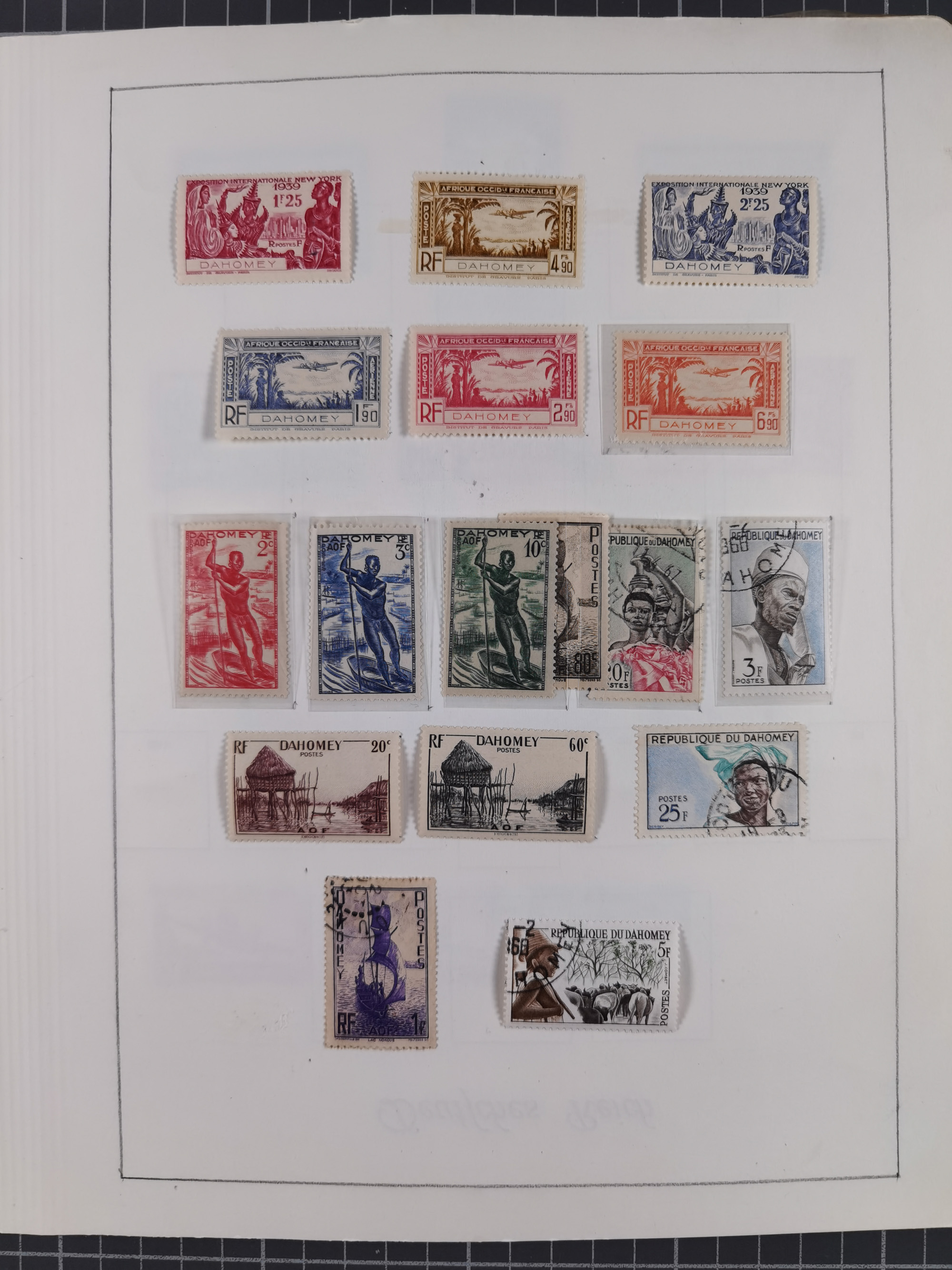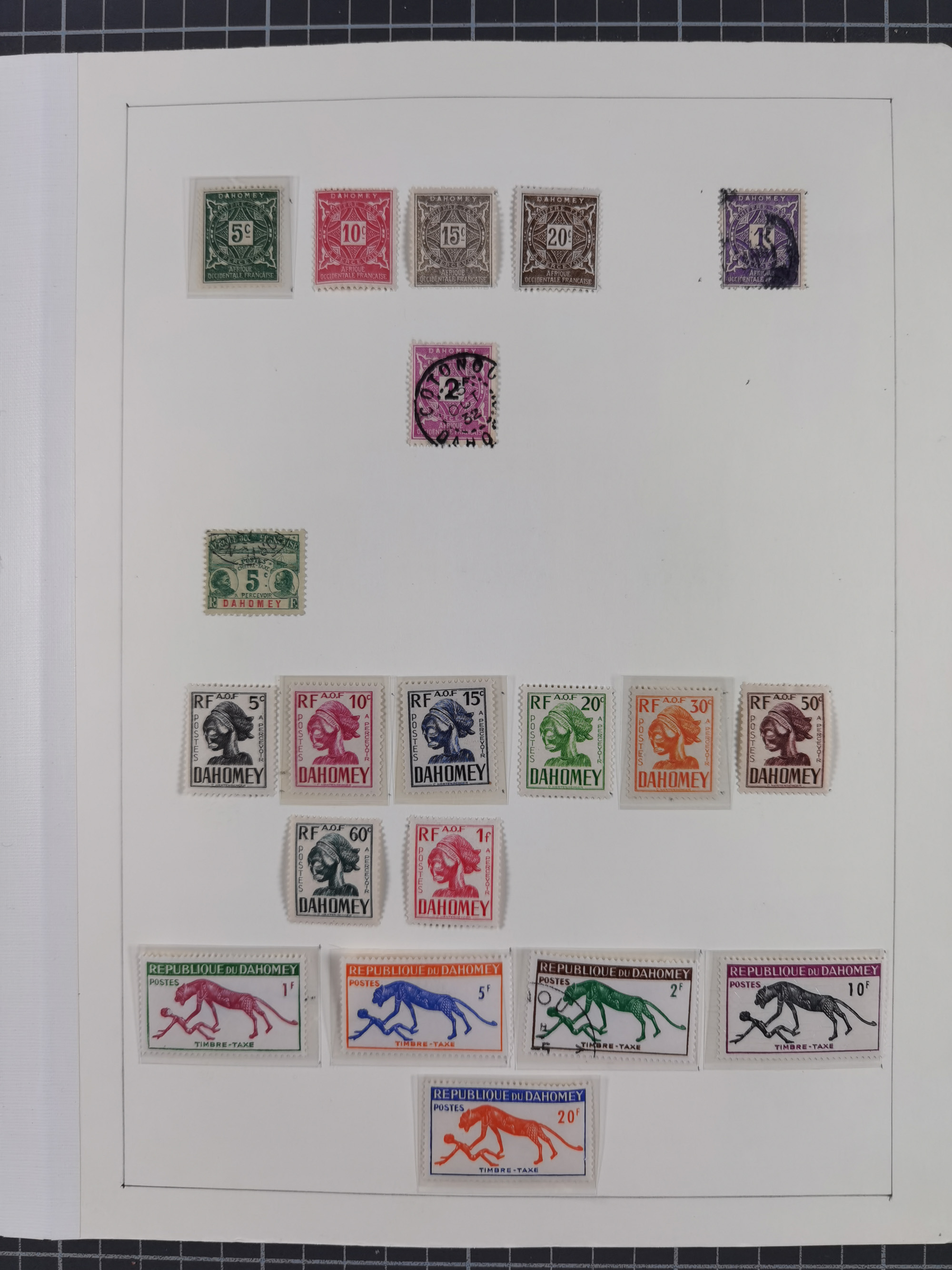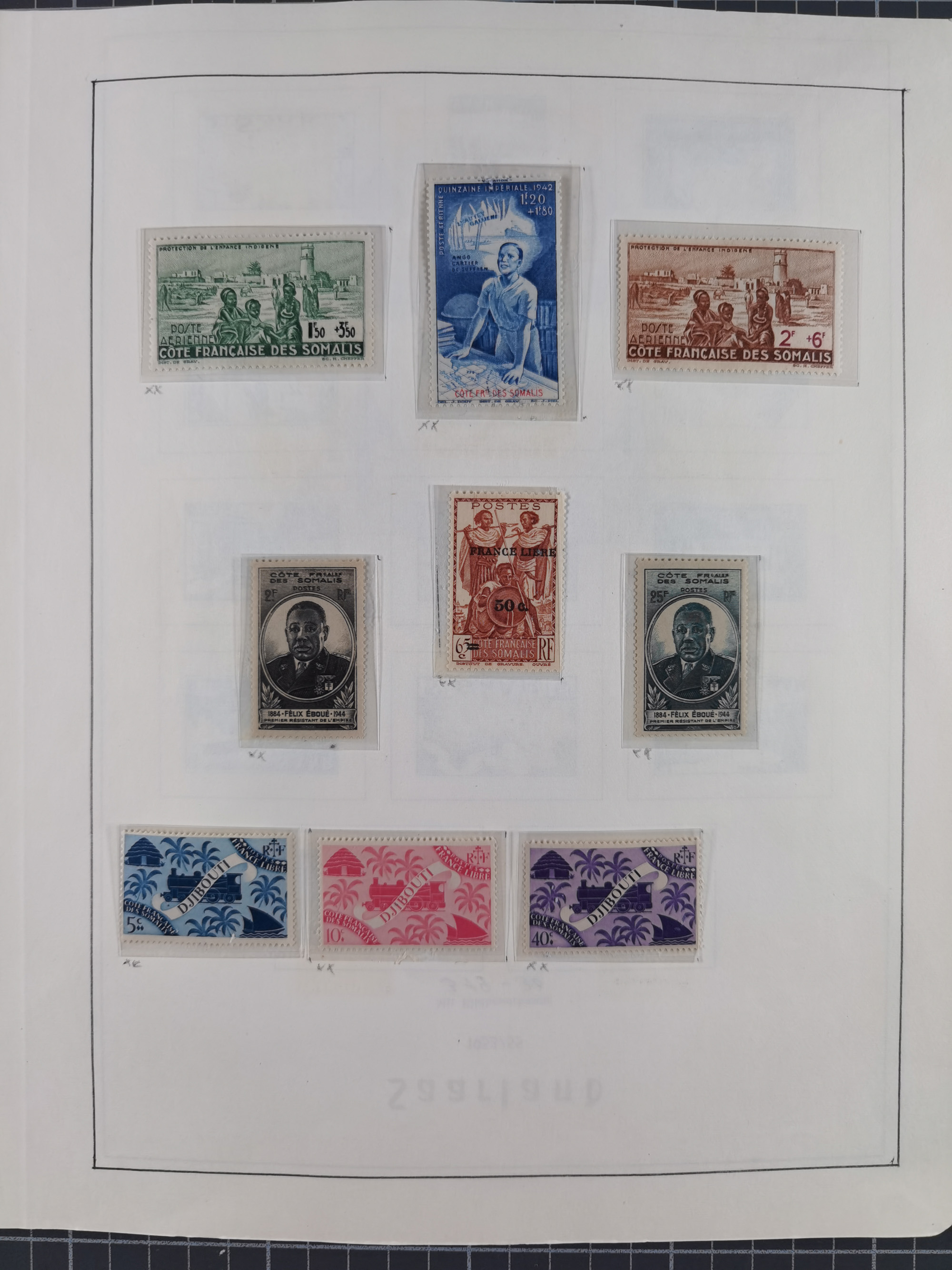 1895/1975 (ca)  unsued and used collection French Colonies and successor states, with stamps from a.o. Algeria, Dahomey, French Sudan, Obock, Gabon, Guinea, Cameroon, Madagascar with better overprint stamps, Réunion, Senegal, Somalia and Togo. Plus two page with the general issues 1859/86 incl. postage due, mostly in good condition