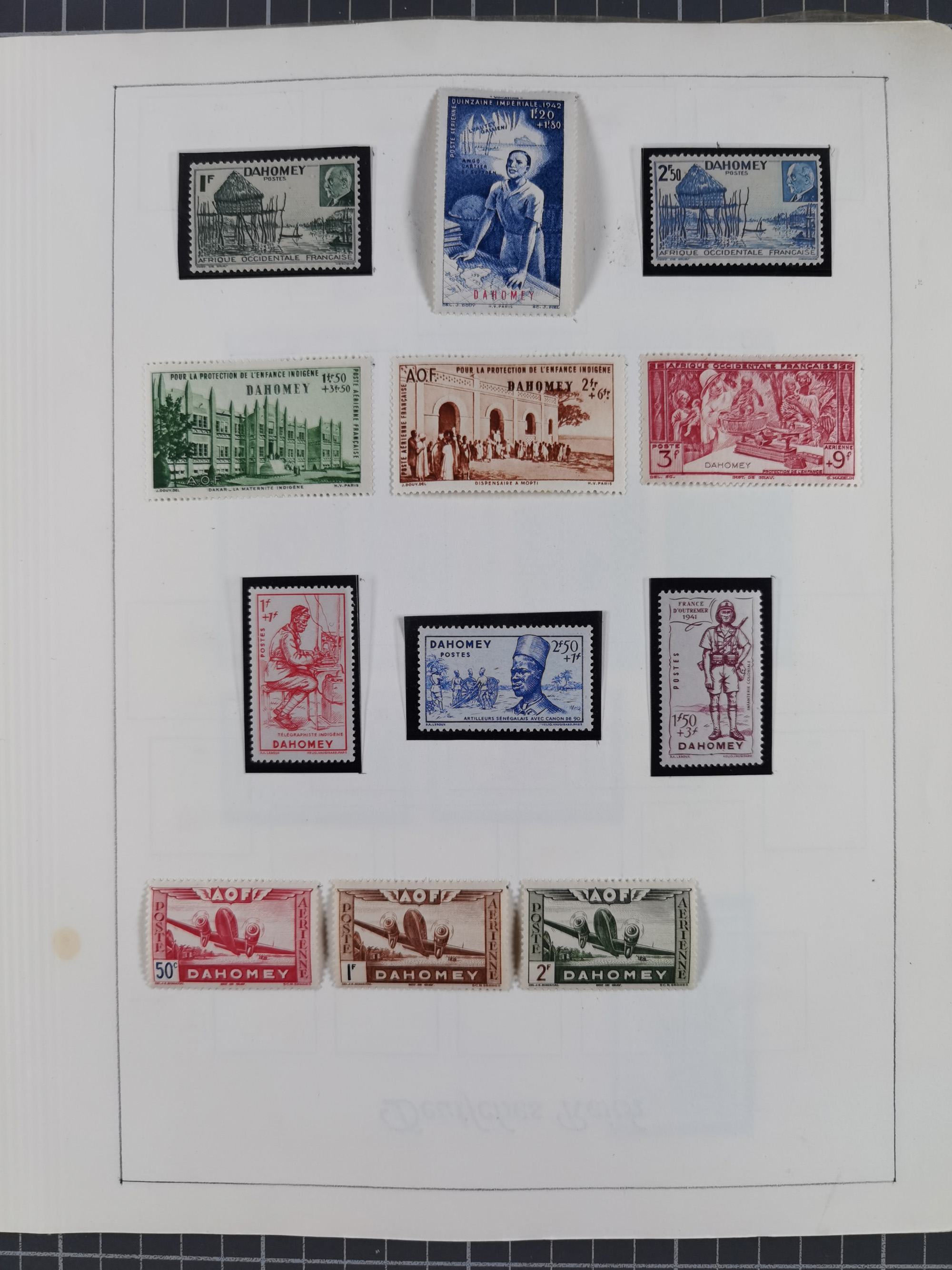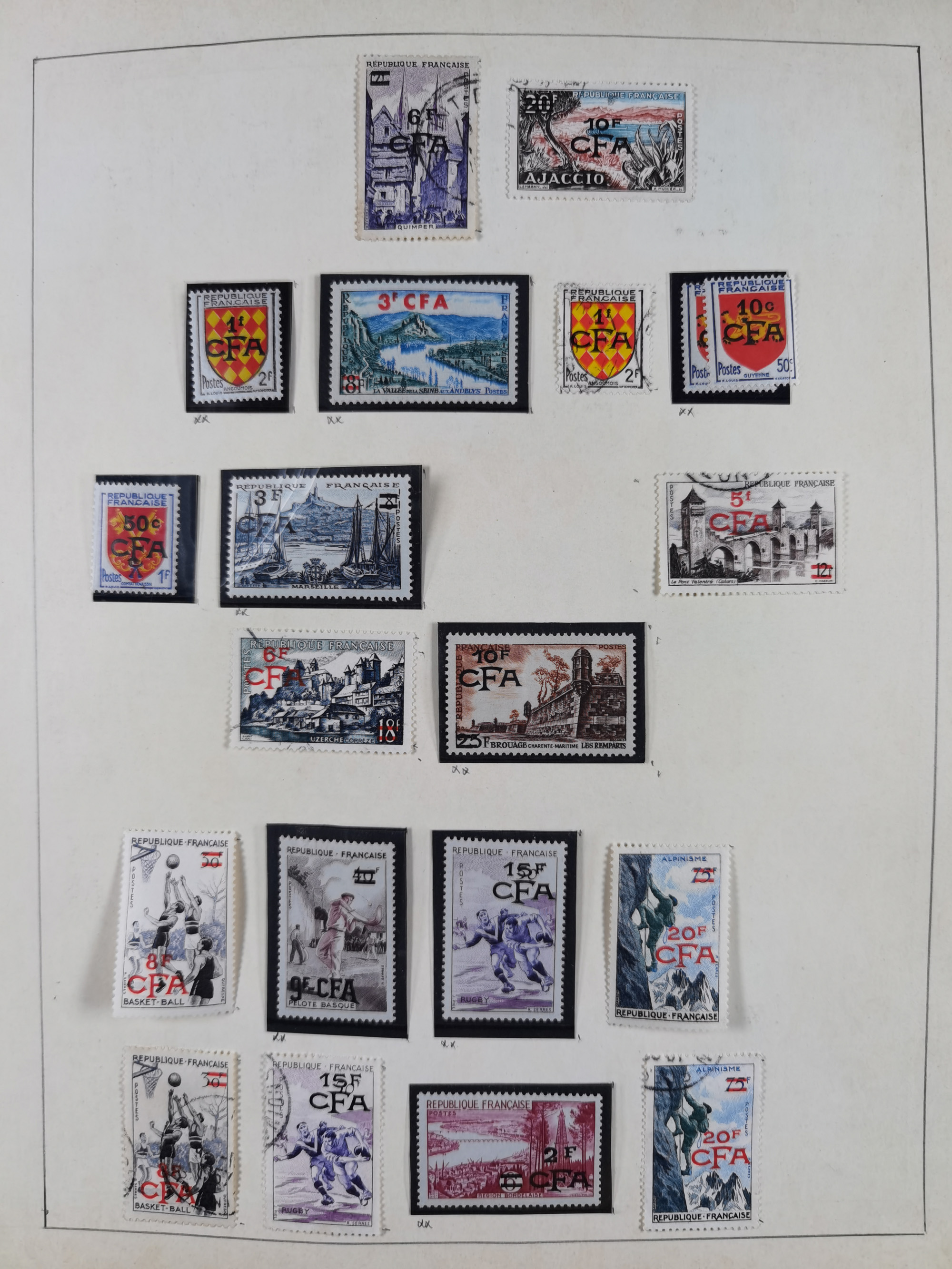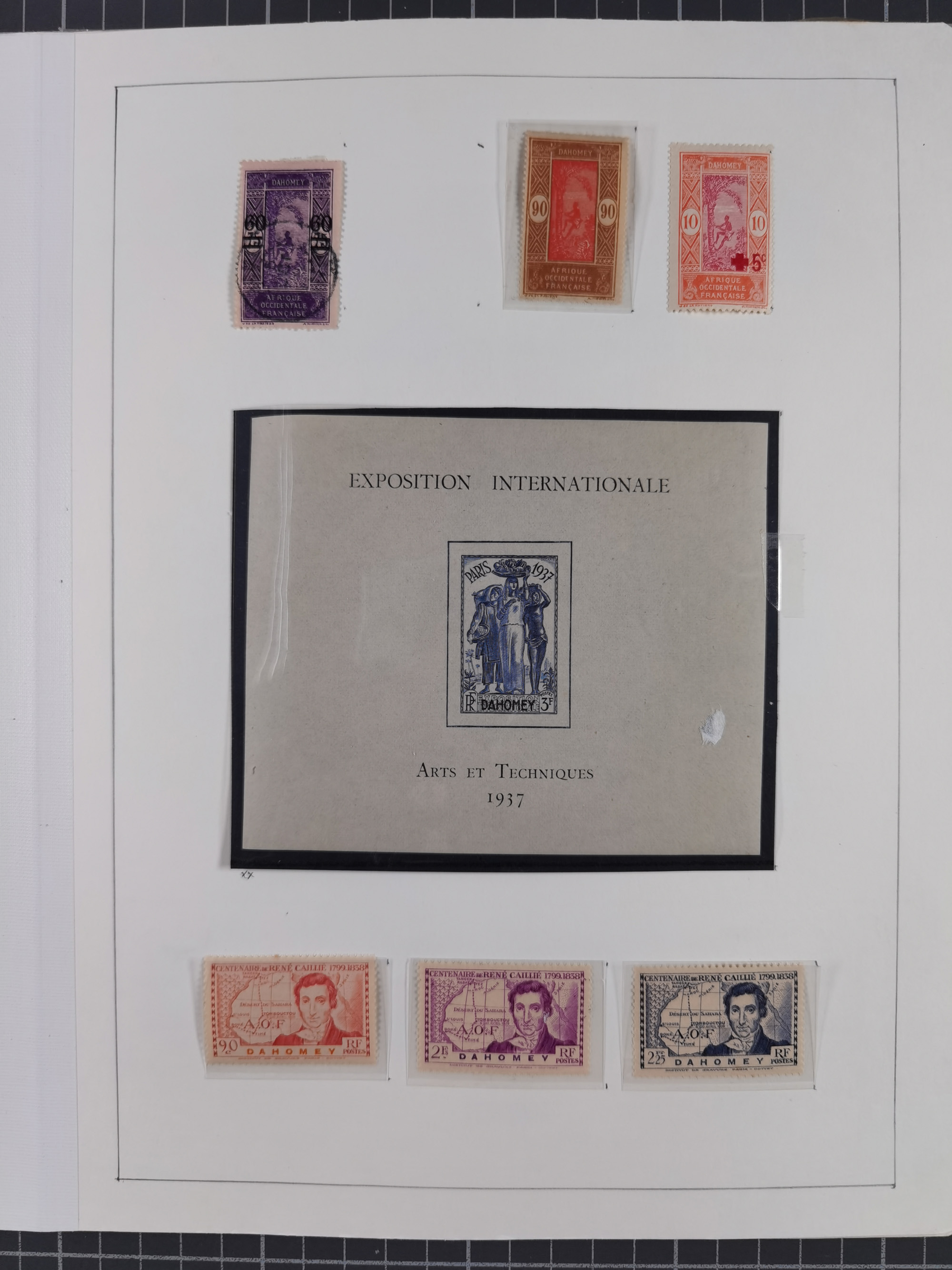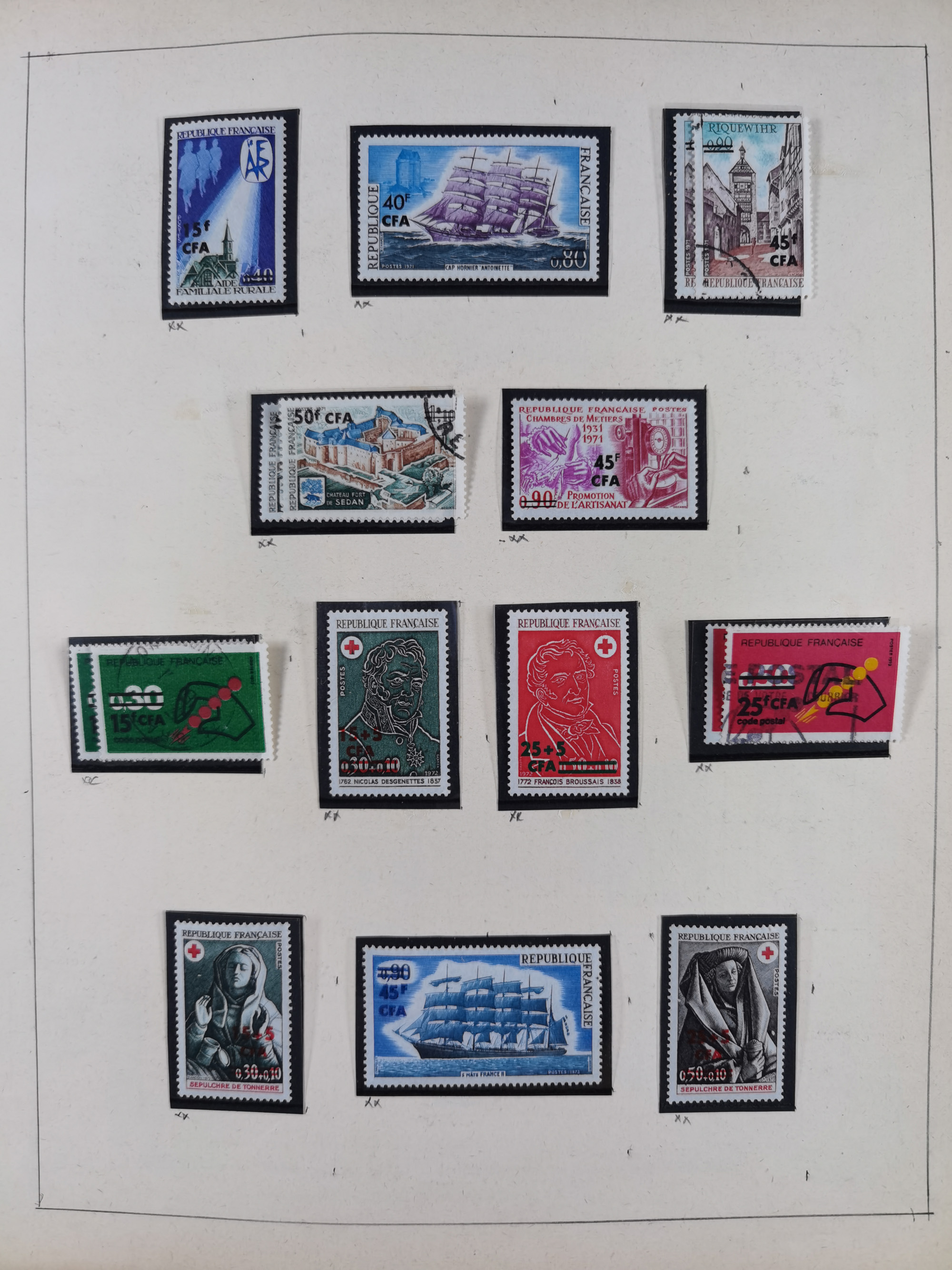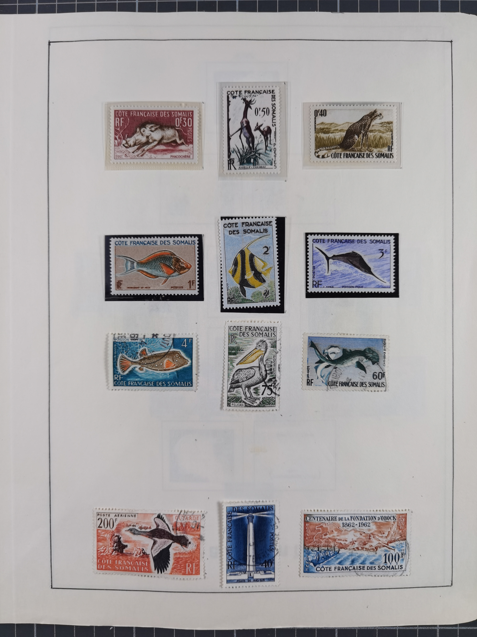 1895/1975 (ca)  unsued and used collection French Colonies and successor states, with stamps from a.o. Algeria, Dahomey, French Sudan, Obock, Gabon, Guinea, Cameroon, Madagascar with better overprint stamps, Réunion, Senegal, Somalia and Togo. Plus two page with the general issues 1859/86 incl. postage due, mostly in good condition