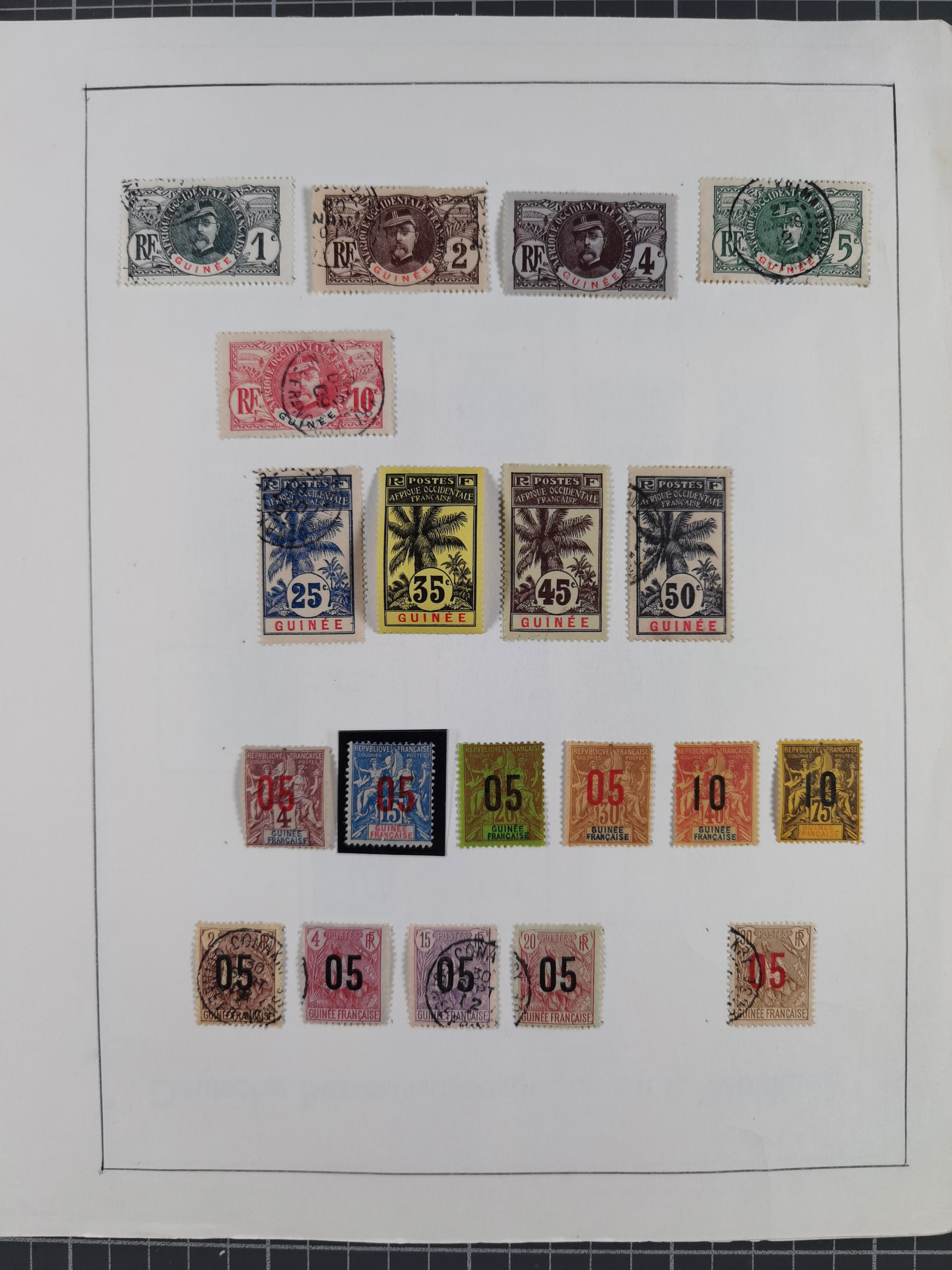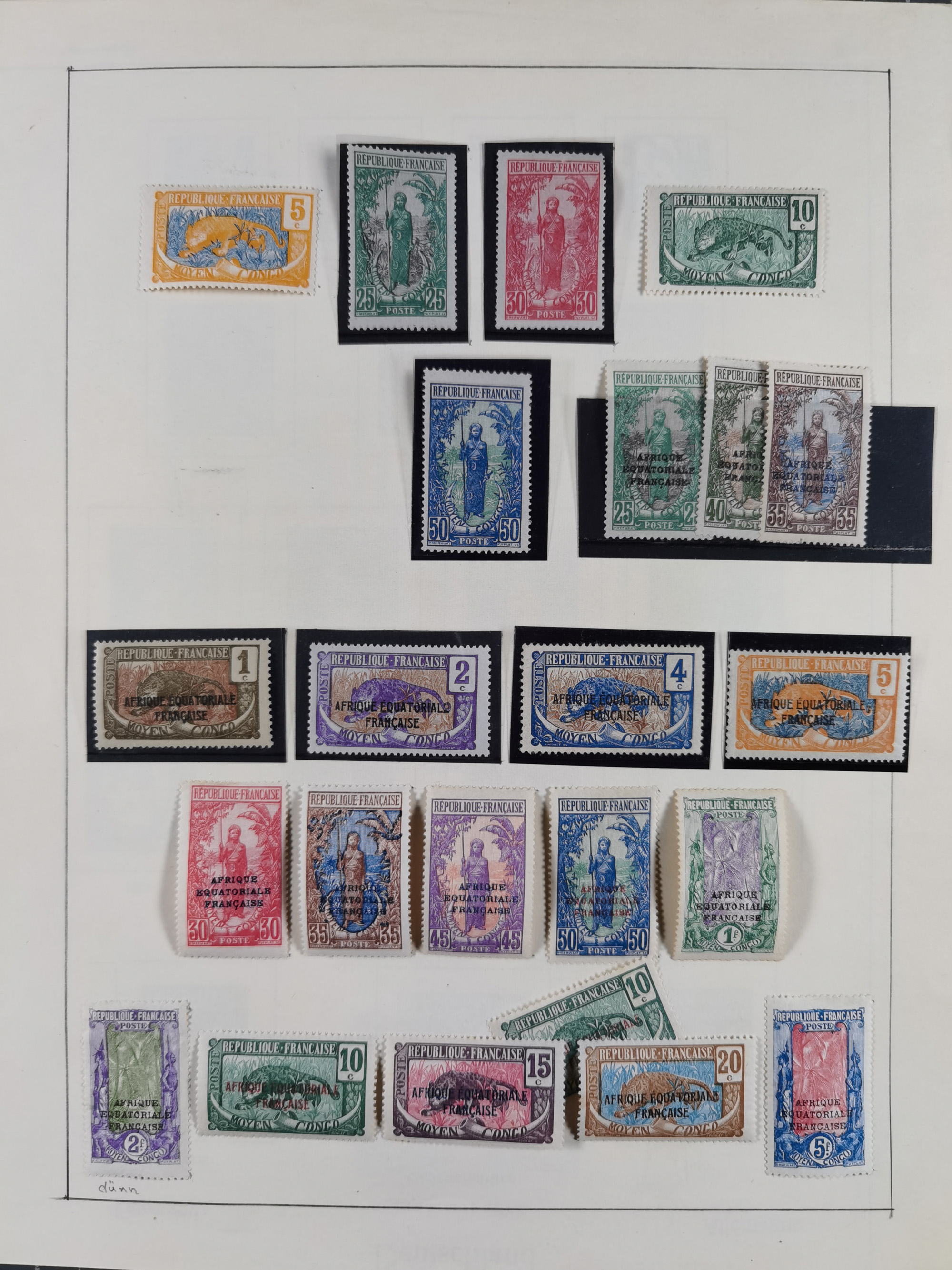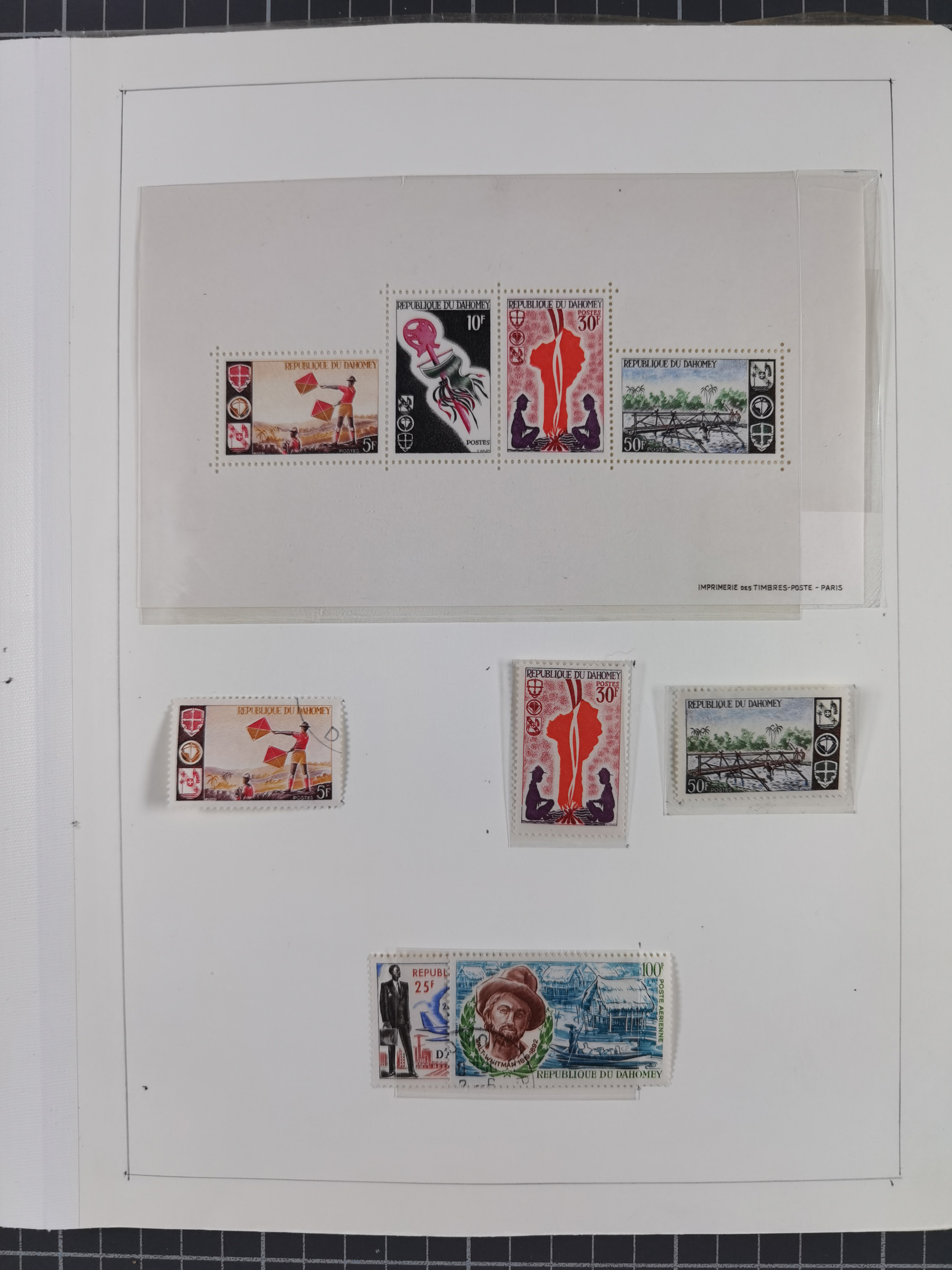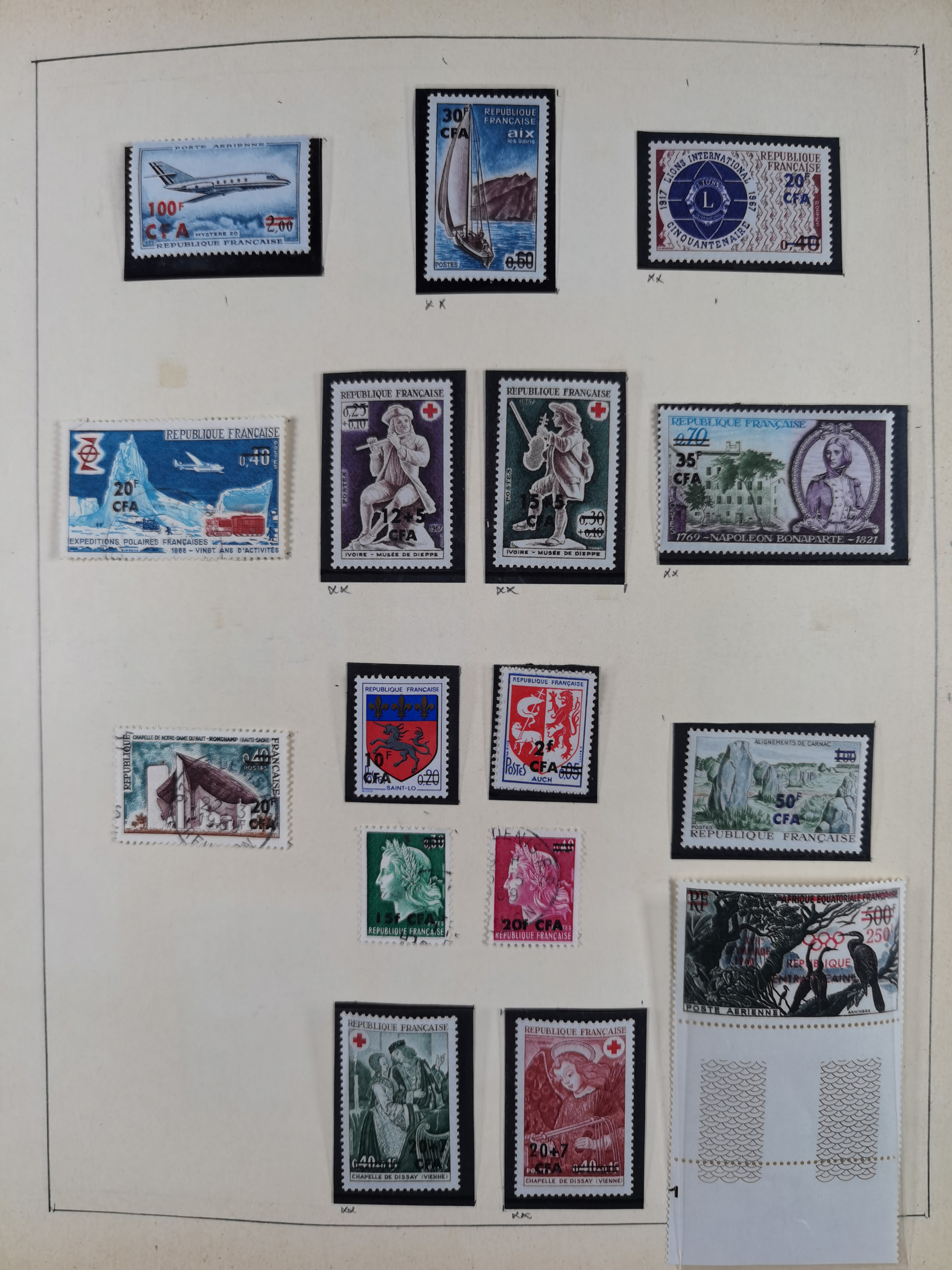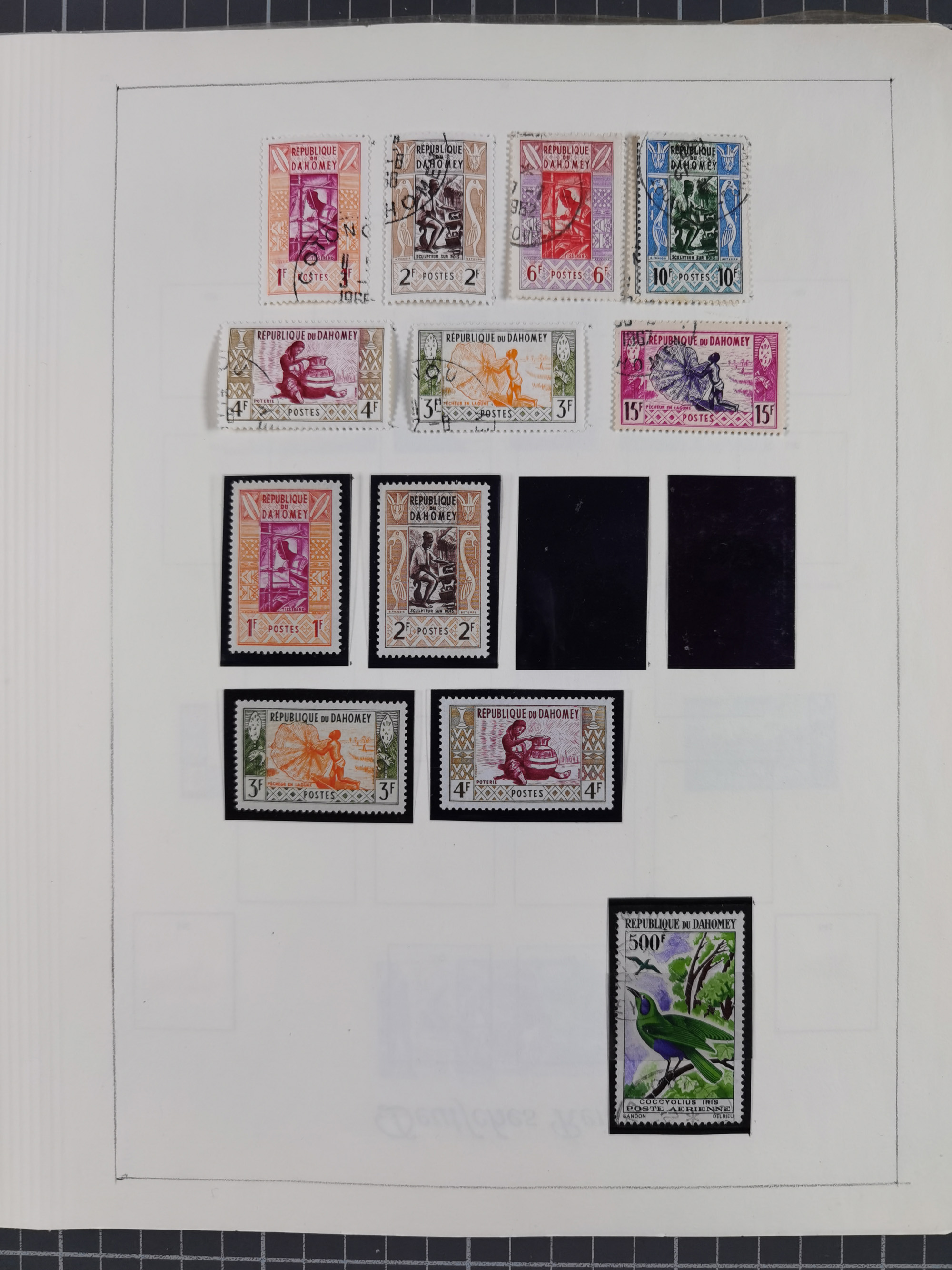 1895/1975 (ca)  unsued and used collection French Colonies and successor states, with stamps from a.o. Algeria, Dahomey, French Sudan, Obock, Gabon, Guinea, Cameroon, Madagascar with better overprint stamps, Réunion, Senegal, Somalia and Togo. Plus two page with the general issues 1859/86 incl. postage due, mostly in good condition