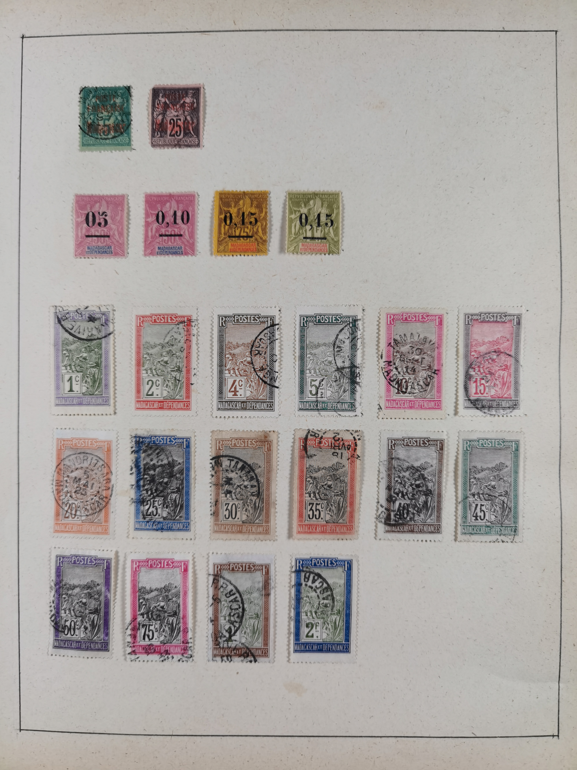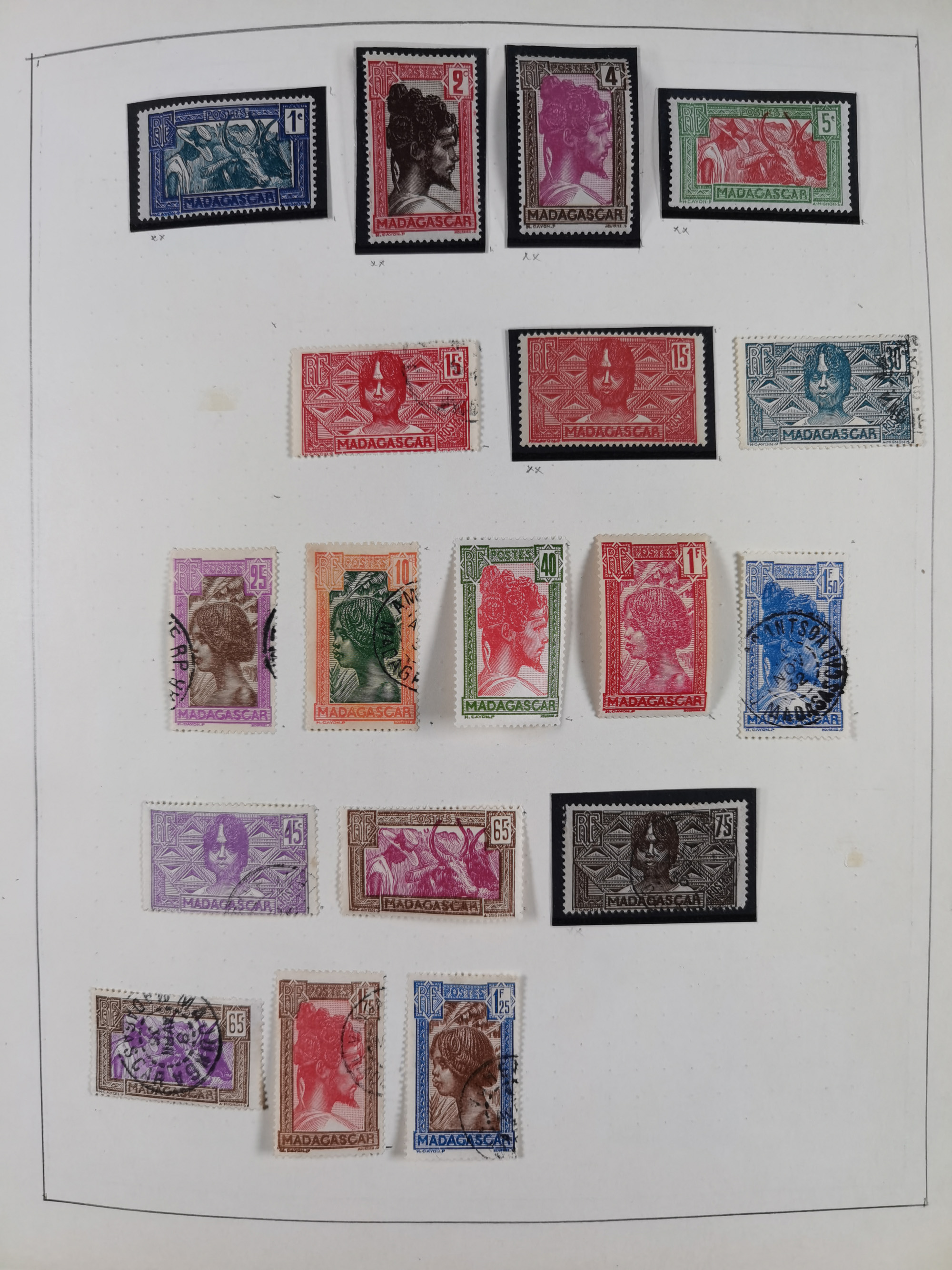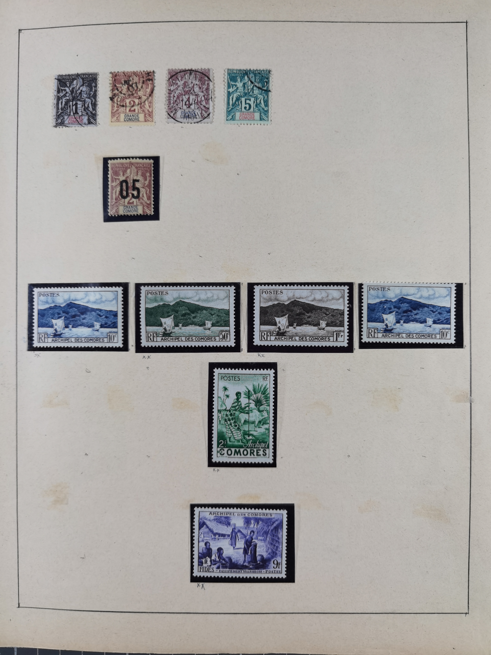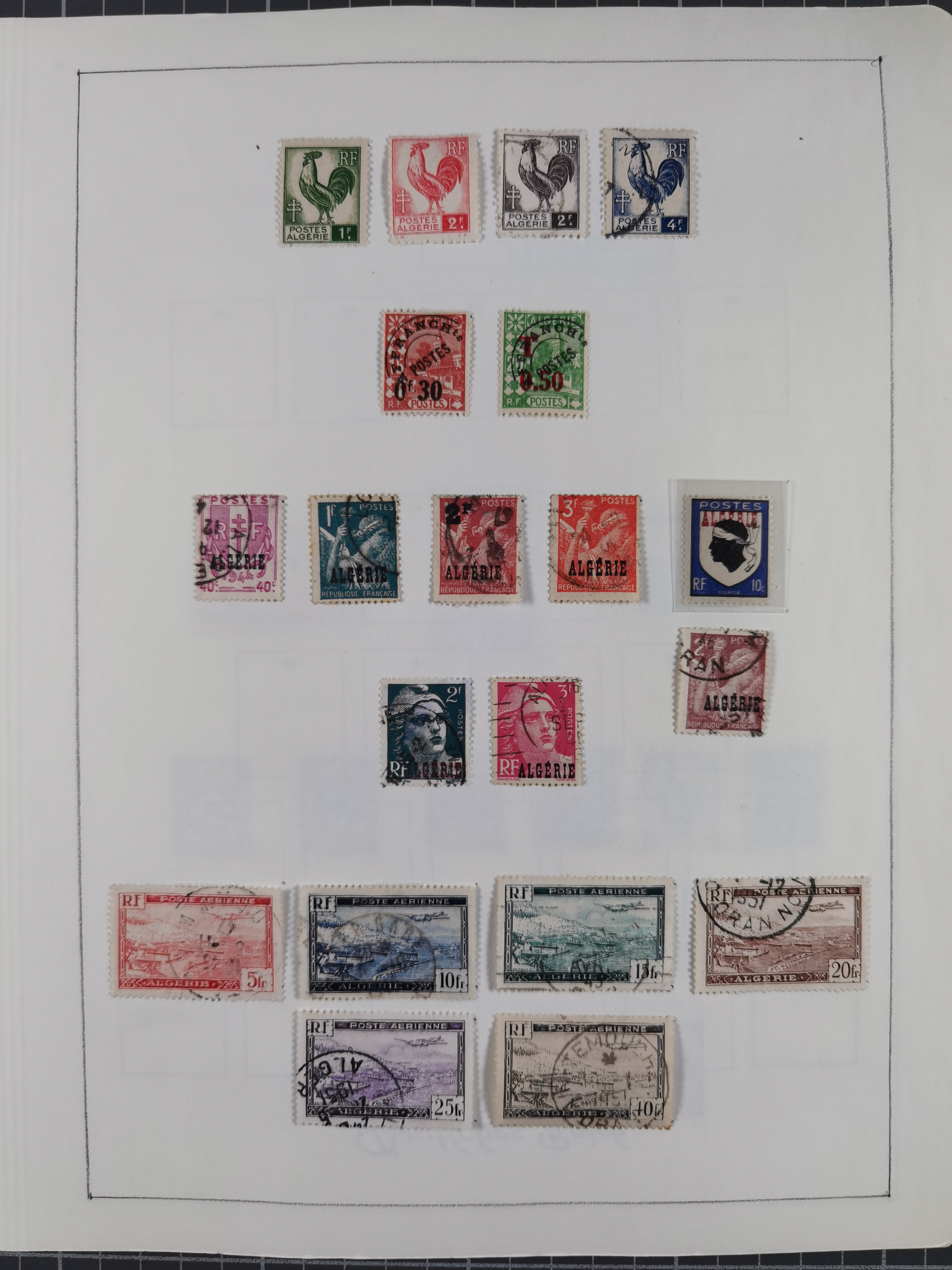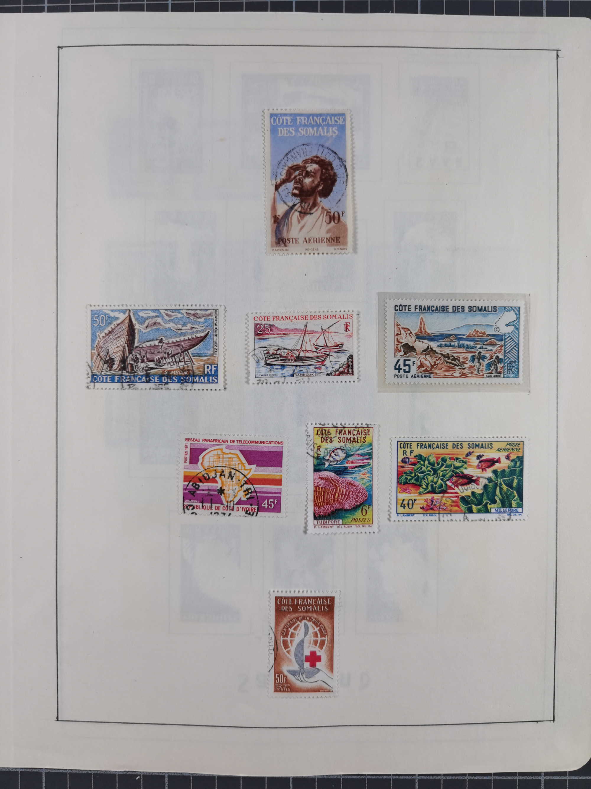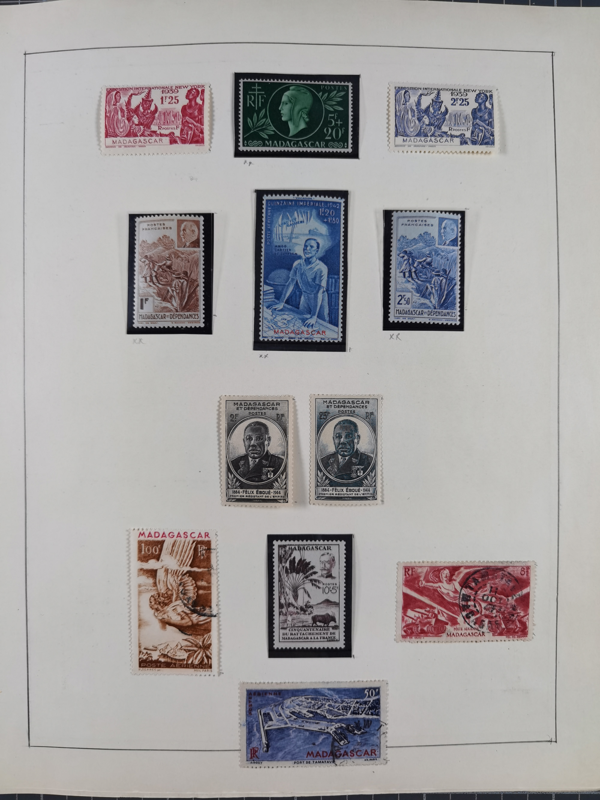 1895/1975 (ca)  unsued and used collection French Colonies and successor states, with stamps from a.o. Algeria, Dahomey, French Sudan, Obock, Gabon, Guinea, Cameroon, Madagascar with better overprint stamps, Réunion, Senegal, Somalia and Togo. Plus two page with the general issues 1859/86 incl. postage due, mostly in good condition