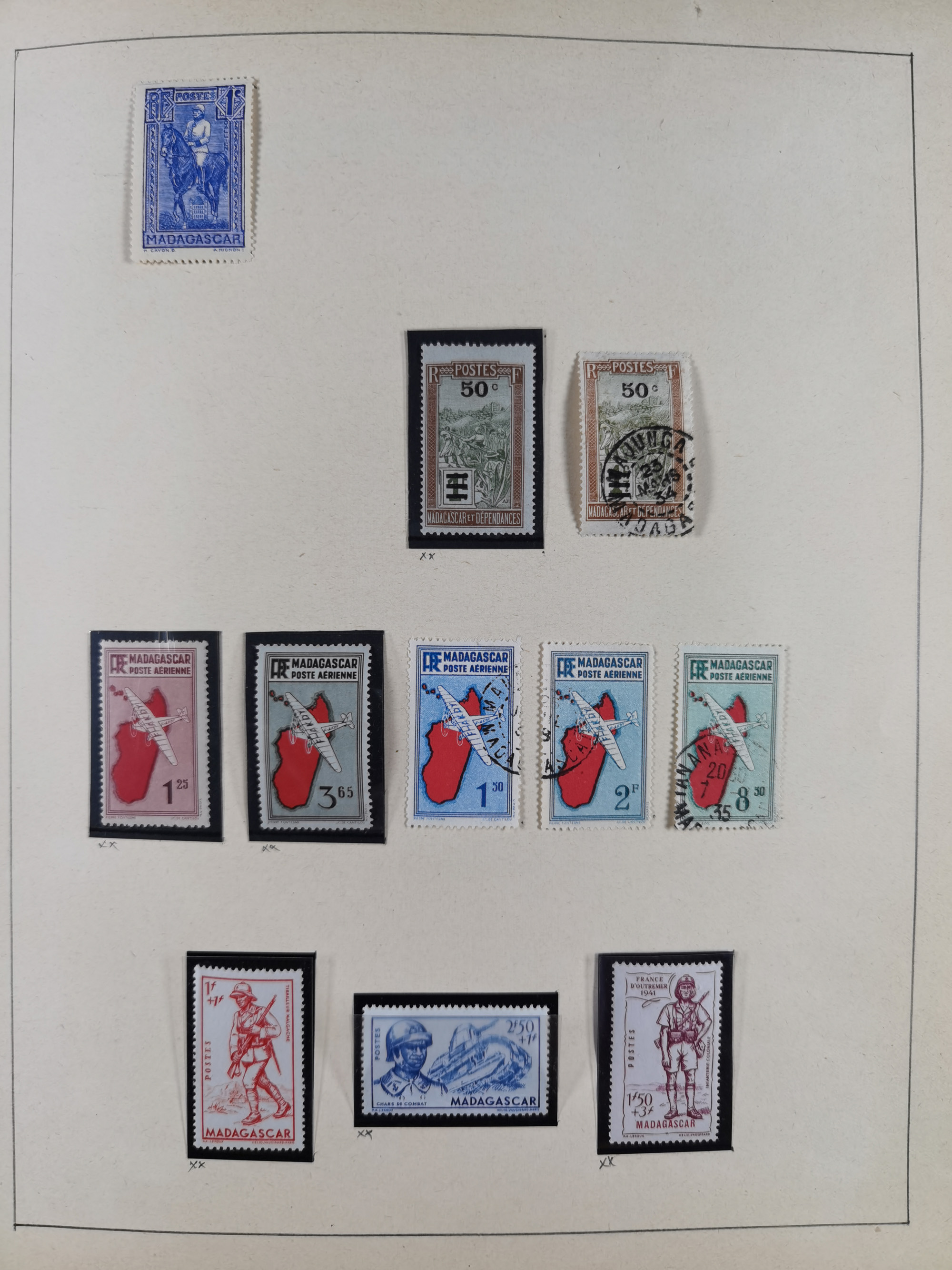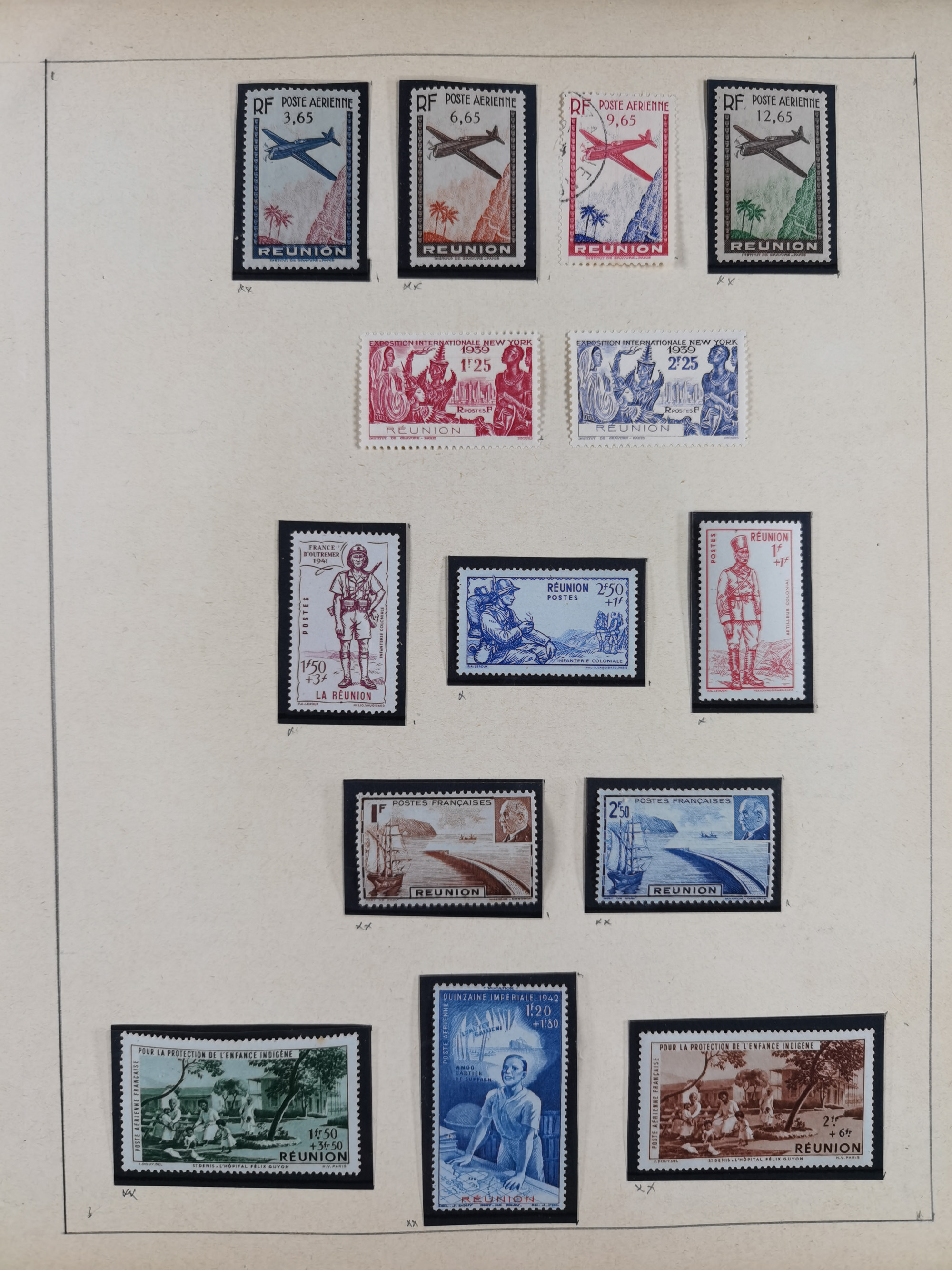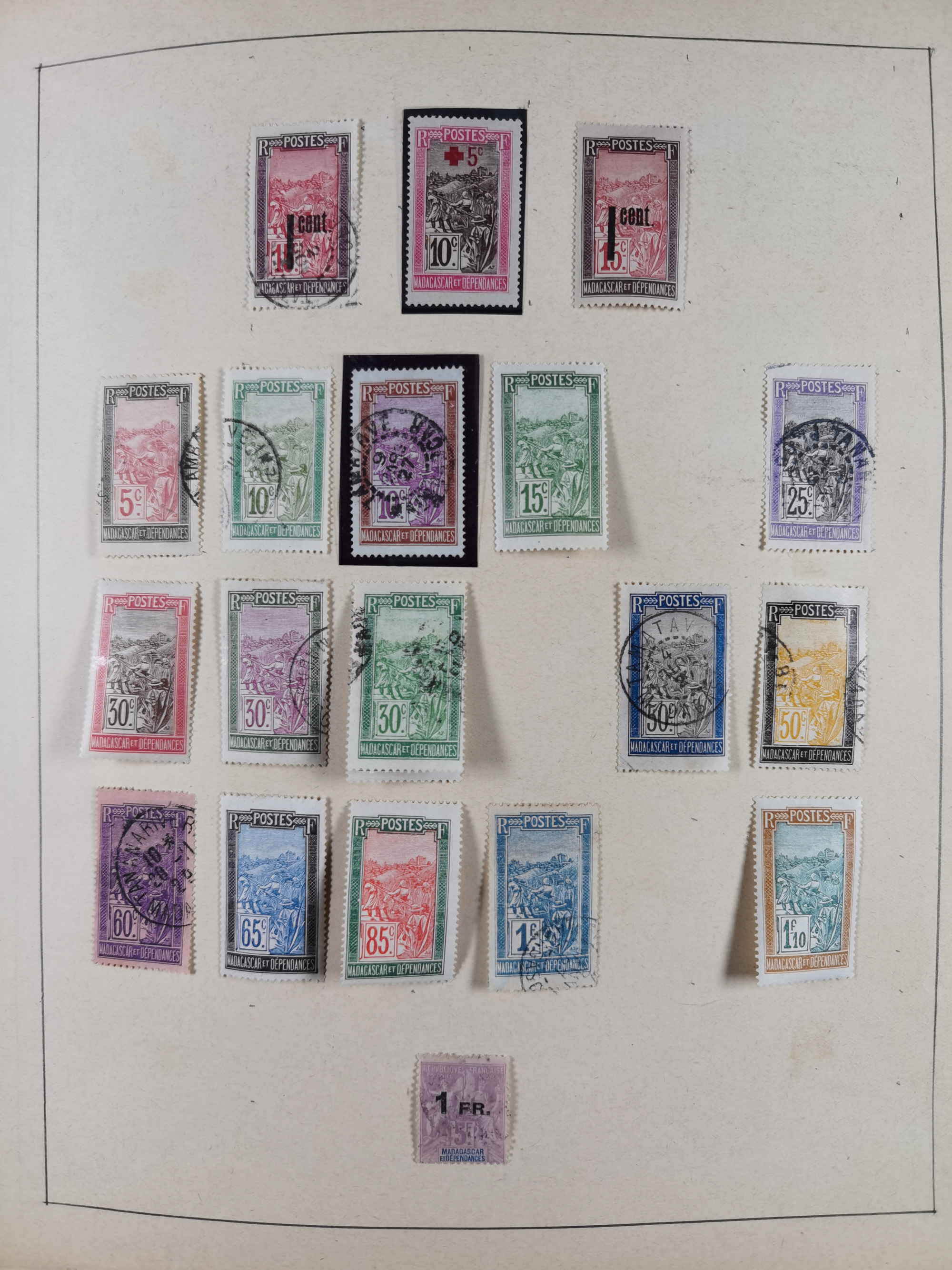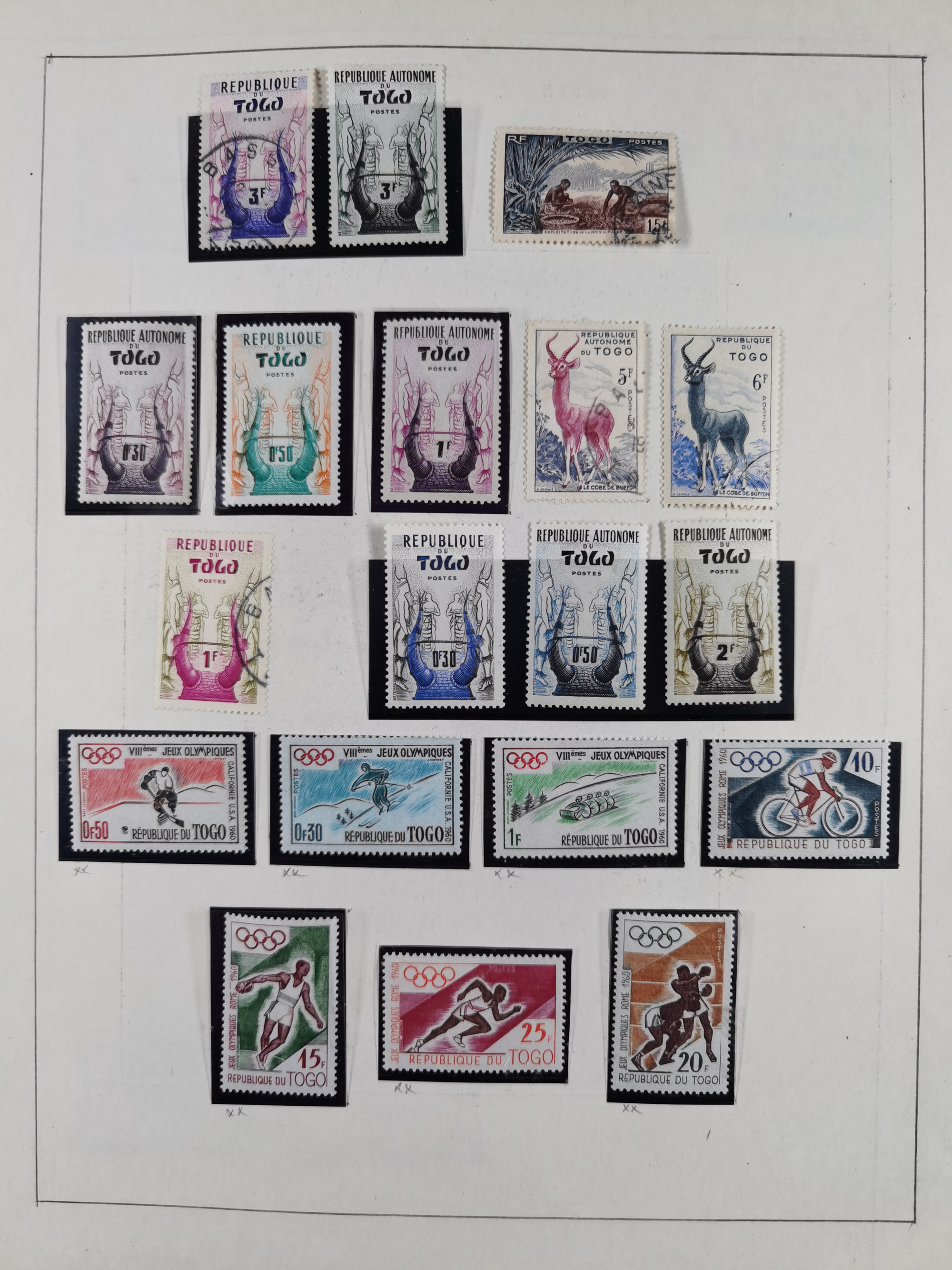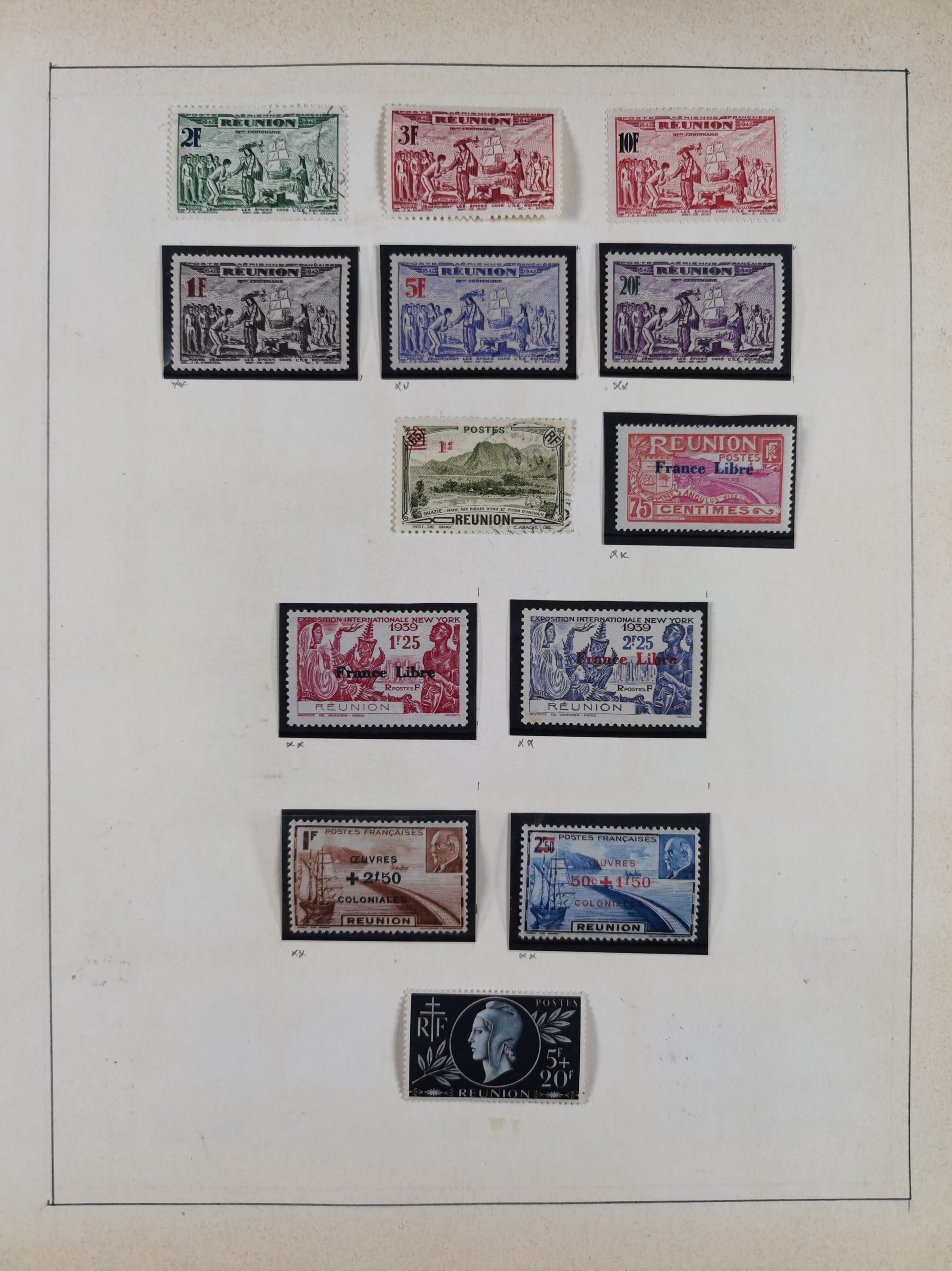 1895/1975 (ca)  unsued and used collection French Colonies and successor states, with stamps from a.o. Algeria, Dahomey, French Sudan, Obock, Gabon, Guinea, Cameroon, Madagascar with better overprint stamps, Réunion, Senegal, Somalia and Togo. Plus two page with the general issues 1859/86 incl. postage due, mostly in good condition