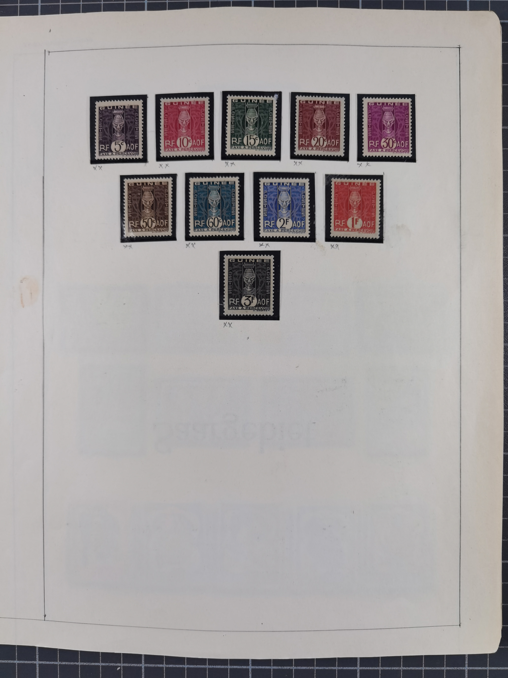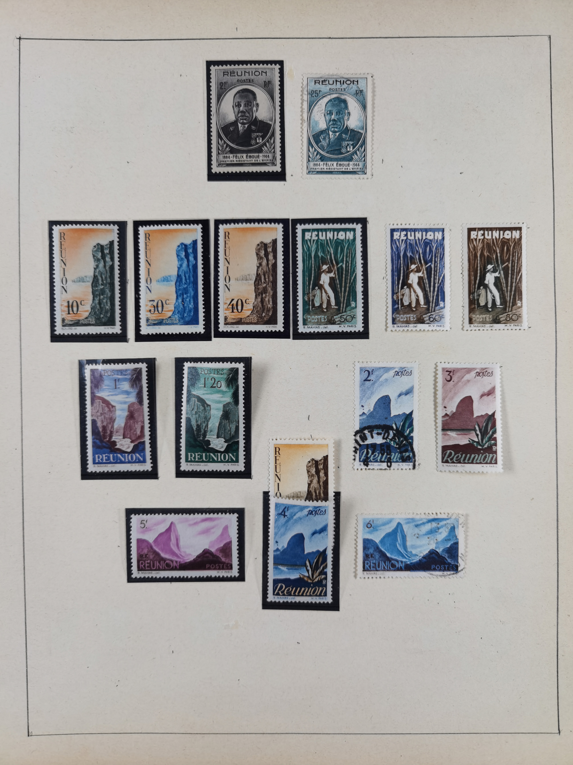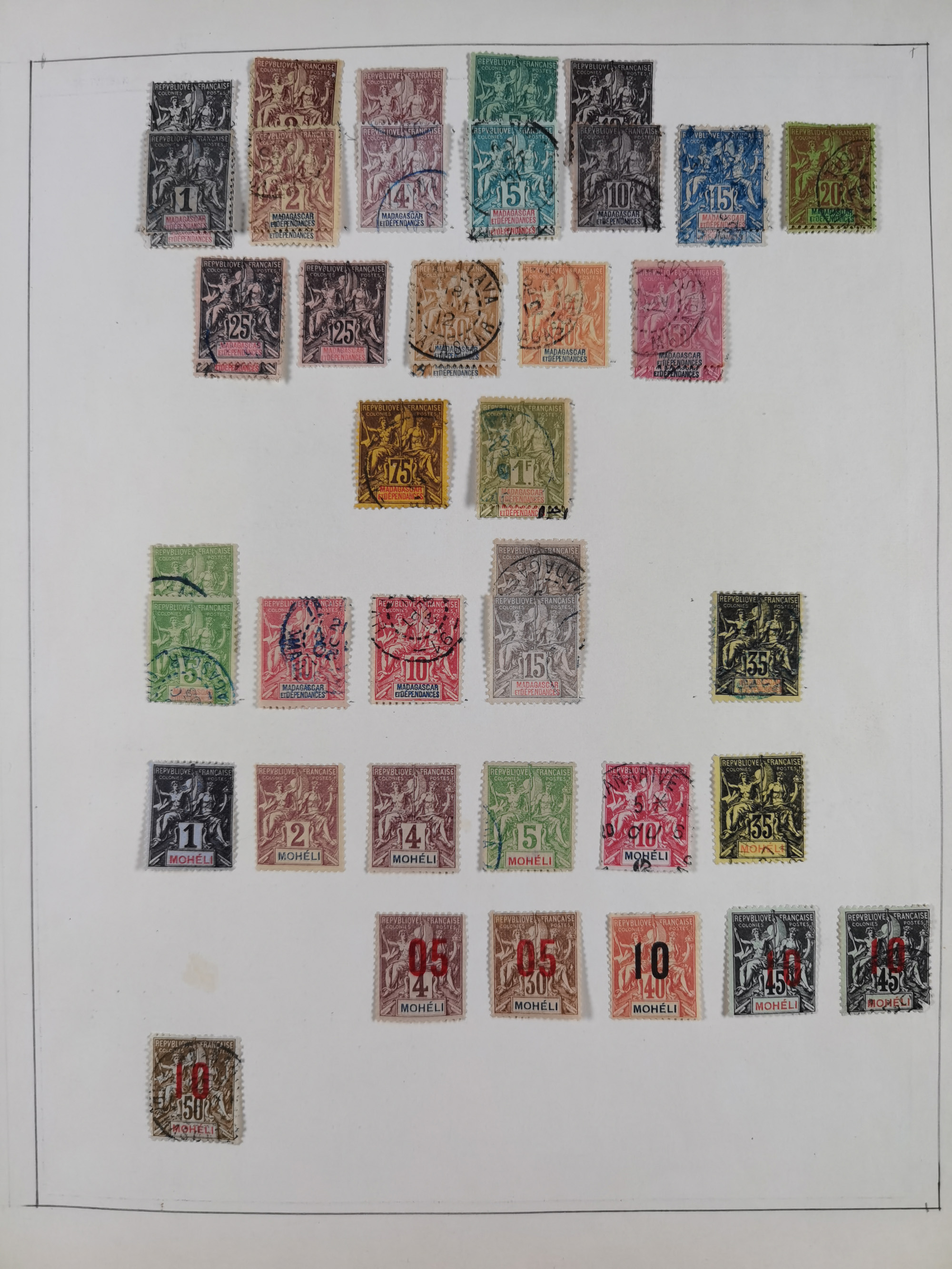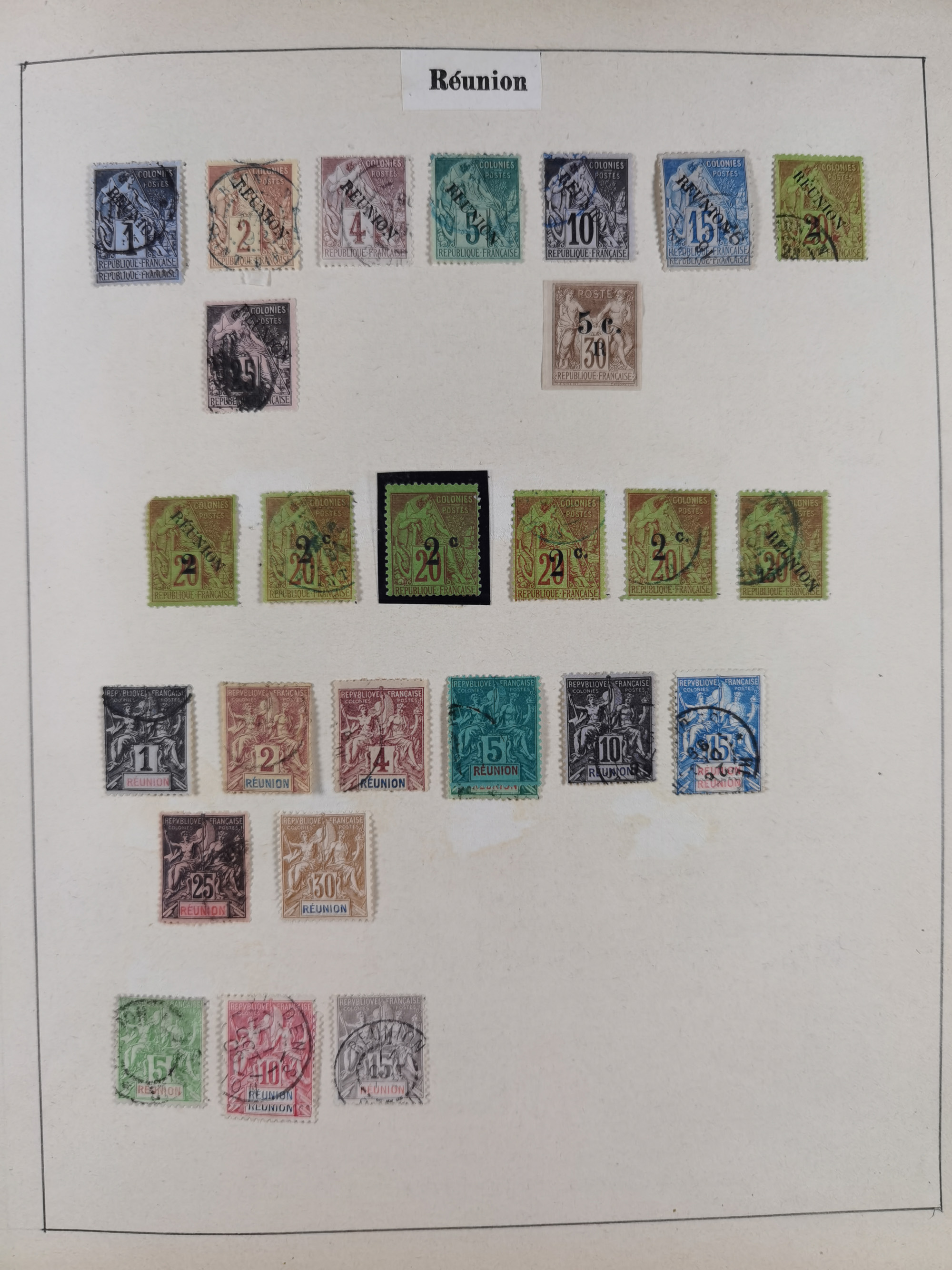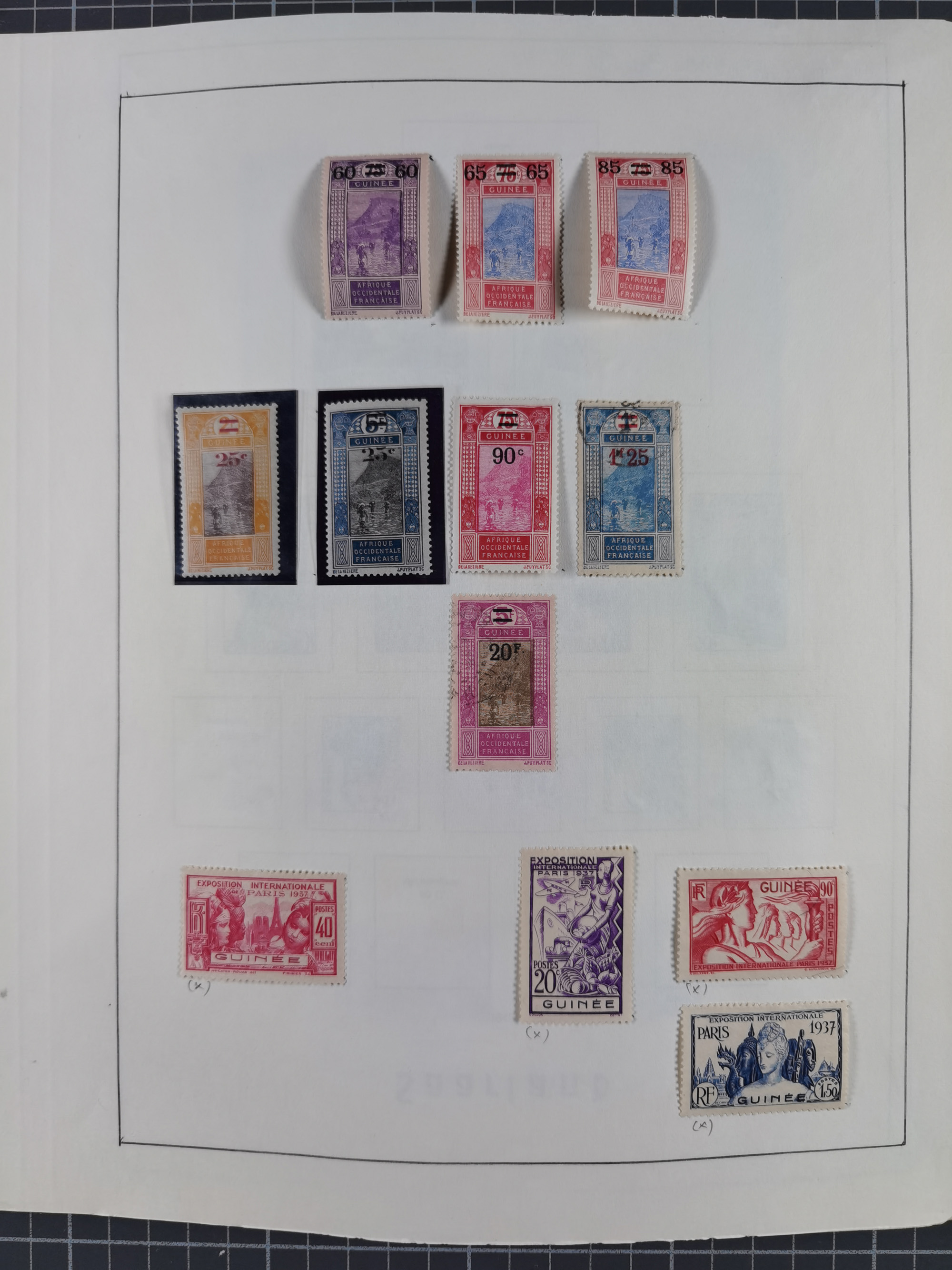 1895/1975 (ca)  unsued and used collection French Colonies and successor states, with stamps from a.o. Algeria, Dahomey, French Sudan, Obock, Gabon, Guinea, Cameroon, Madagascar with better overprint stamps, Réunion, Senegal, Somalia and Togo. Plus two page with the general issues 1859/86 incl. postage due, mostly in good condition