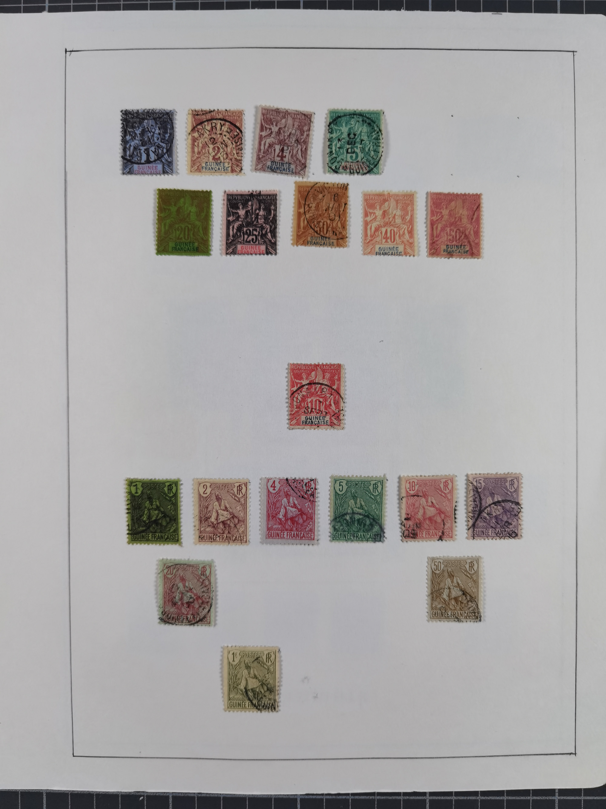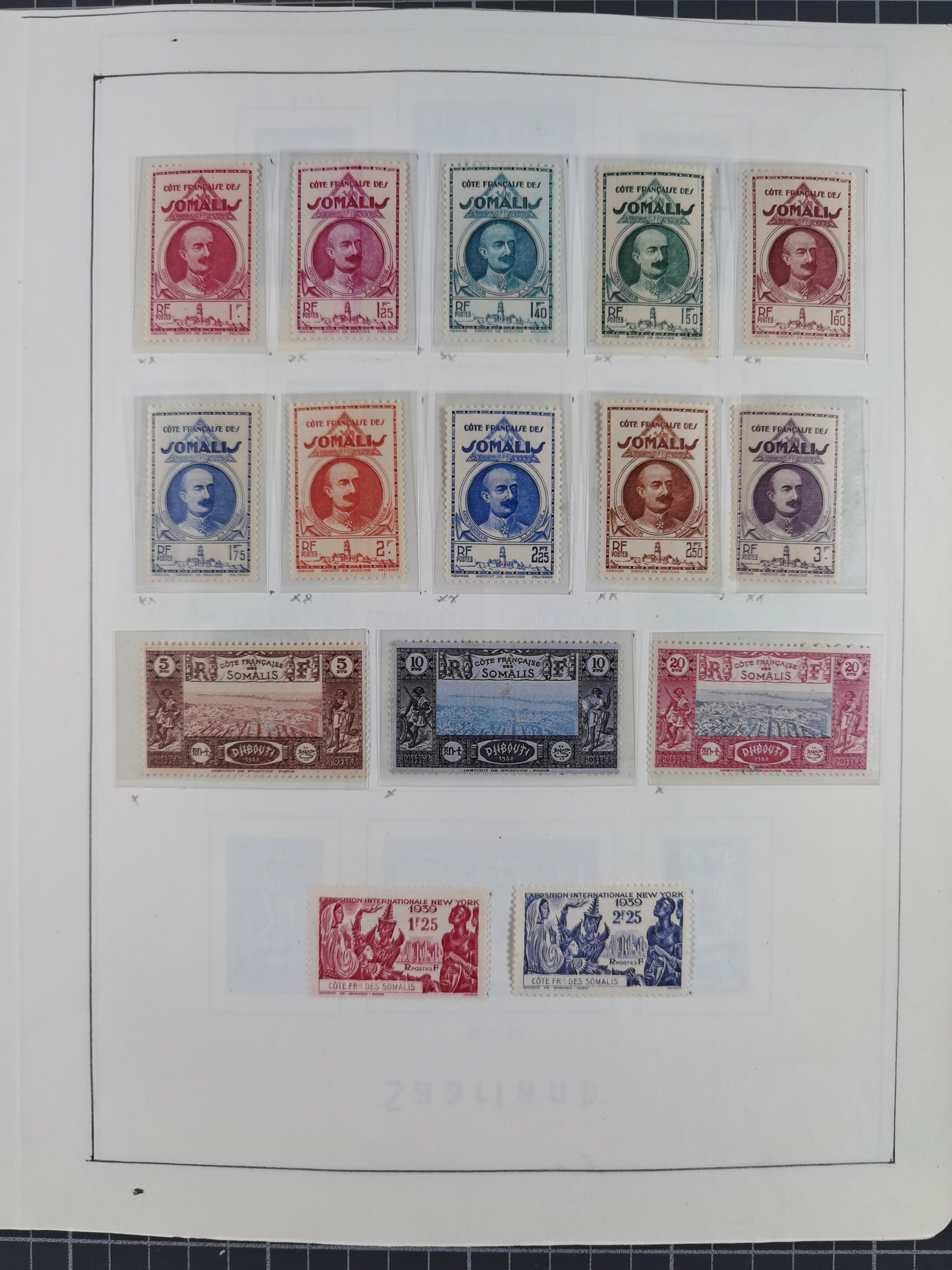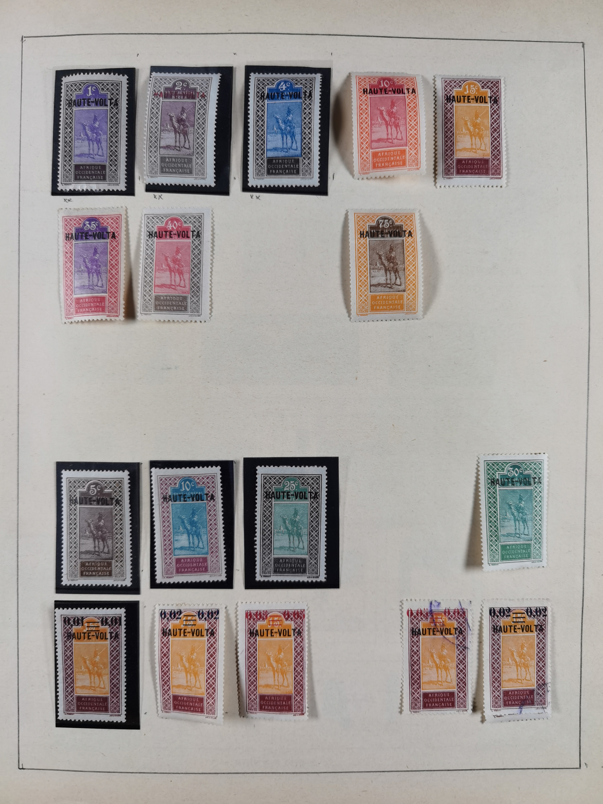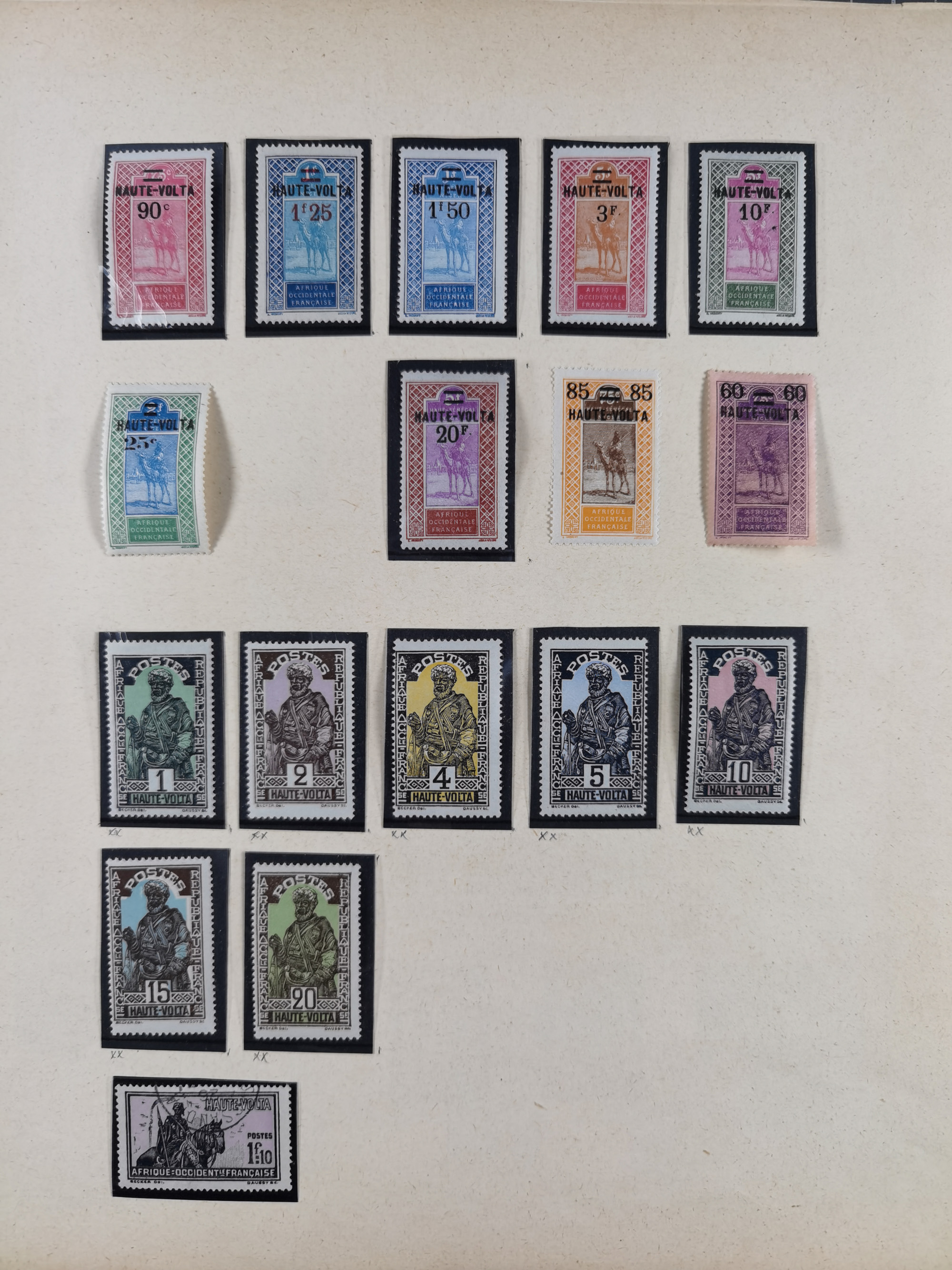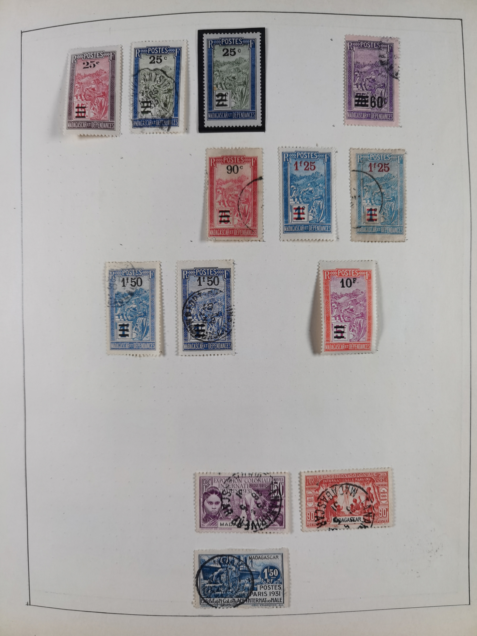 1895/1975 (ca)  unsued and used collection French Colonies and successor states, with stamps from a.o. Algeria, Dahomey, French Sudan, Obock, Gabon, Guinea, Cameroon, Madagascar with better overprint stamps, Réunion, Senegal, Somalia and Togo. Plus two page with the general issues 1859/86 incl. postage due, mostly in good condition