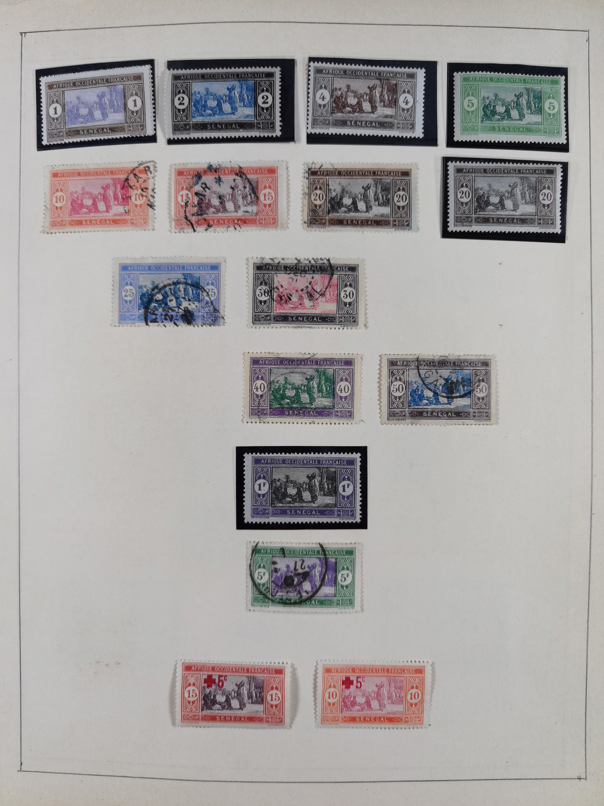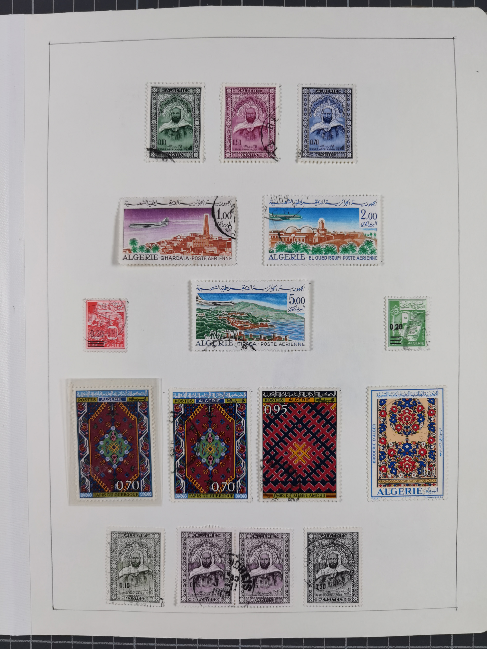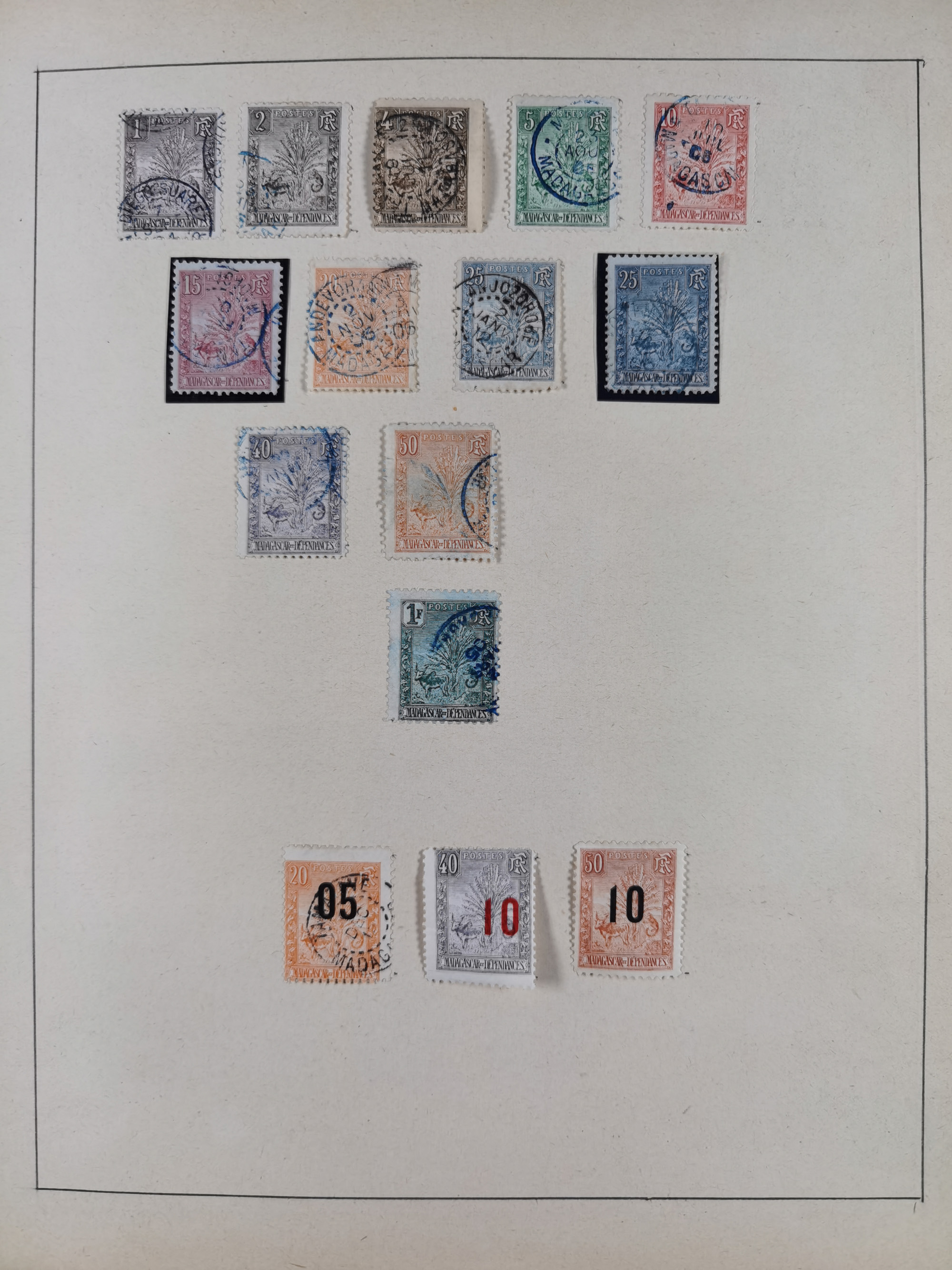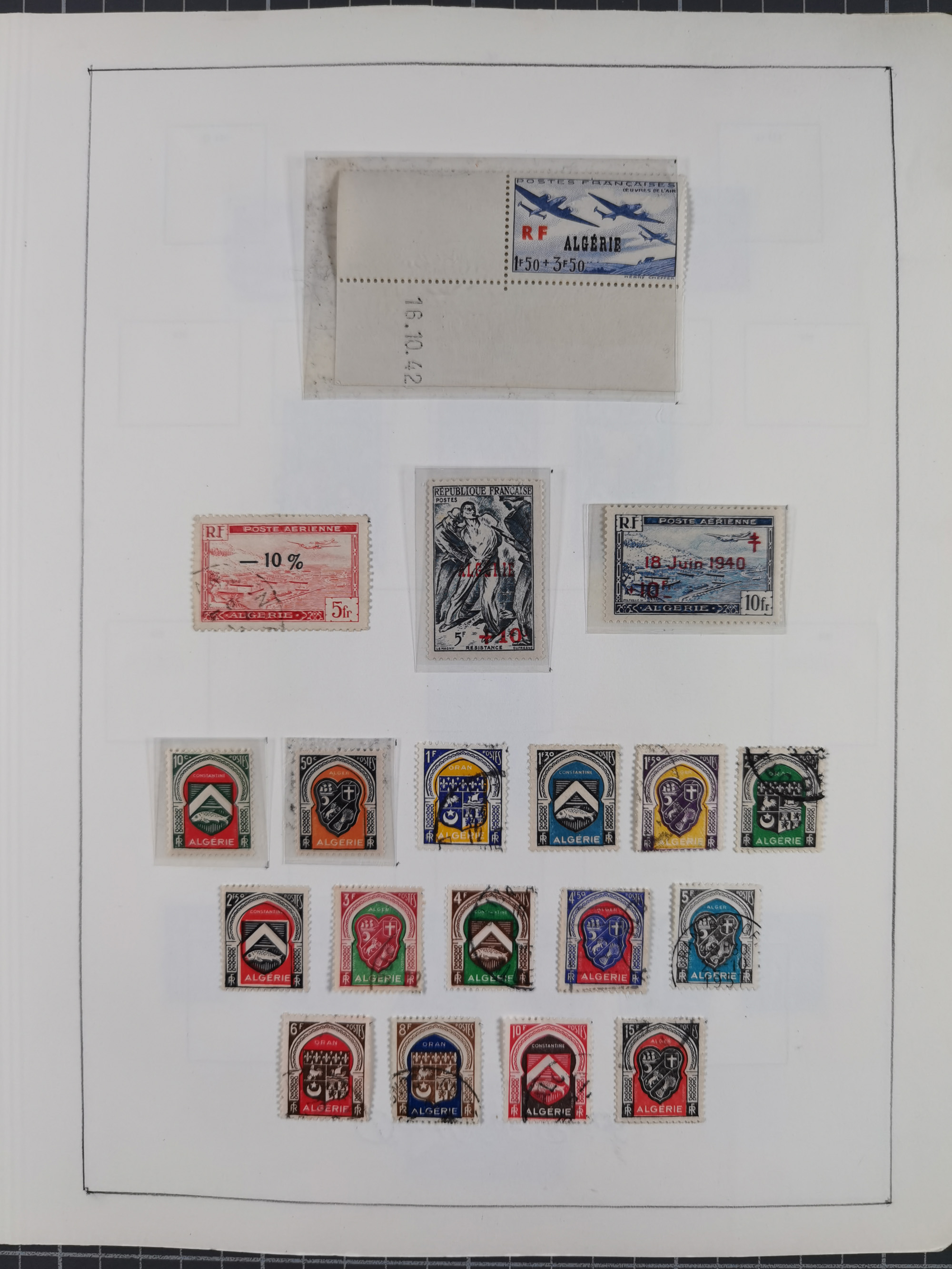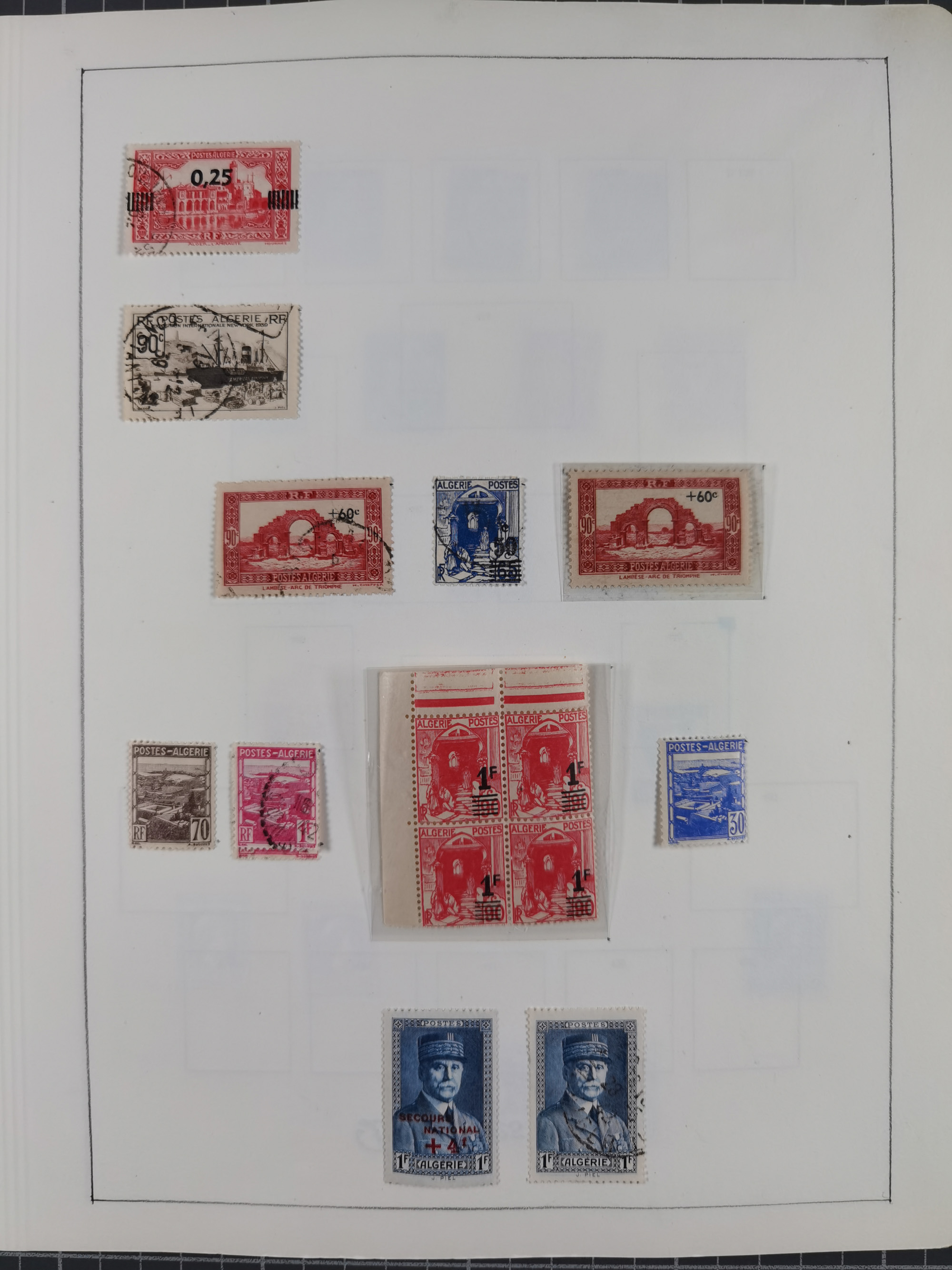 1895/1975 (ca)  unsued and used collection French Colonies and successor states, with stamps from a.o. Algeria, Dahomey, French Sudan, Obock, Gabon, Guinea, Cameroon, Madagascar with better overprint stamps, Réunion, Senegal, Somalia and Togo. Plus two page with the general issues 1859/86 incl. postage due, mostly in good condition