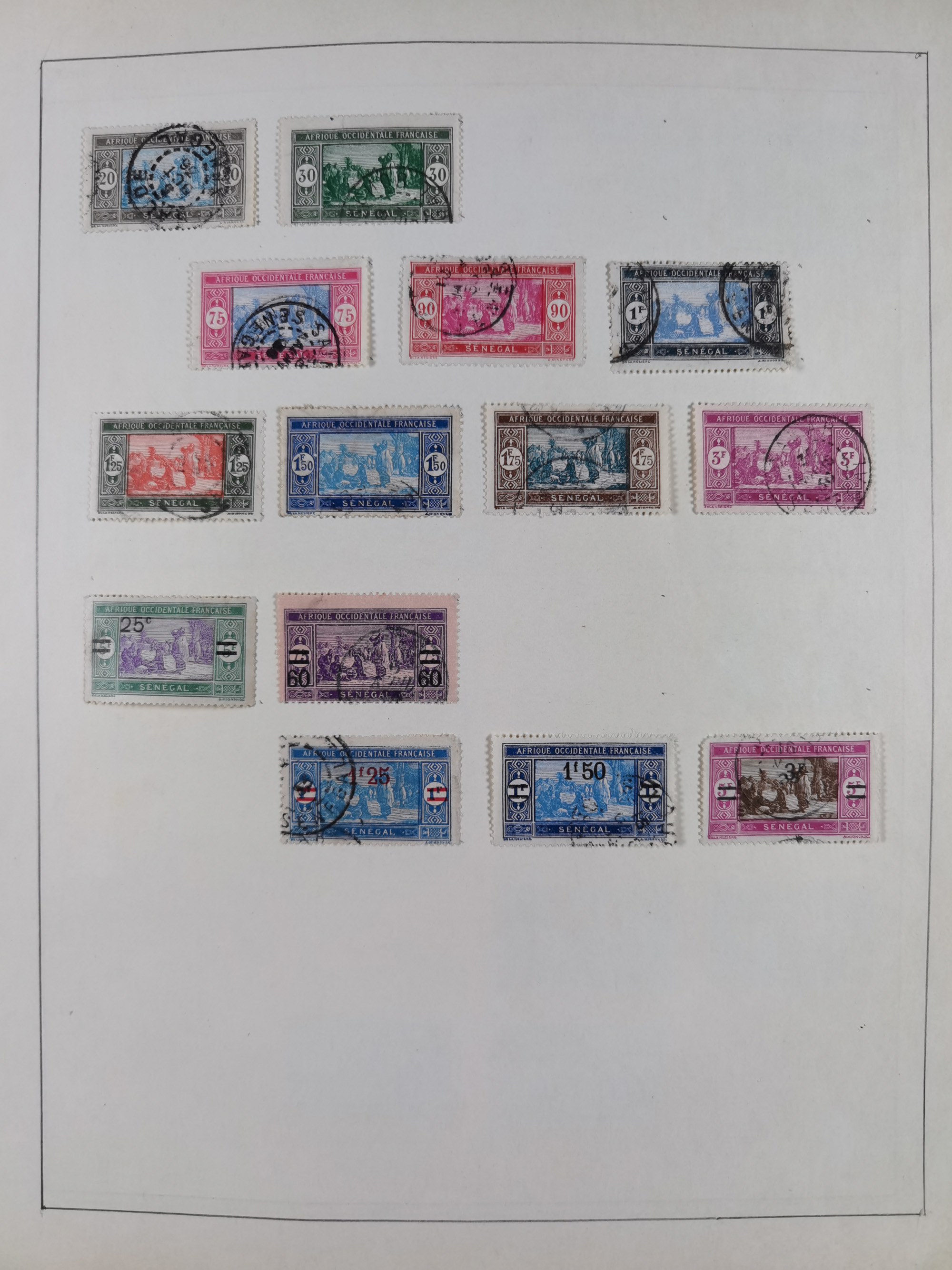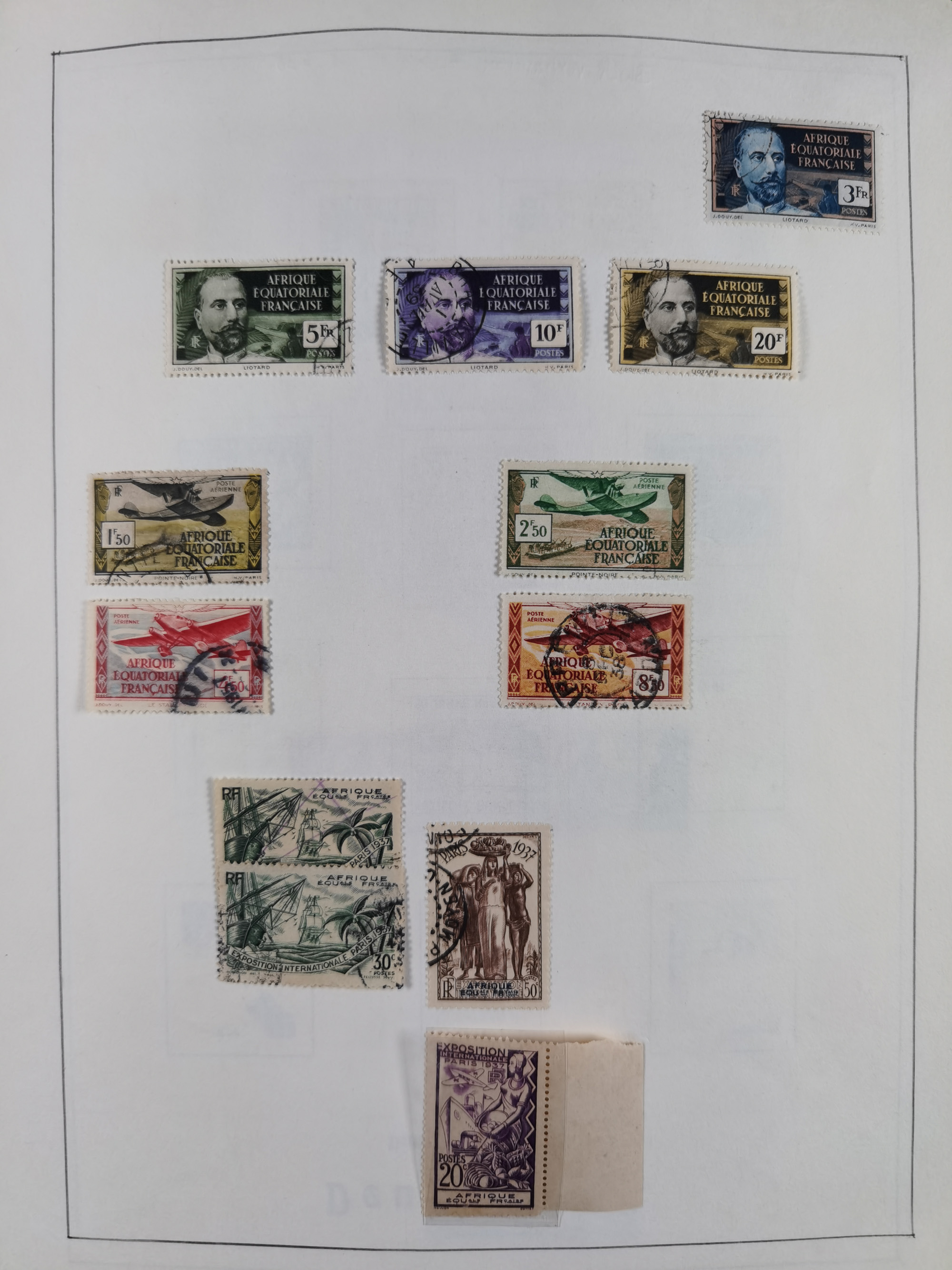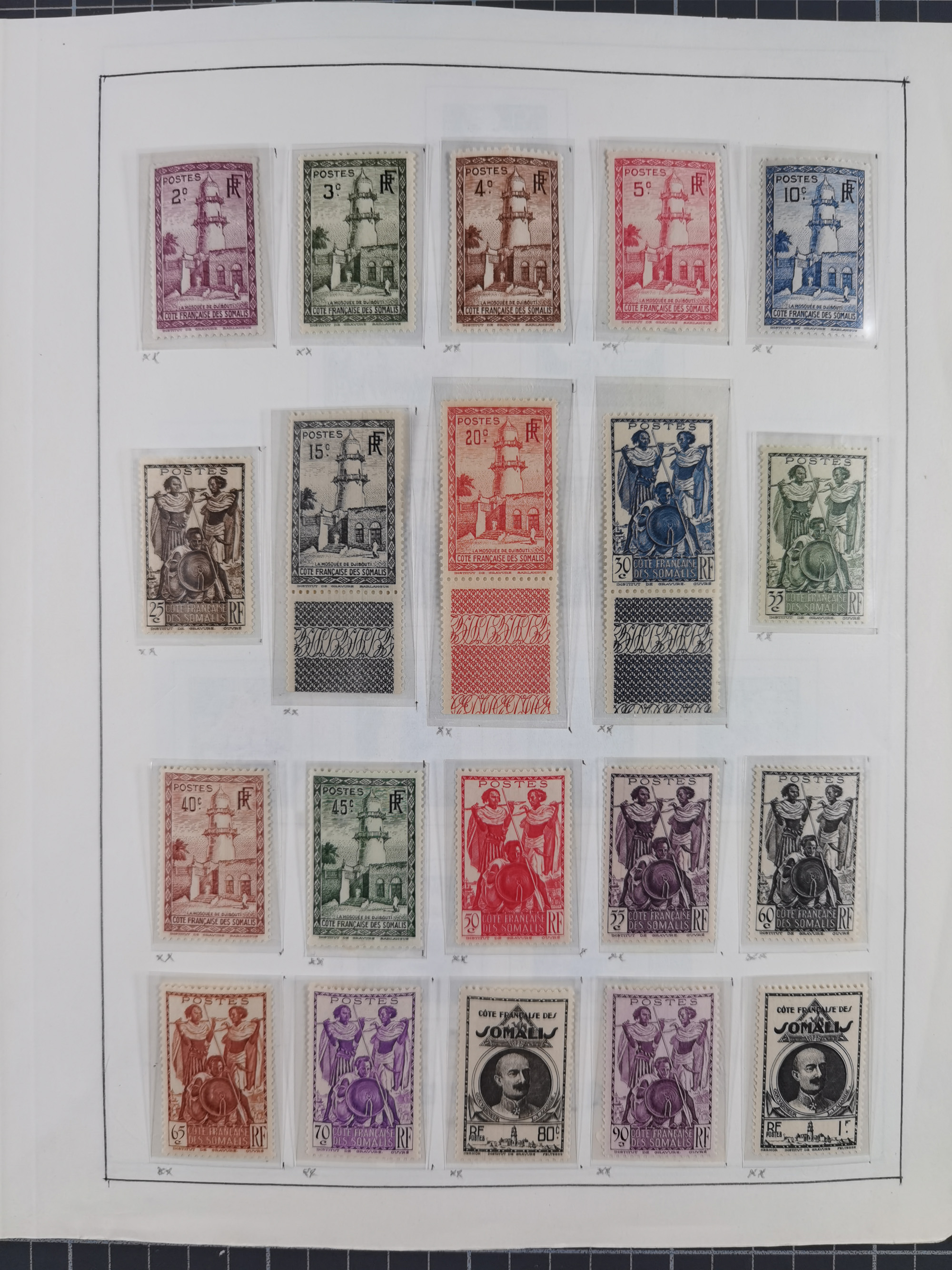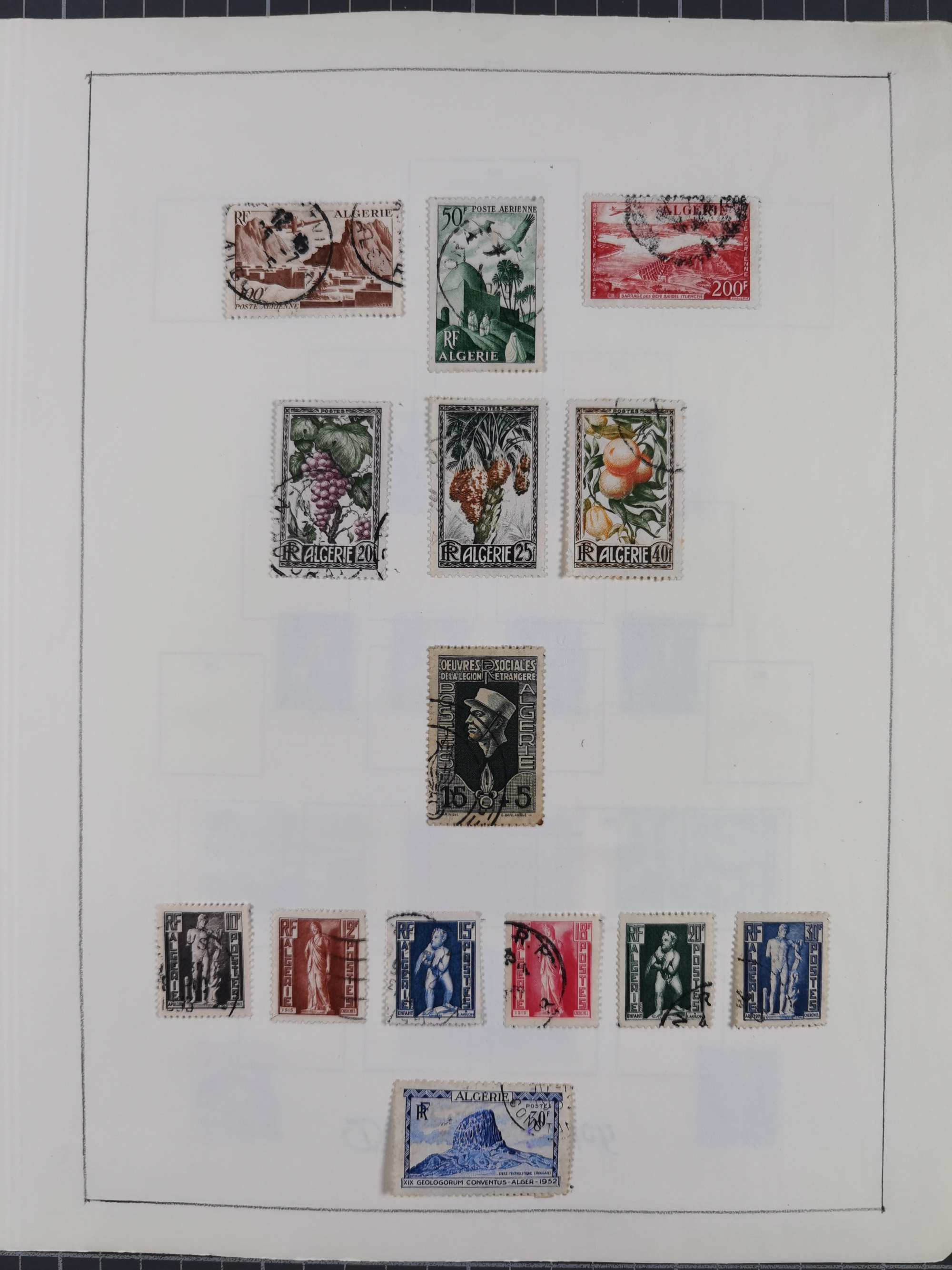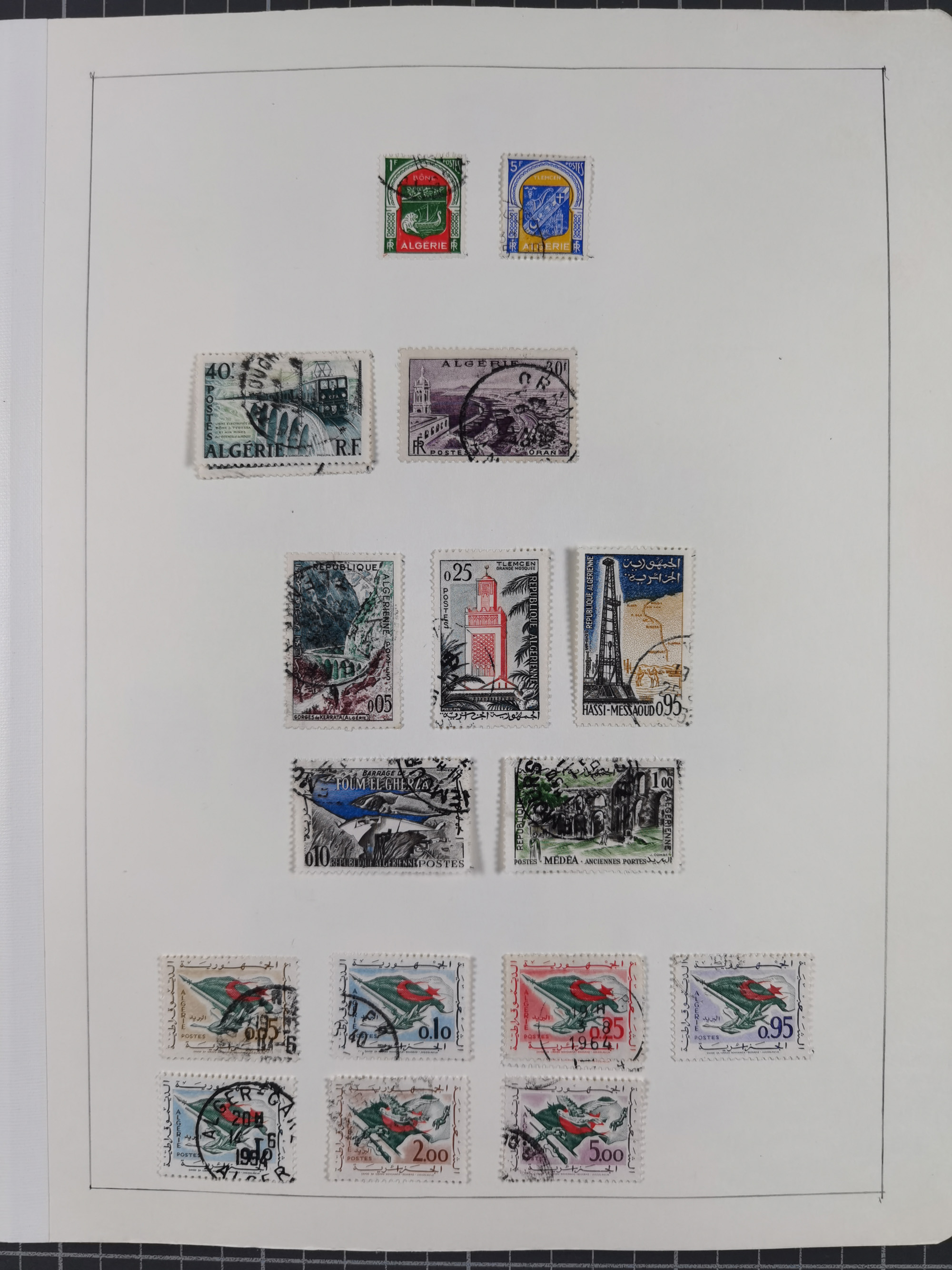 1895/1975 (ca)  unsued and used collection French Colonies and successor states, with stamps from a.o. Algeria, Dahomey, French Sudan, Obock, Gabon, Guinea, Cameroon, Madagascar with better overprint stamps, Réunion, Senegal, Somalia and Togo. Plus two page with the general issues 1859/86 incl. postage due, mostly in good condition