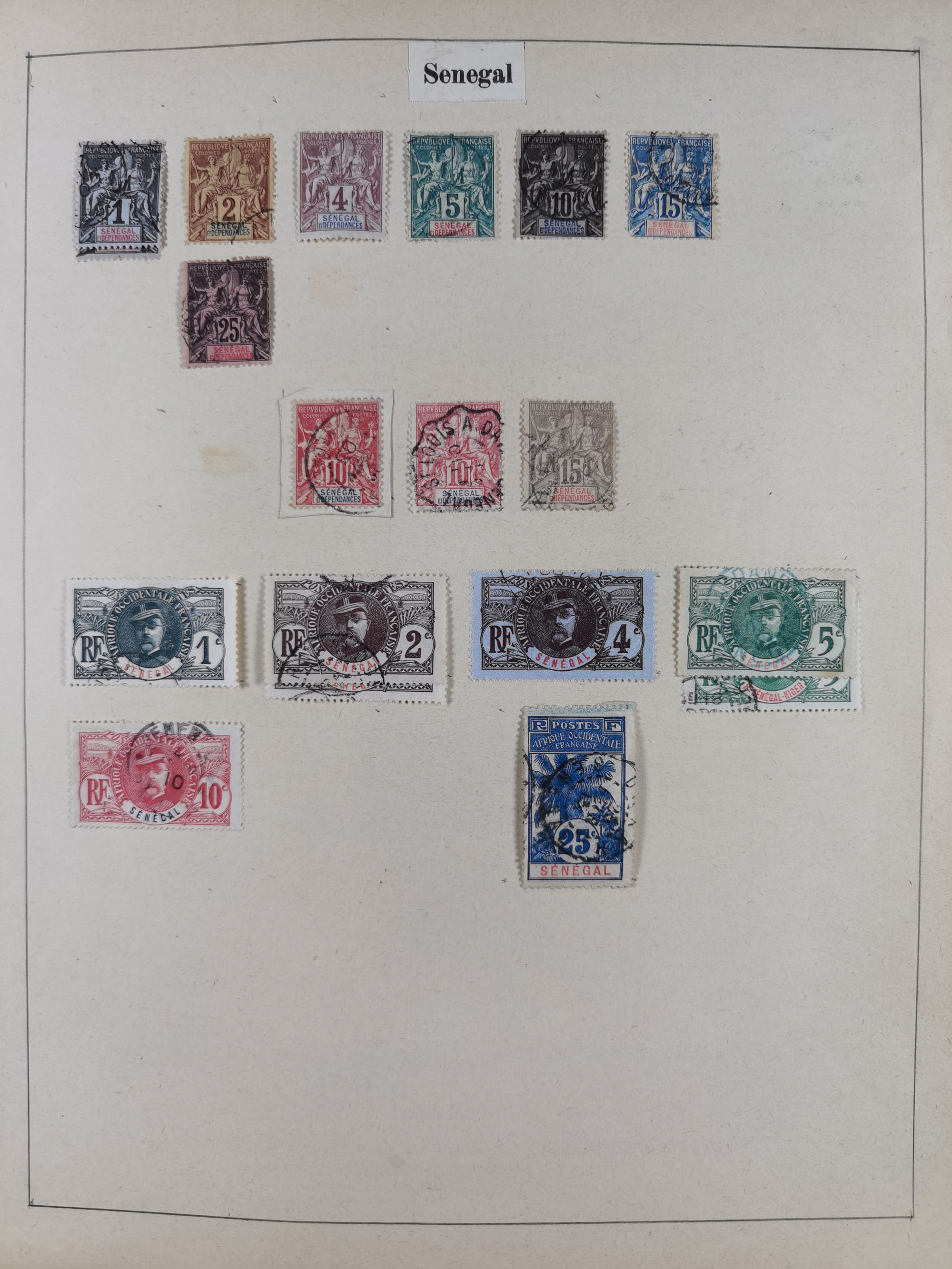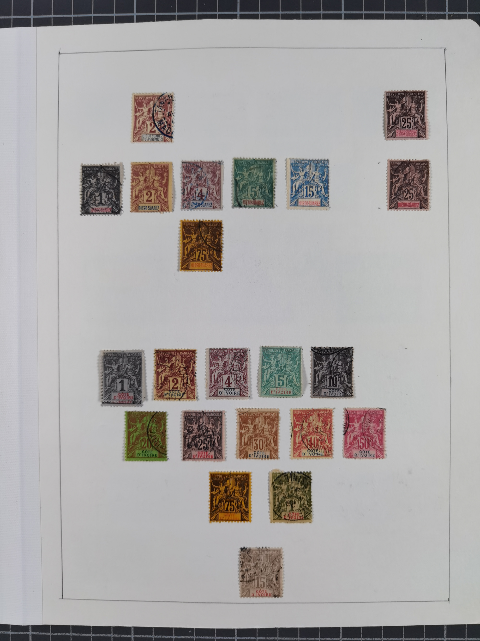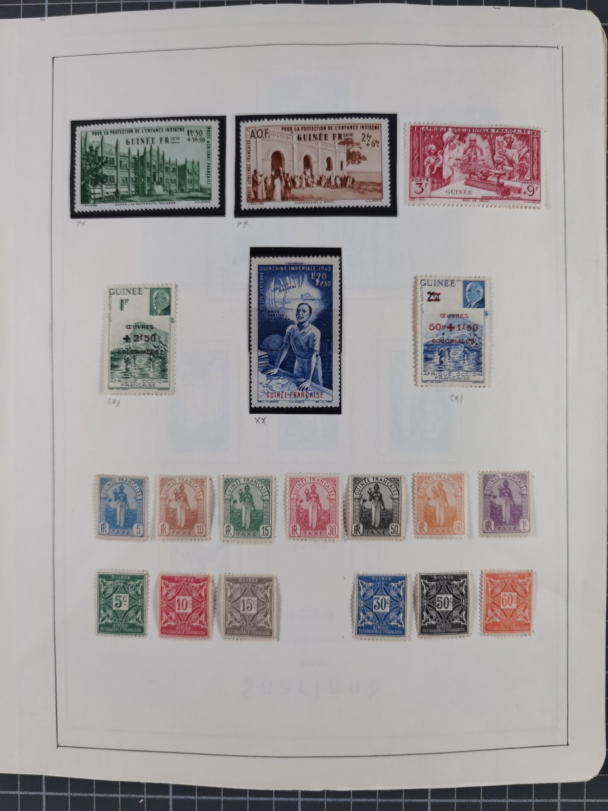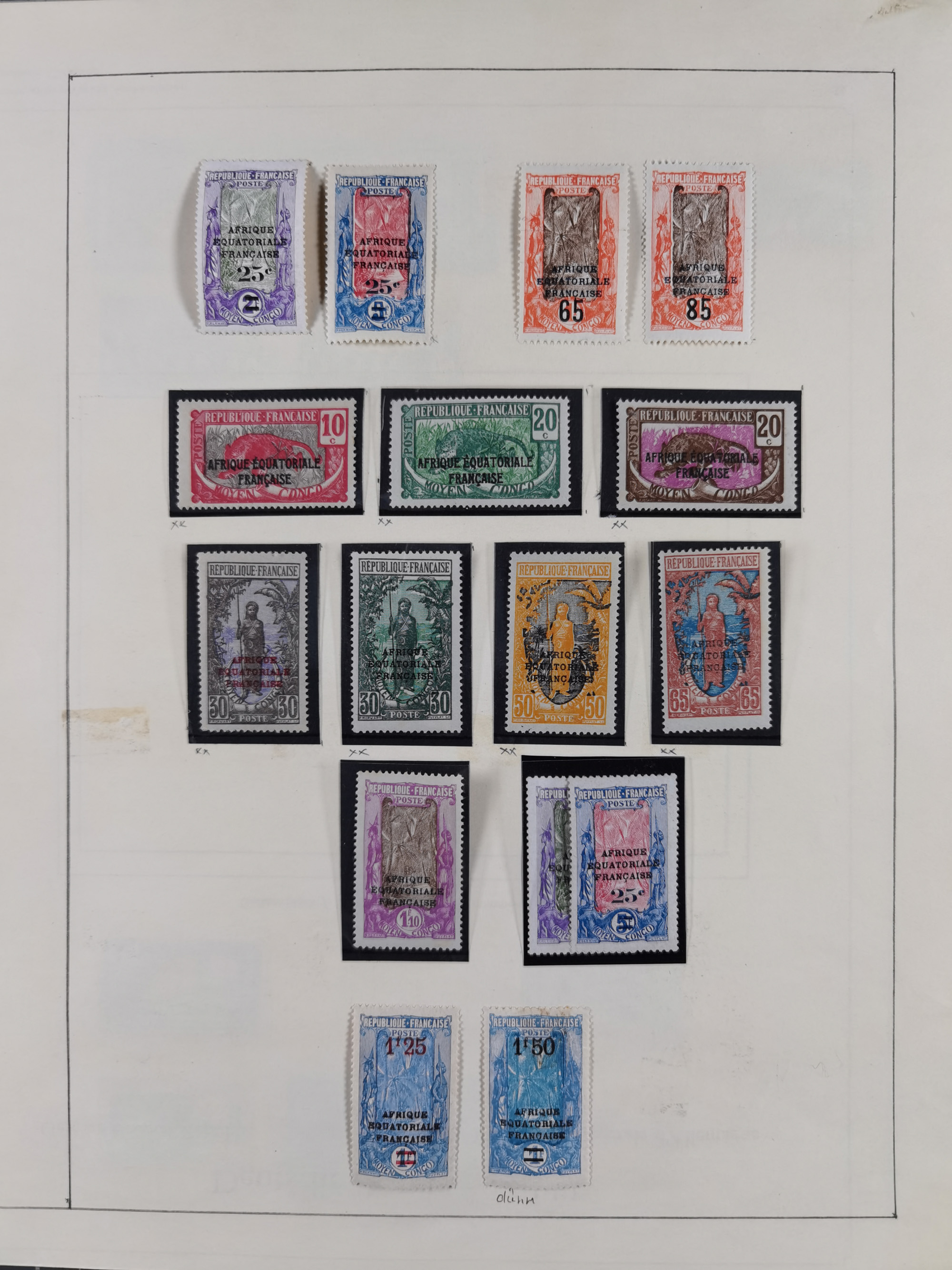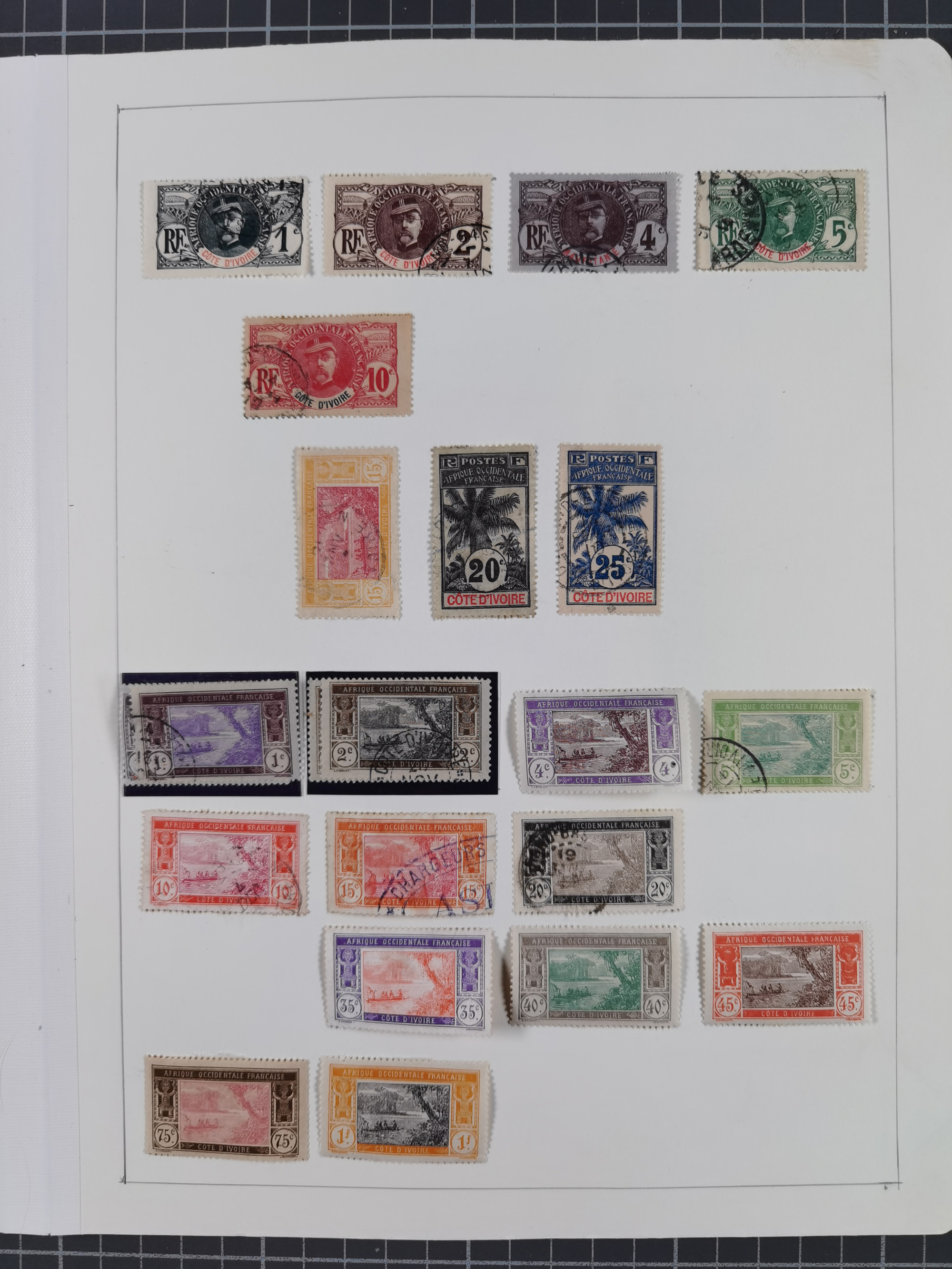1895/1975 (ca)  unsued and used collection French Colonies and successor states, with stamps from a.o. Algeria, Dahomey, French Sudan, Obock, Gabon, Guinea, Cameroon, Madagascar with better overprint stamps, Réunion, Senegal, Somalia and Togo. Plus two page with the general issues 1859/86 incl. postage due, mostly in good condition
