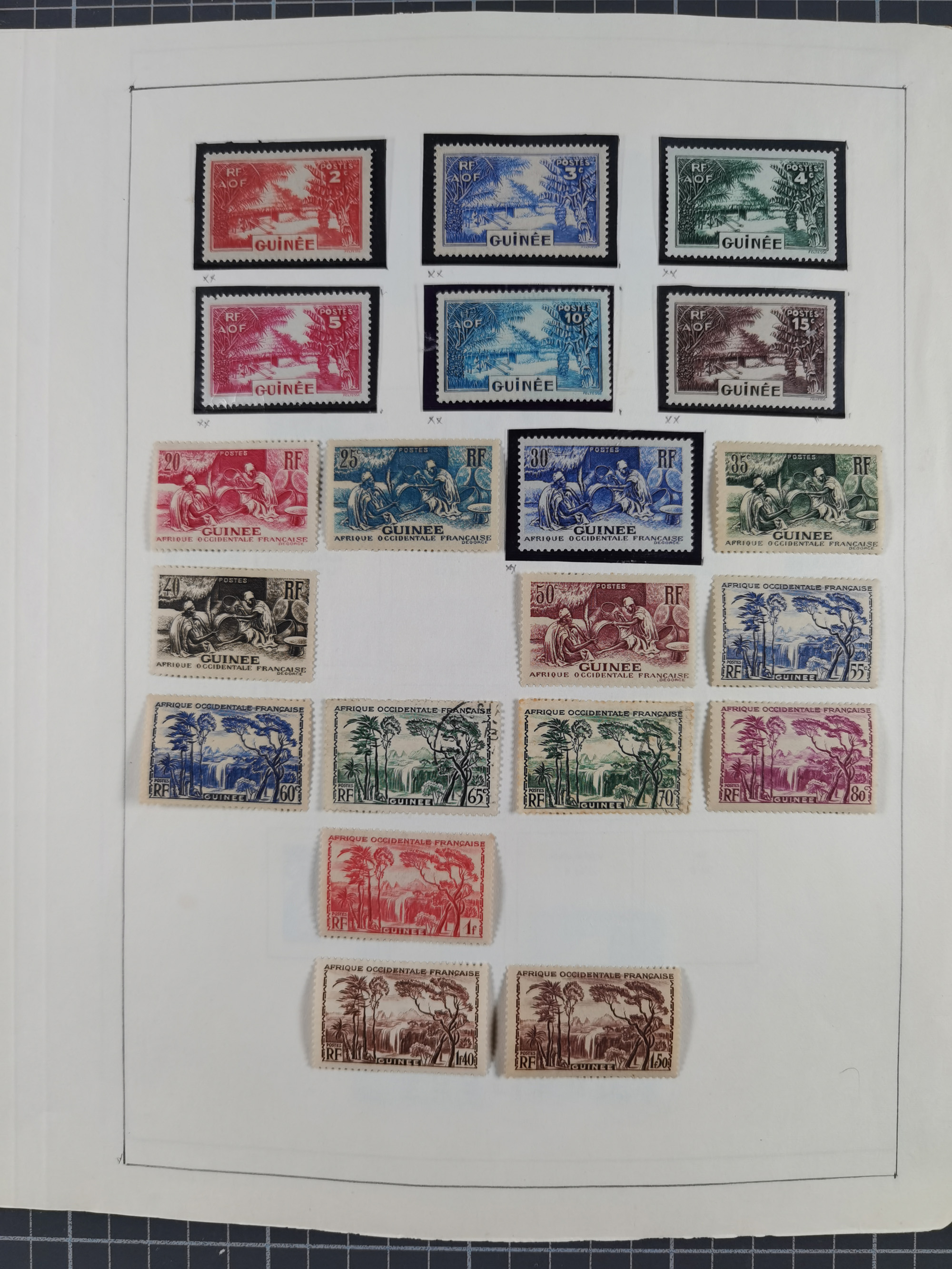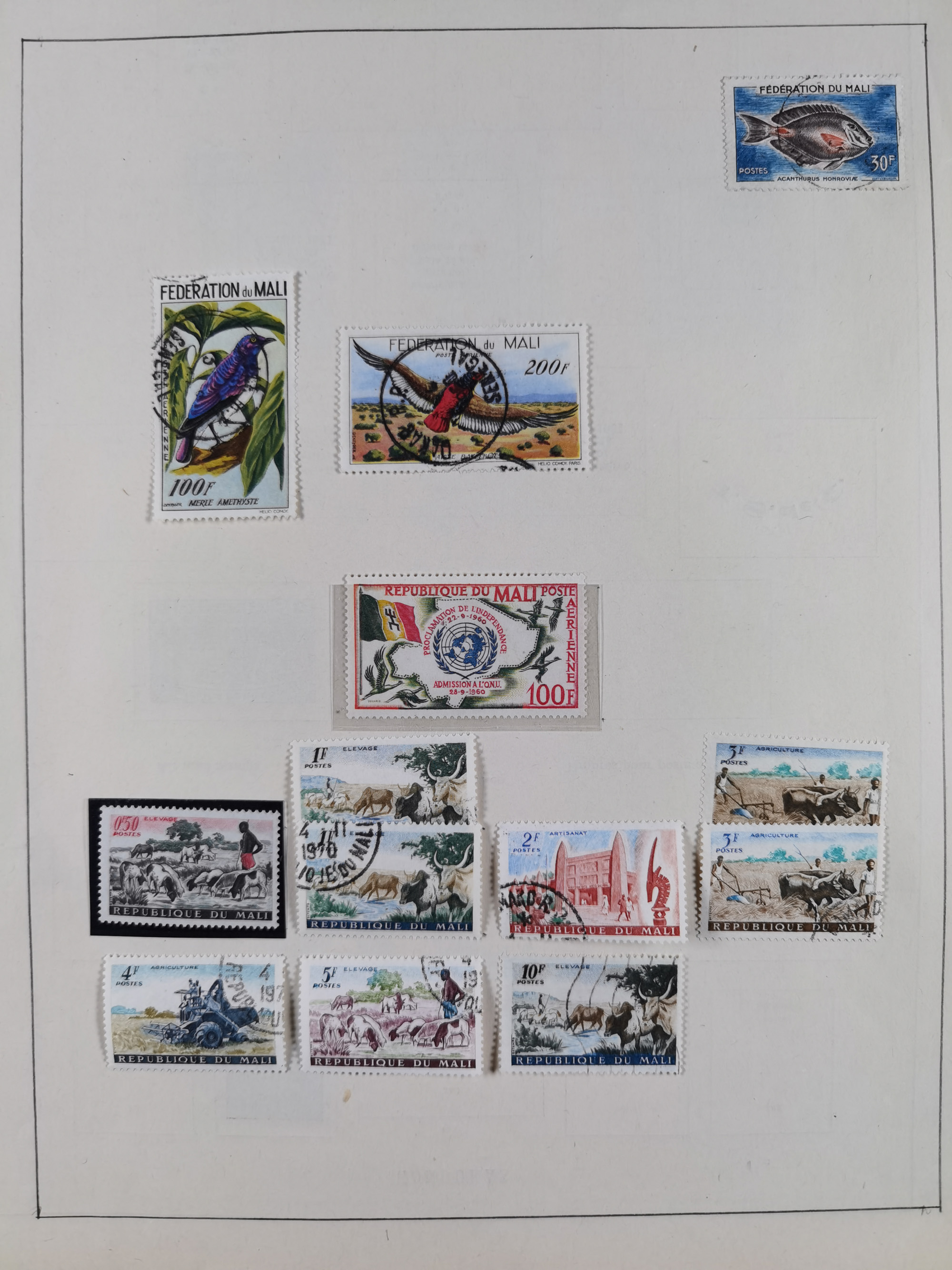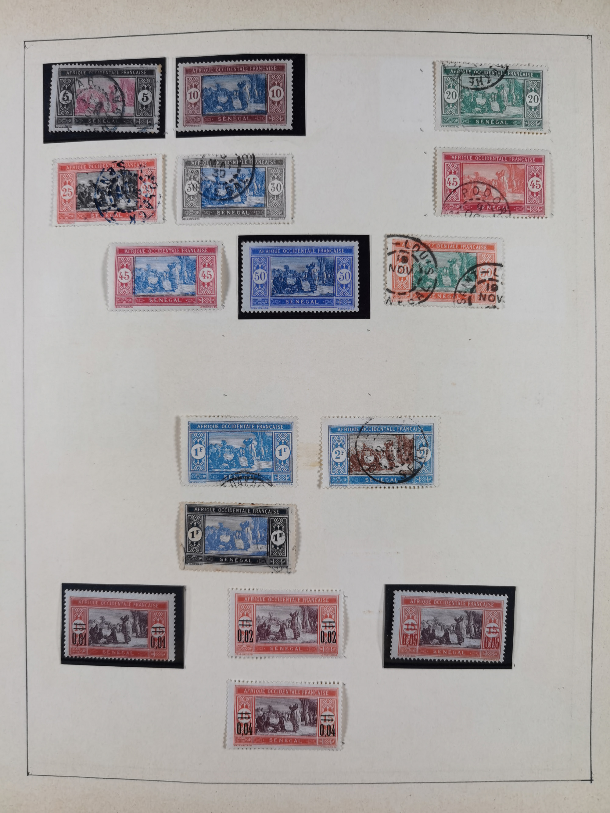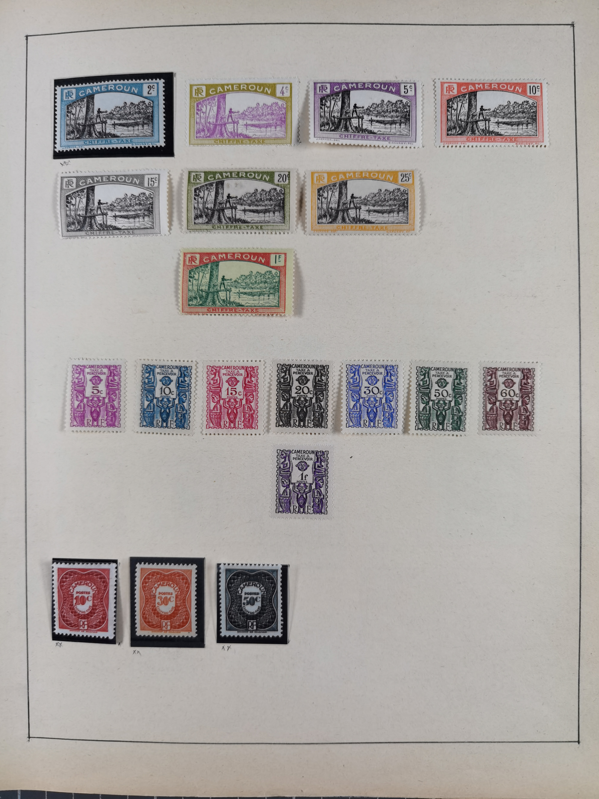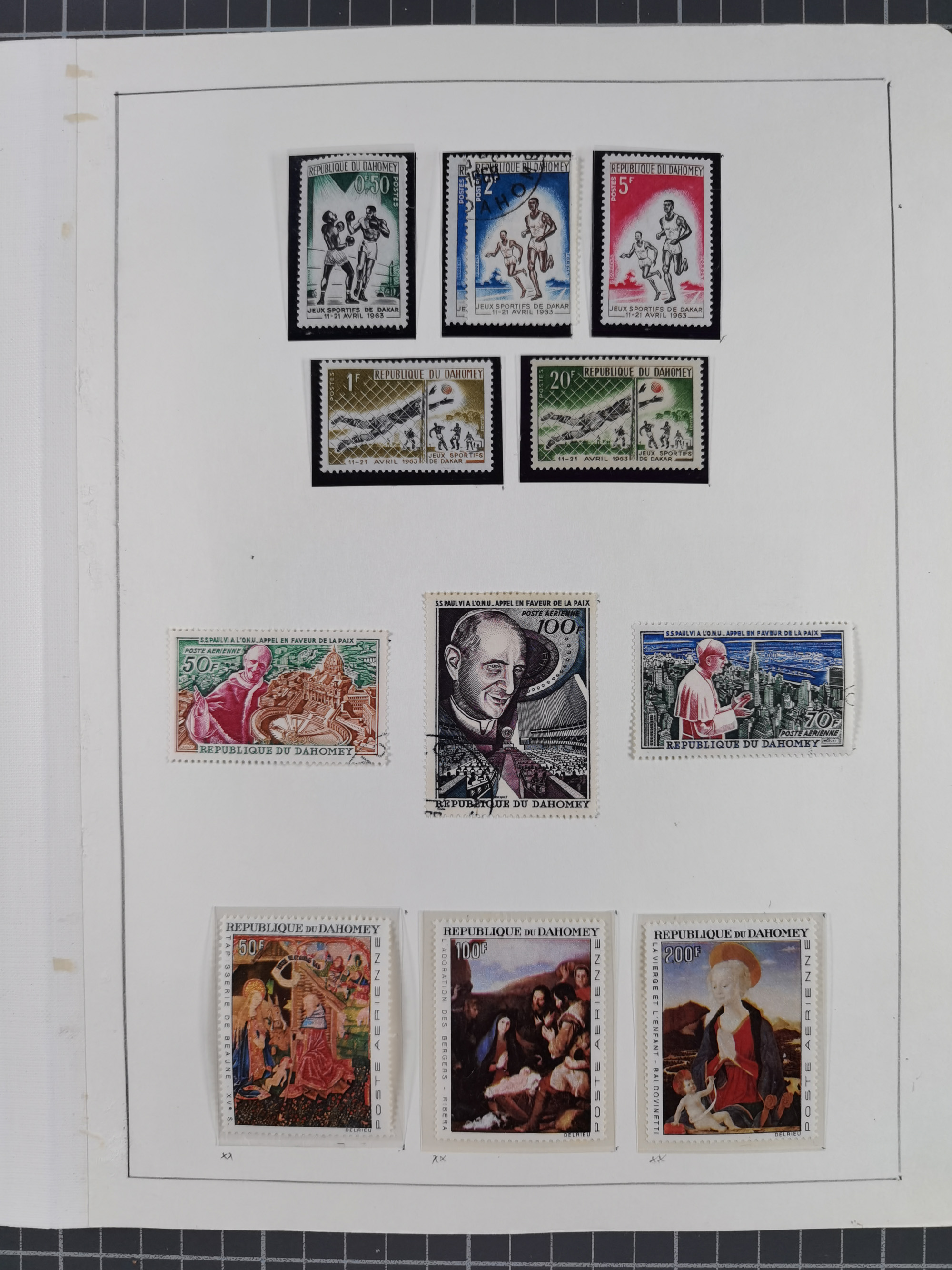 1895/1975 (ca)  unsued and used collection French Colonies and successor states, with stamps from a.o. Algeria, Dahomey, French Sudan, Obock, Gabon, Guinea, Cameroon, Madagascar with better overprint stamps, Réunion, Senegal, Somalia and Togo. Plus two page with the general issues 1859/86 incl. postage due, mostly in good condition