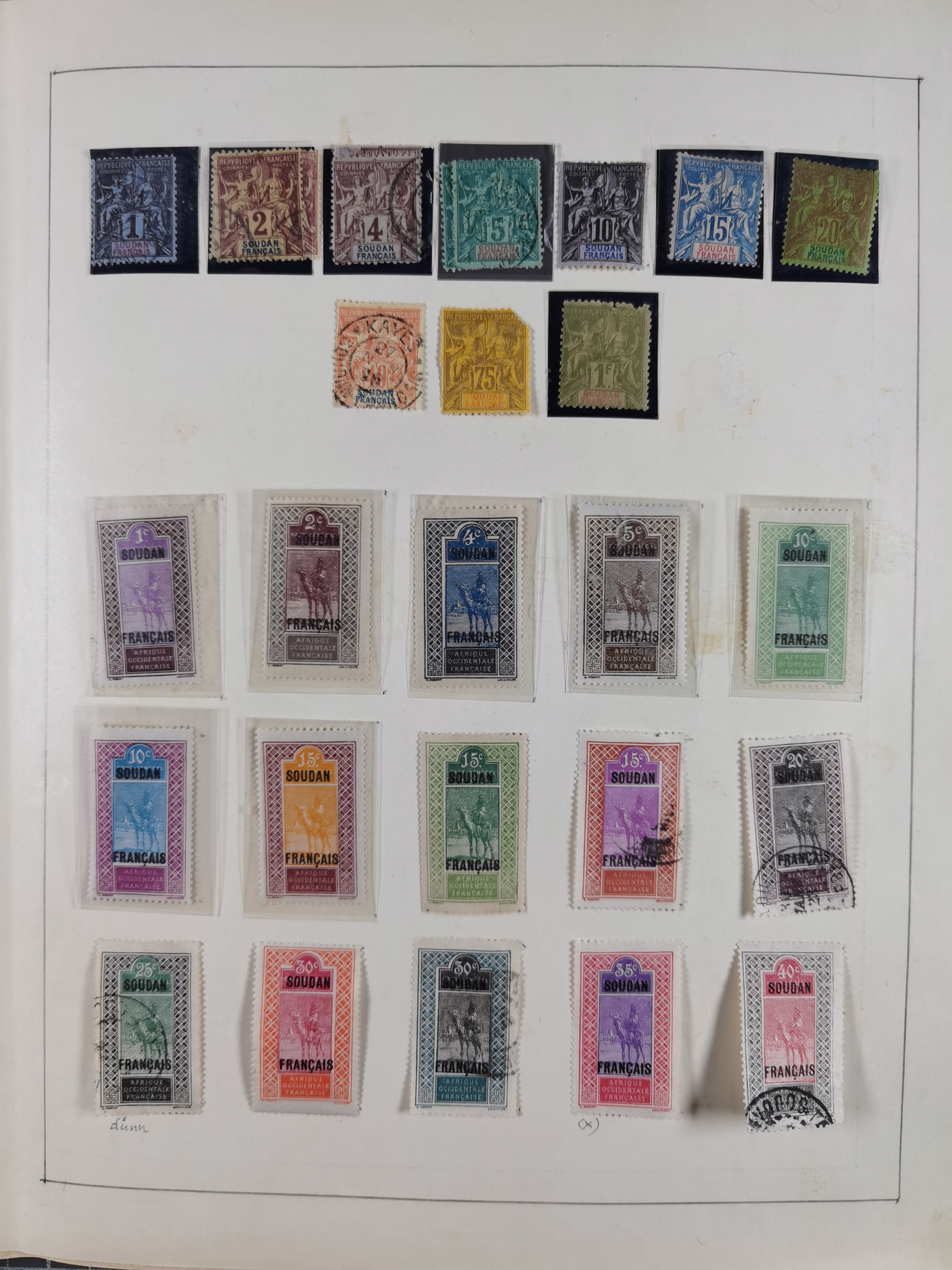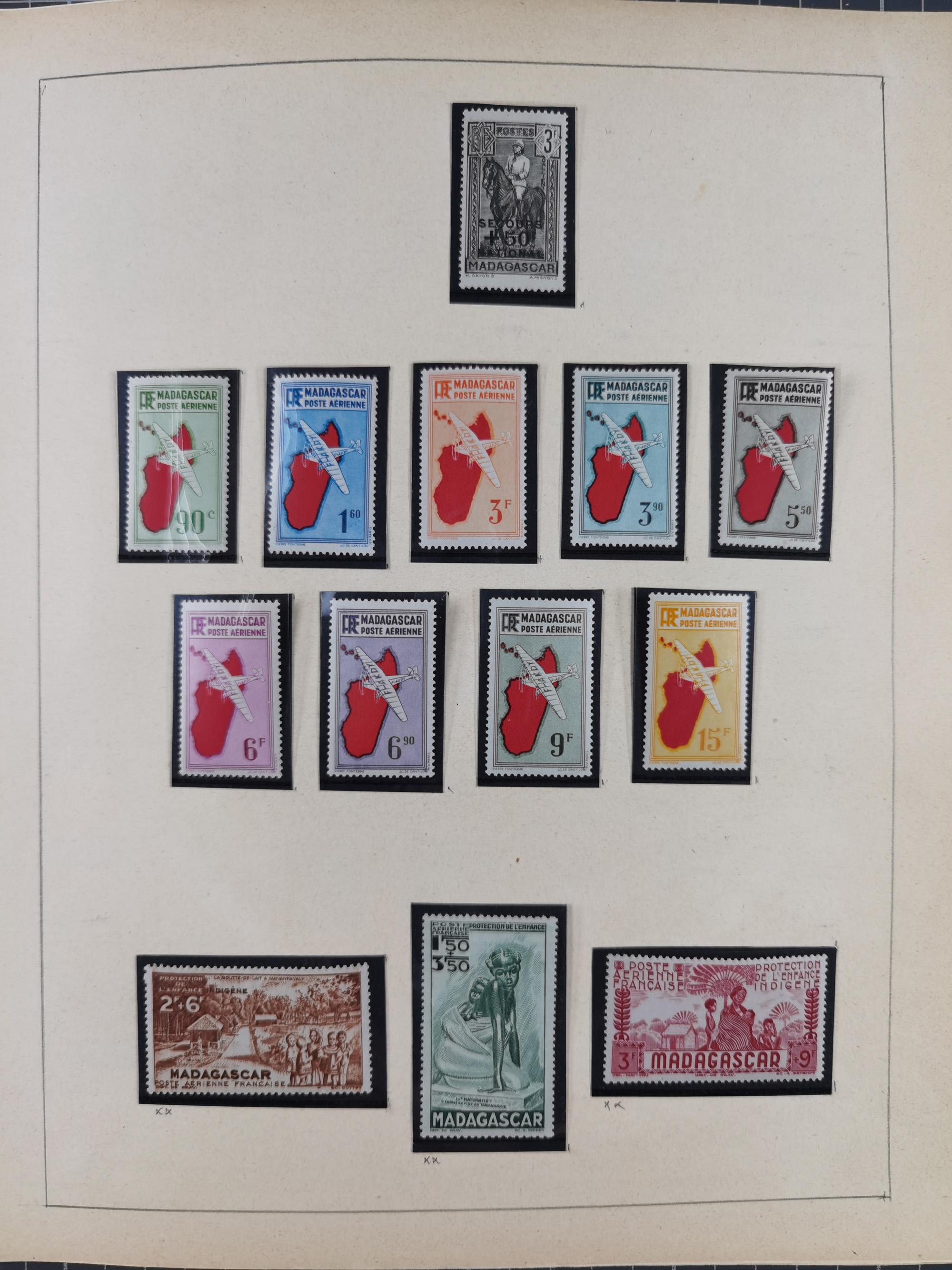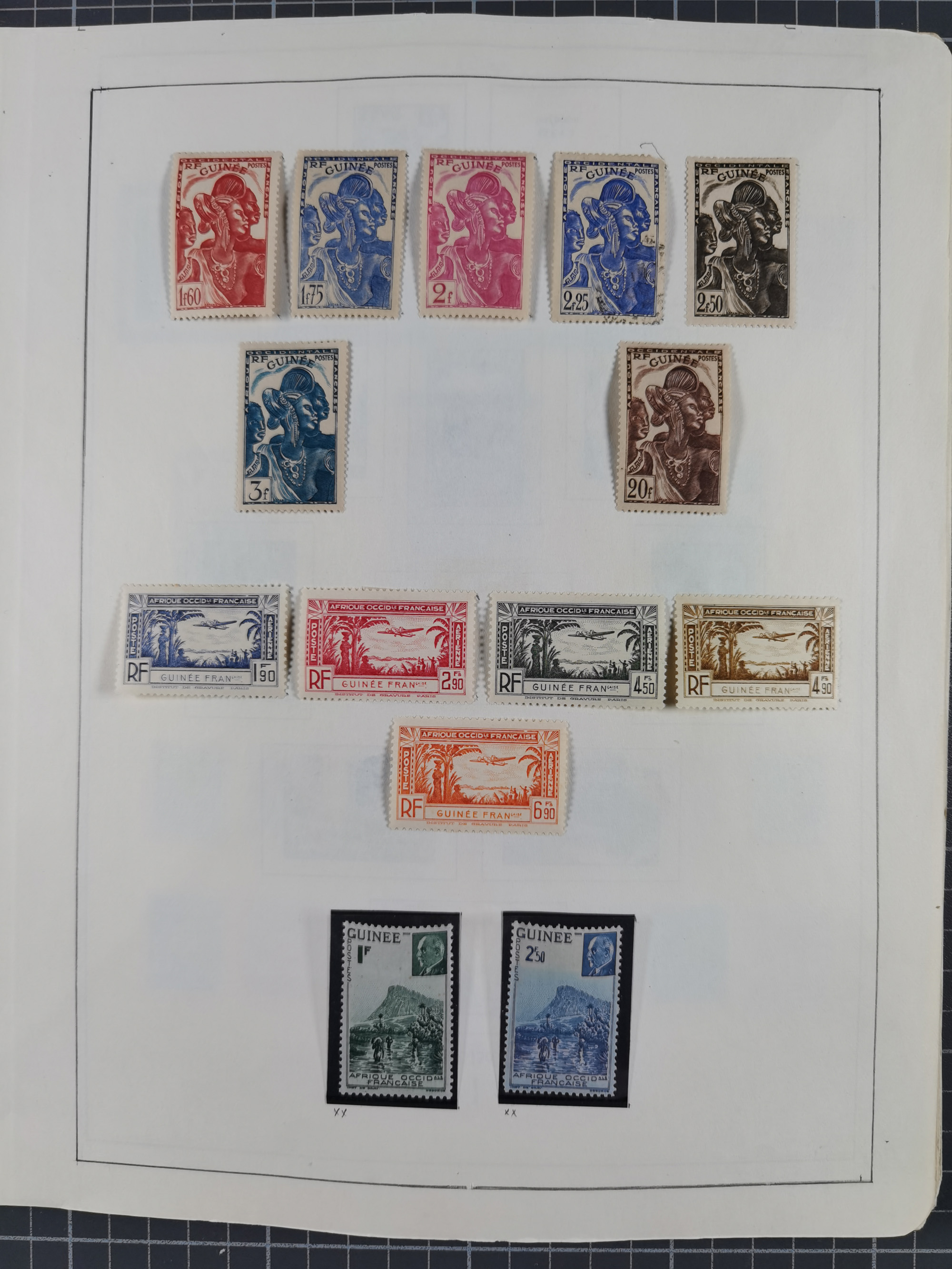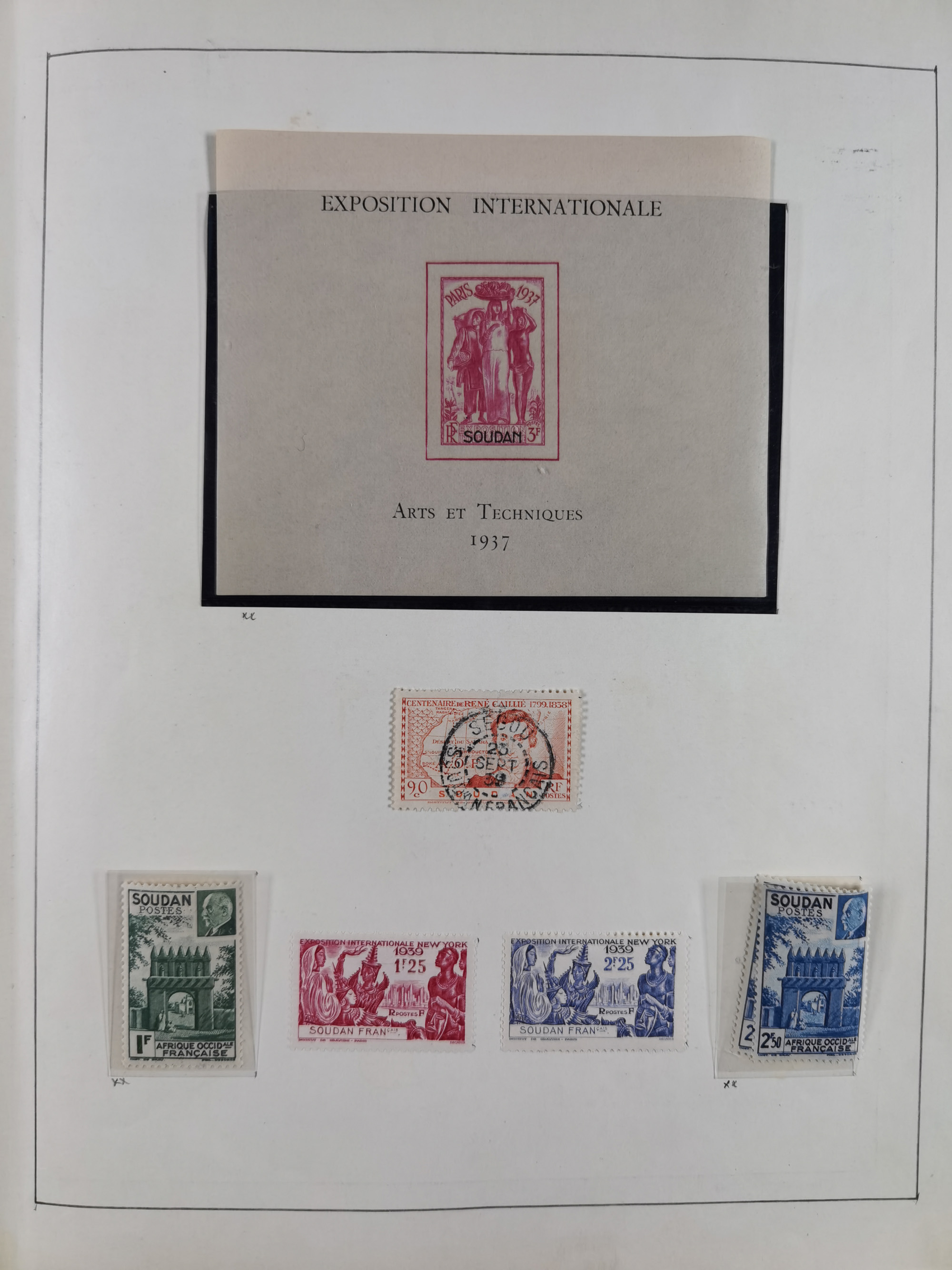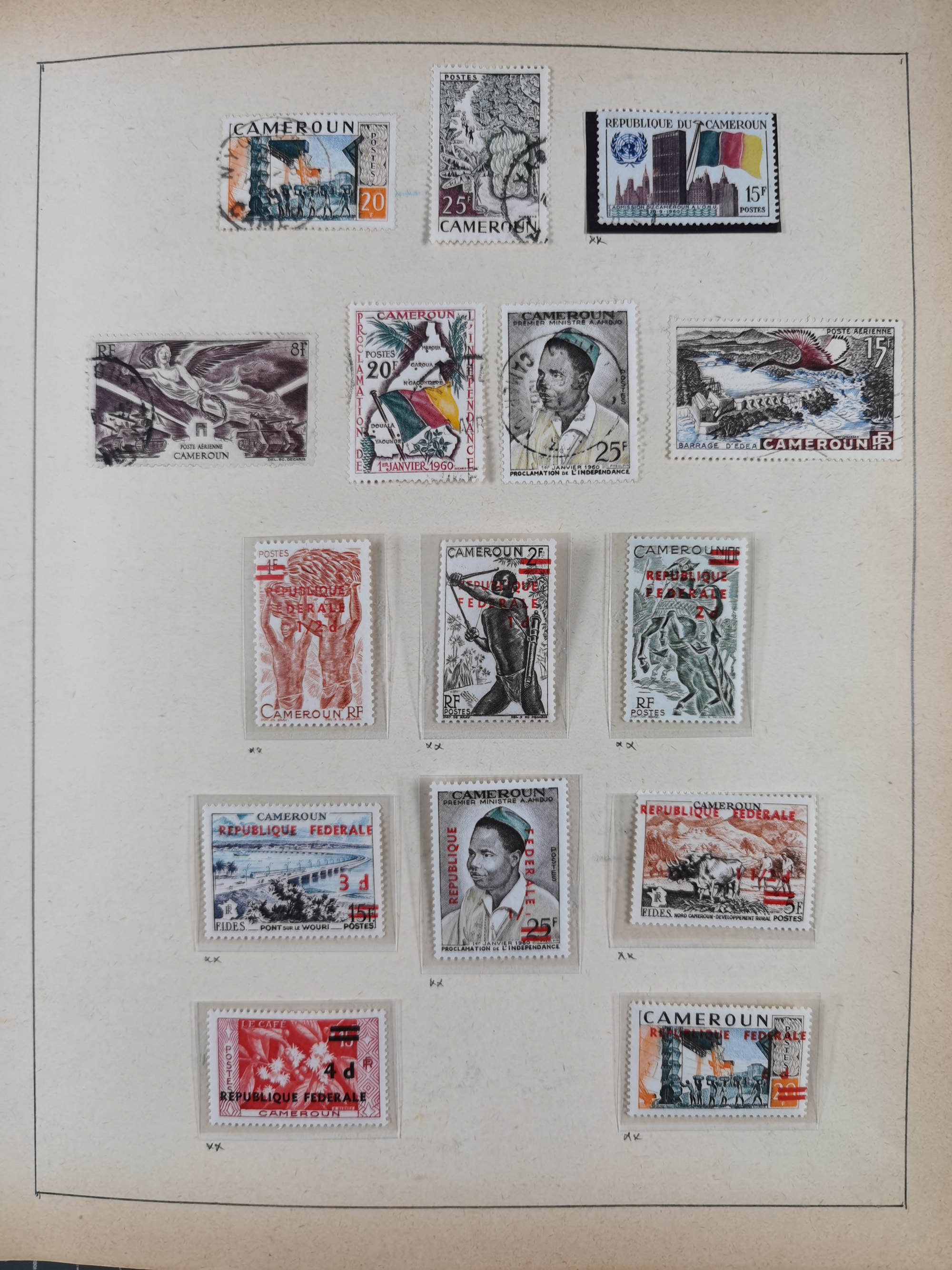 1895/1975 (ca)  unsued and used collection French Colonies and successor states, with stamps from a.o. Algeria, Dahomey, French Sudan, Obock, Gabon, Guinea, Cameroon, Madagascar with better overprint stamps, Réunion, Senegal, Somalia and Togo. Plus two page with the general issues 1859/86 incl. postage due, mostly in good condition