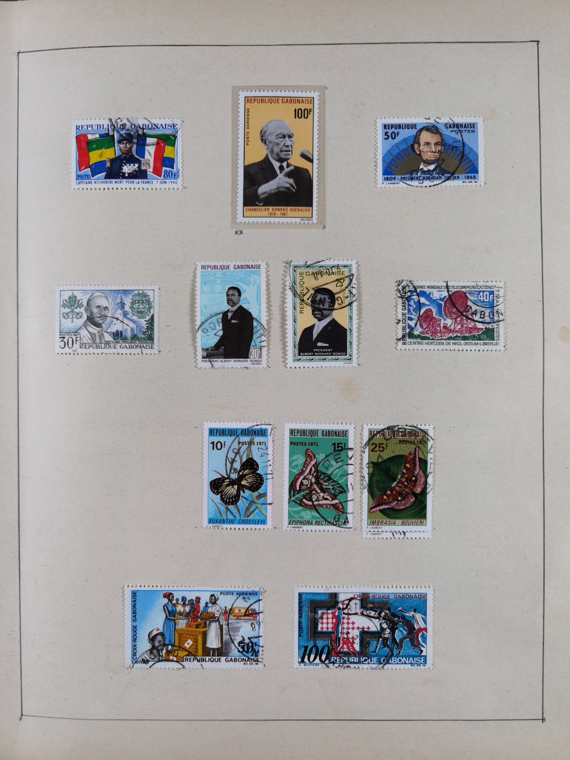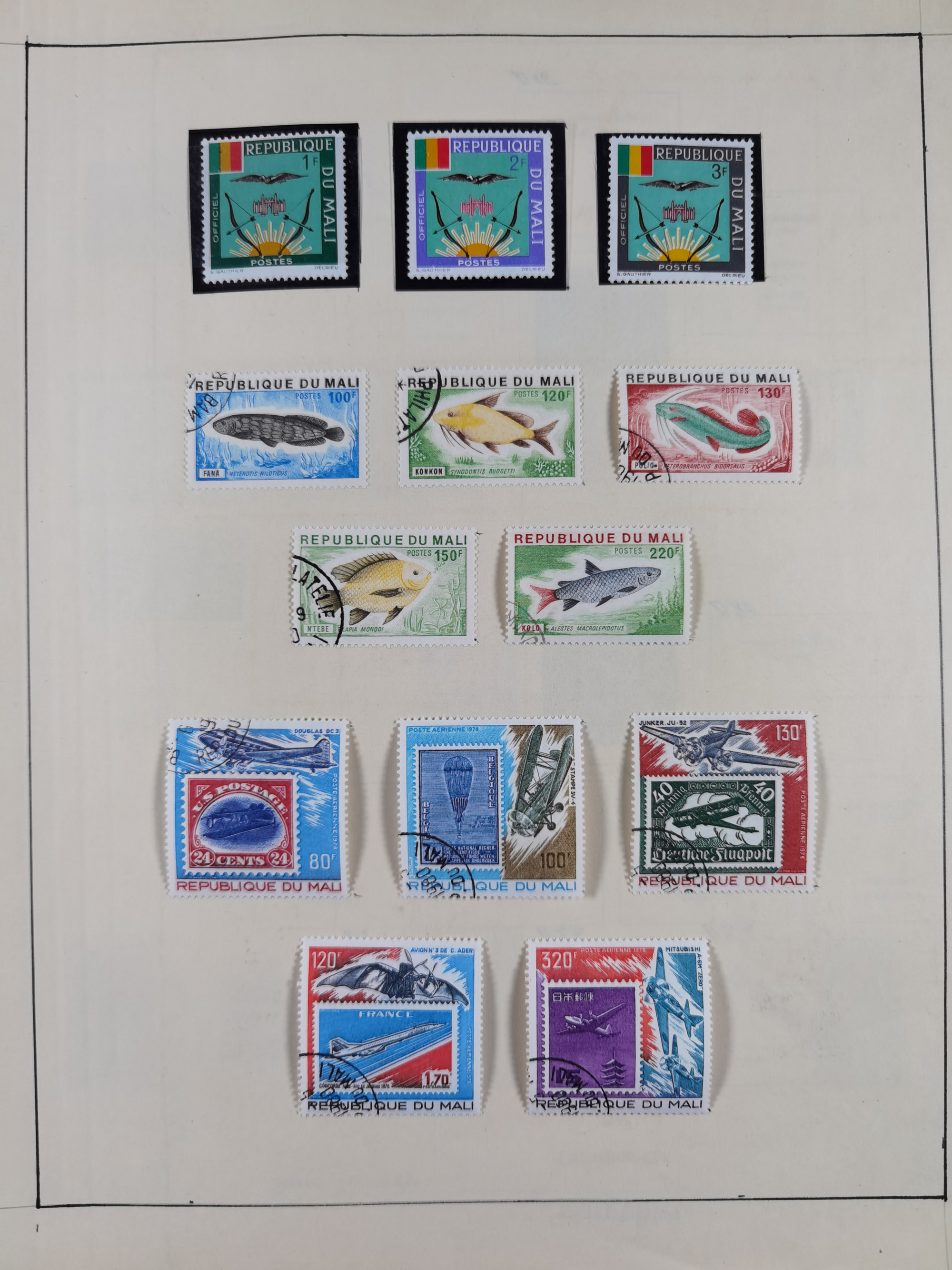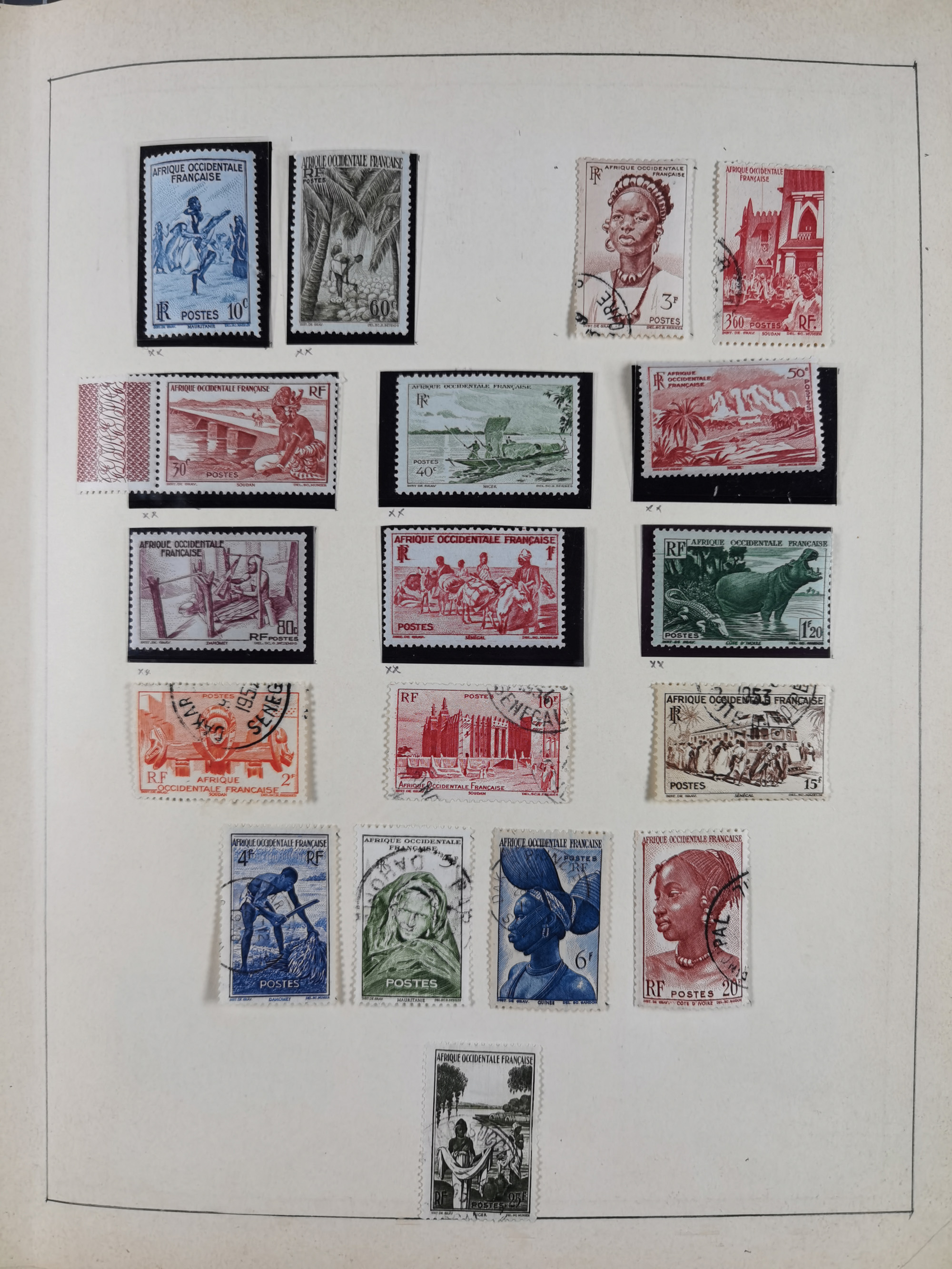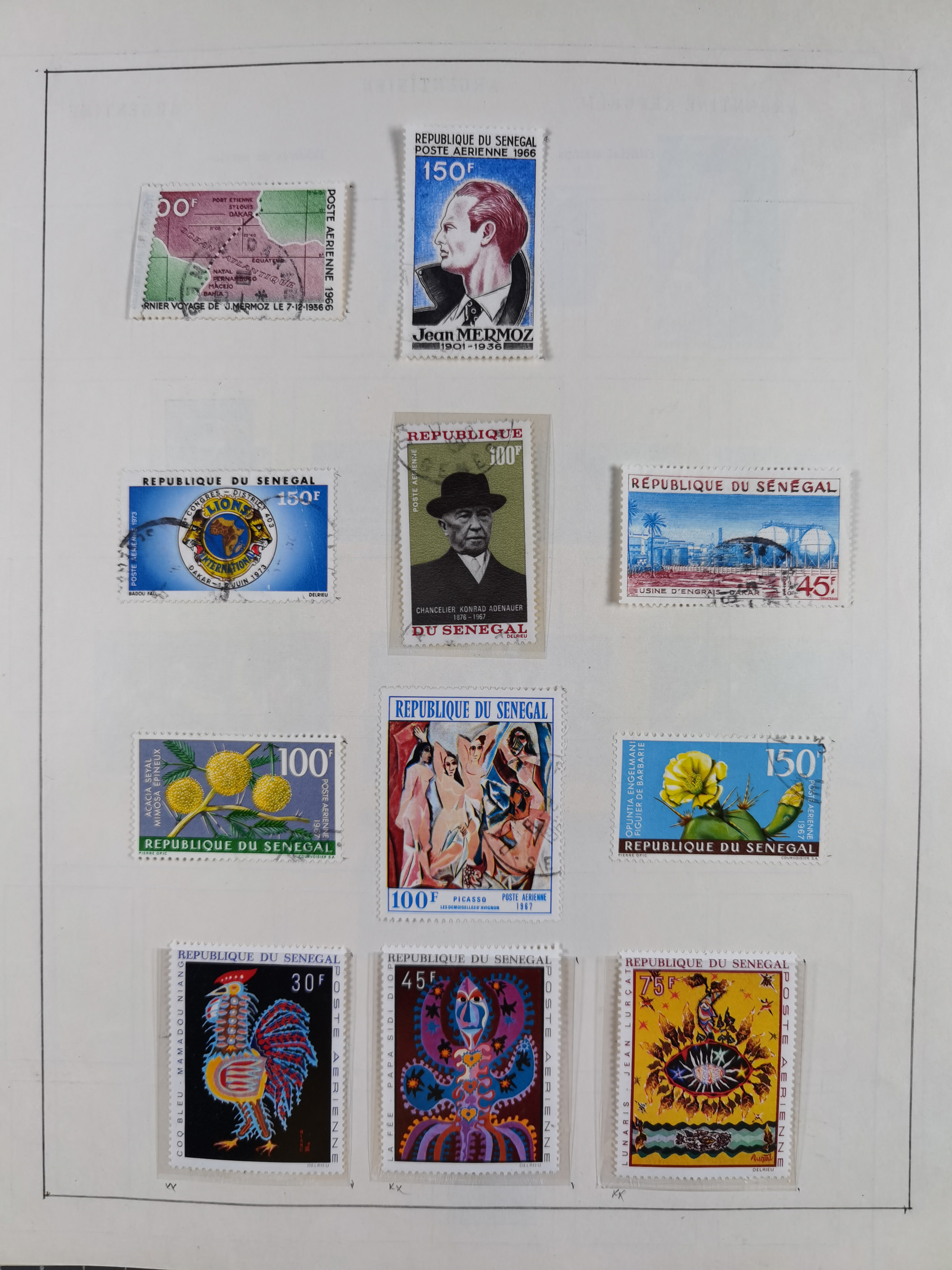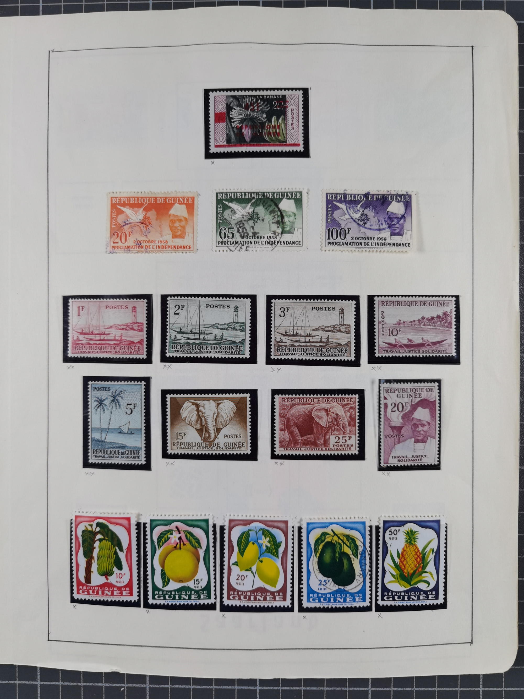 1895/1975 (ca)  unsued and used collection French Colonies and successor states, with stamps from a.o. Algeria, Dahomey, French Sudan, Obock, Gabon, Guinea, Cameroon, Madagascar with better overprint stamps, Réunion, Senegal, Somalia and Togo. Plus two page with the general issues 1859/86 incl. postage due, mostly in good condition