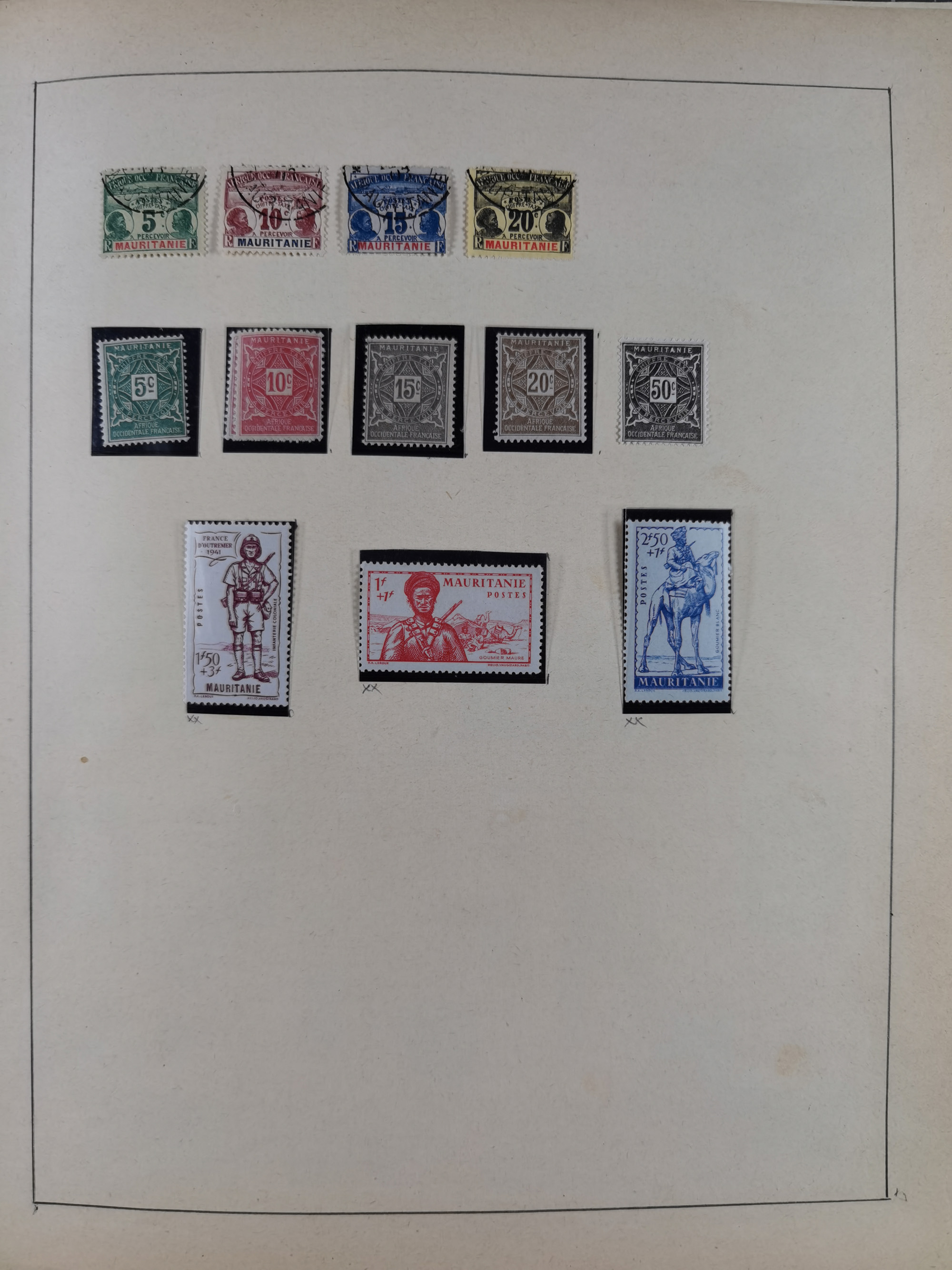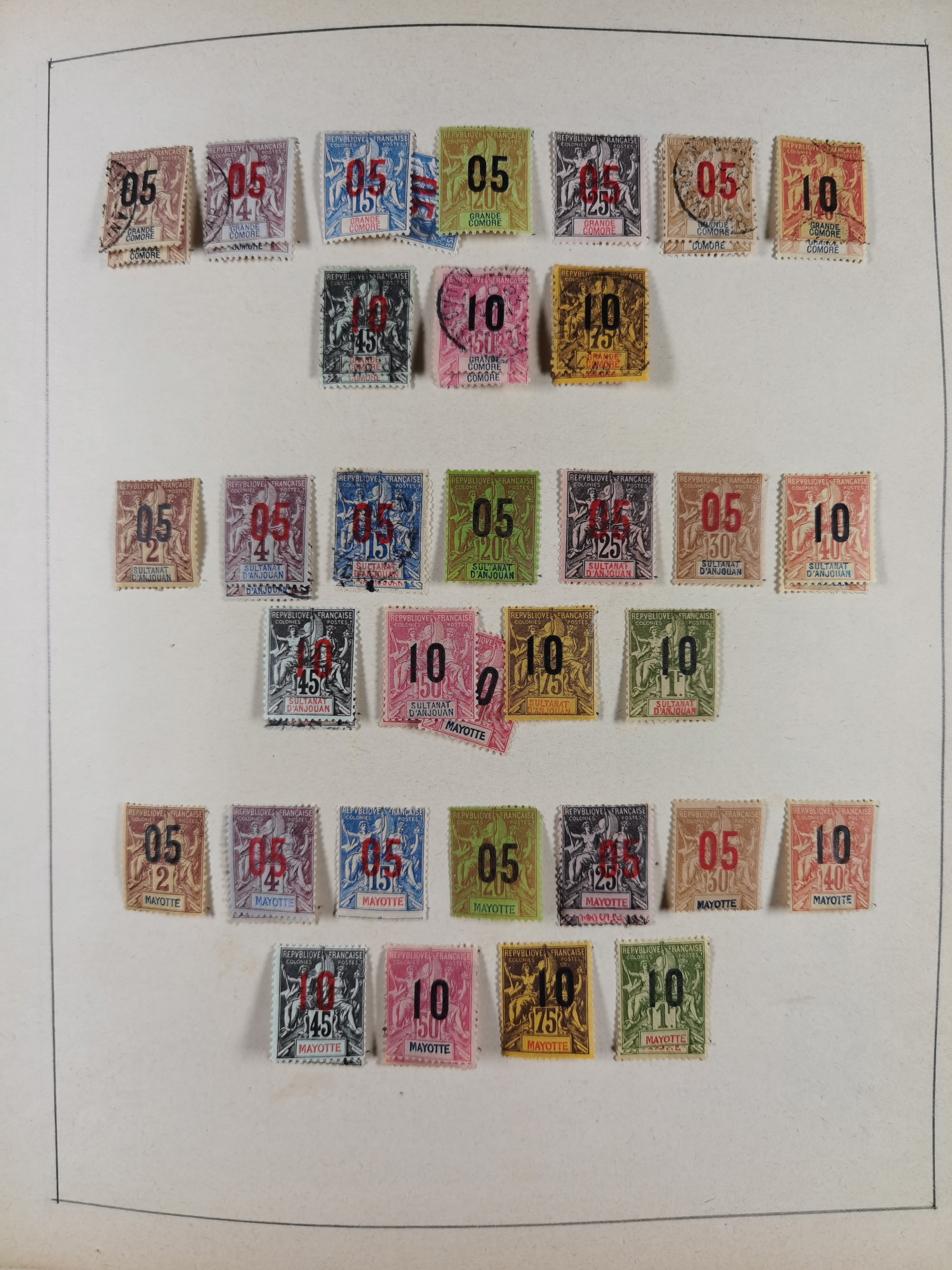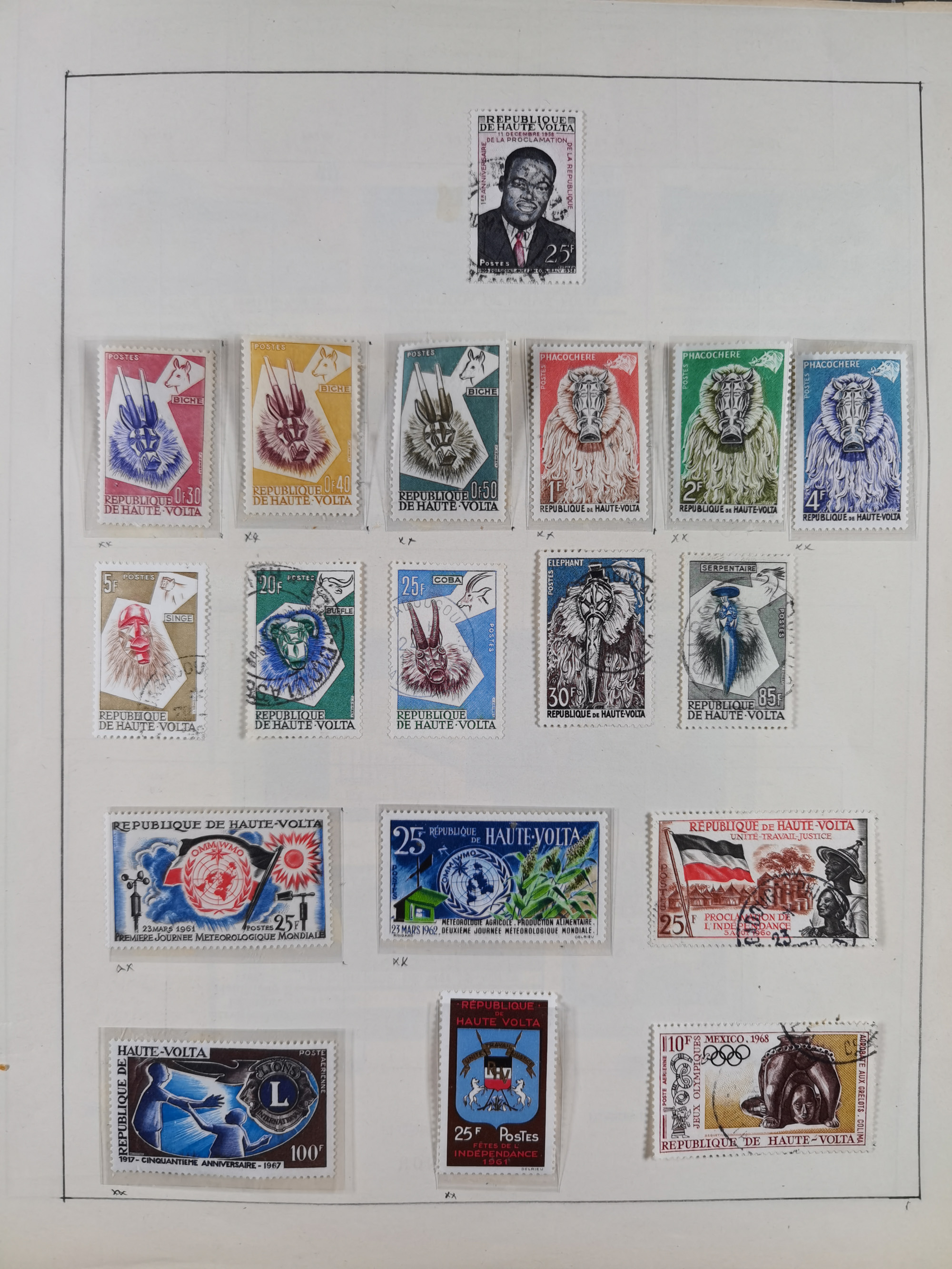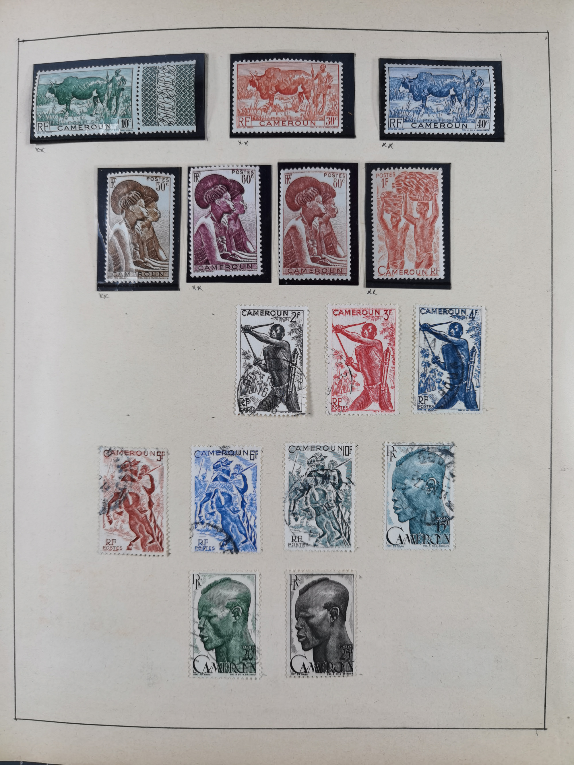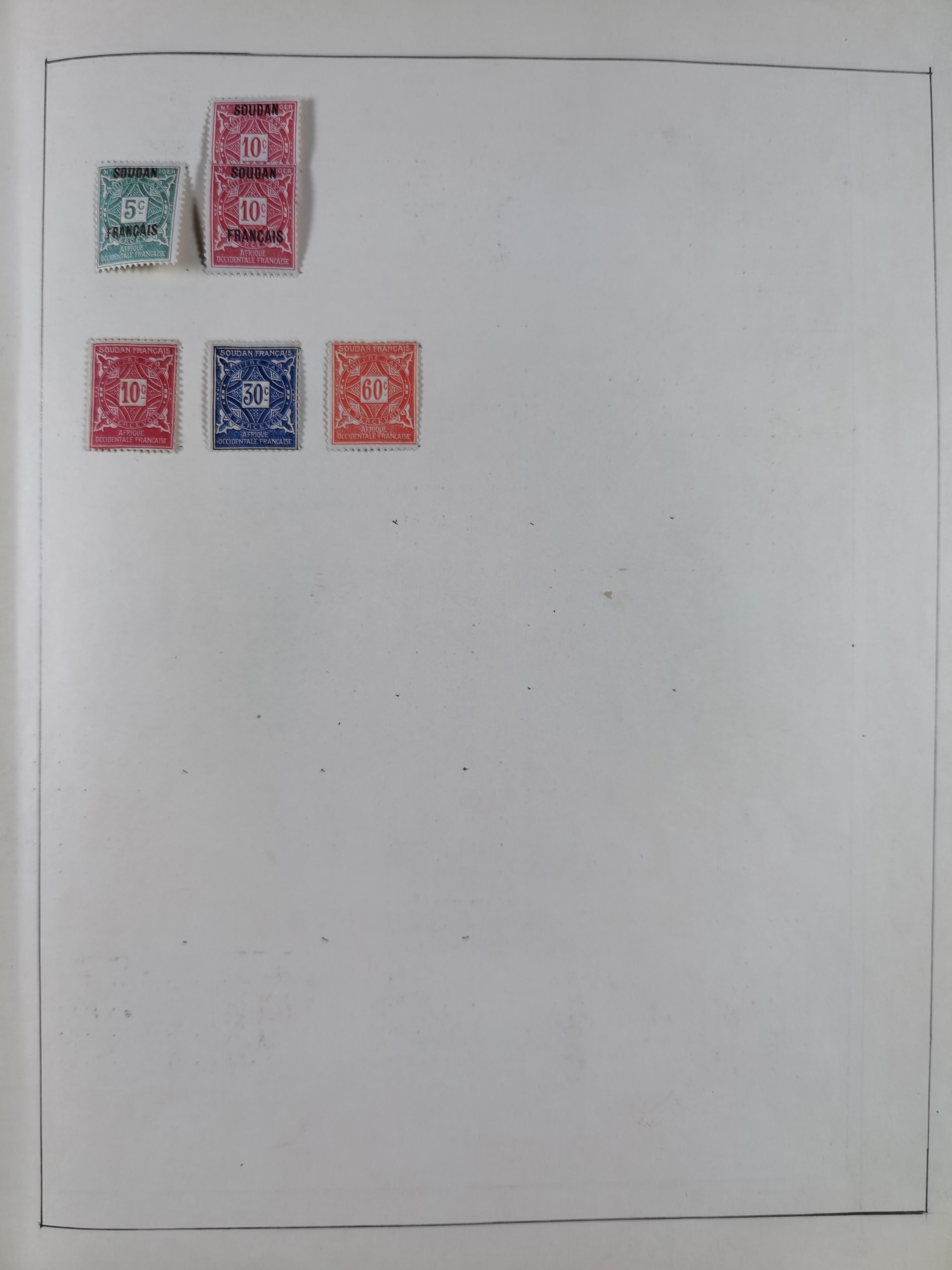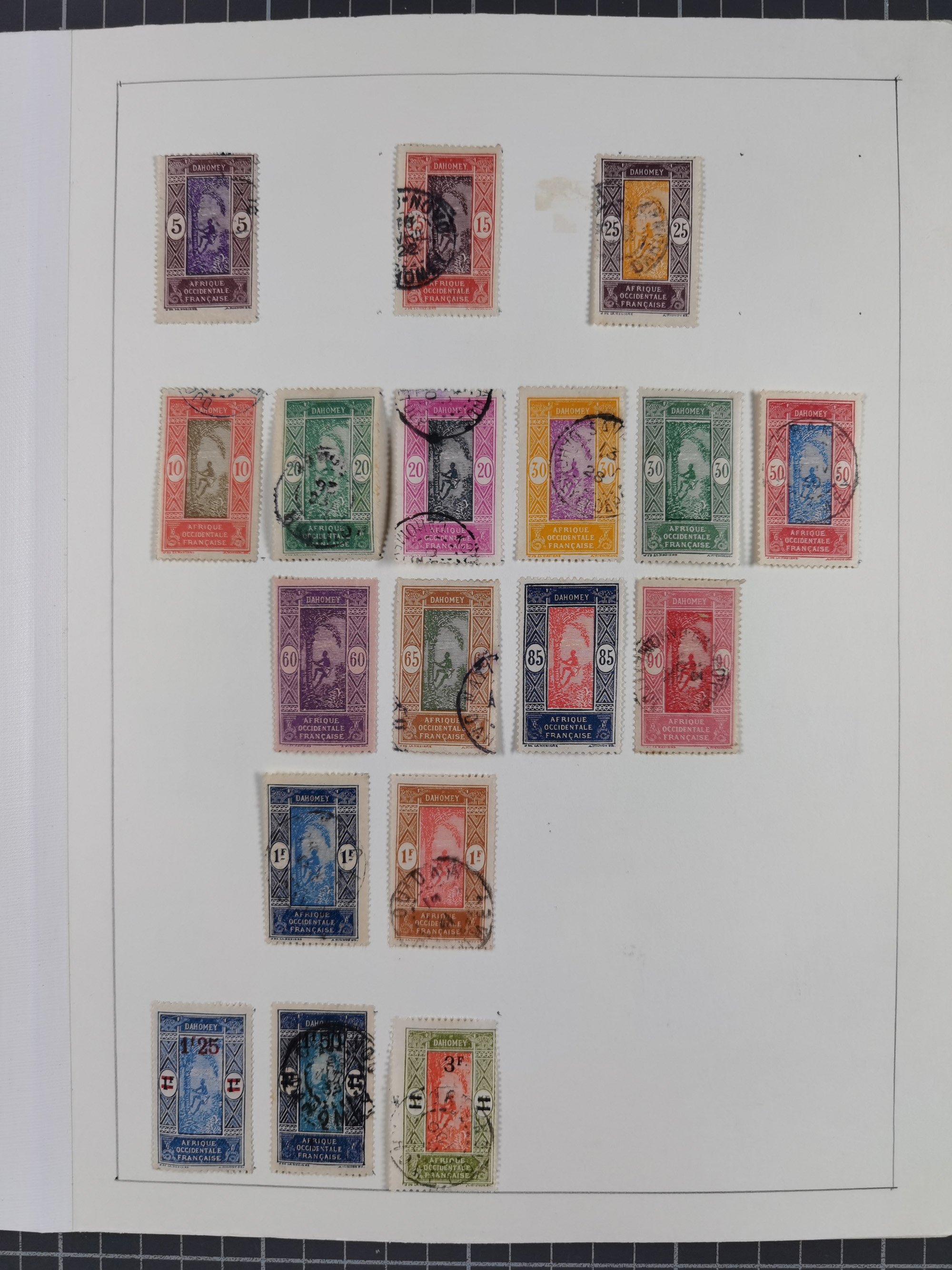 1895/1975 (ca)  unsued and used collection French Colonies and successor states, with stamps from a.o. Algeria, Dahomey, French Sudan, Obock, Gabon, Guinea, Cameroon, Madagascar with better overprint stamps, Réunion, Senegal, Somalia and Togo. Plus two page with the general issues 1859/86 incl. postage due, mostly in good condition