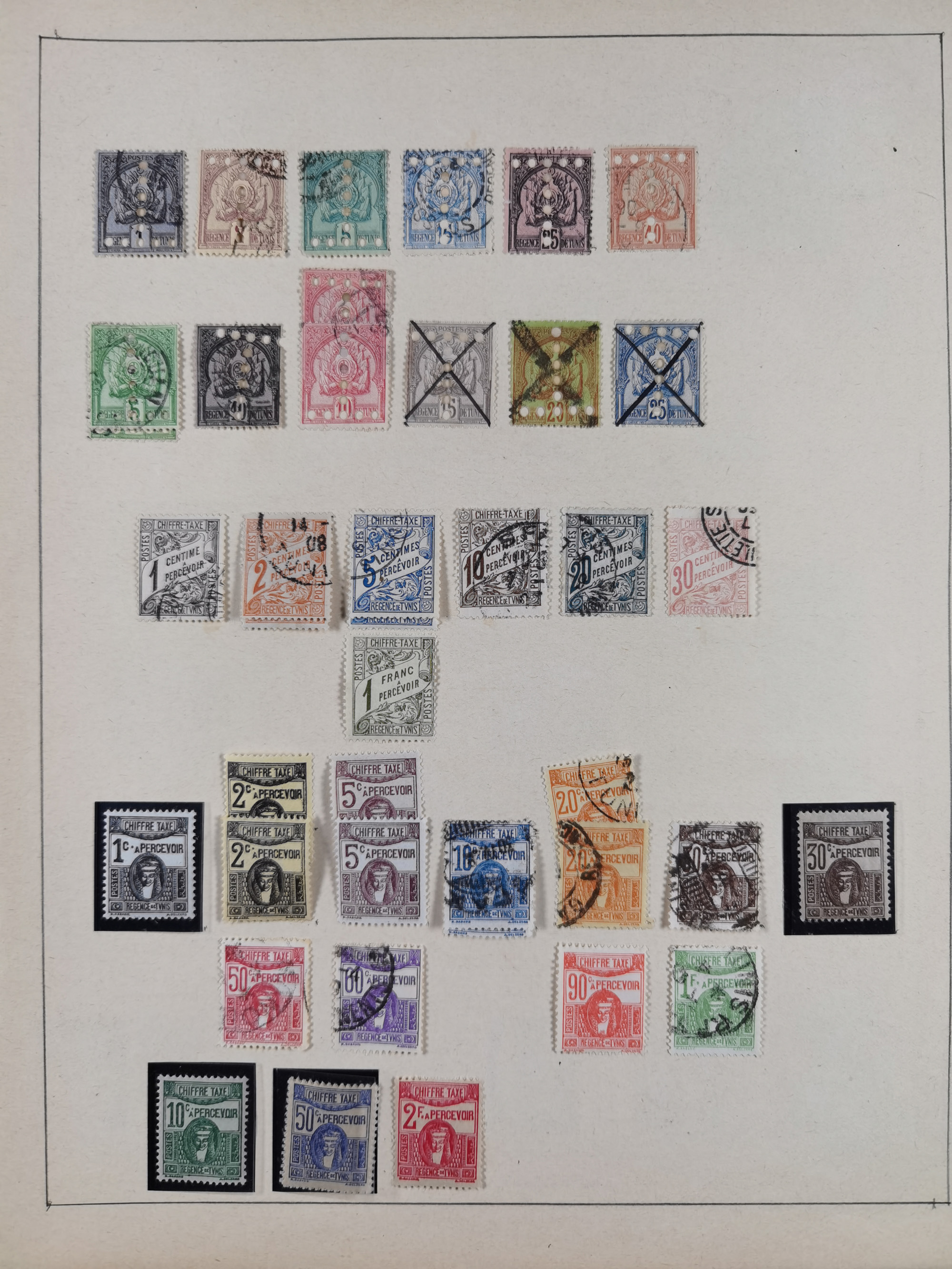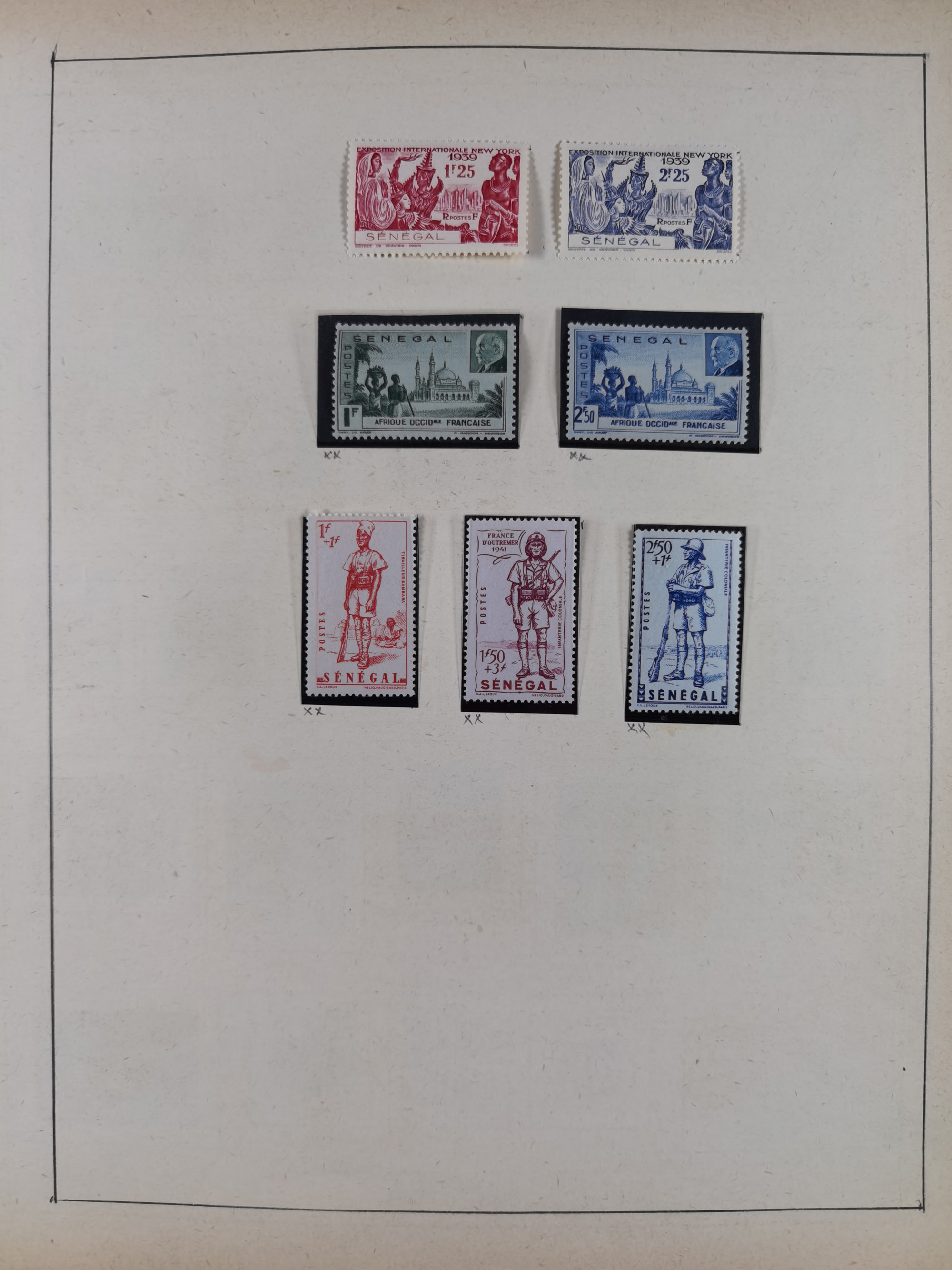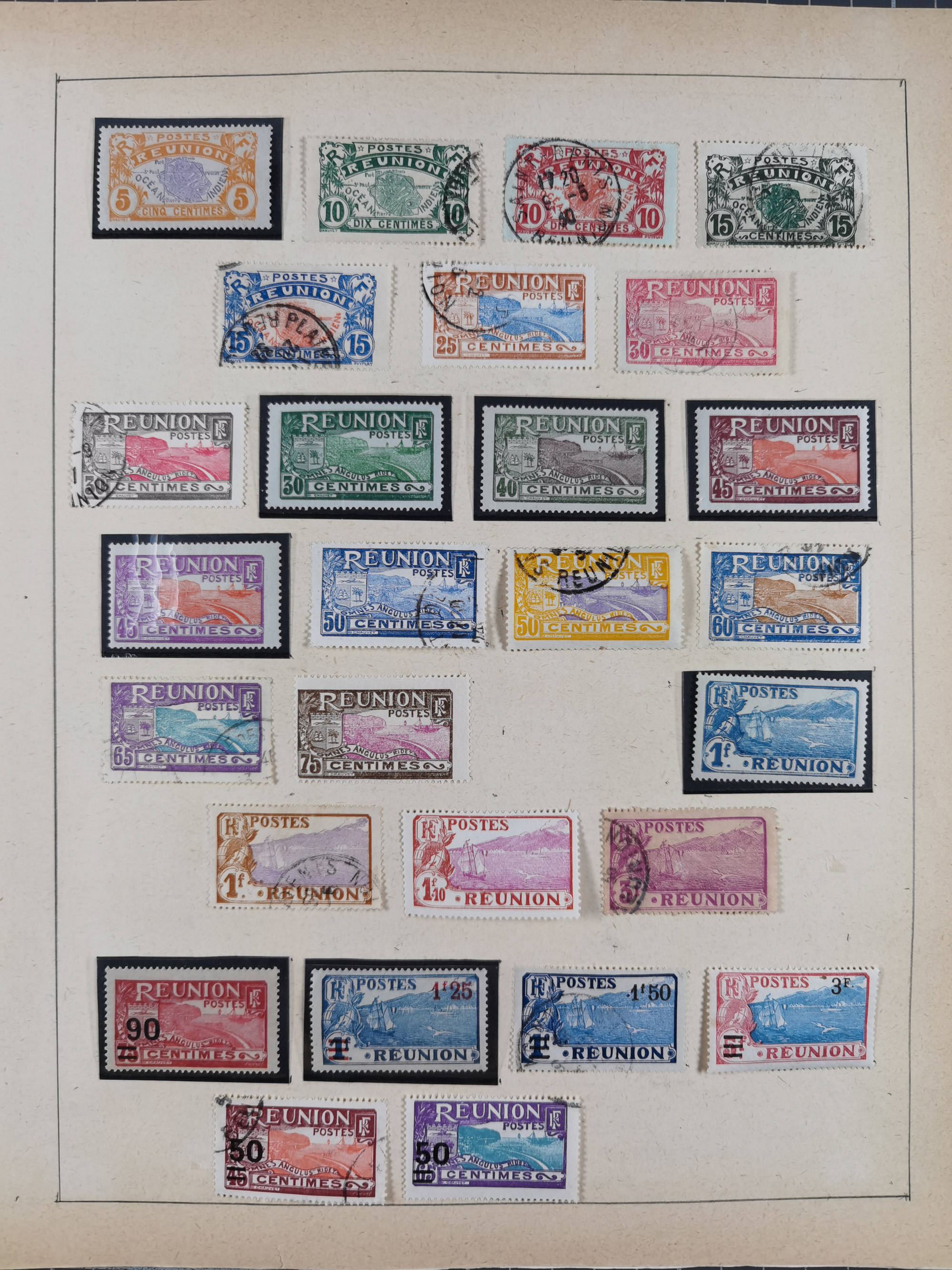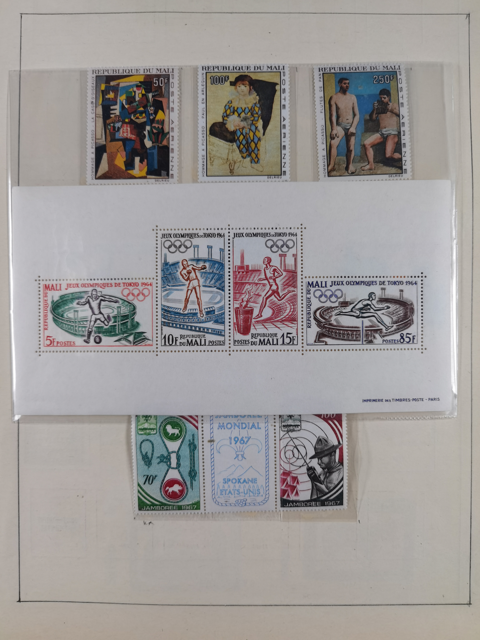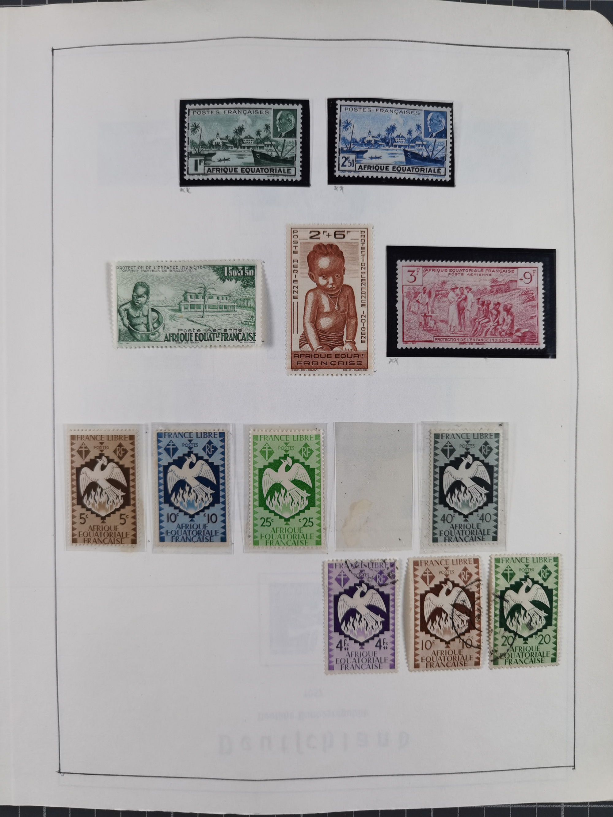 1895/1975 (ca)  unsued and used collection French Colonies and successor states, with stamps from a.o. Algeria, Dahomey, French Sudan, Obock, Gabon, Guinea, Cameroon, Madagascar with better overprint stamps, Réunion, Senegal, Somalia and Togo. Plus two page with the general issues 1859/86 incl. postage due, mostly in good condition