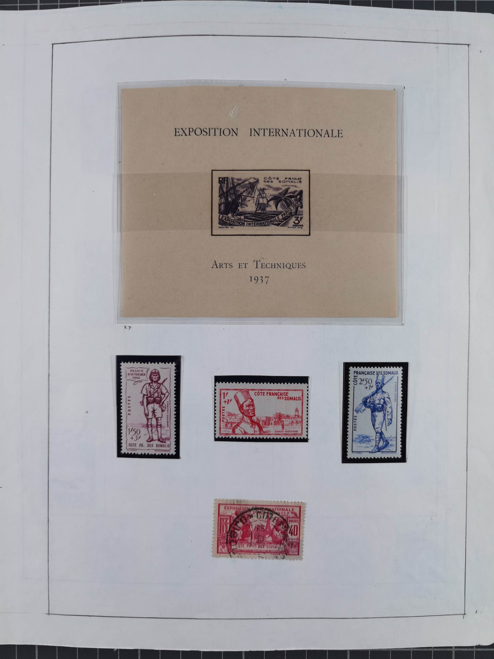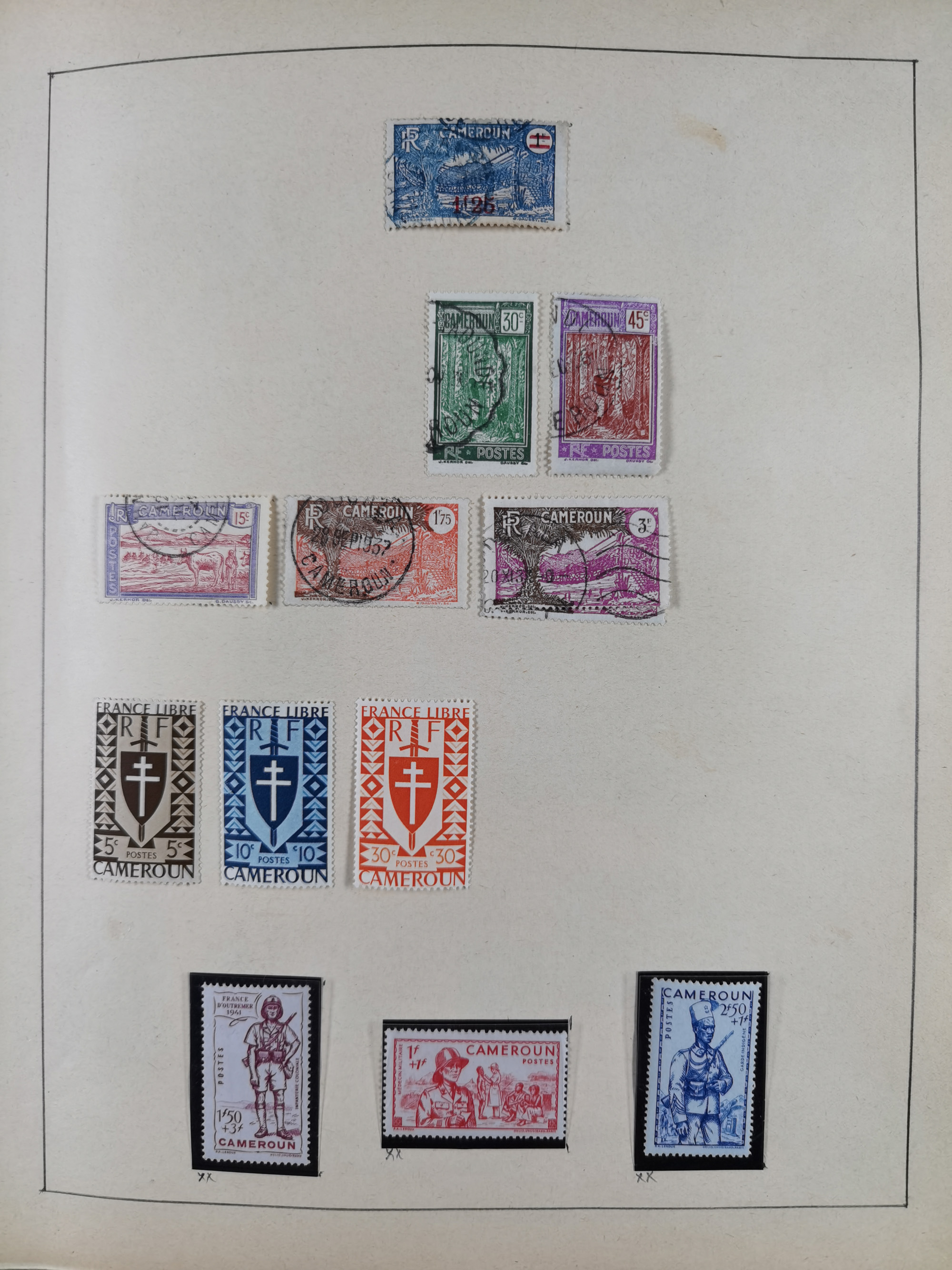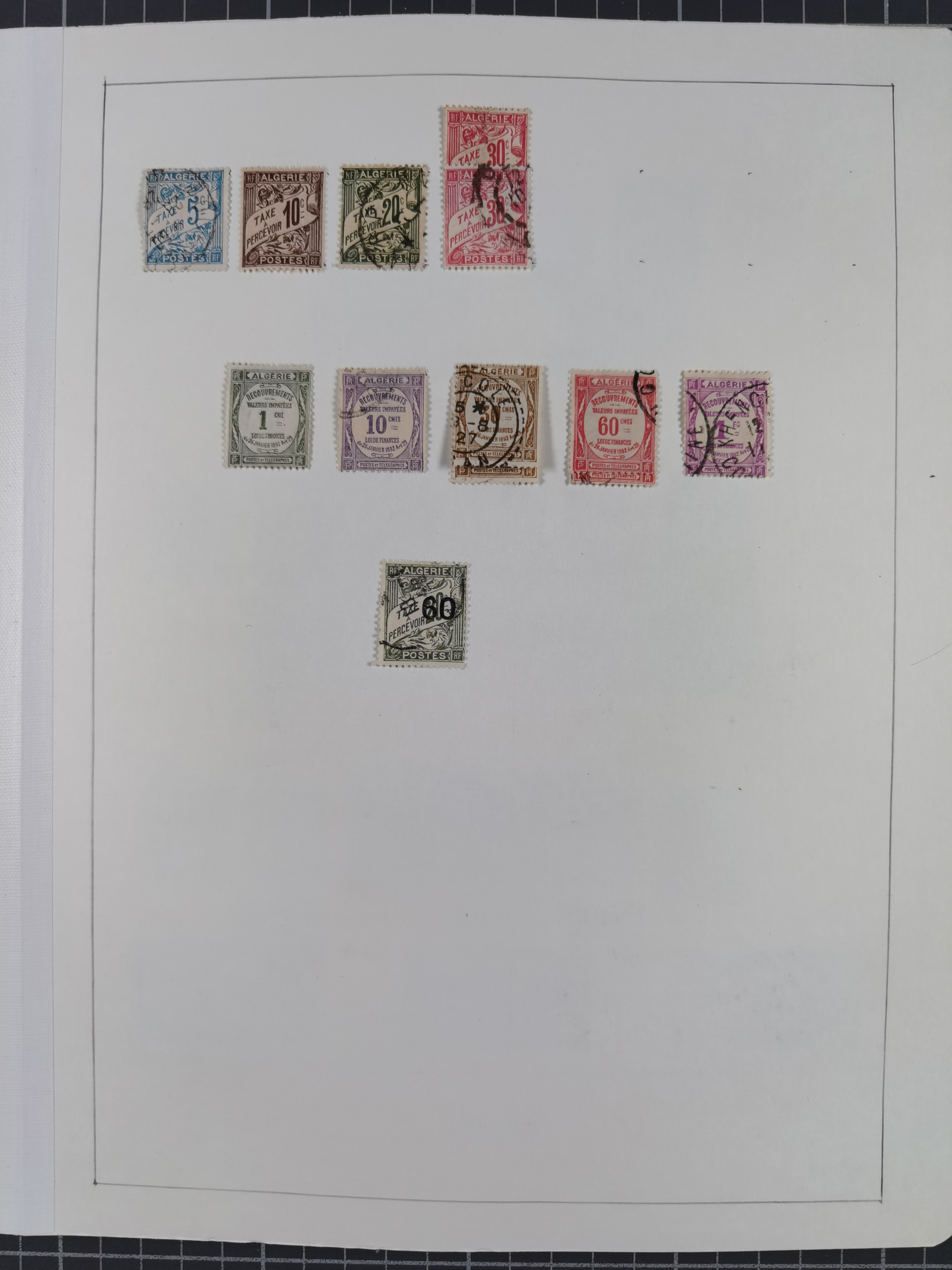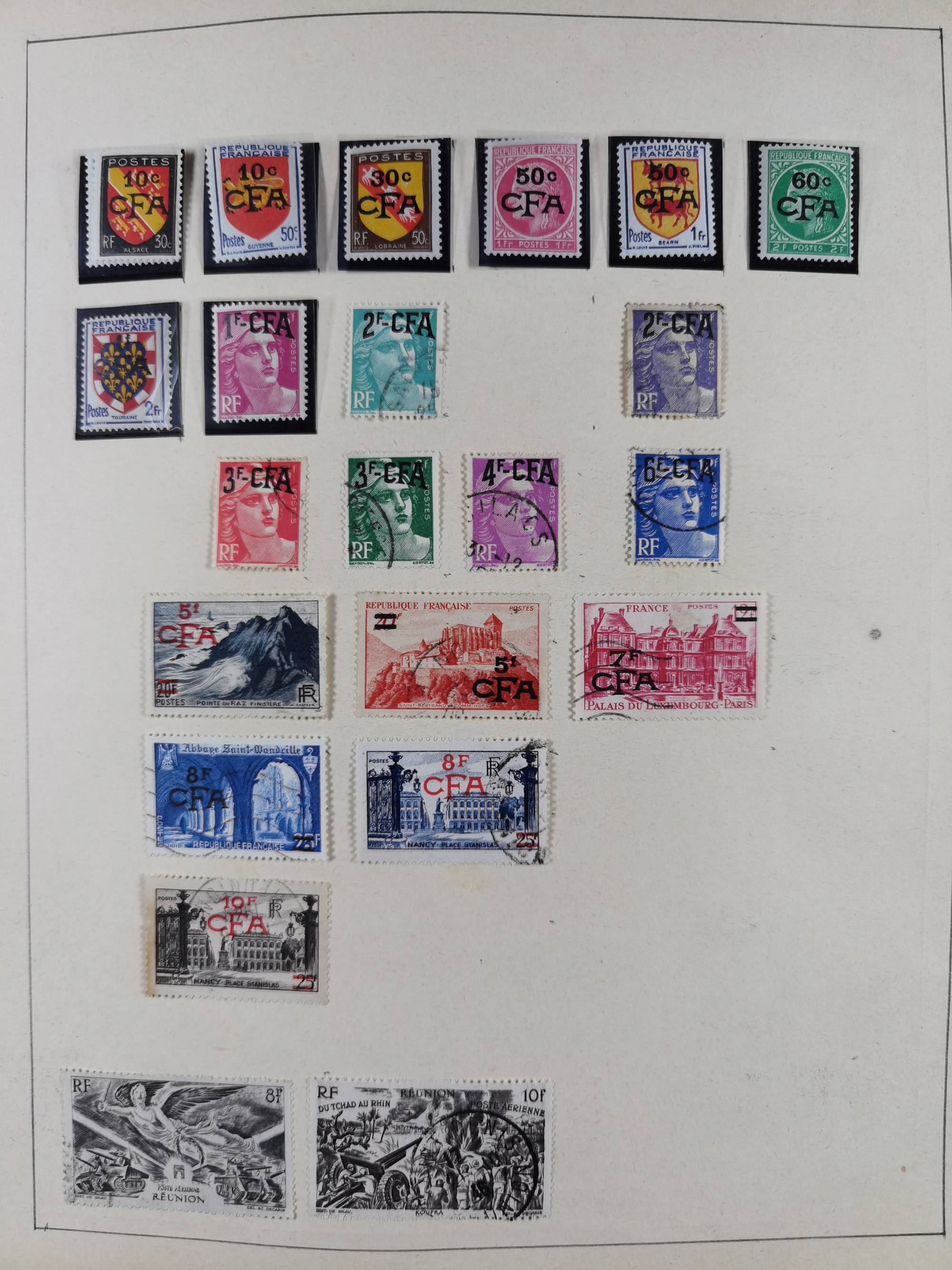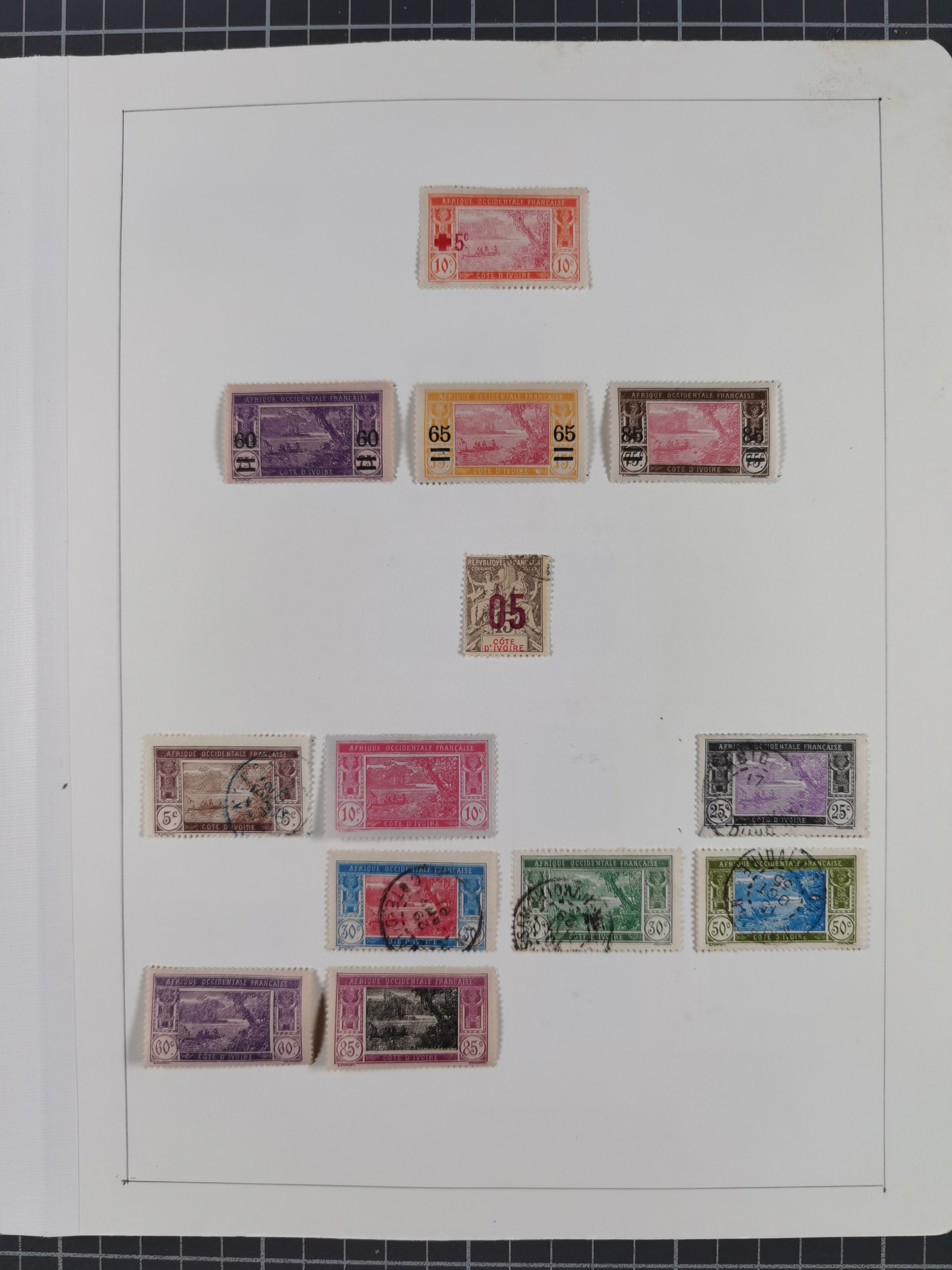 1895/1975 (ca)  unsued and used collection French Colonies and successor states, with stamps from a.o. Algeria, Dahomey, French Sudan, Obock, Gabon, Guinea, Cameroon, Madagascar with better overprint stamps, Réunion, Senegal, Somalia and Togo. Plus two page with the general issues 1859/86 incl. postage due, mostly in good condition